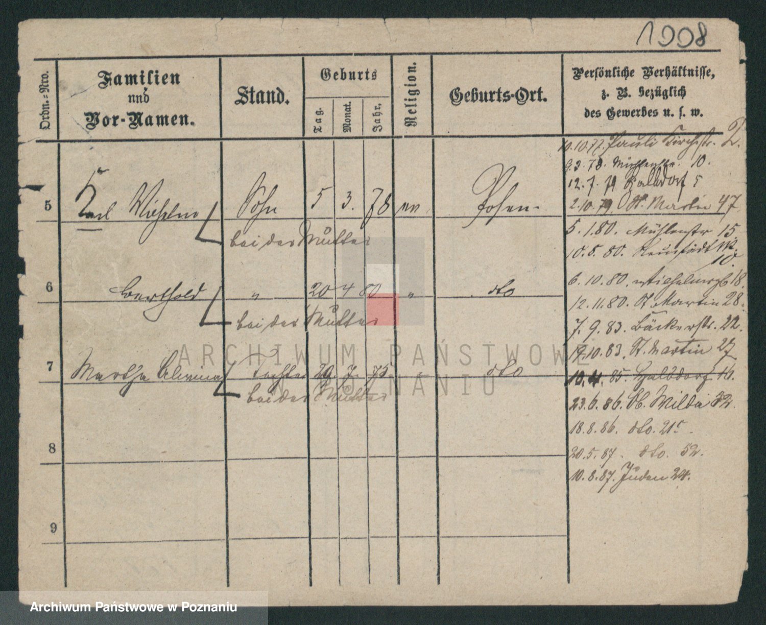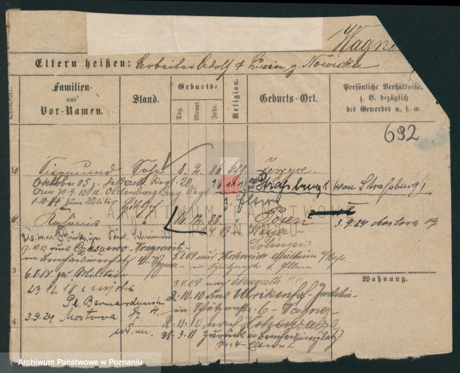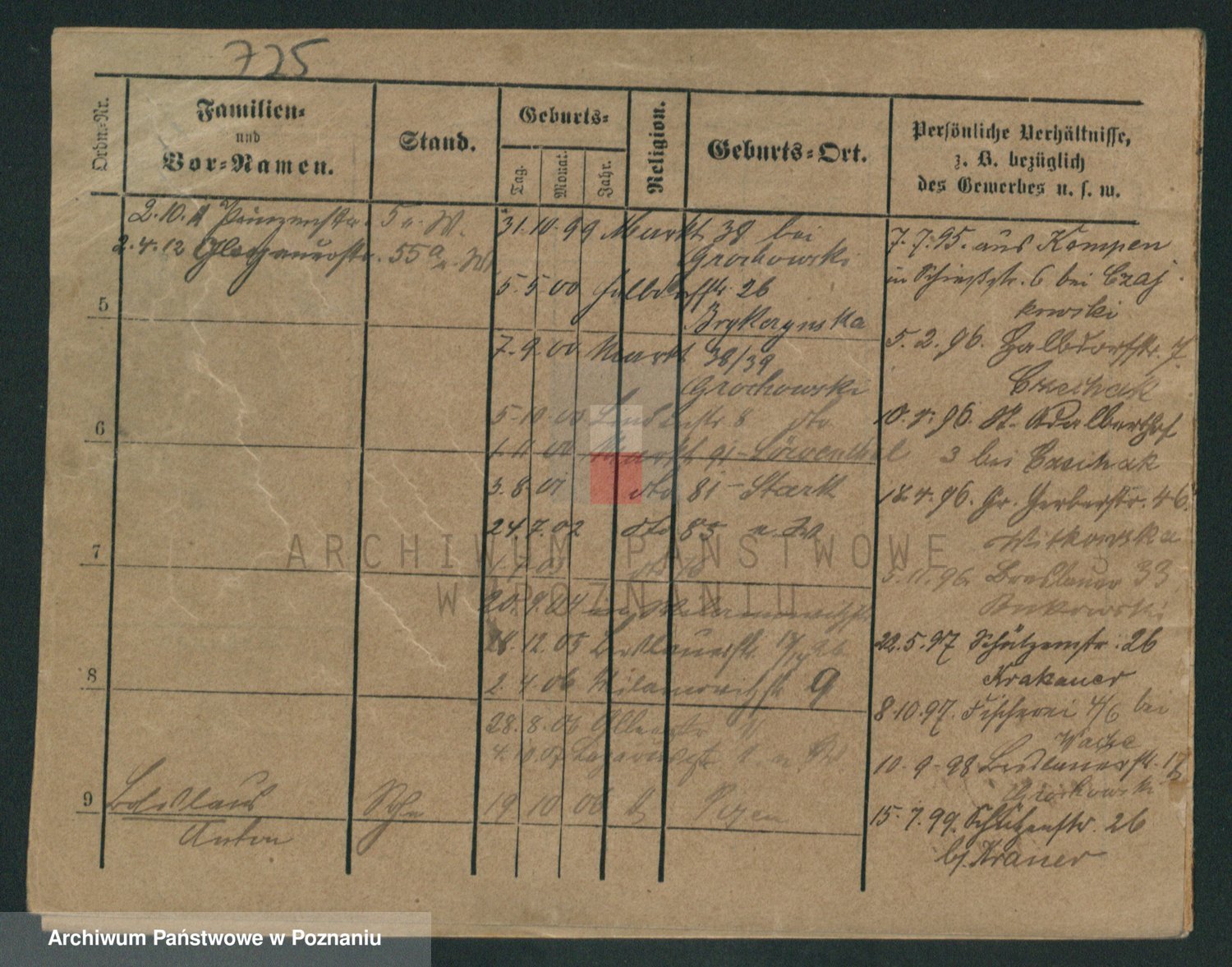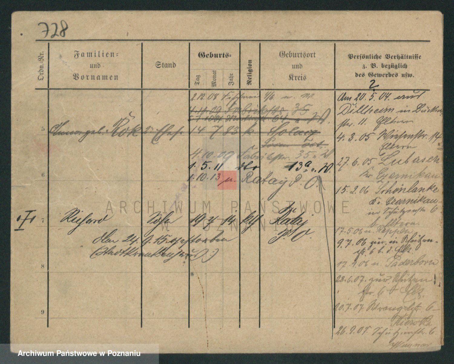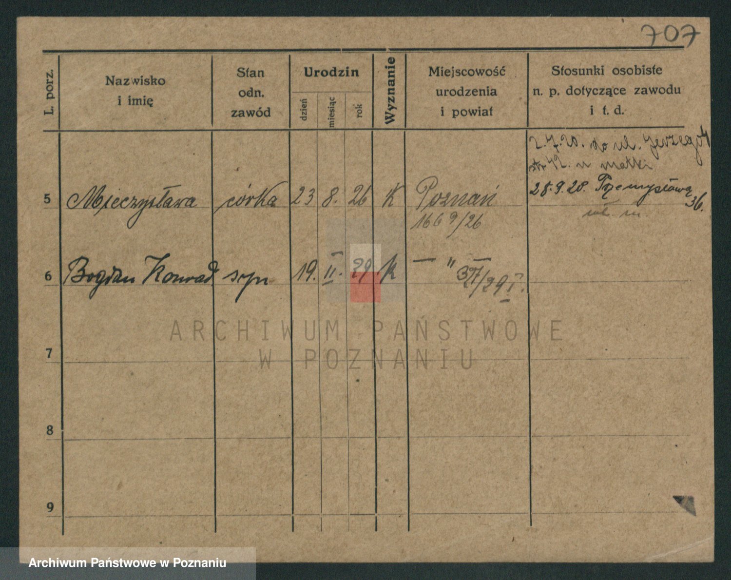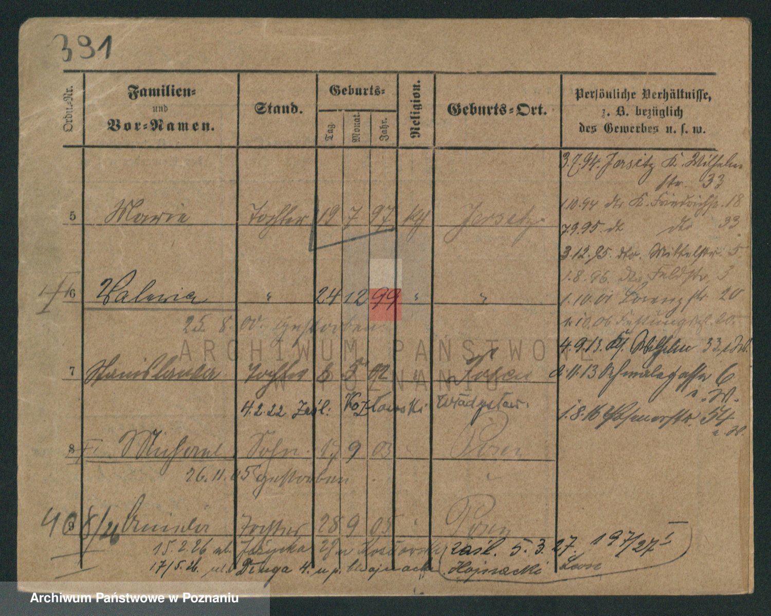 Podgląd karty osobowej dostępny jest po kliknięciu na nazwisko lub ikonkę karty. Można dokonywać powiększenia (ikony na górze) lub przechodzić między kolejnymi skanami (strzałki po bokach).