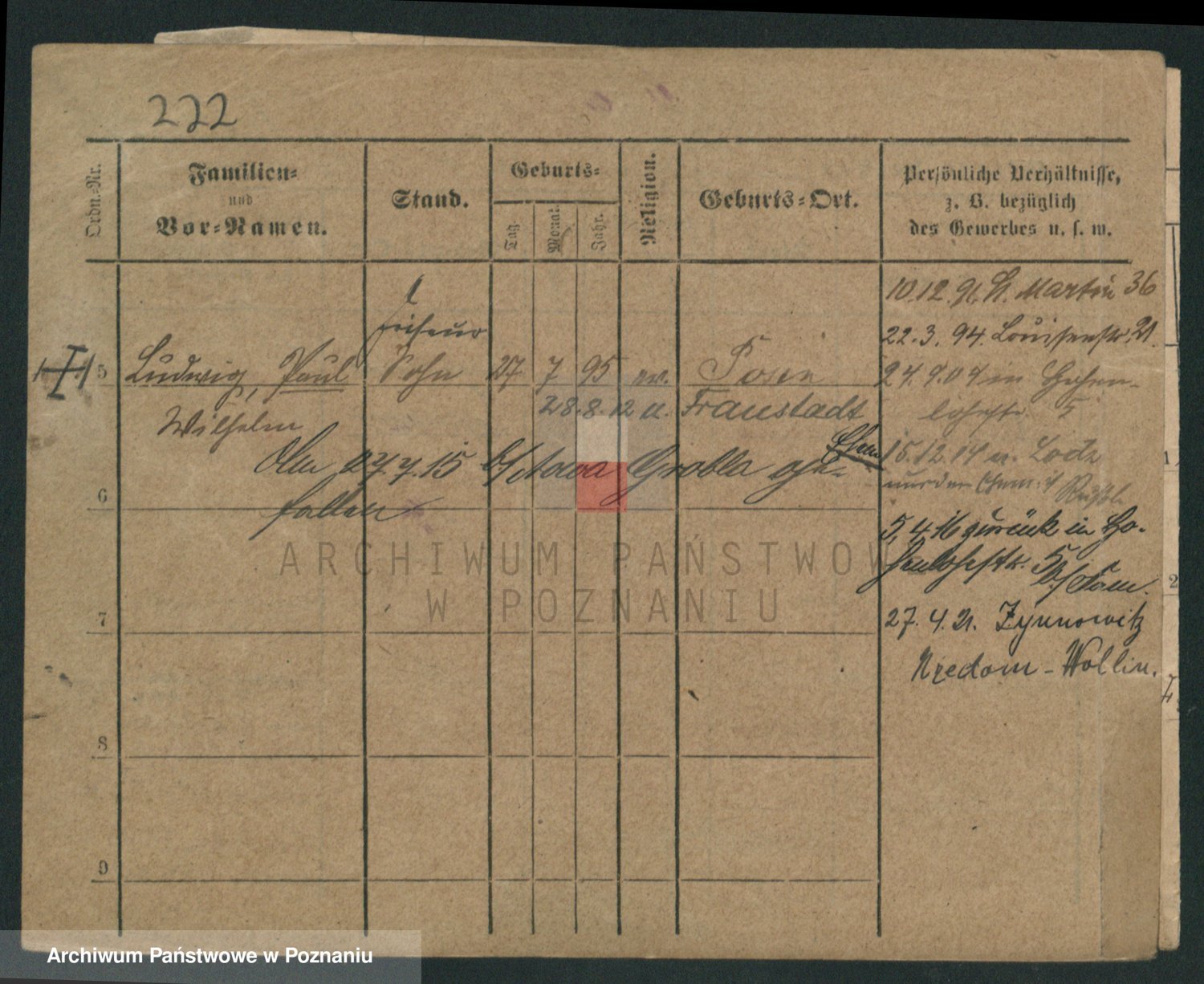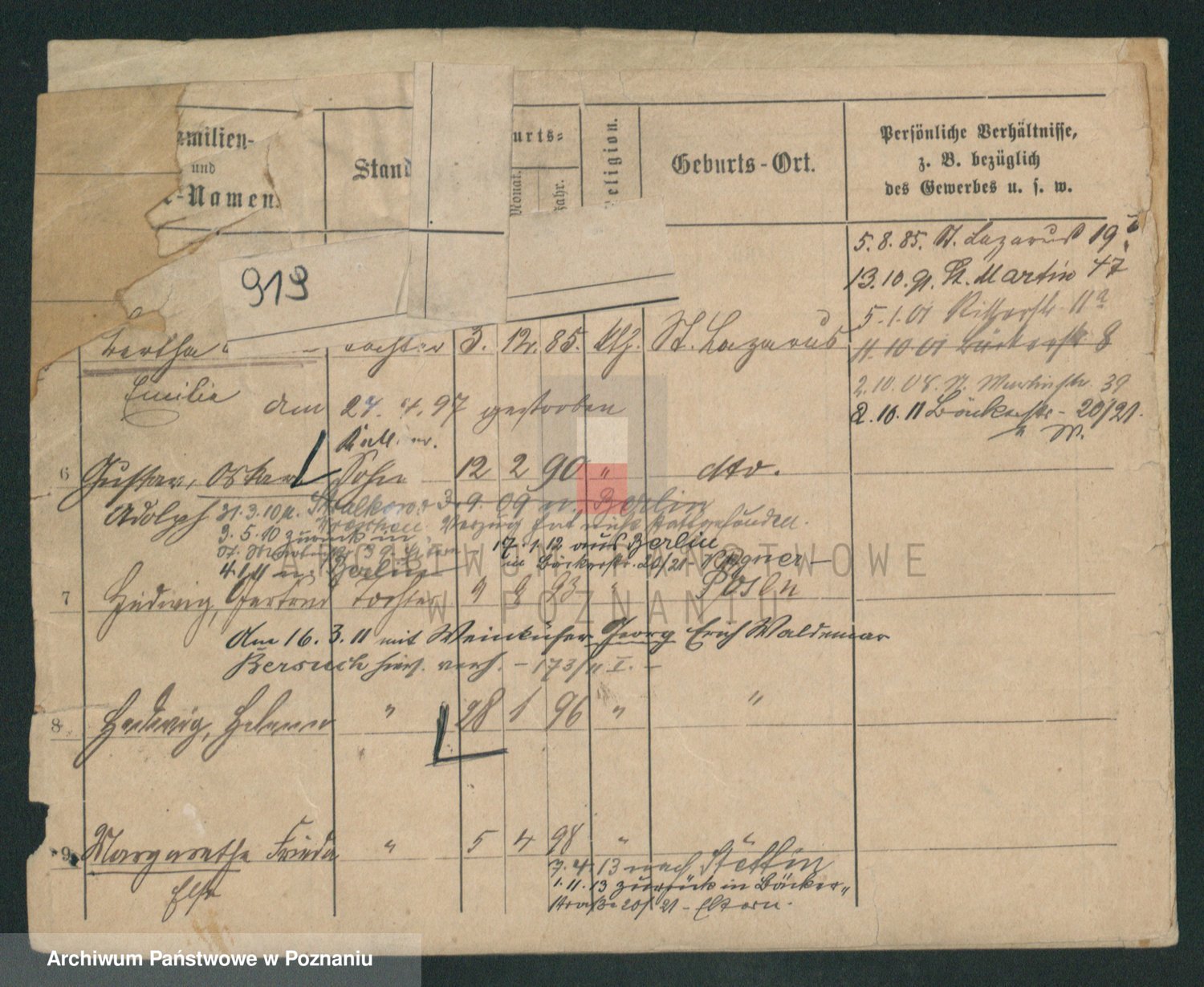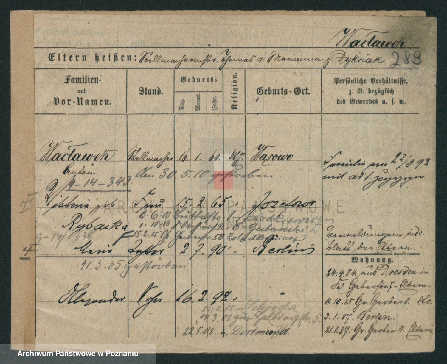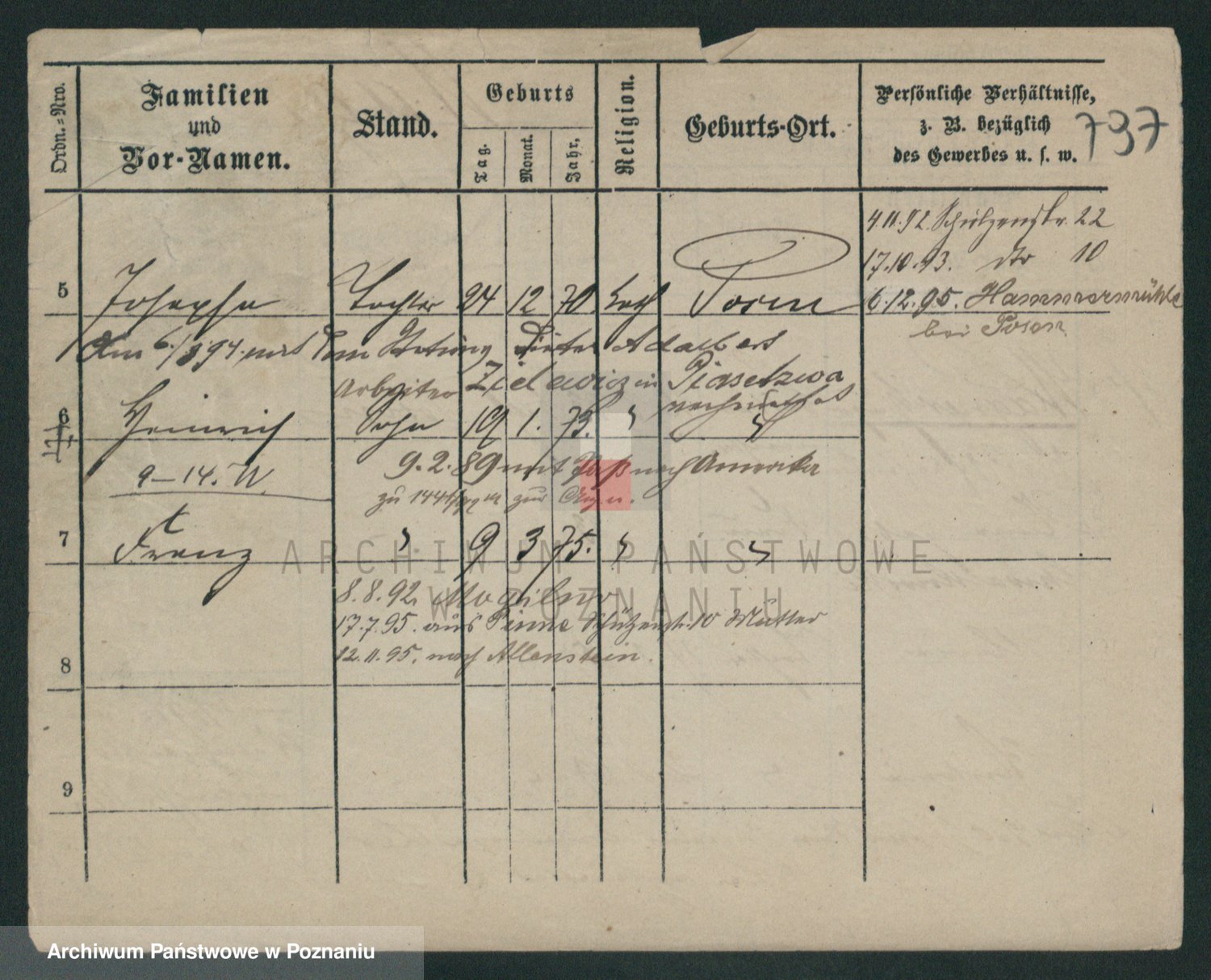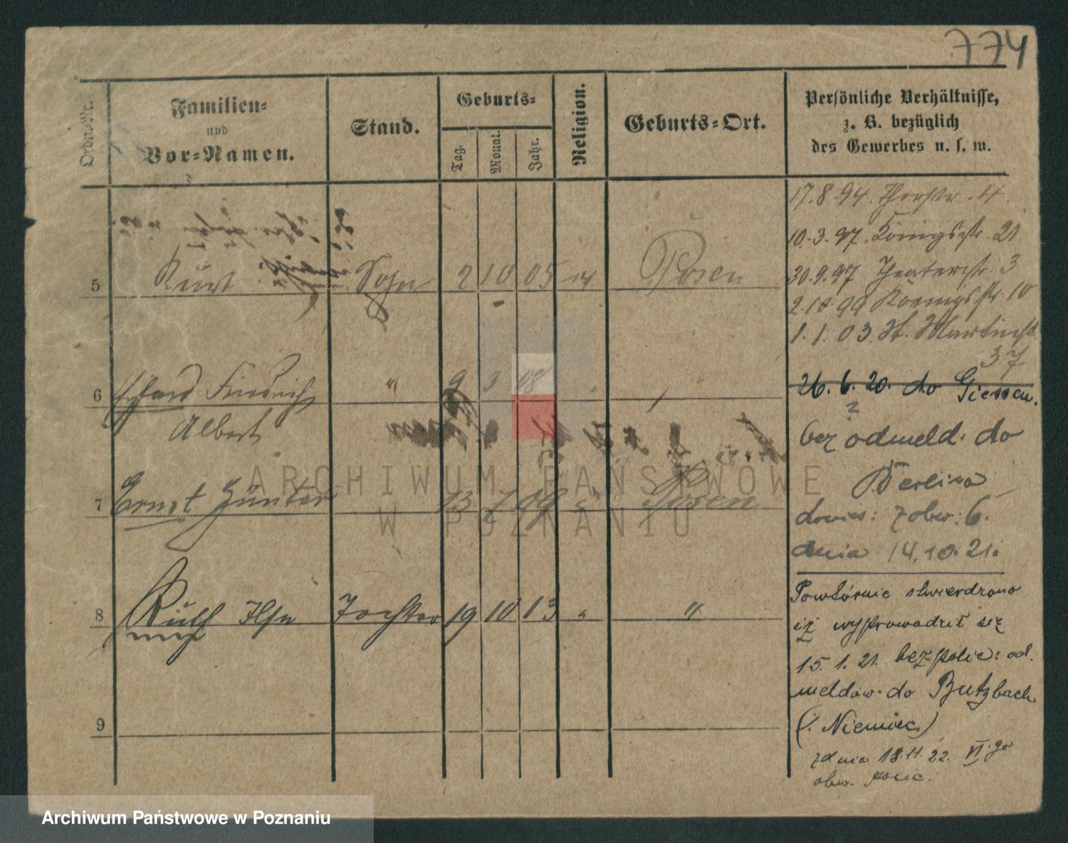 Podgląd karty osobowej dostępny jest po kliknięciu na nazwisko lub ikonkę karty. Można dokonywać powiększenia (ikony na górze) lub przechodzić między kolejnymi skanami (strzałki po bokach).