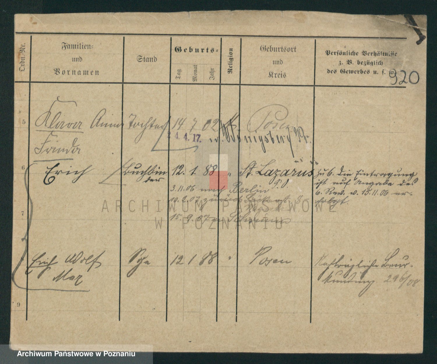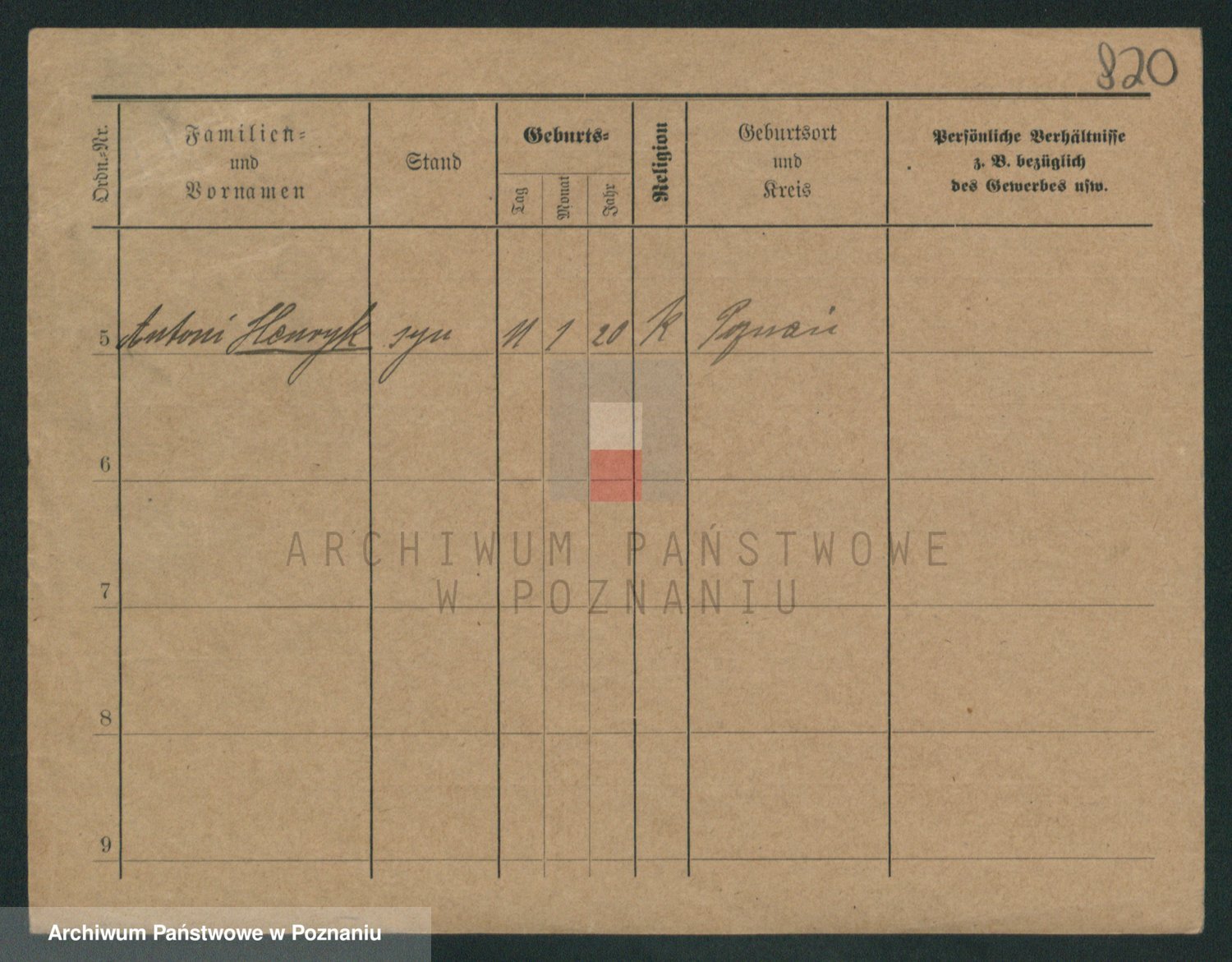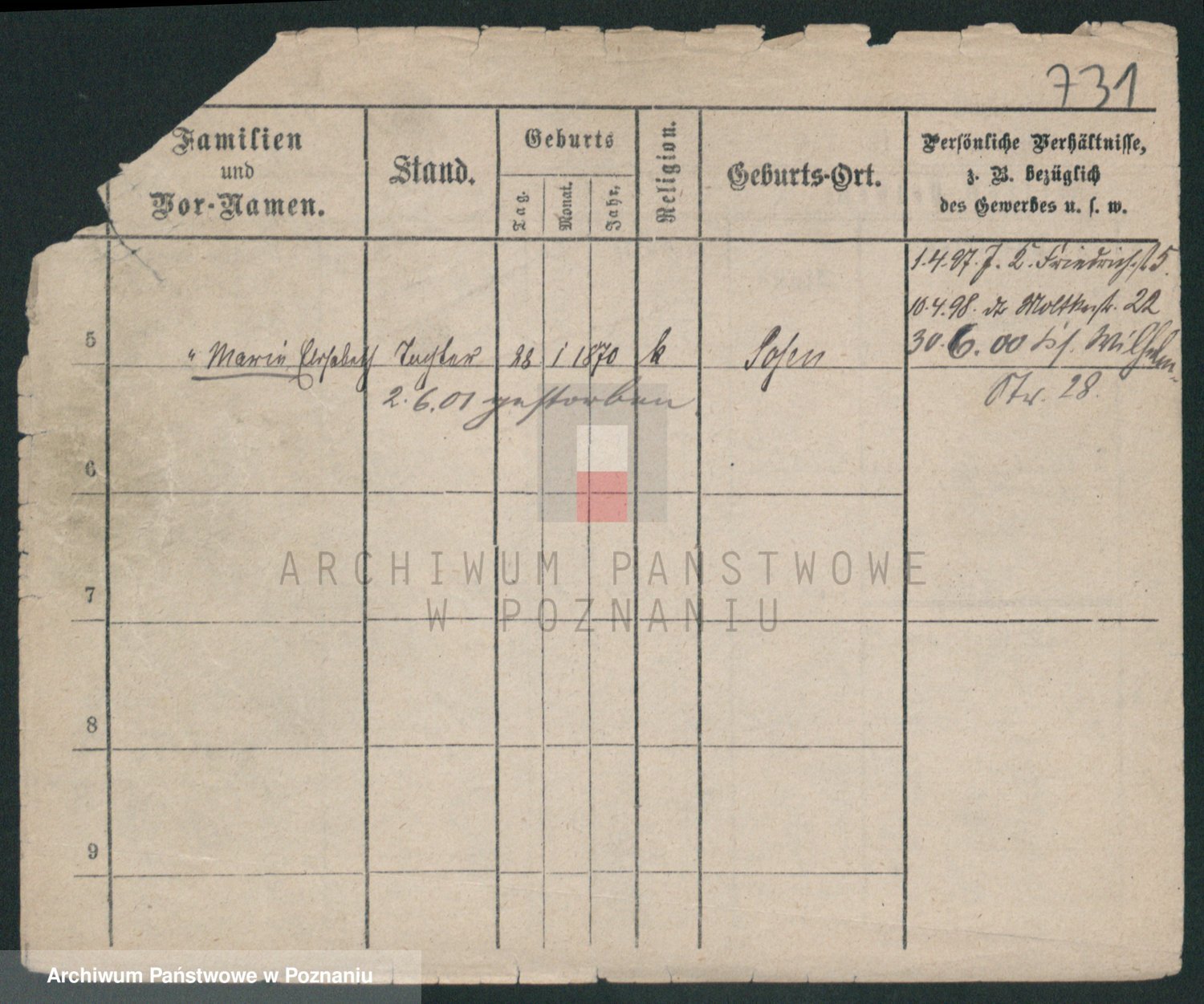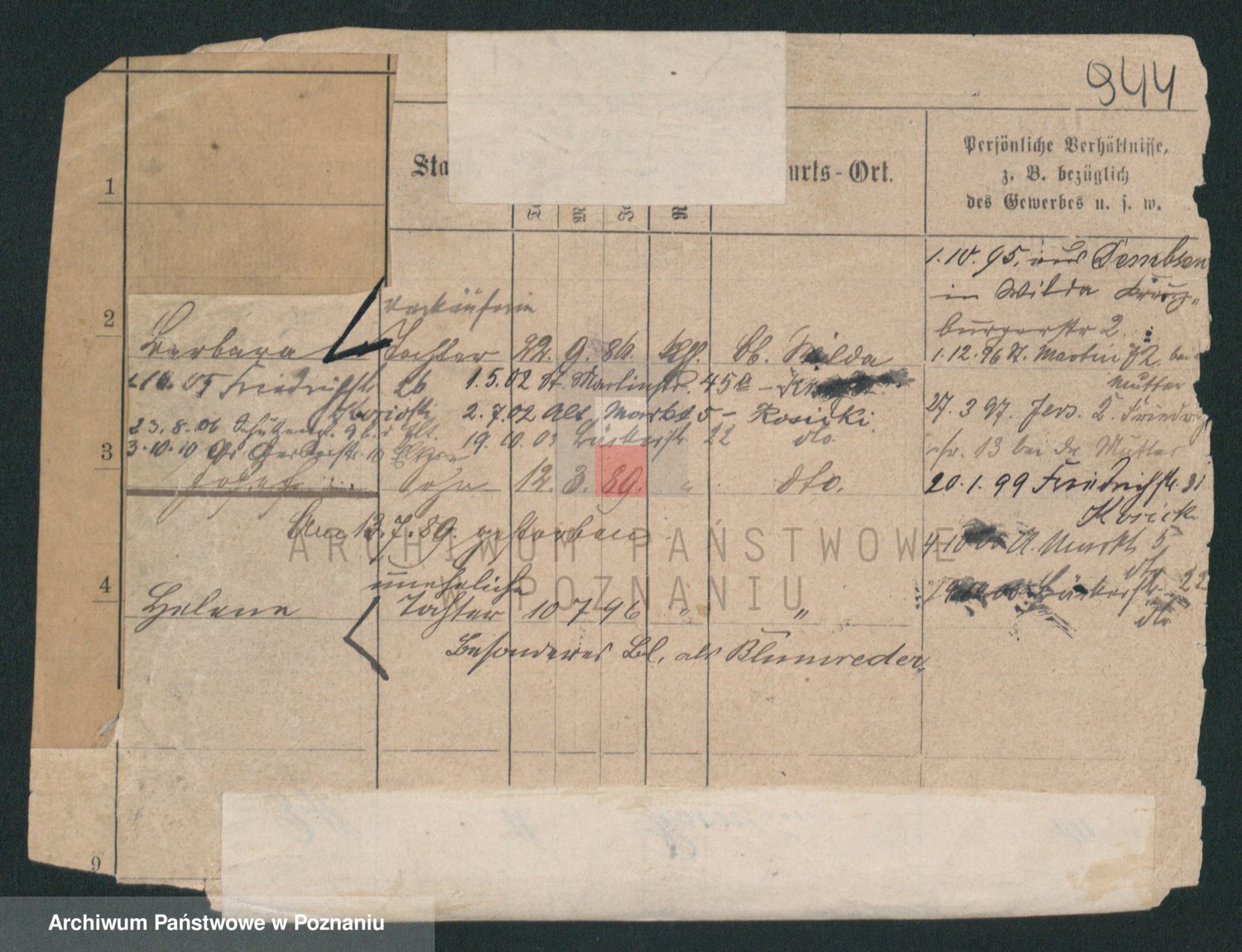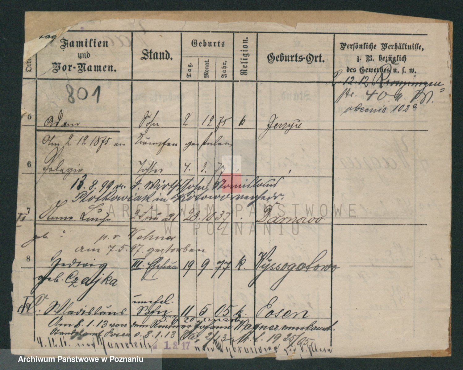 Podgląd karty osobowej dostępny jest po kliknięciu na nazwisko lub ikonkę karty. Można dokonywać powiększenia (ikony na górze) lub przechodzić między kolejnymi skanami (strzałki po bokach).