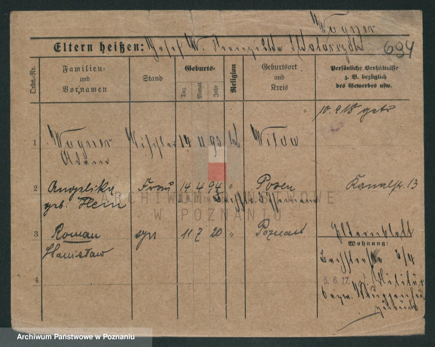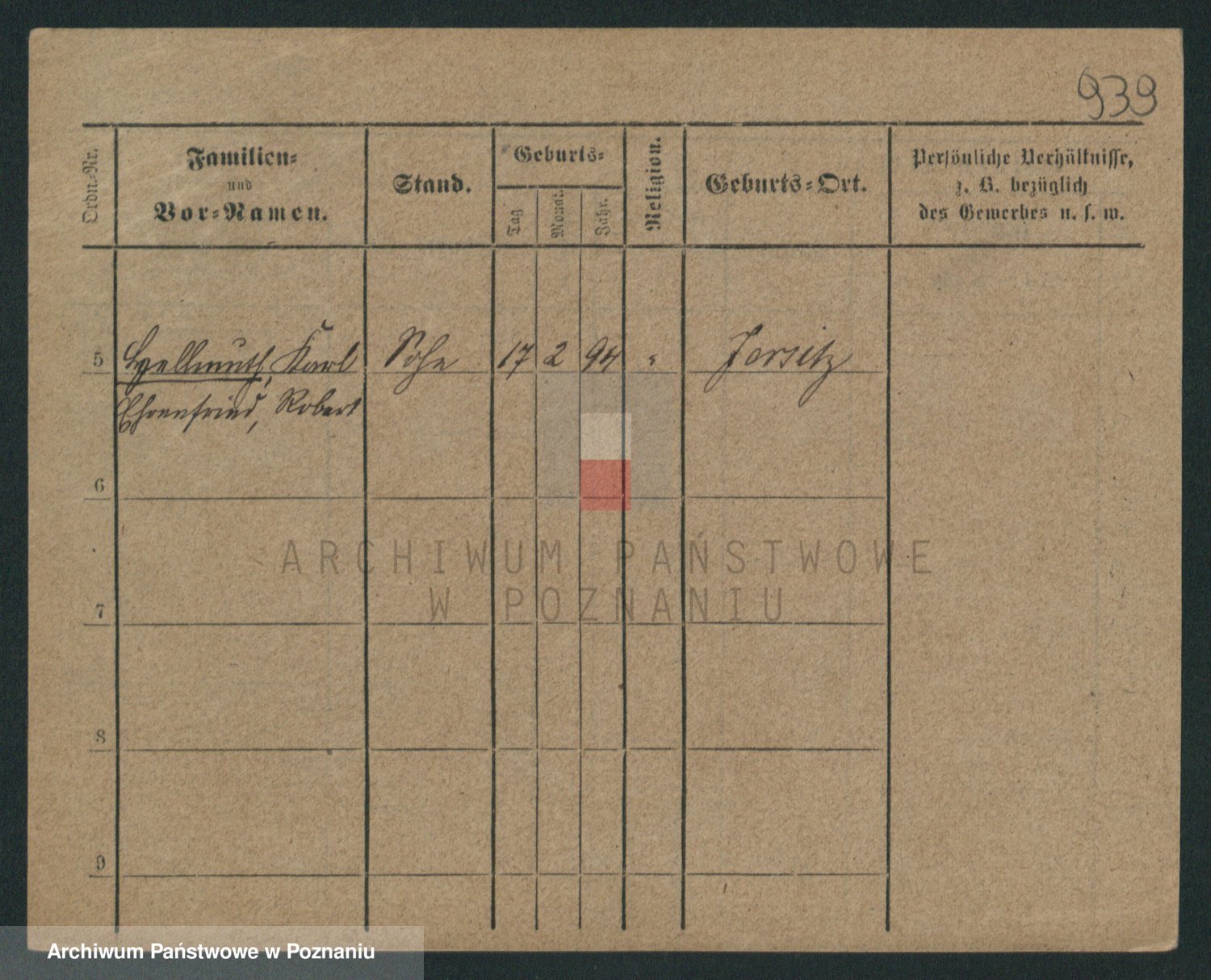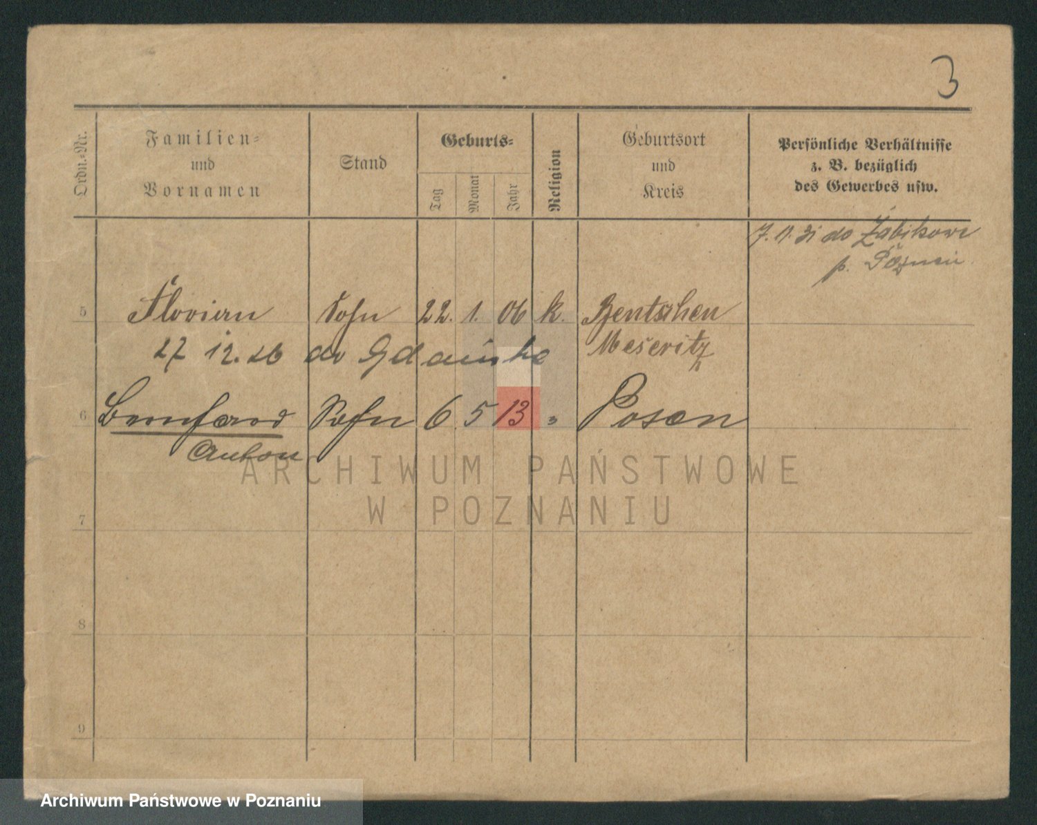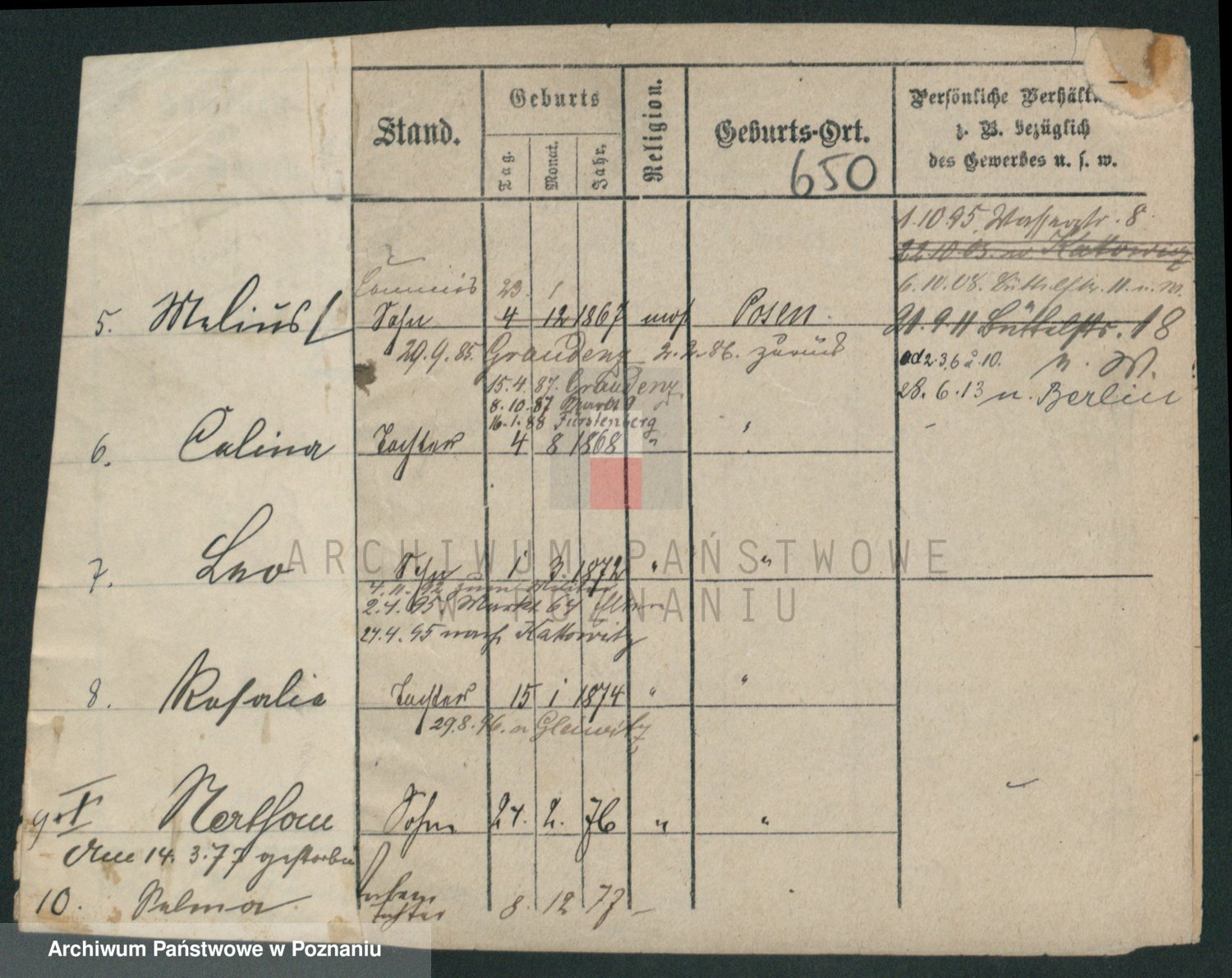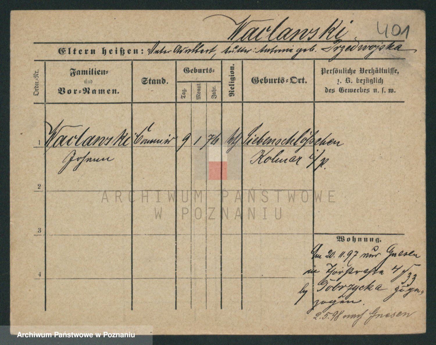 Podgląd karty osobowej dostępny jest po kliknięciu na nazwisko lub ikonkę karty. Można dokonywać powiększenia (ikony na górze) lub przechodzić między kolejnymi skanami (strzałki po bokach).