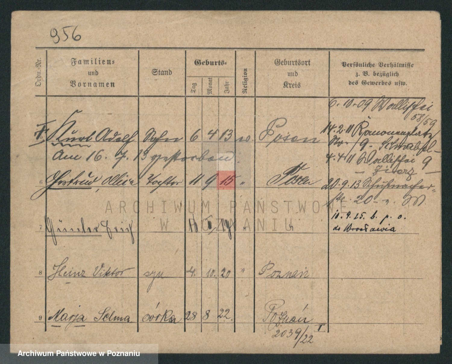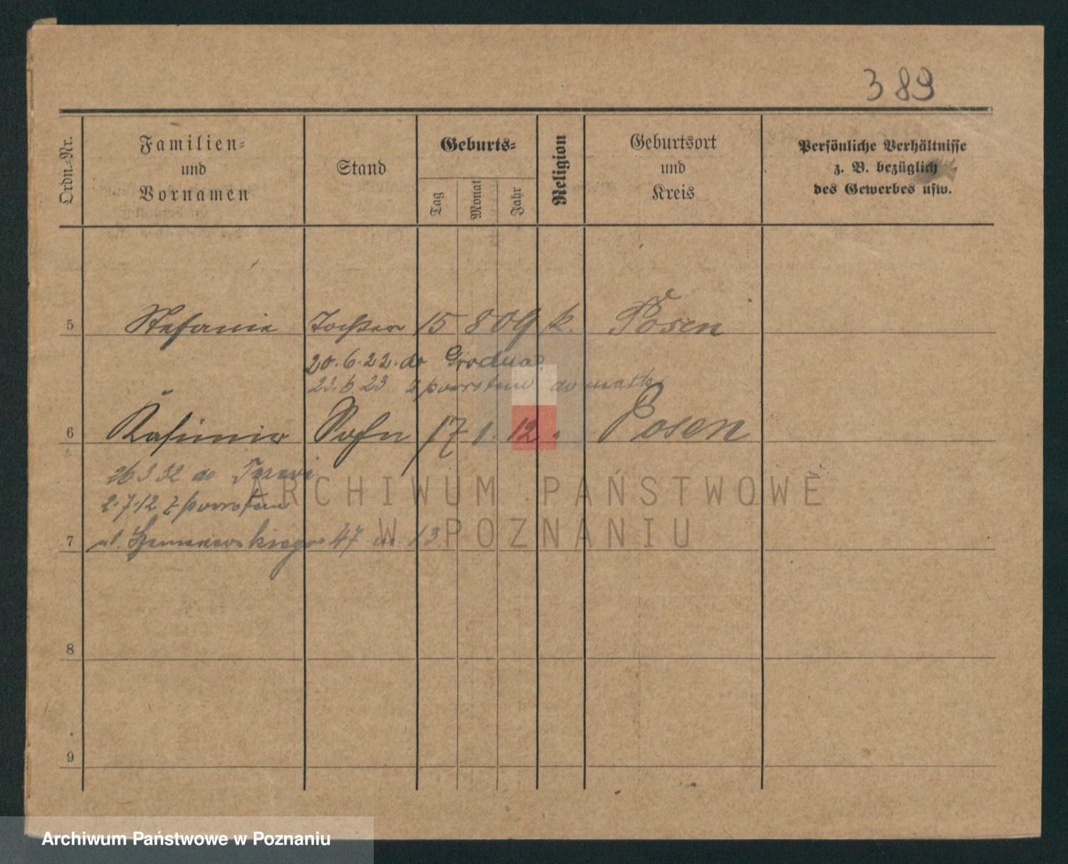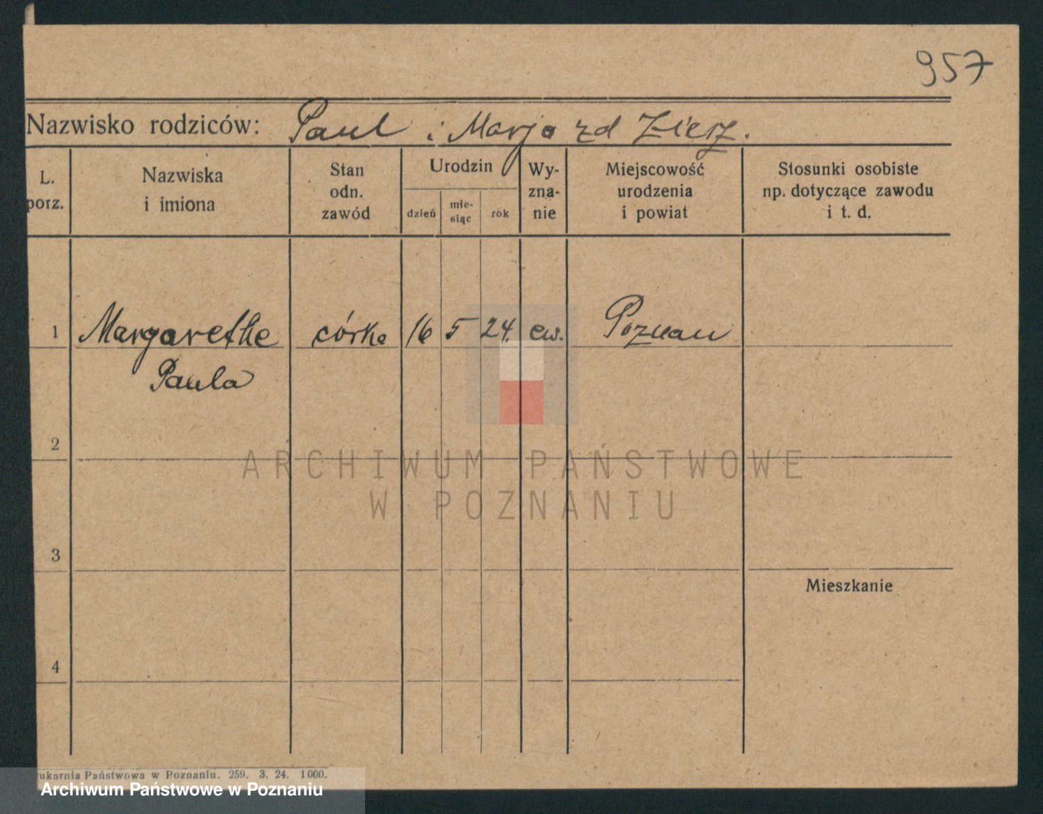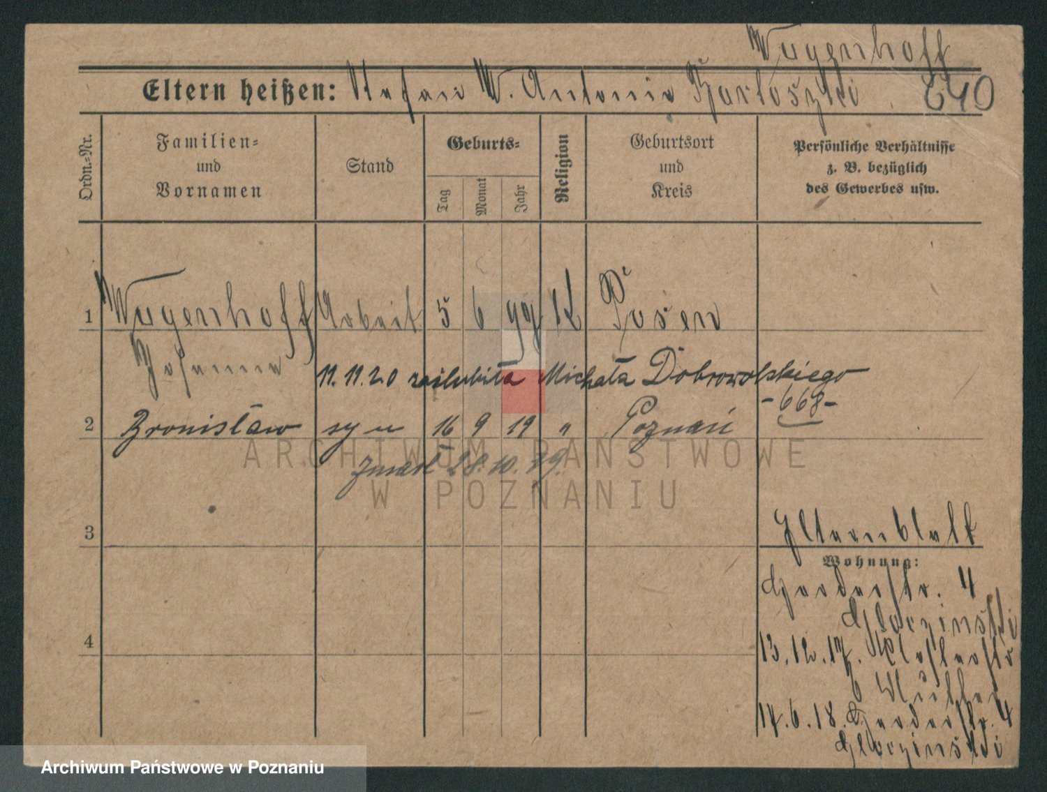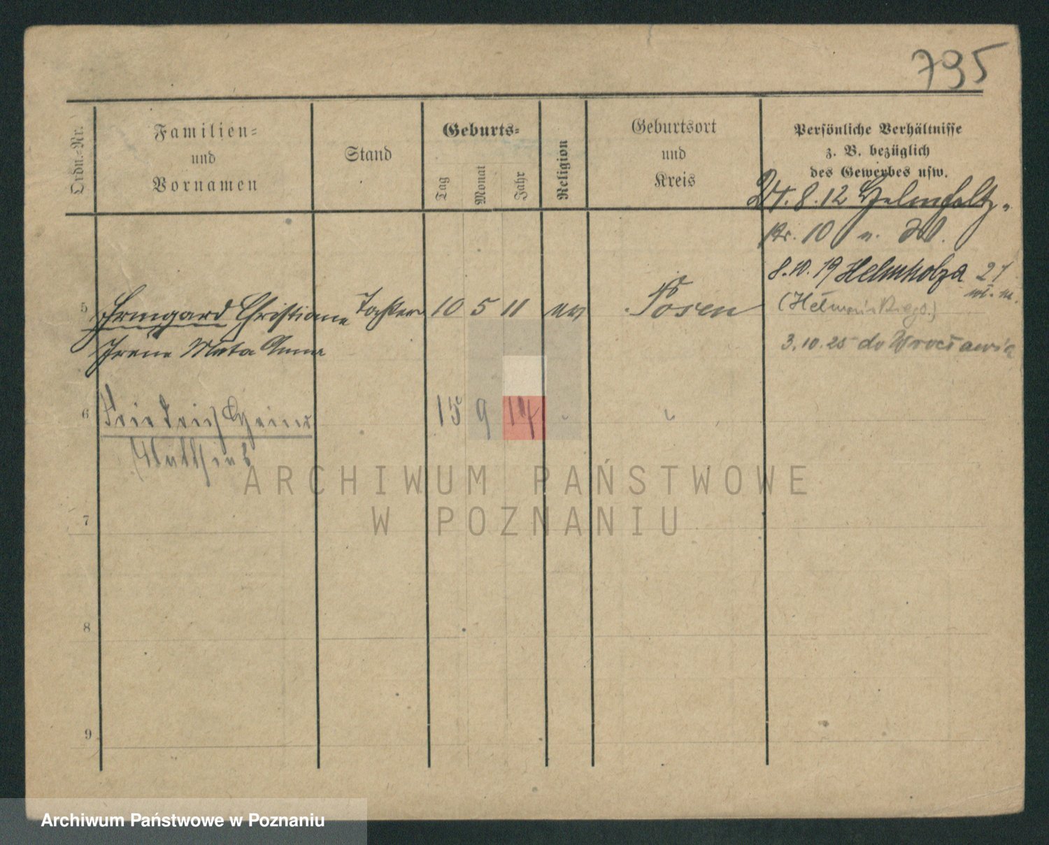 Podgląd karty osobowej dostępny jest po kliknięciu na nazwisko lub ikonkę karty. Można dokonywać powiększenia (ikony na górze) lub przechodzić między kolejnymi skanami (strzałki po bokach).