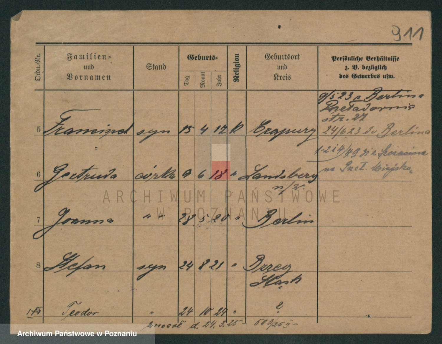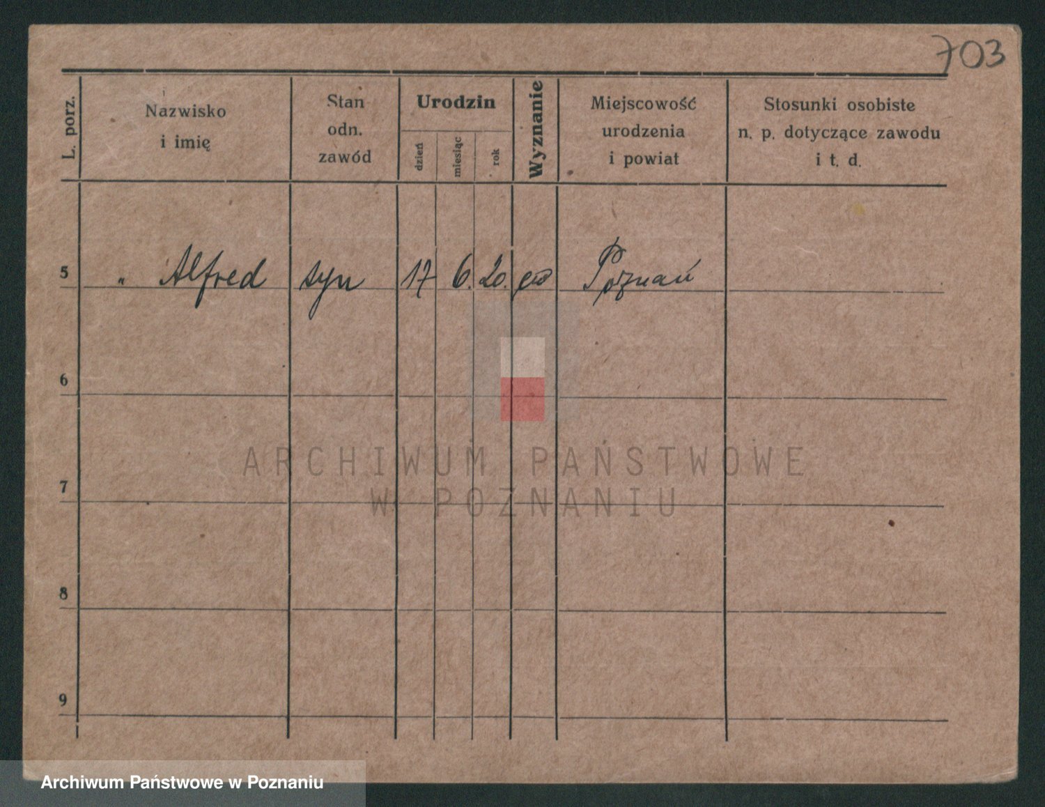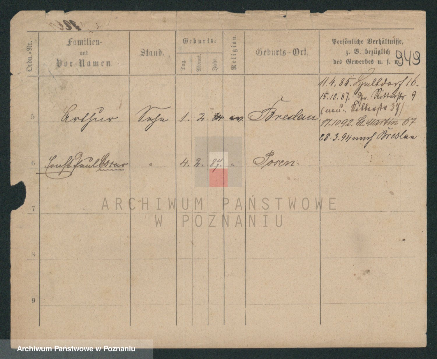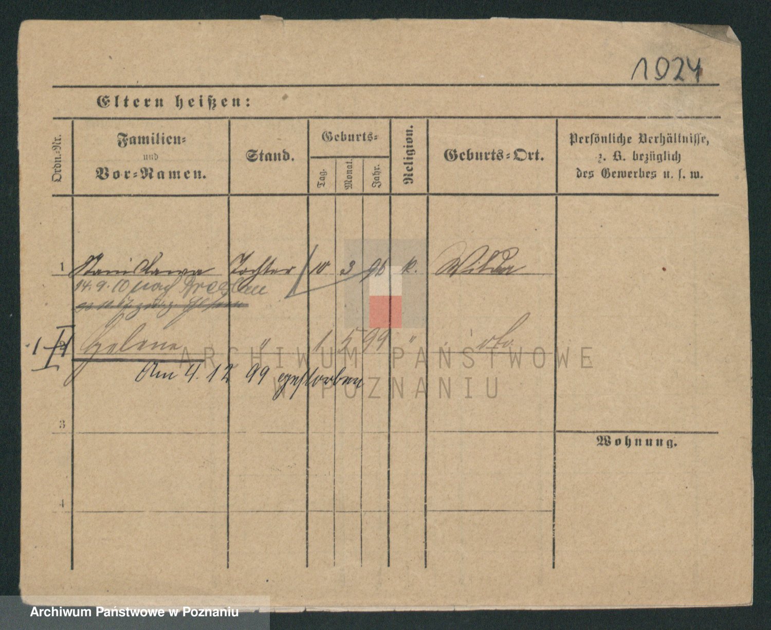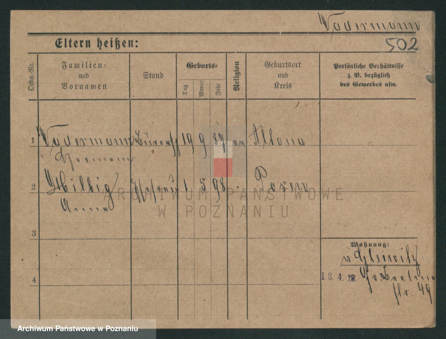 Podgląd karty osobowej dostępny jest po kliknięciu na nazwisko lub ikonkę karty. Można dokonywać powiększenia (ikony na górze) lub przechodzić między kolejnymi skanami (strzałki po bokach).