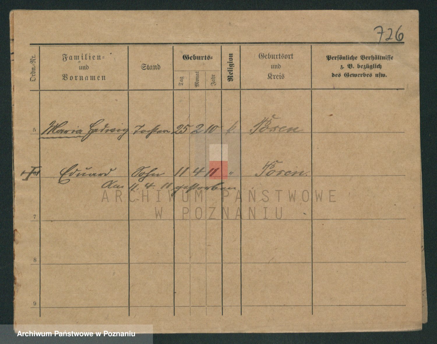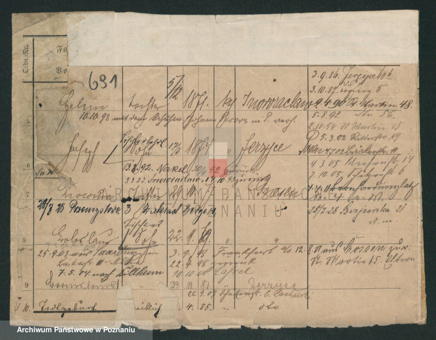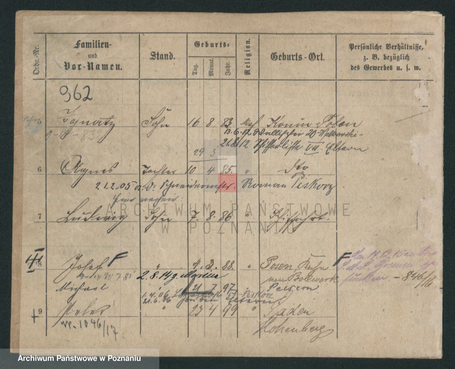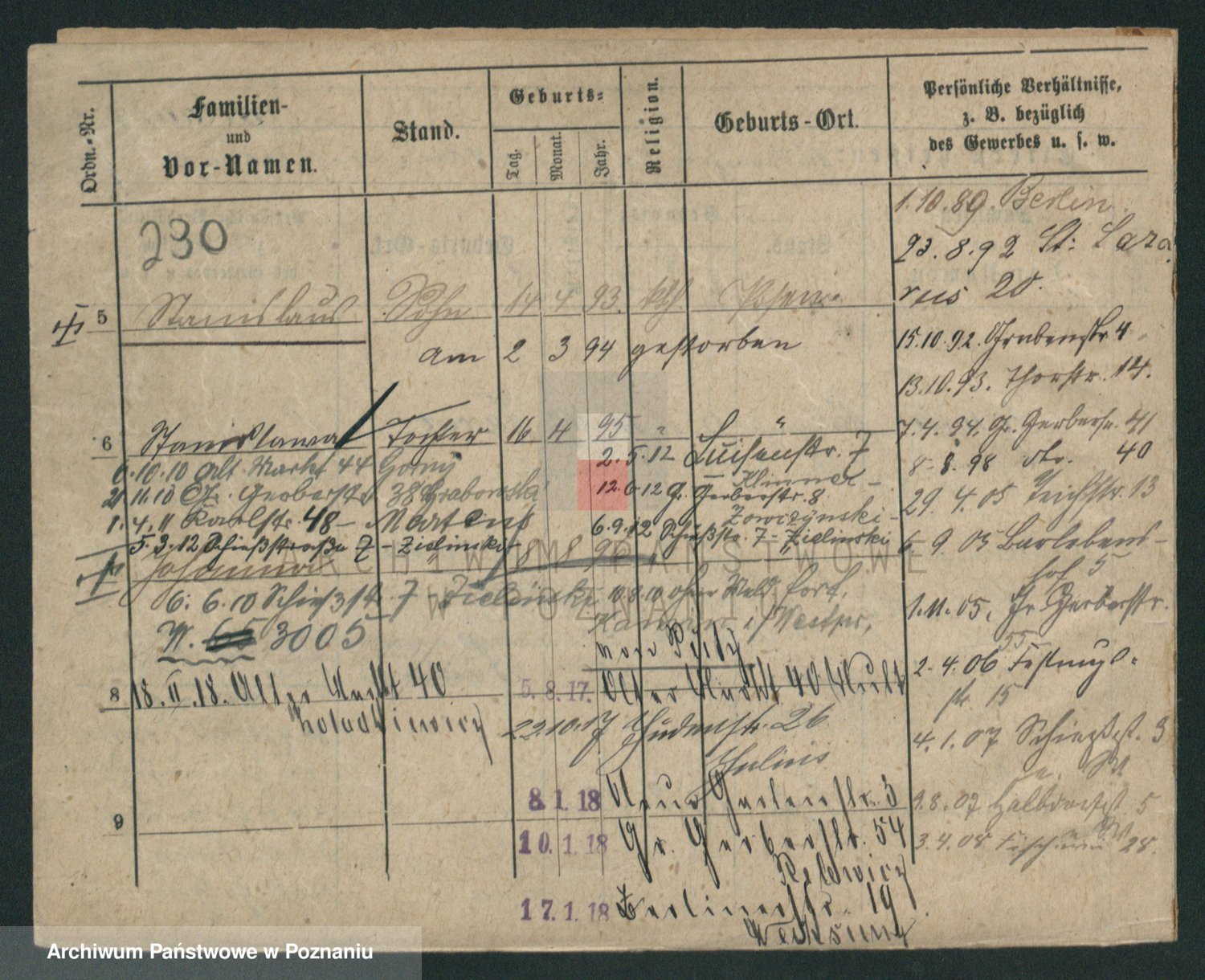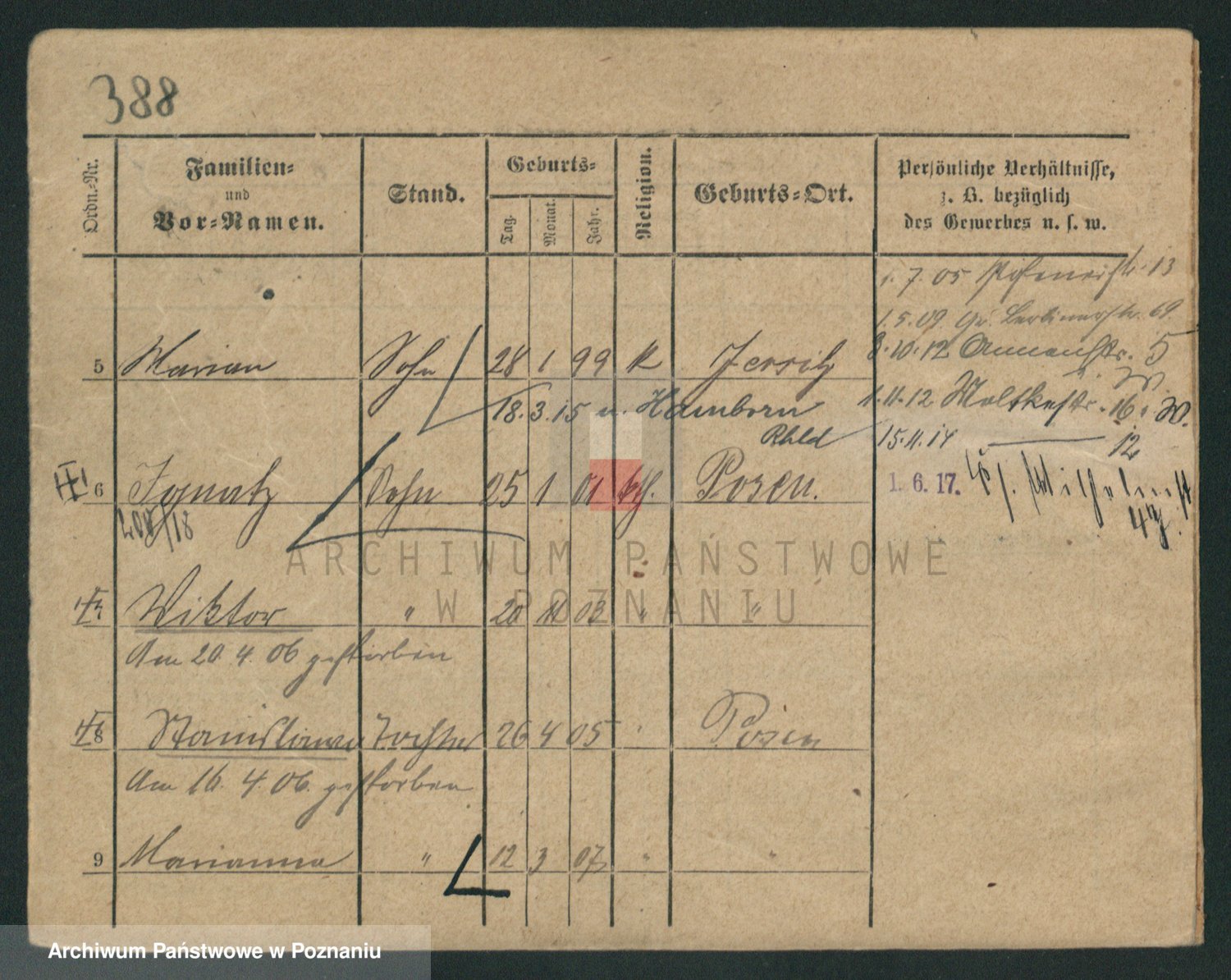 Podgląd karty osobowej dostępny jest po kliknięciu na nazwisko lub ikonkę karty. Można dokonywać powiększenia (ikony na górze) lub przechodzić między kolejnymi skanami (strzałki po bokach).
