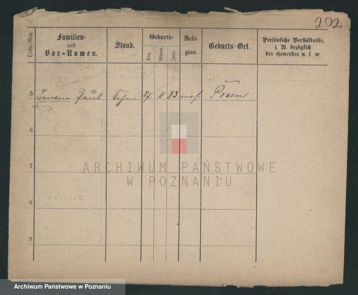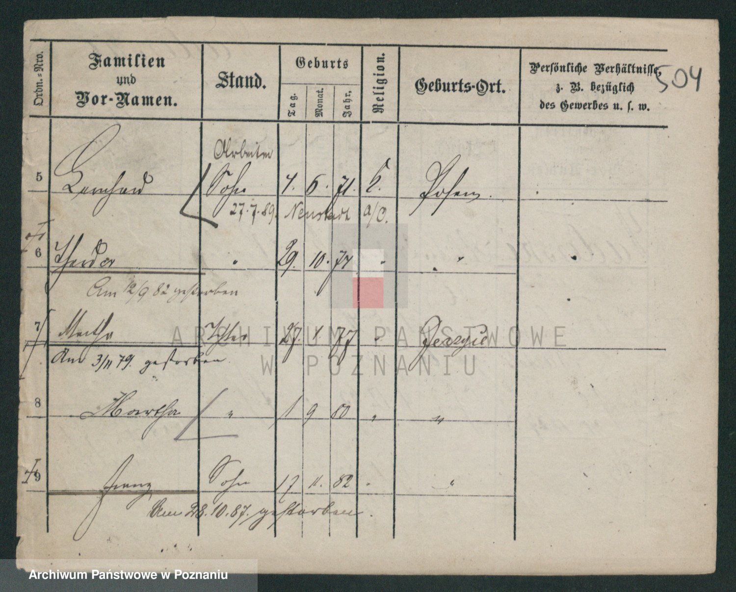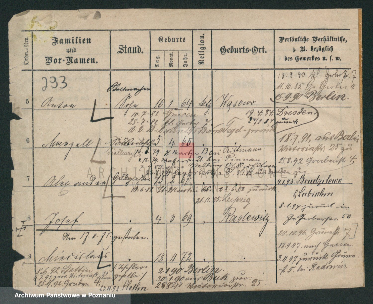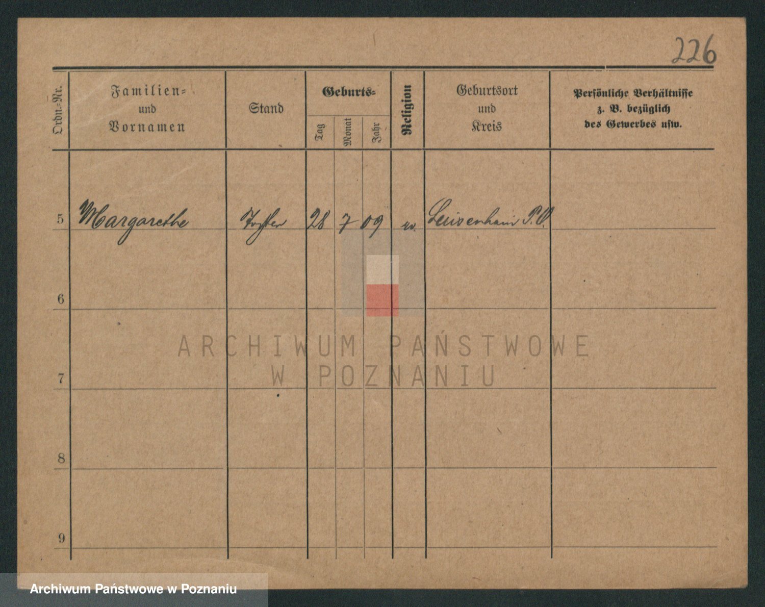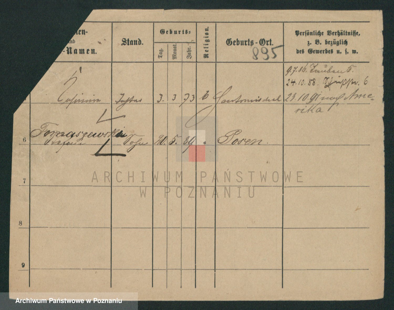 Podgląd karty osobowej dostępny jest po kliknięciu na nazwisko lub ikonkę karty. Można dokonywać powiększenia (ikony na górze) lub przechodzić między kolejnymi skanami (strzałki po bokach).