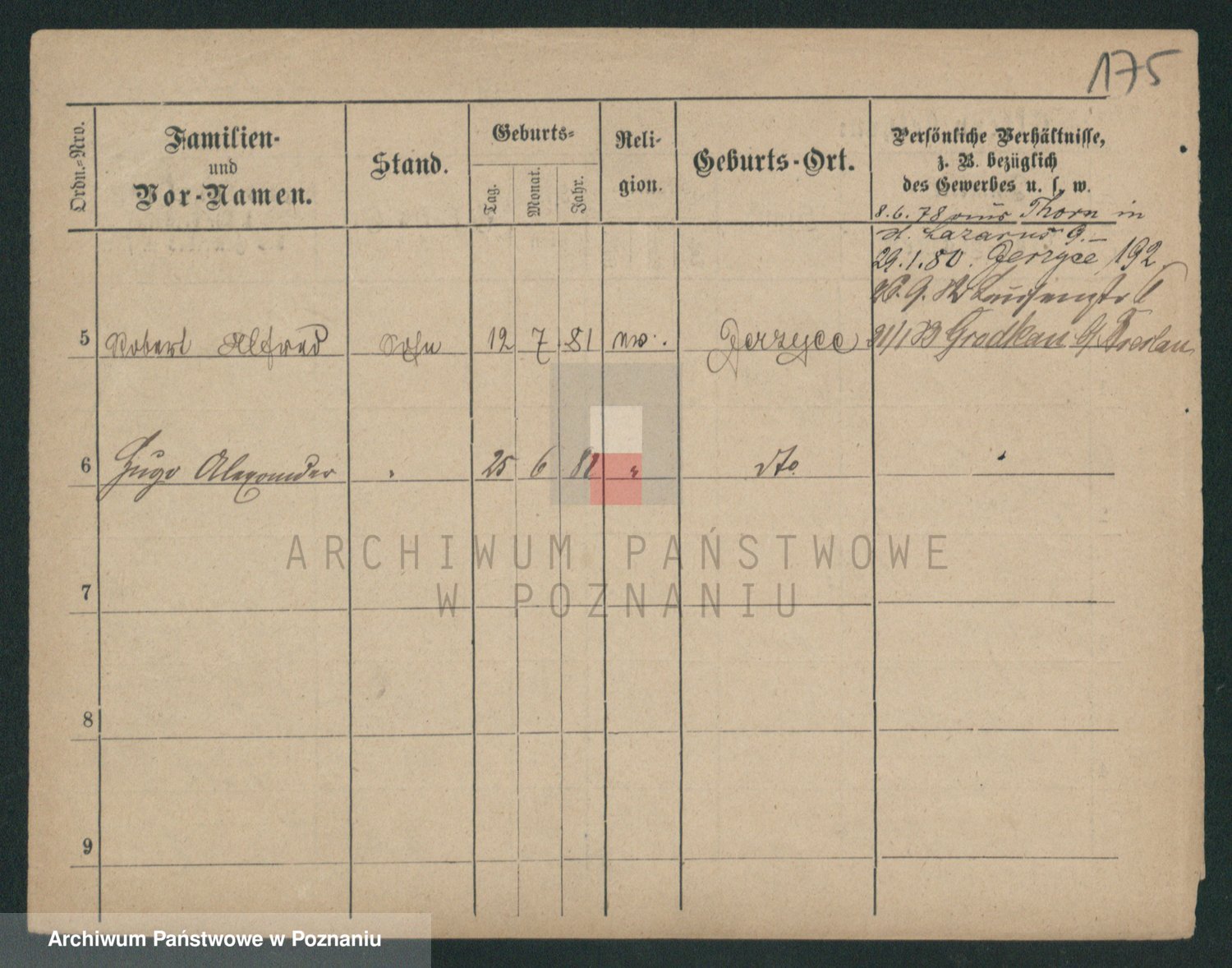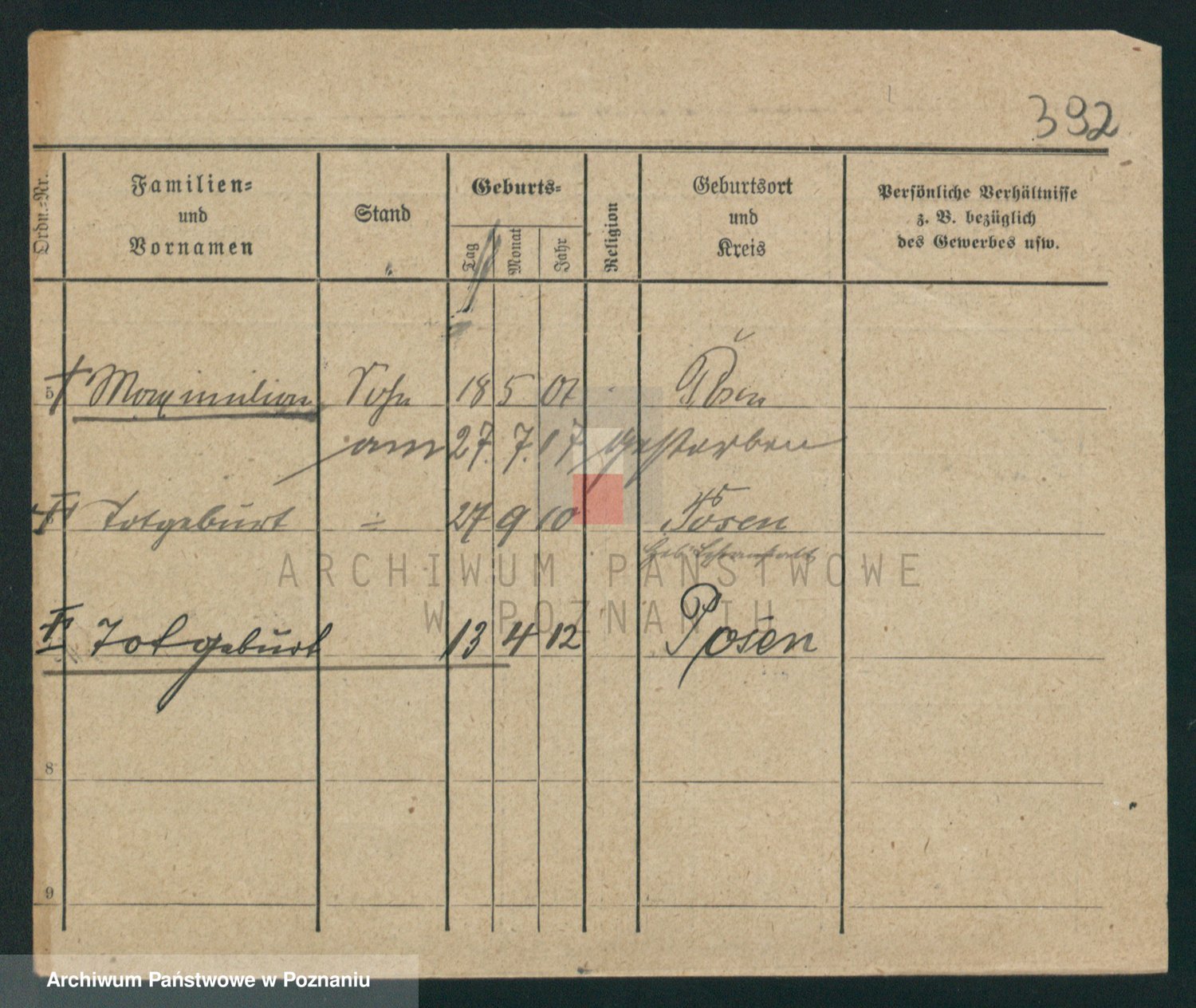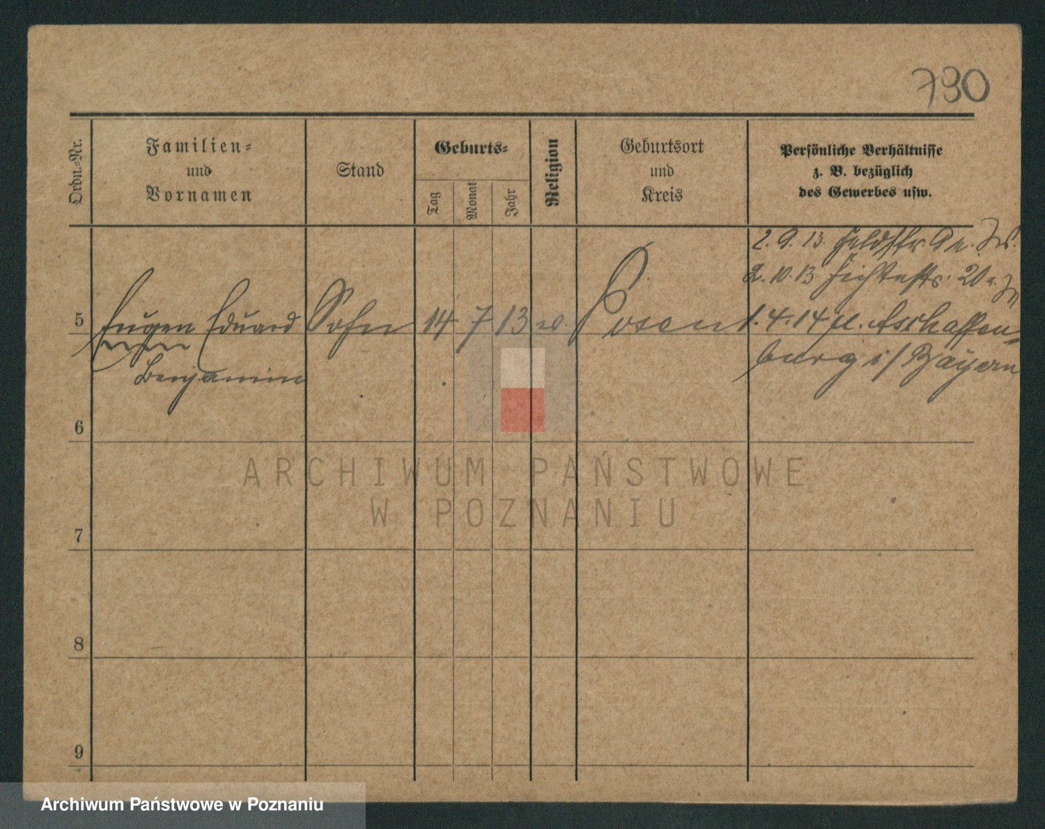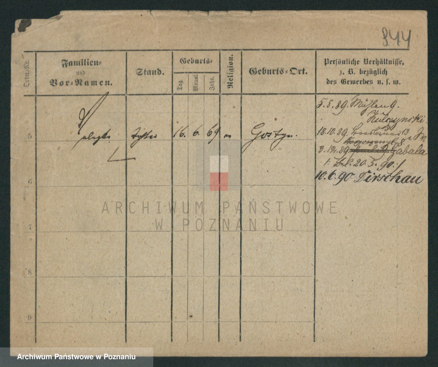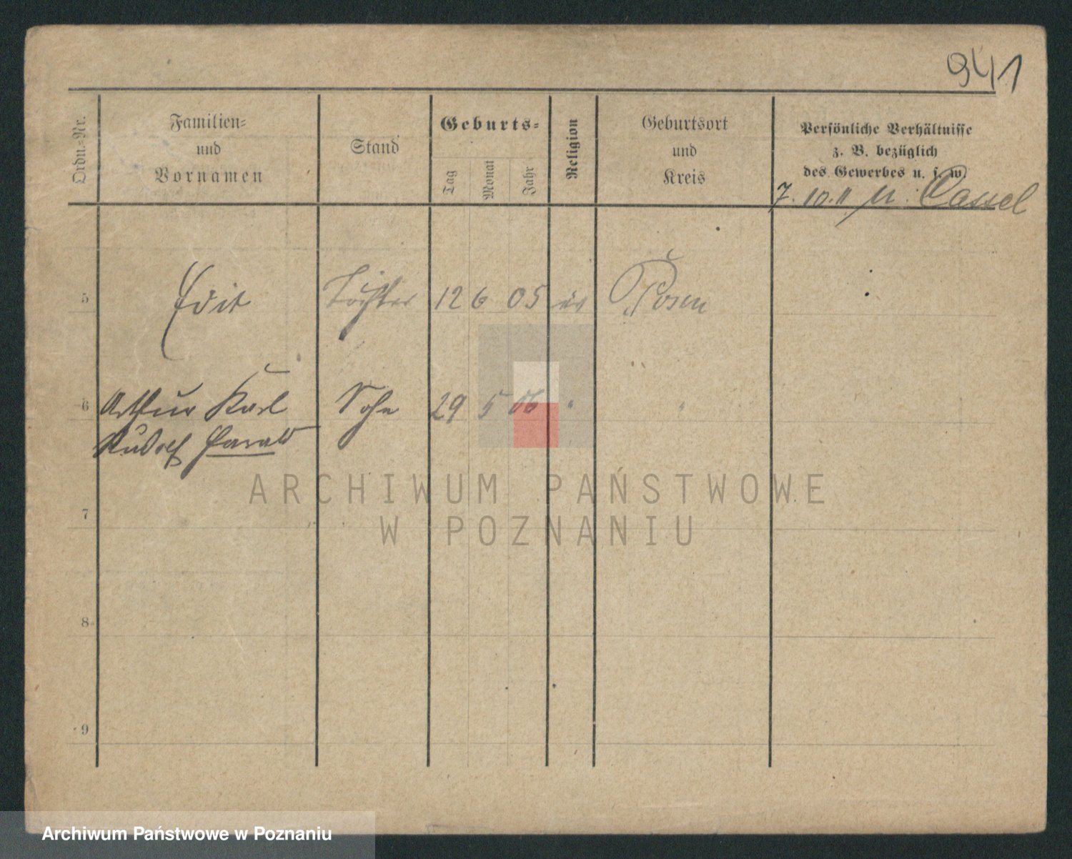 Podgląd karty osobowej dostępny jest po kliknięciu na nazwisko lub ikonkę karty. Można dokonywać powiększenia (ikony na górze) lub przechodzić między kolejnymi skanami (strzałki po bokach).
