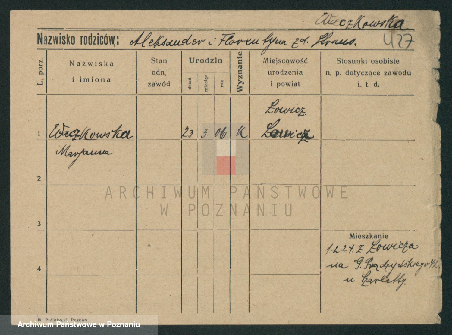 Wachowski z.d. Czerwinska, Marja