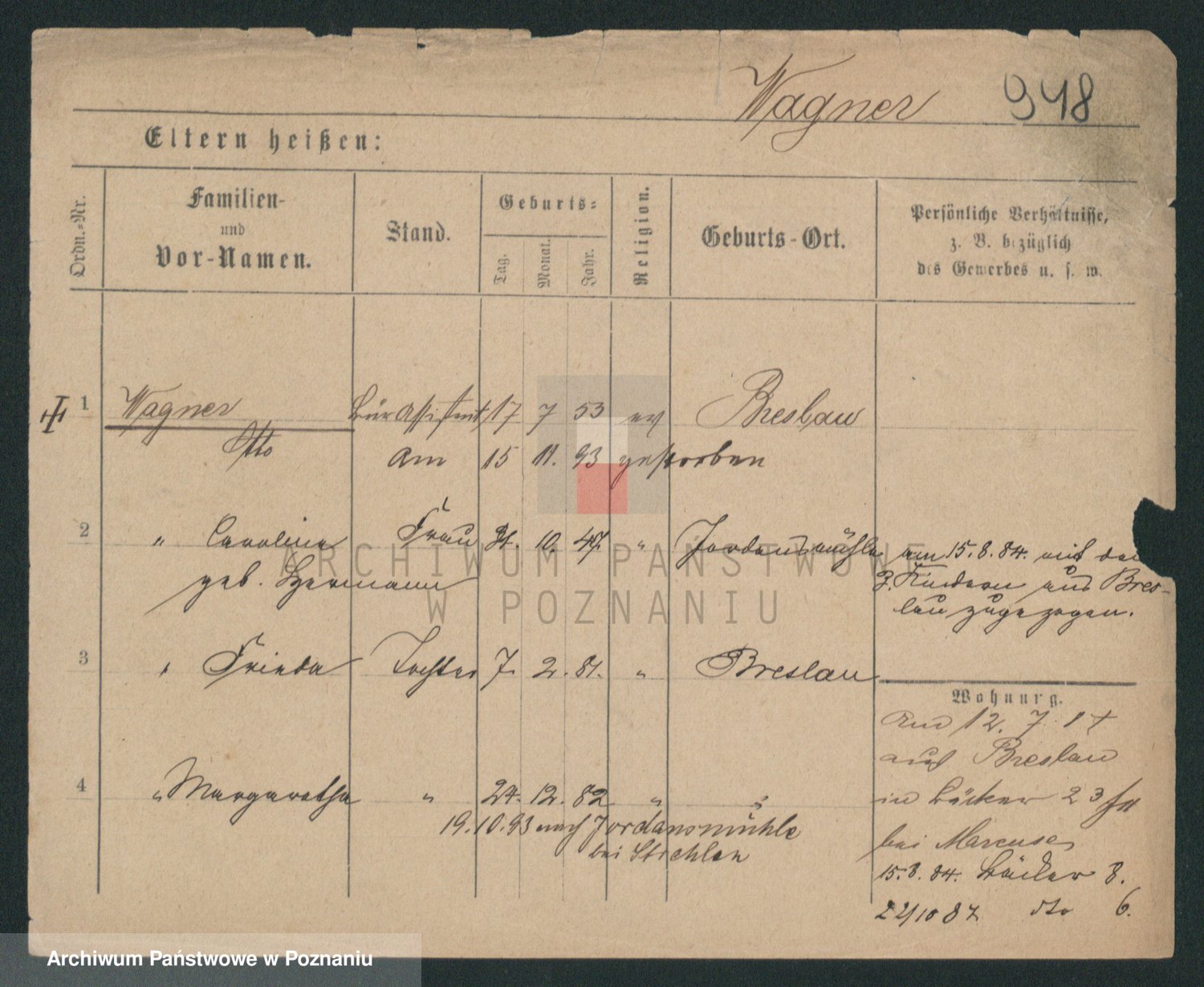 Wagner z.d. Markwitz, Pauline