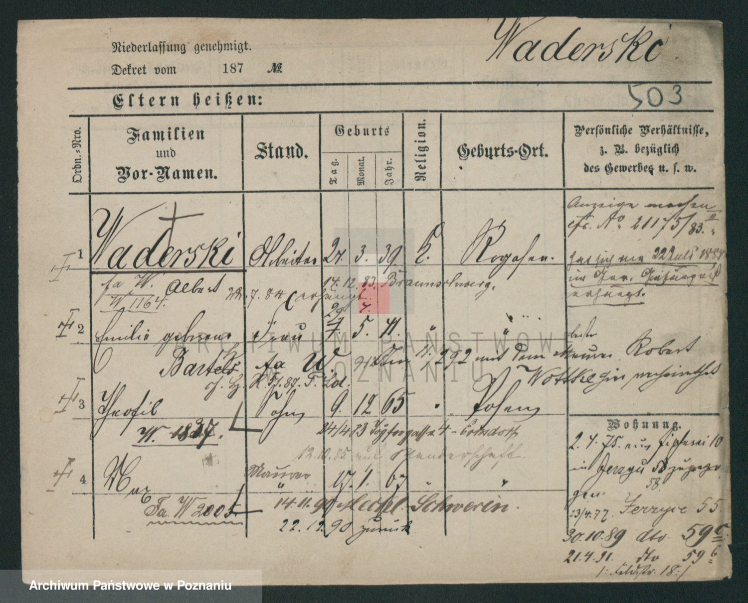 Wachowski z.d. Janek, Marie