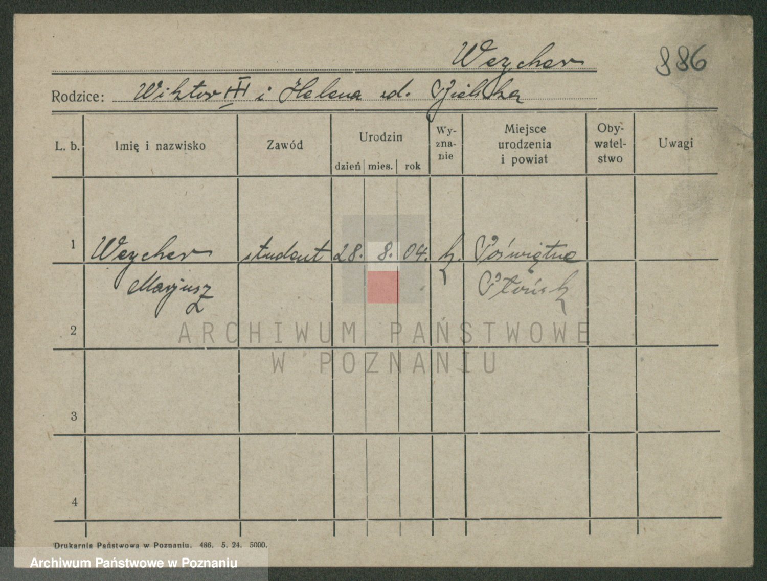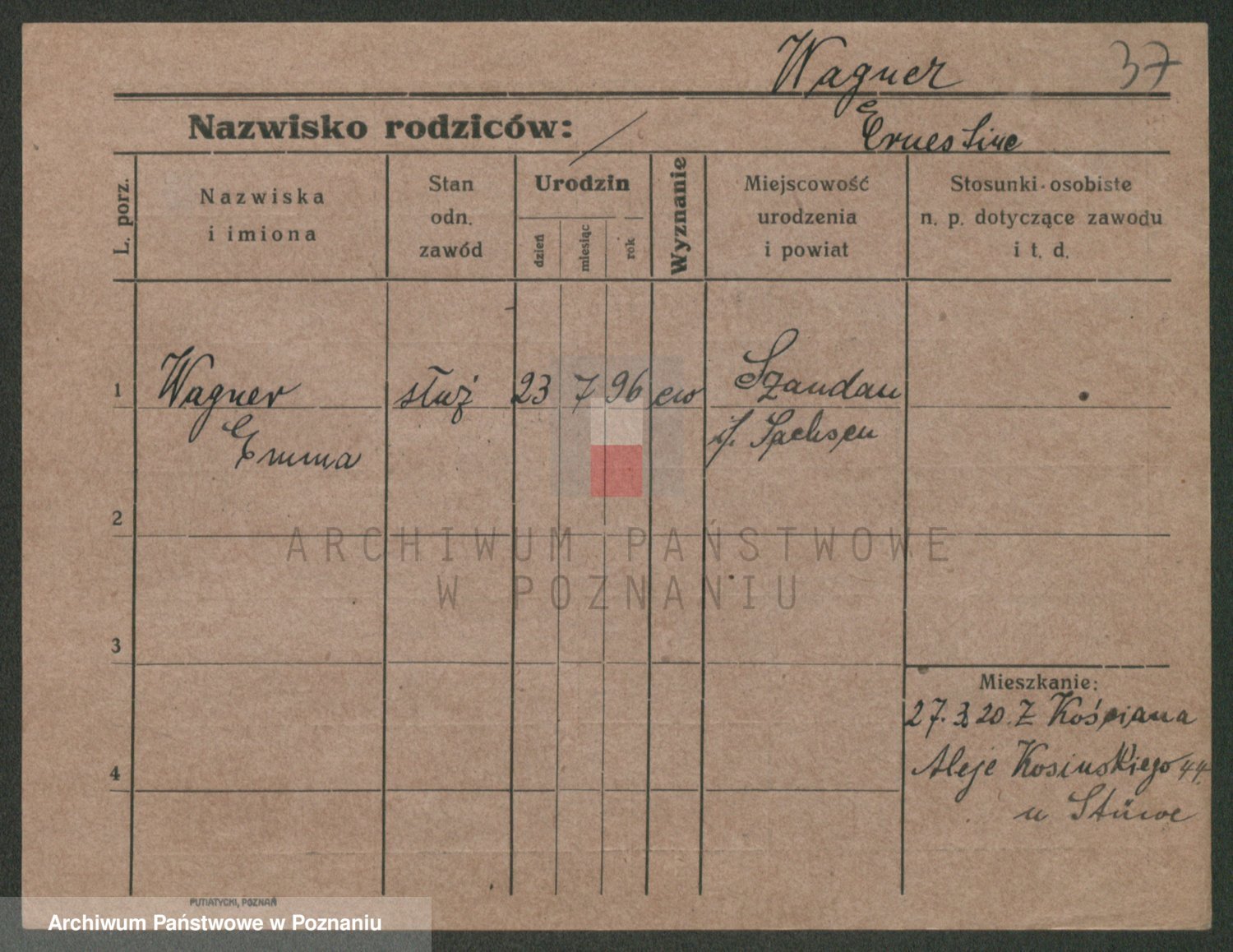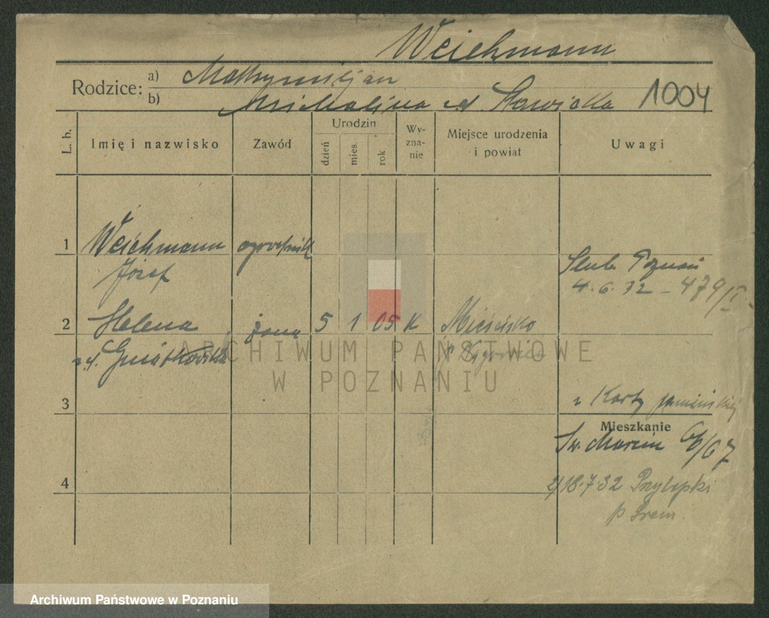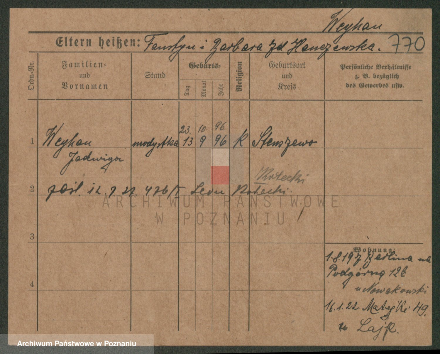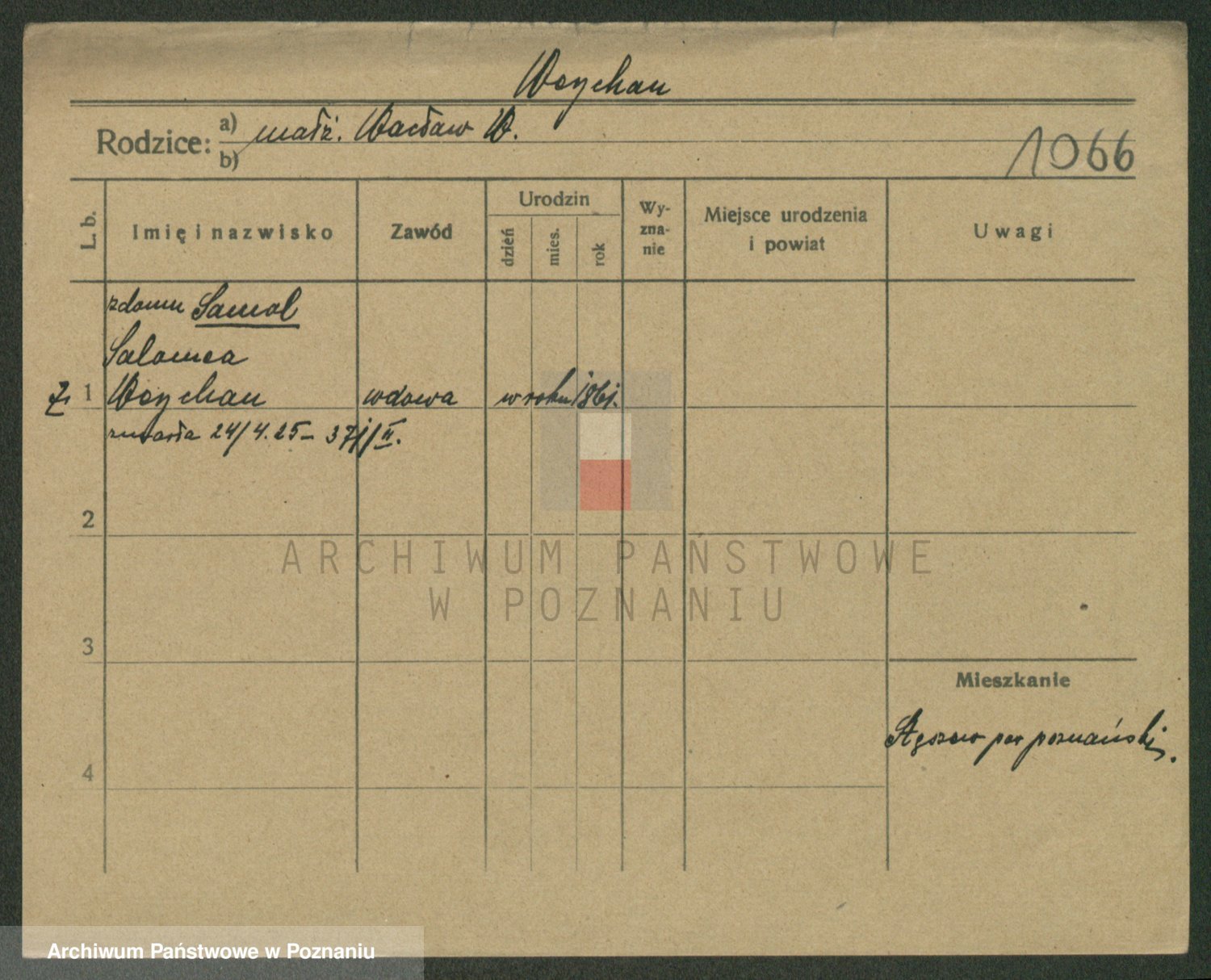Podgląd karty osobowej dostępny jest po kliknięciu na nazwisko lub ikonkę karty. Można dokonywać powiększenia (ikony na górze) lub przechodzić między kolejnymi skanami (strzałki po bokach).