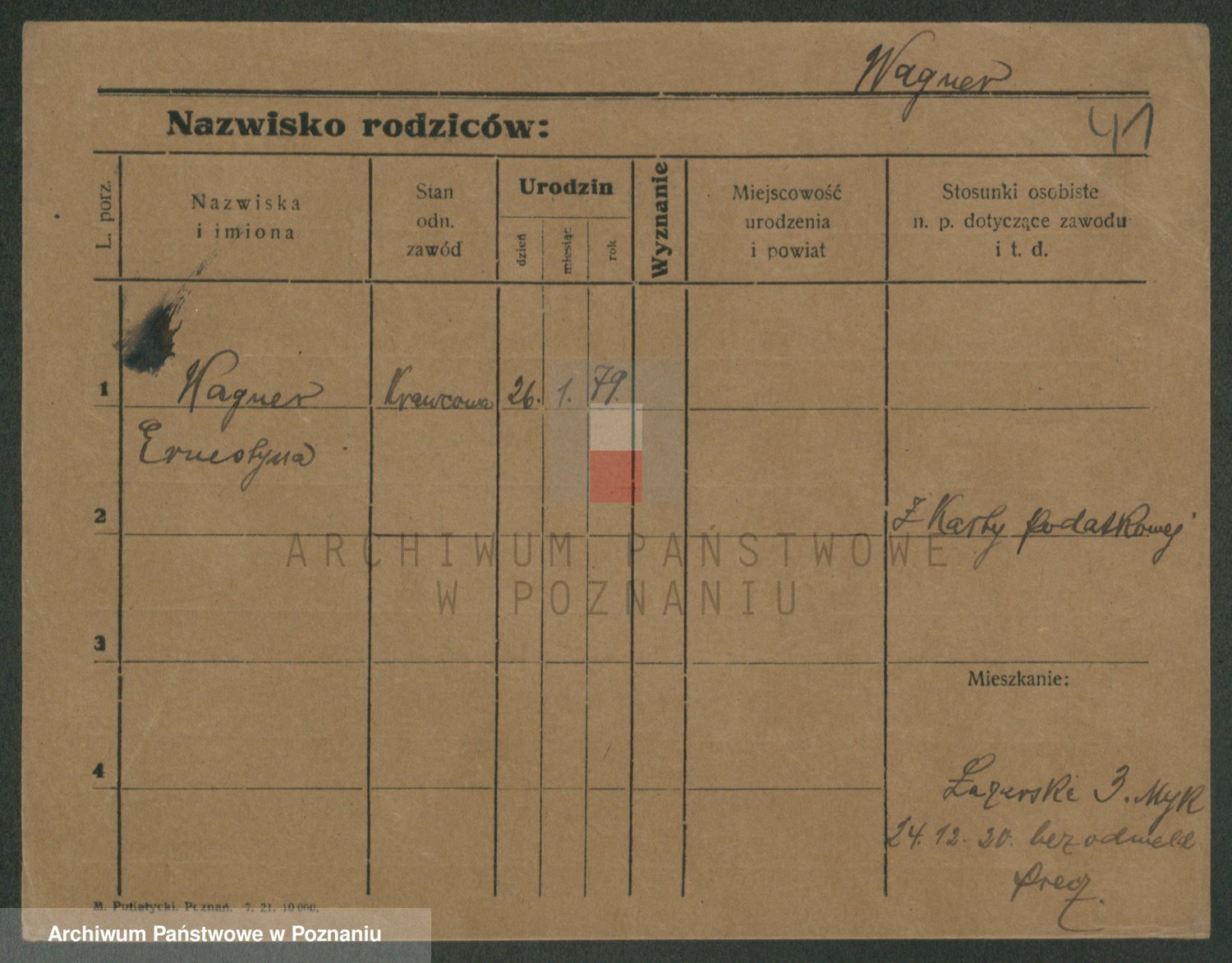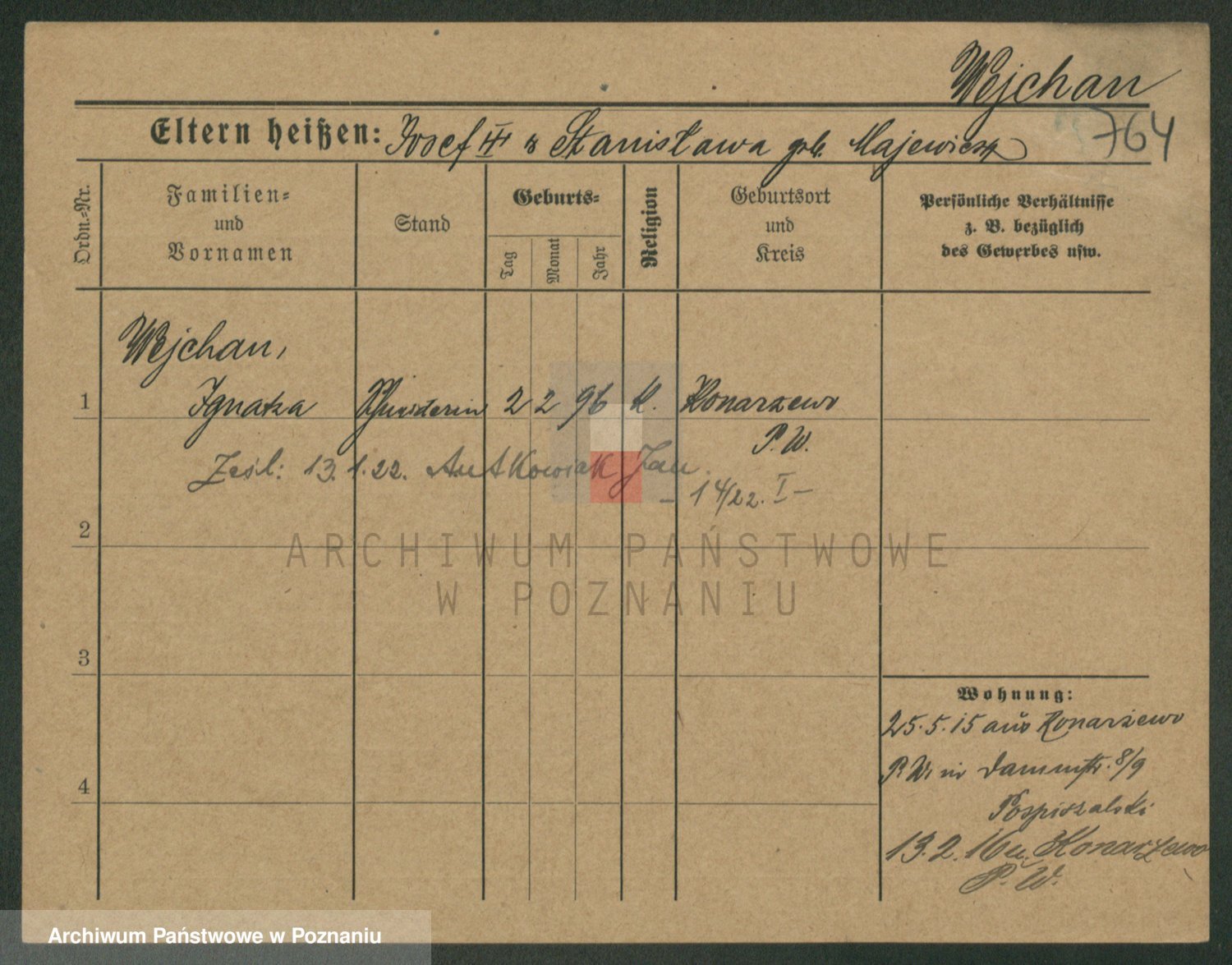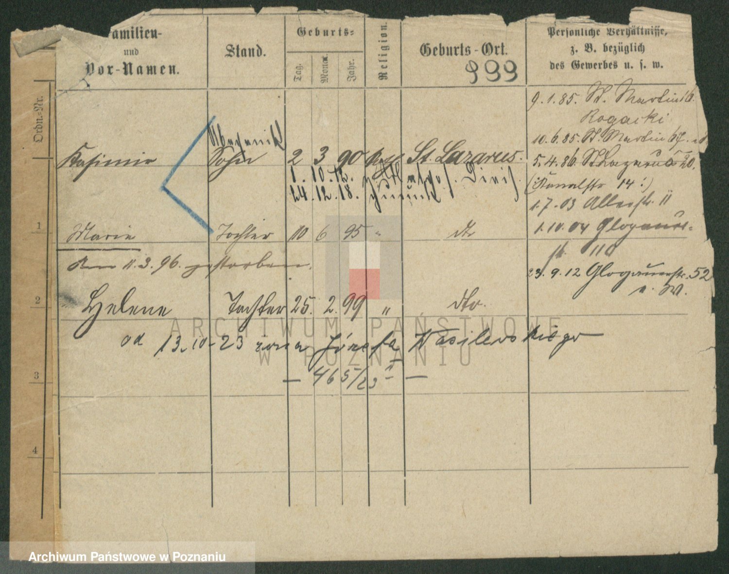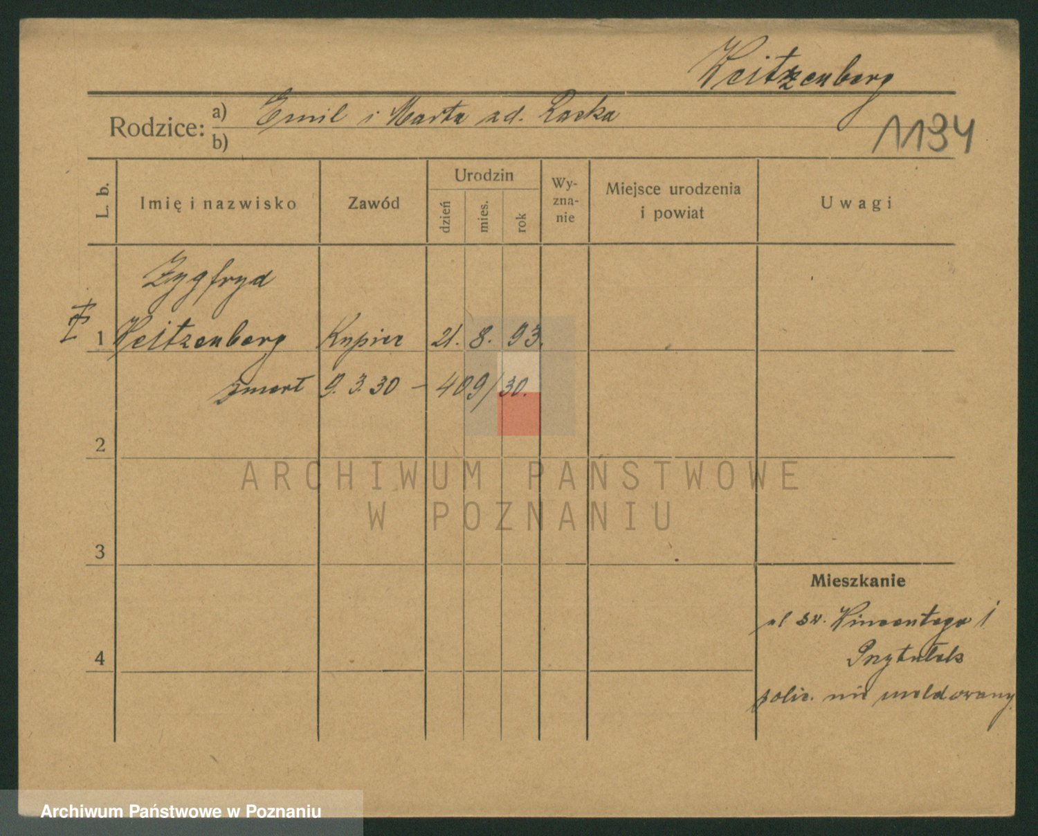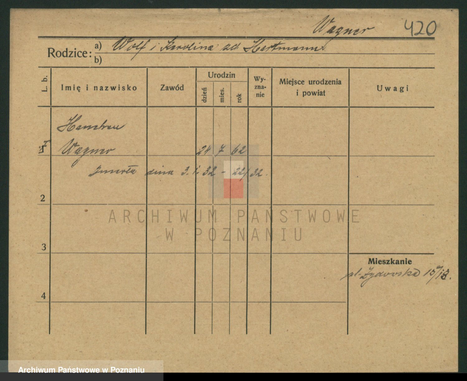 Podgląd karty osobowej dostępny jest po kliknięciu na nazwisko lub ikonkę karty. Można dokonywać powiększenia (ikony na górze) lub przechodzić między kolejnymi skanami (strzałki po bokach).