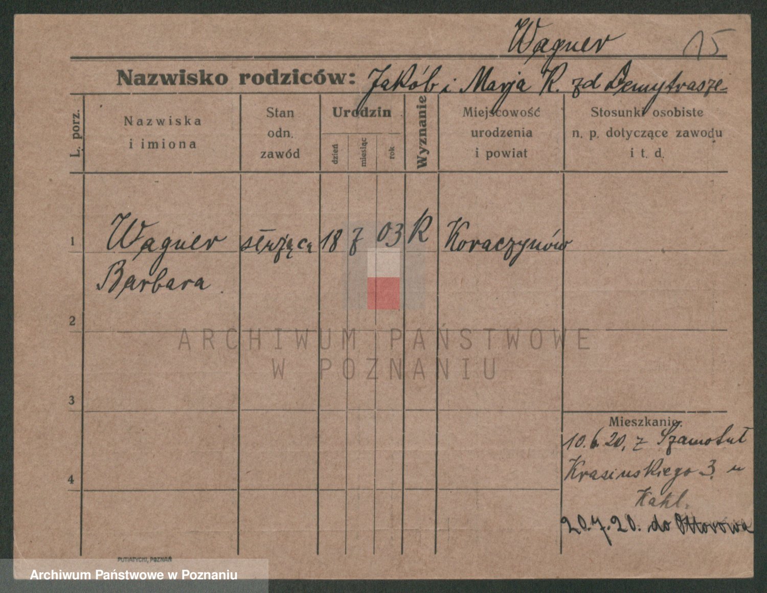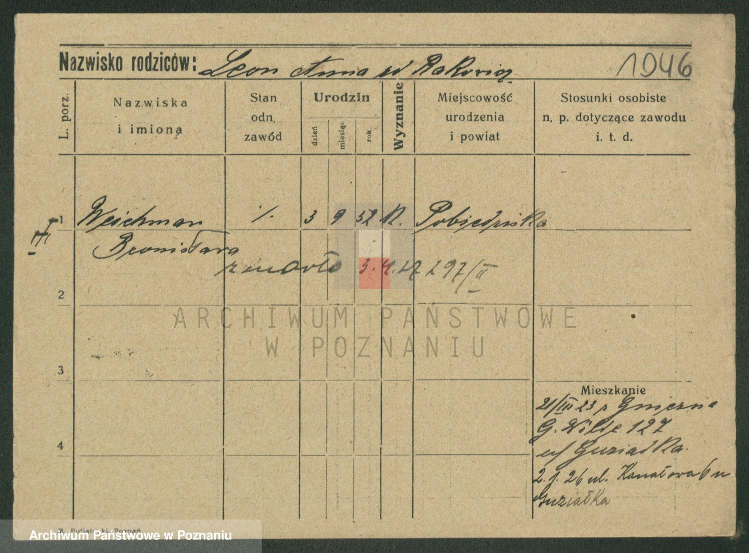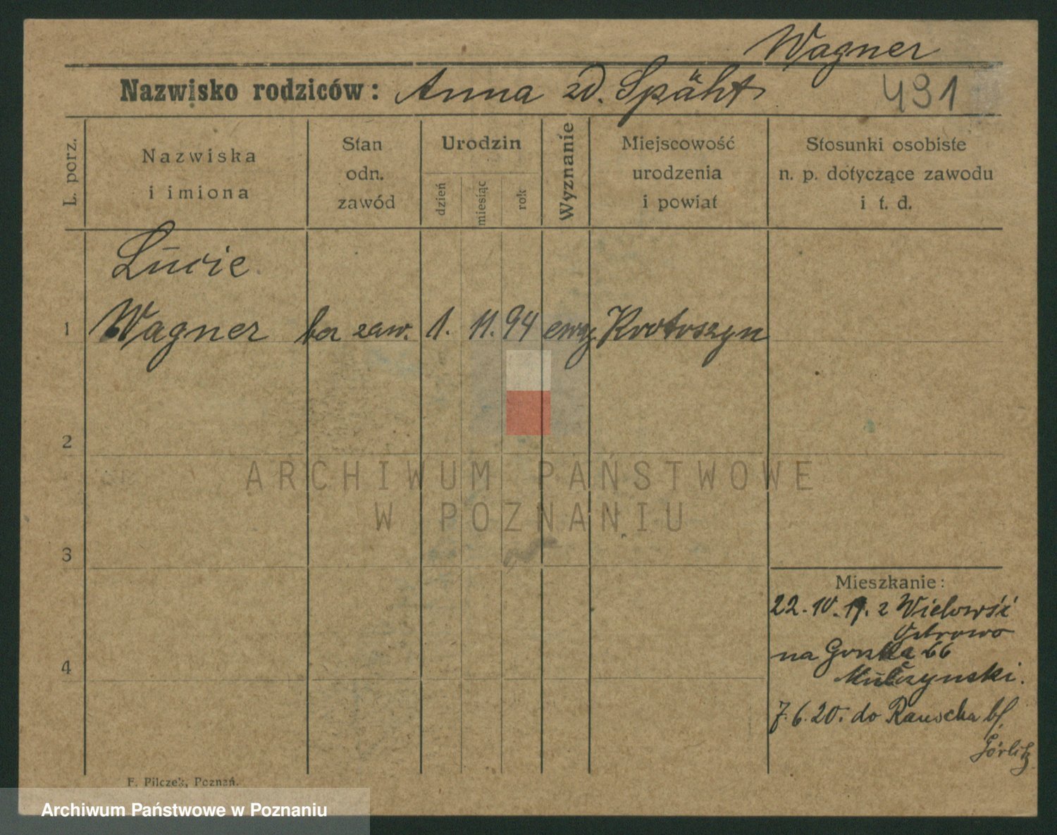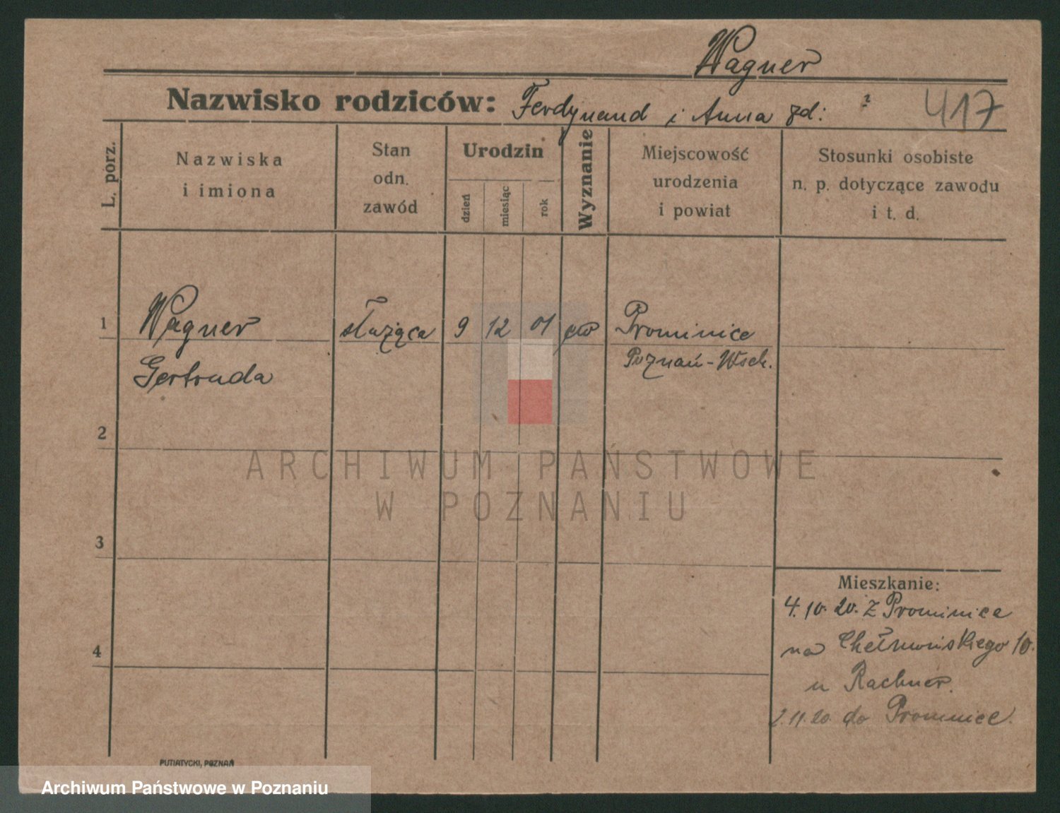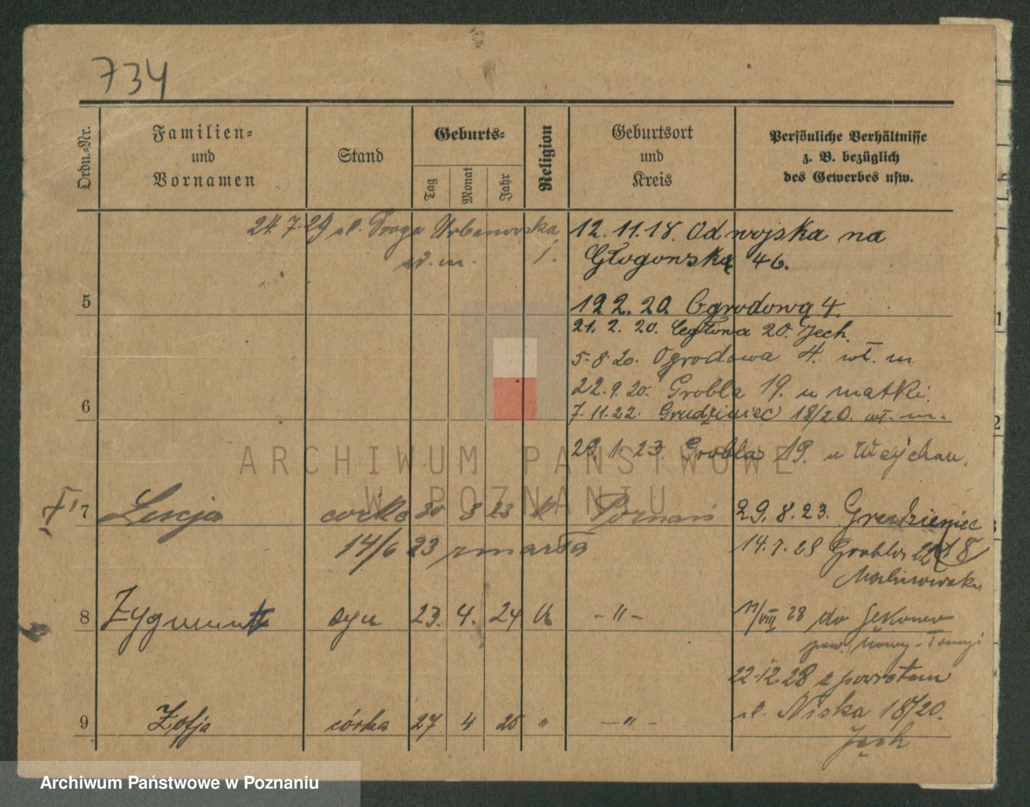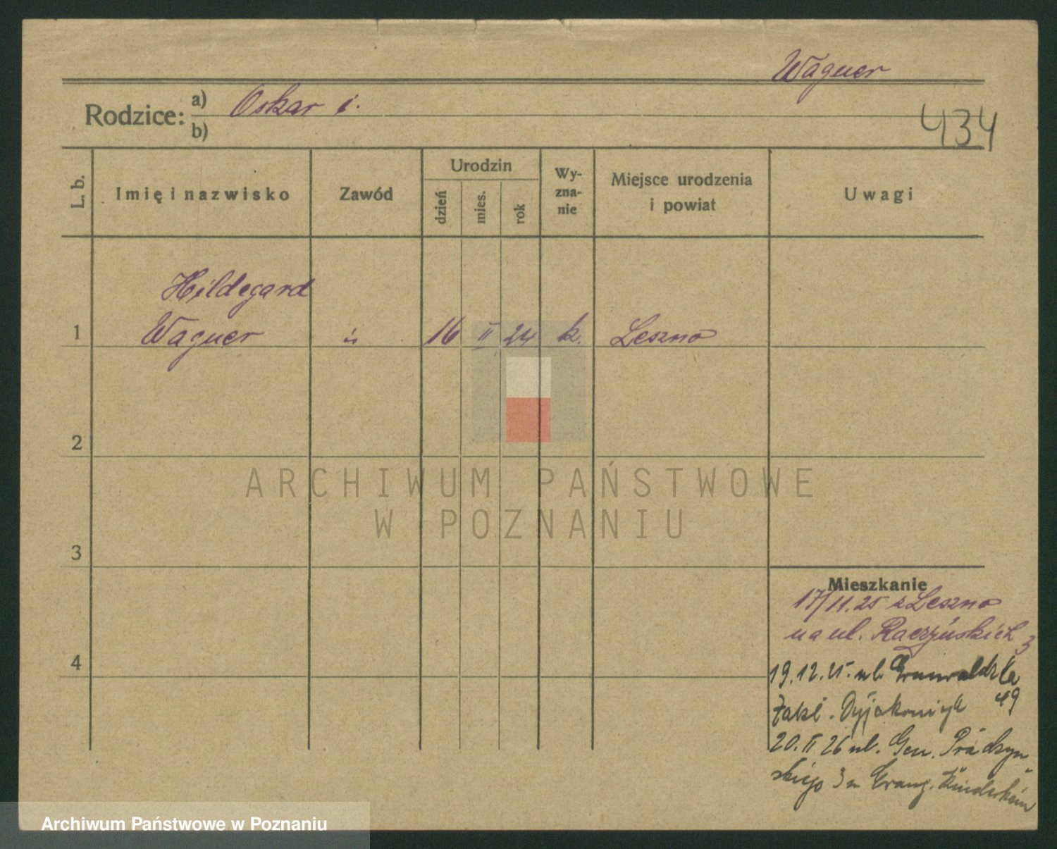 Podgląd karty osobowej dostępny jest po kliknięciu na nazwisko lub ikonkę karty. Można dokonywać powiększenia (ikony na górze) lub przechodzić między kolejnymi skanami (strzałki po bokach).