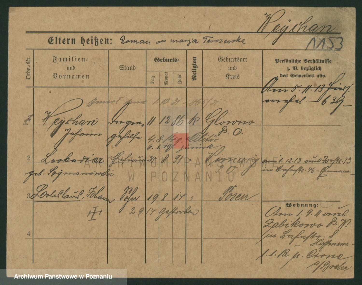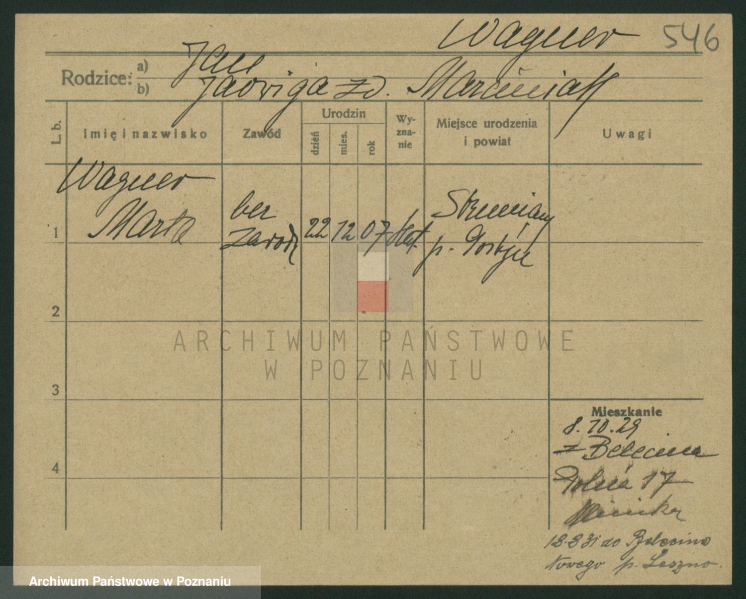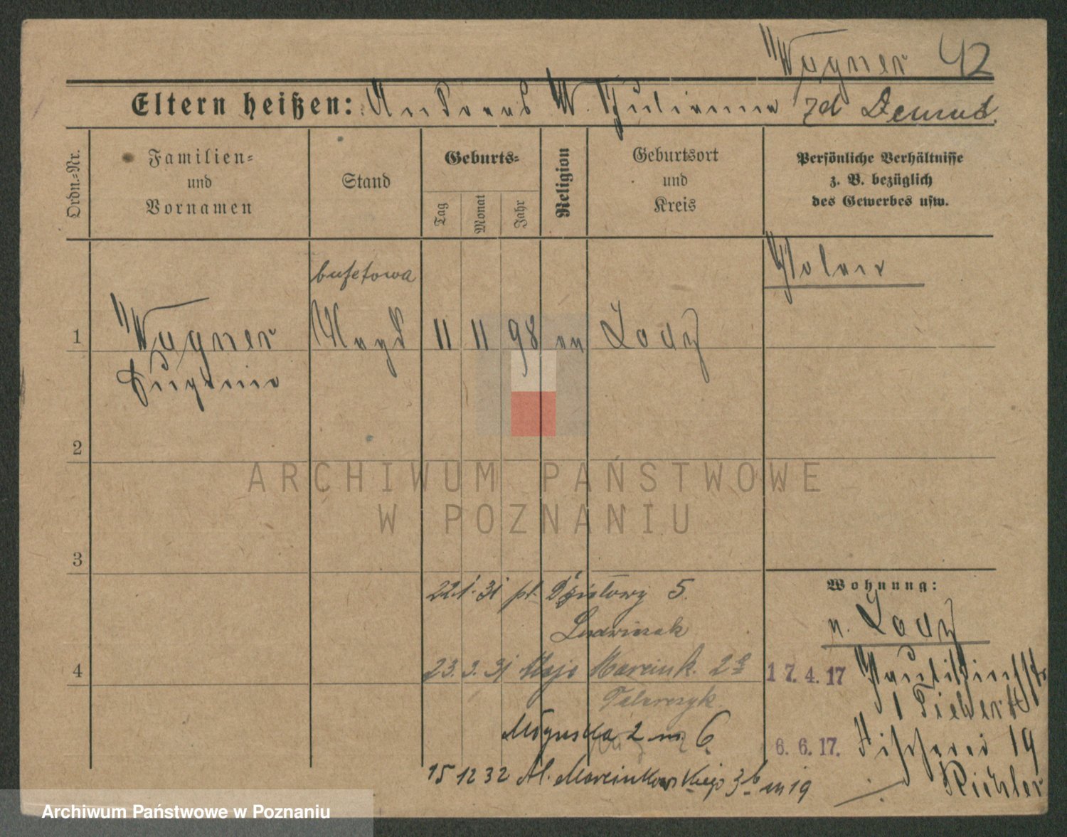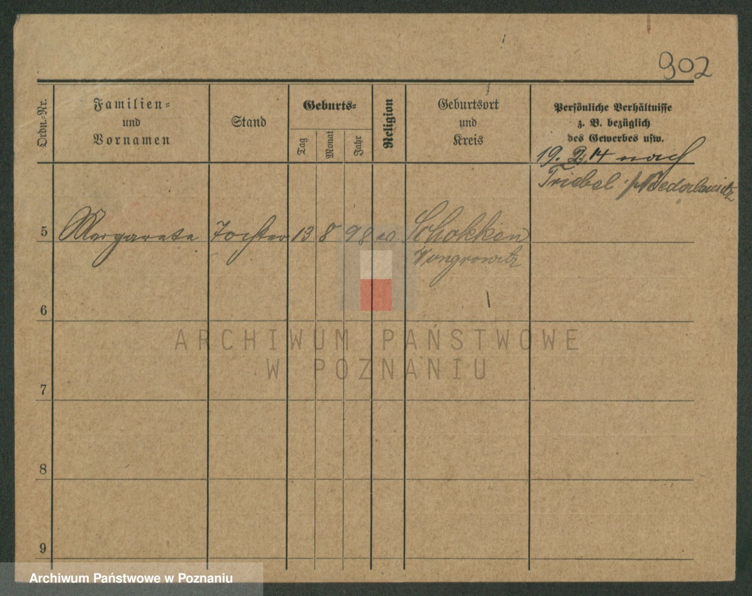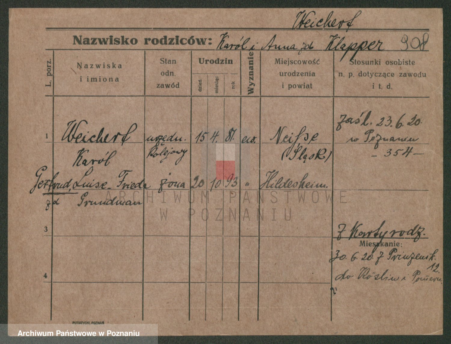 Podgląd karty osobowej dostępny jest po kliknięciu na nazwisko lub ikonkę karty. Można dokonywać powiększenia (ikony na górze) lub przechodzić między kolejnymi skanami (strzałki po bokach).