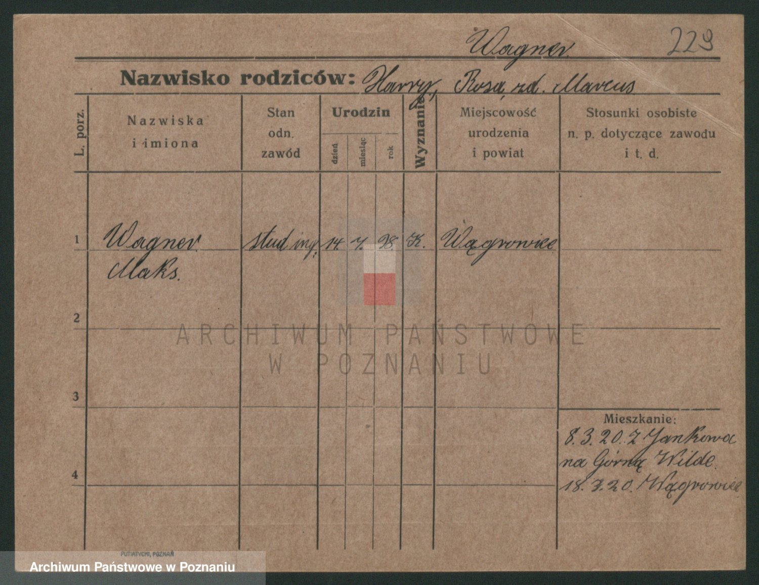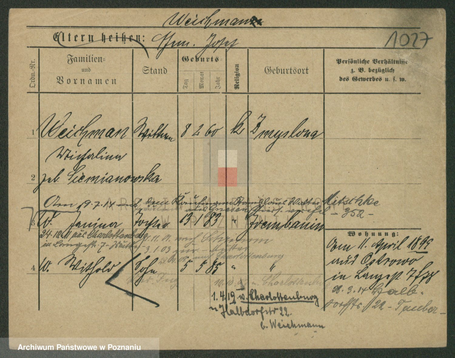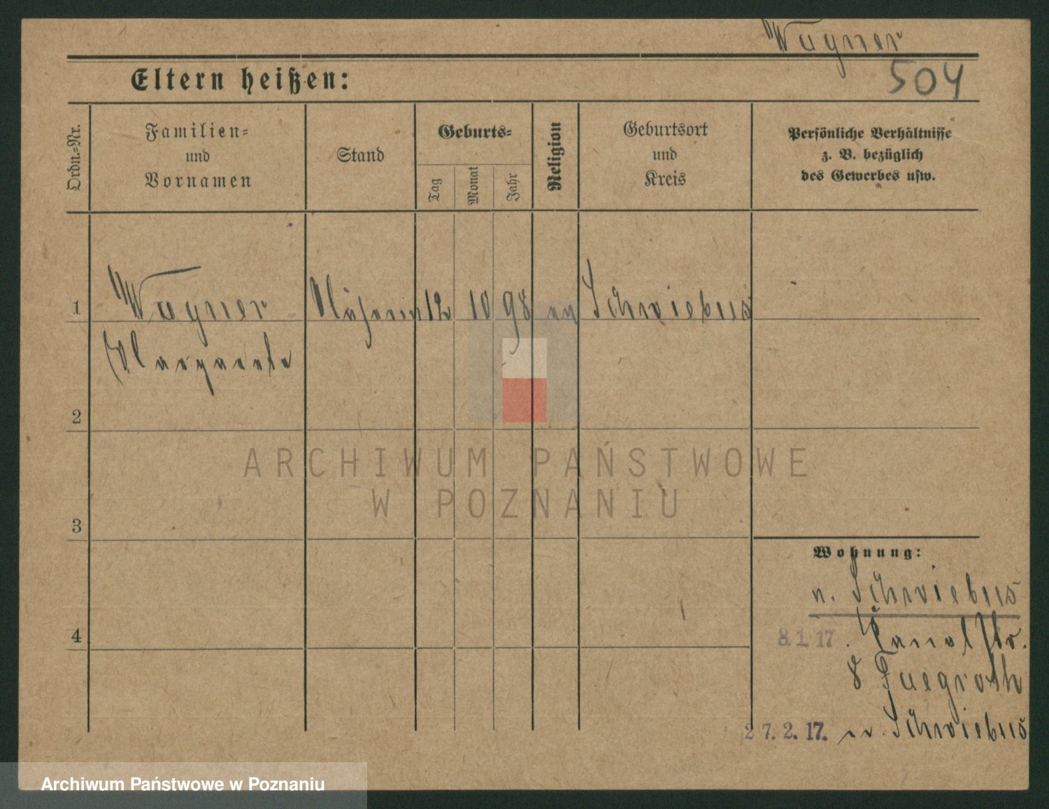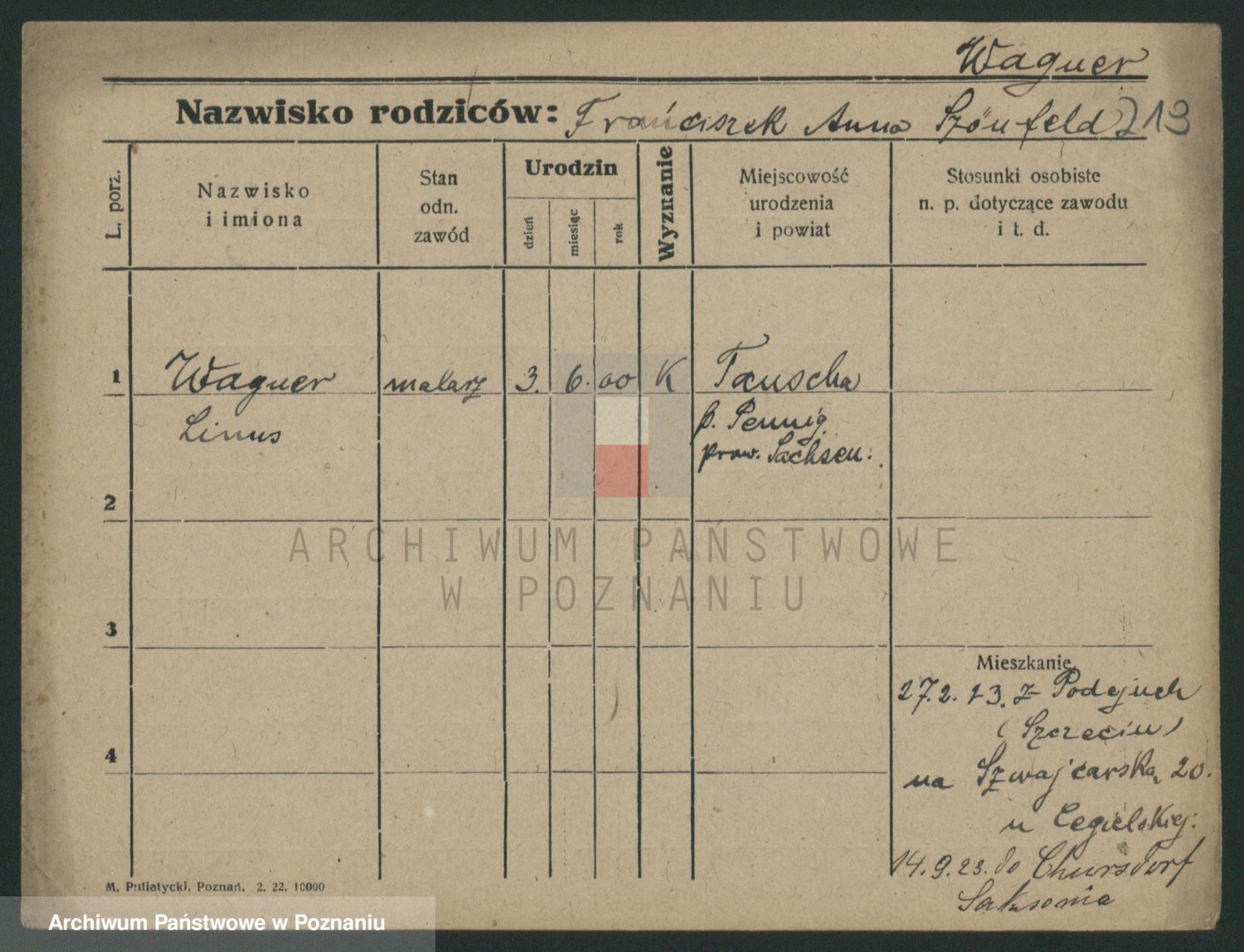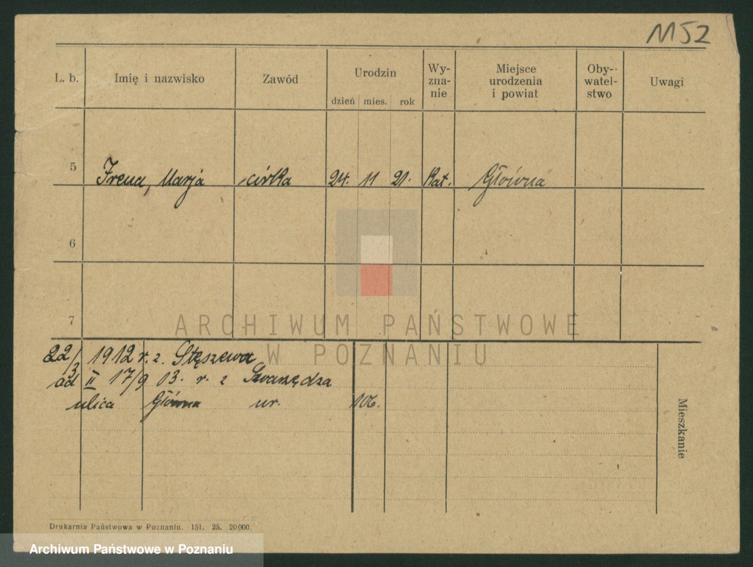 Podgląd karty osobowej dostępny jest po kliknięciu na nazwisko lub ikonkę karty. Można dokonywać powiększenia (ikony na górze) lub przechodzić między kolejnymi skanami (strzałki po bokach).