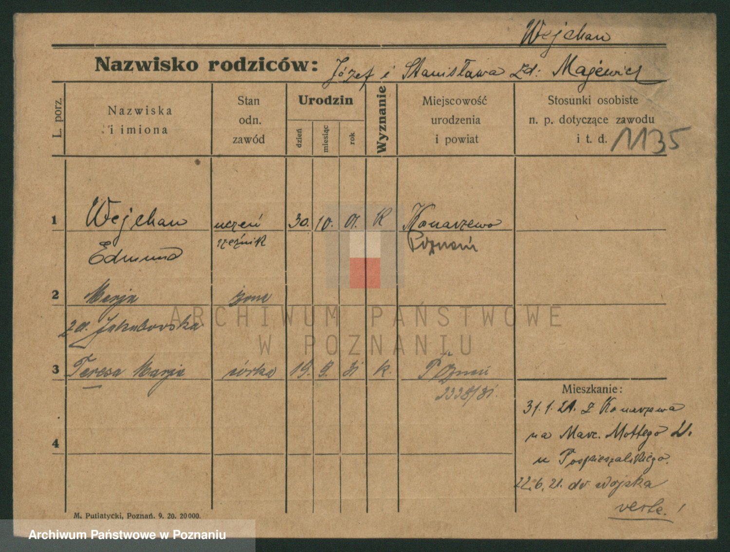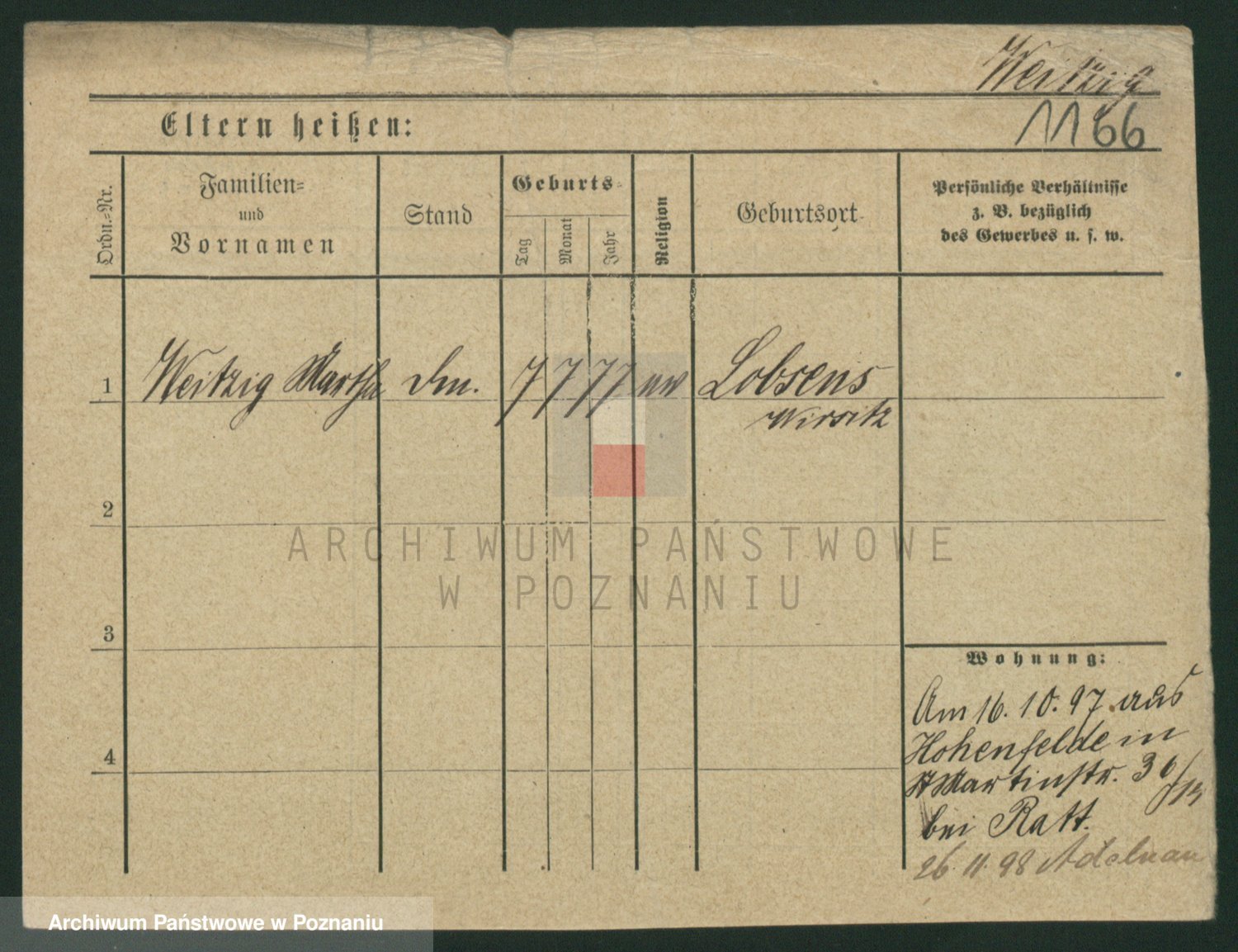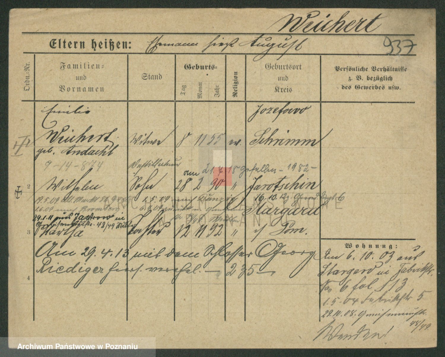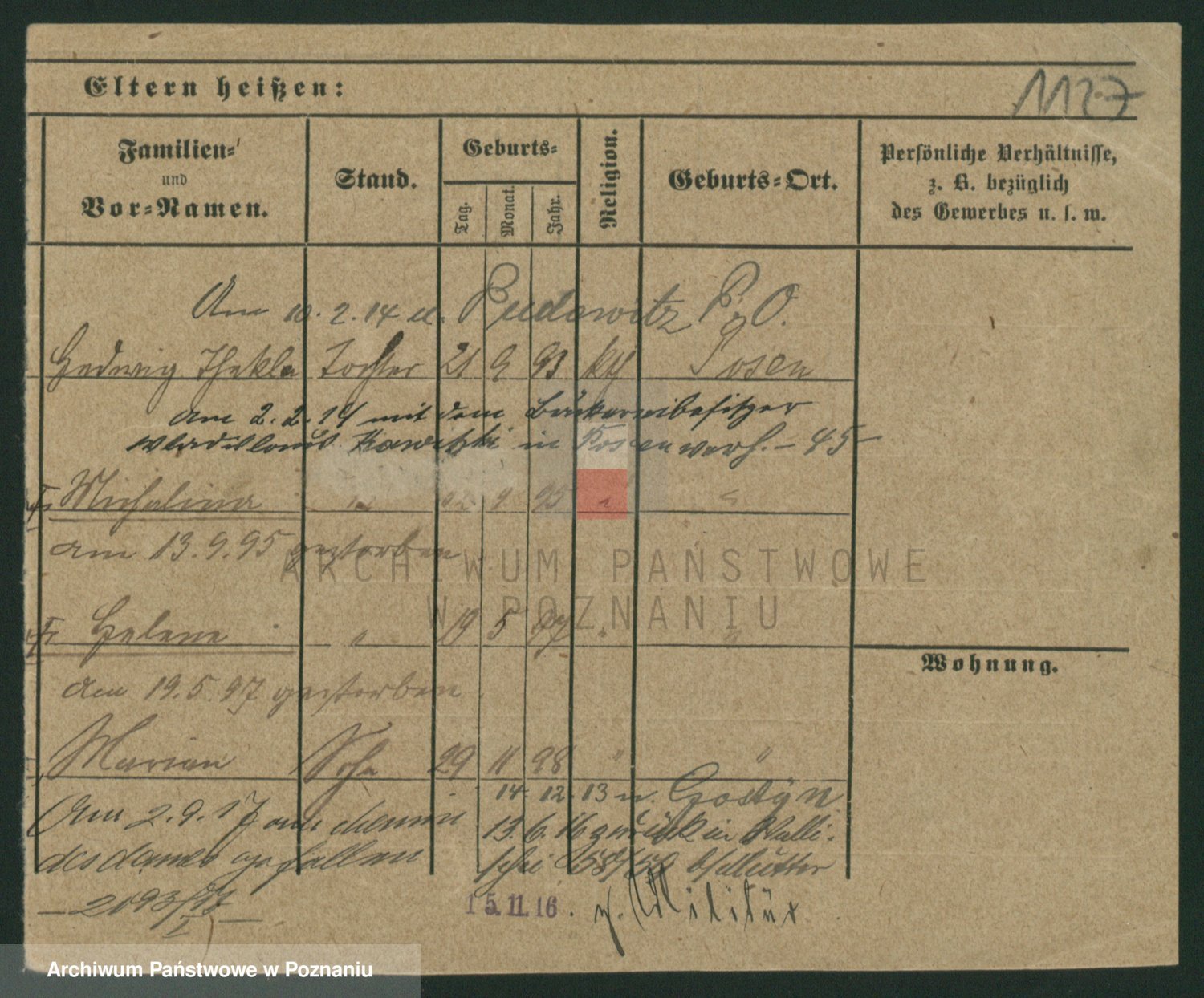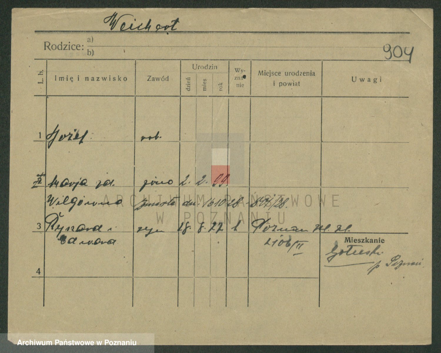 Podgląd karty osobowej dostępny jest po kliknięciu na nazwisko lub ikonkę karty. Można dokonywać powiększenia (ikony na górze) lub przechodzić między kolejnymi skanami (strzałki po bokach).