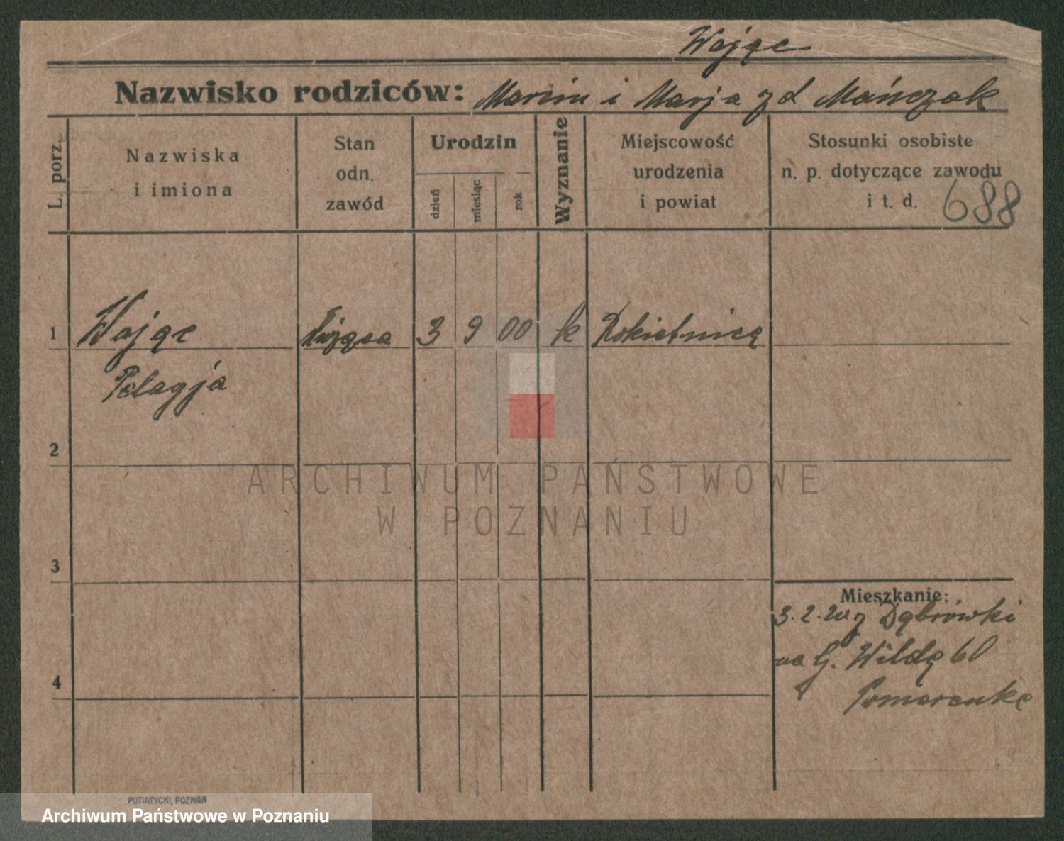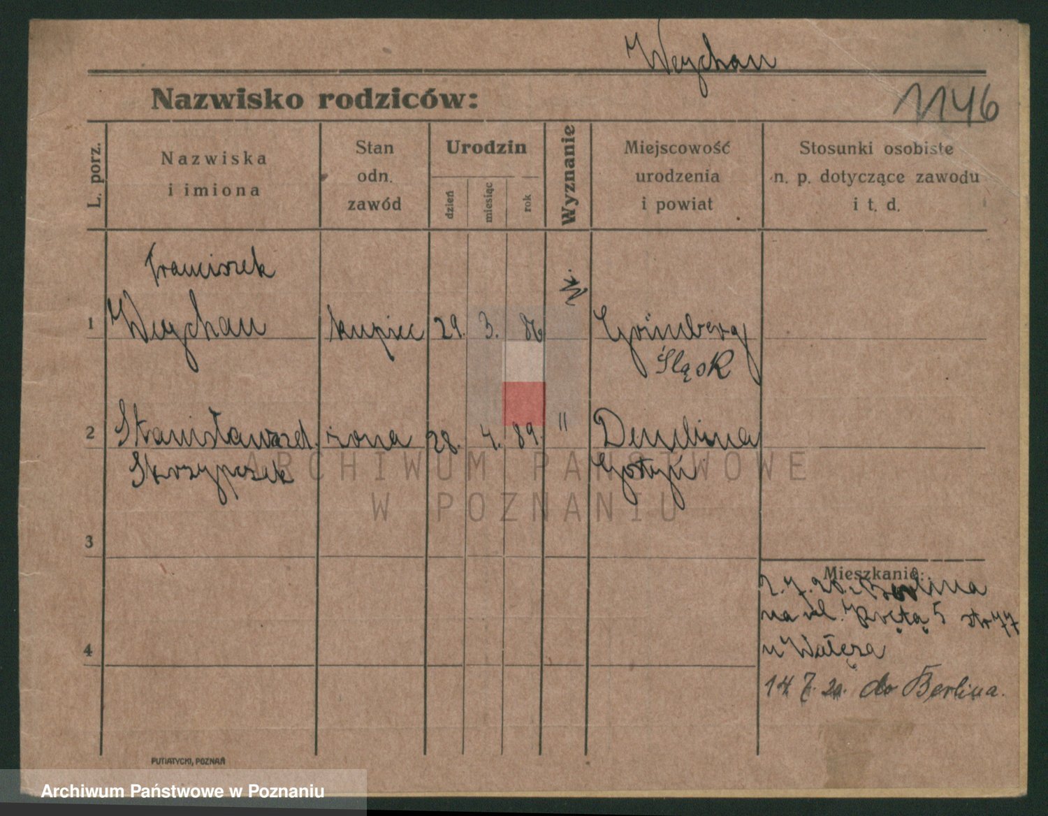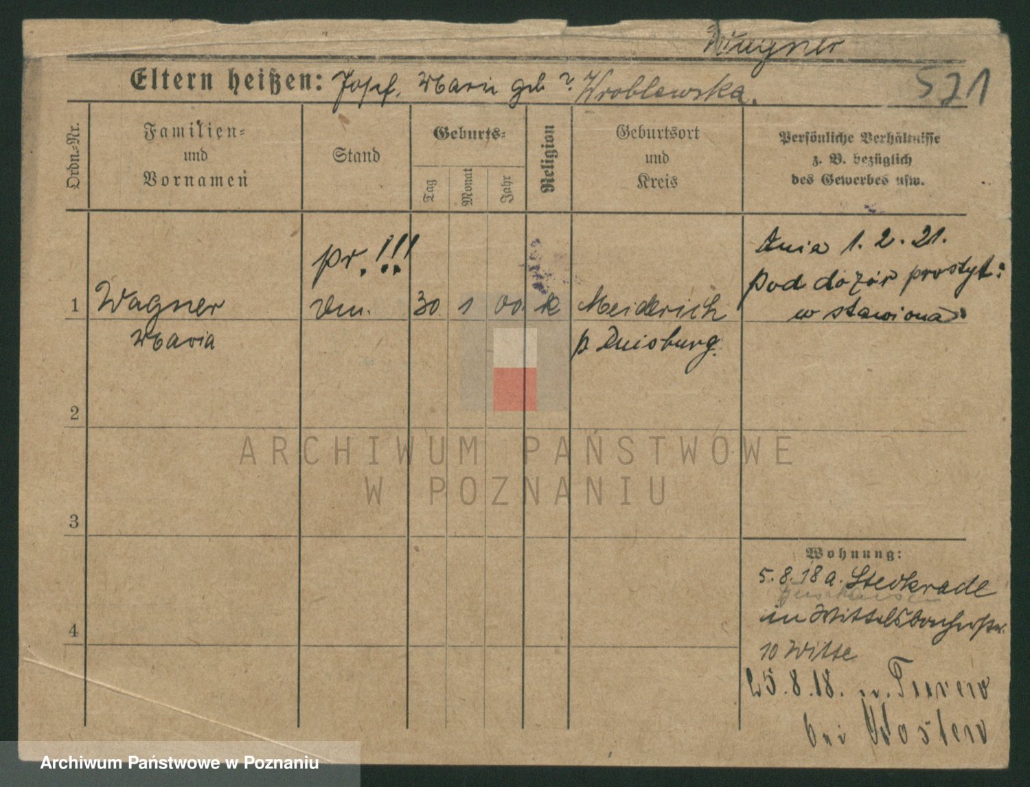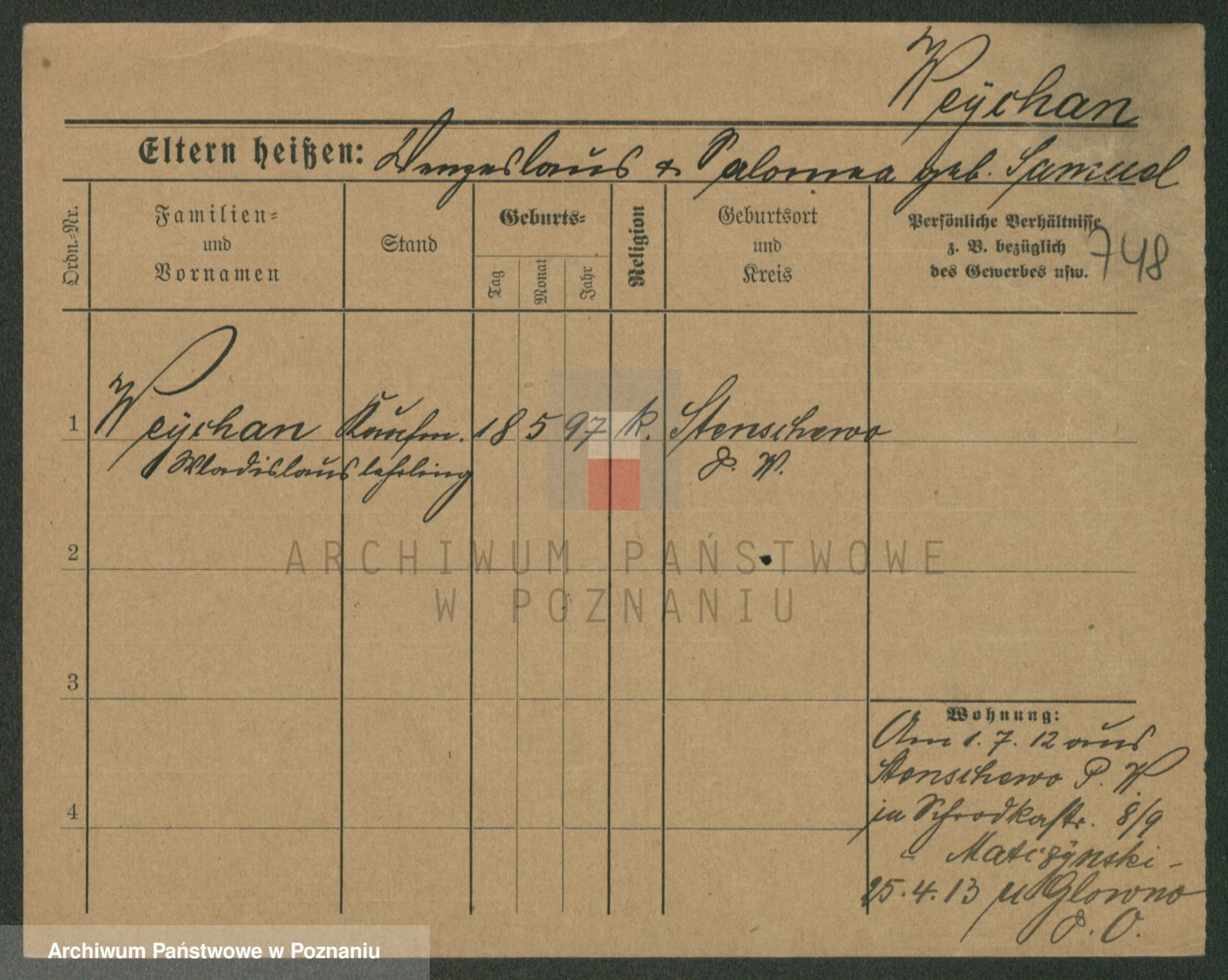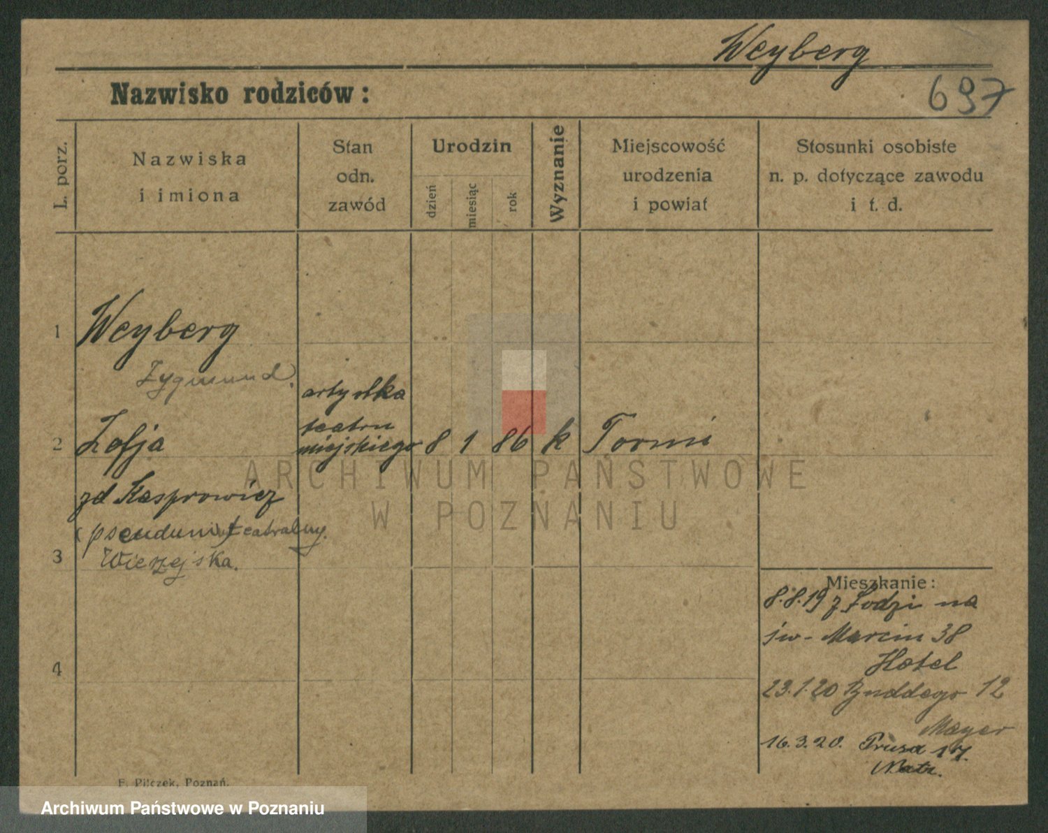 Podgląd karty osobowej dostępny jest po kliknięciu na nazwisko lub ikonkę karty. Można dokonywać powiększenia (ikony na górze) lub przechodzić między kolejnymi skanami (strzałki po bokach).