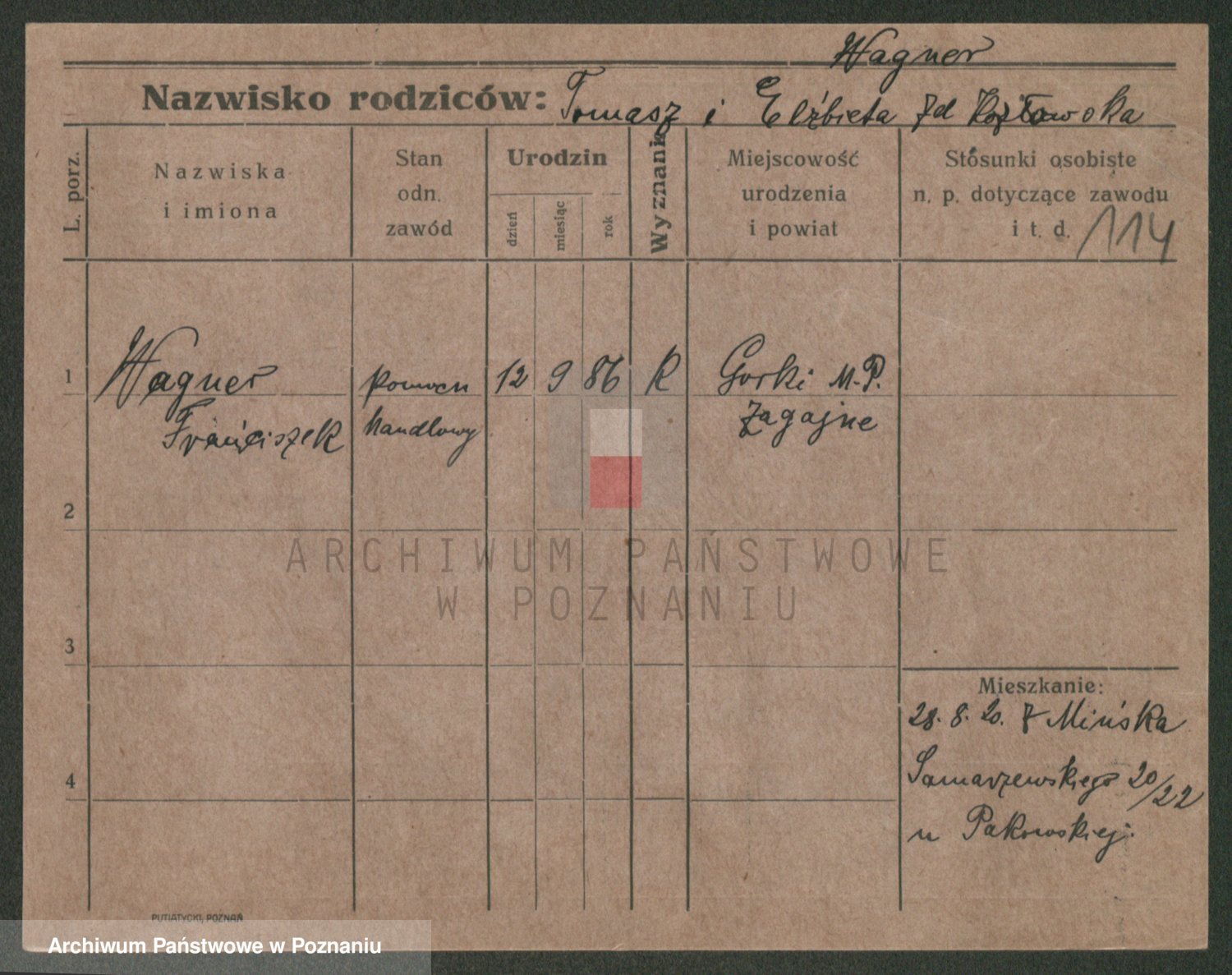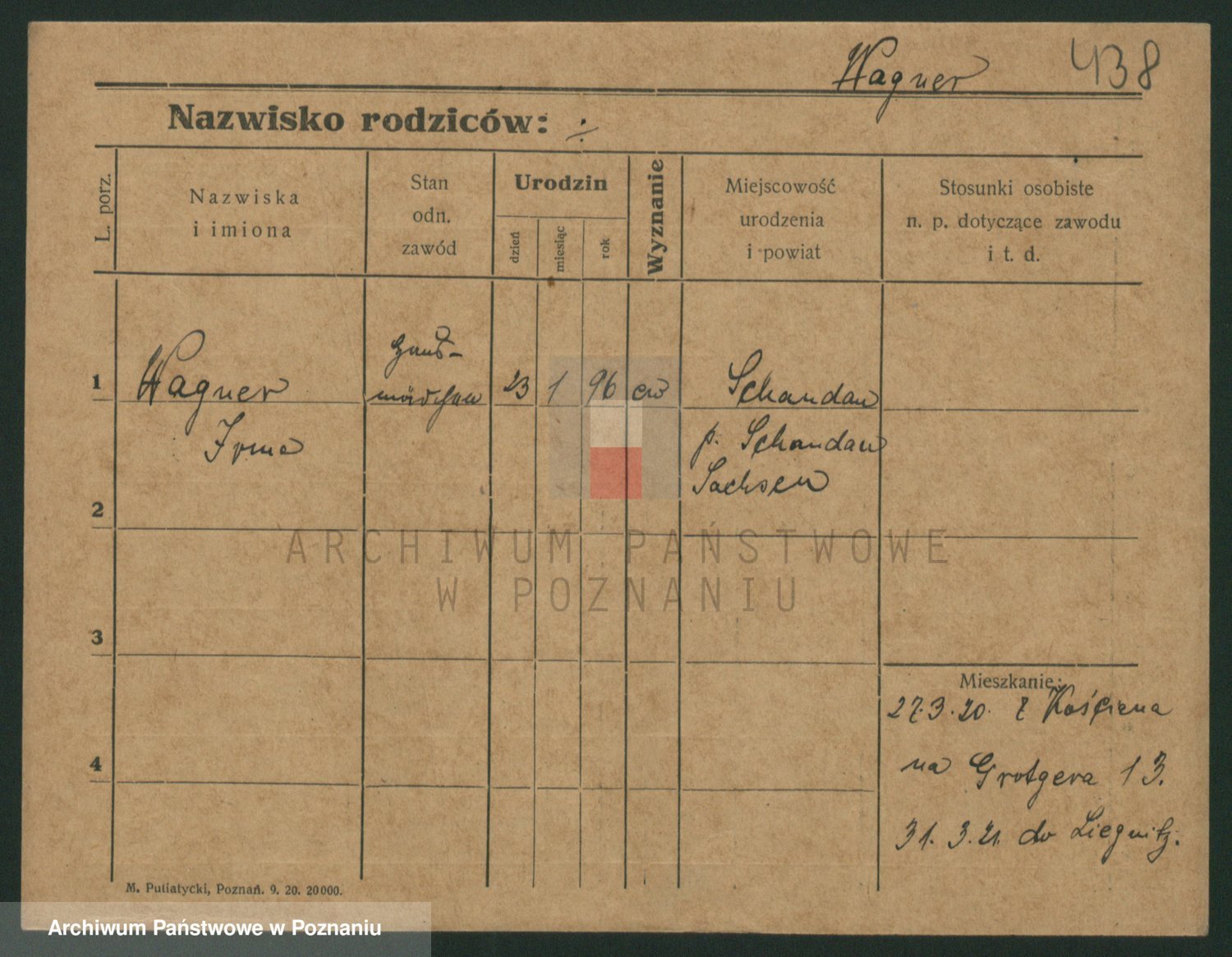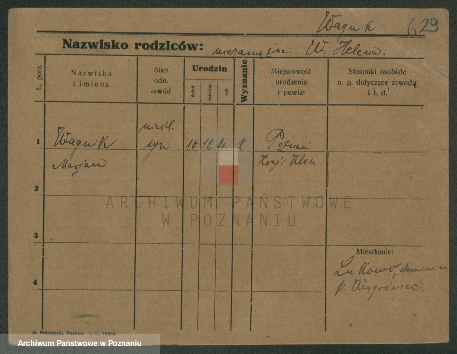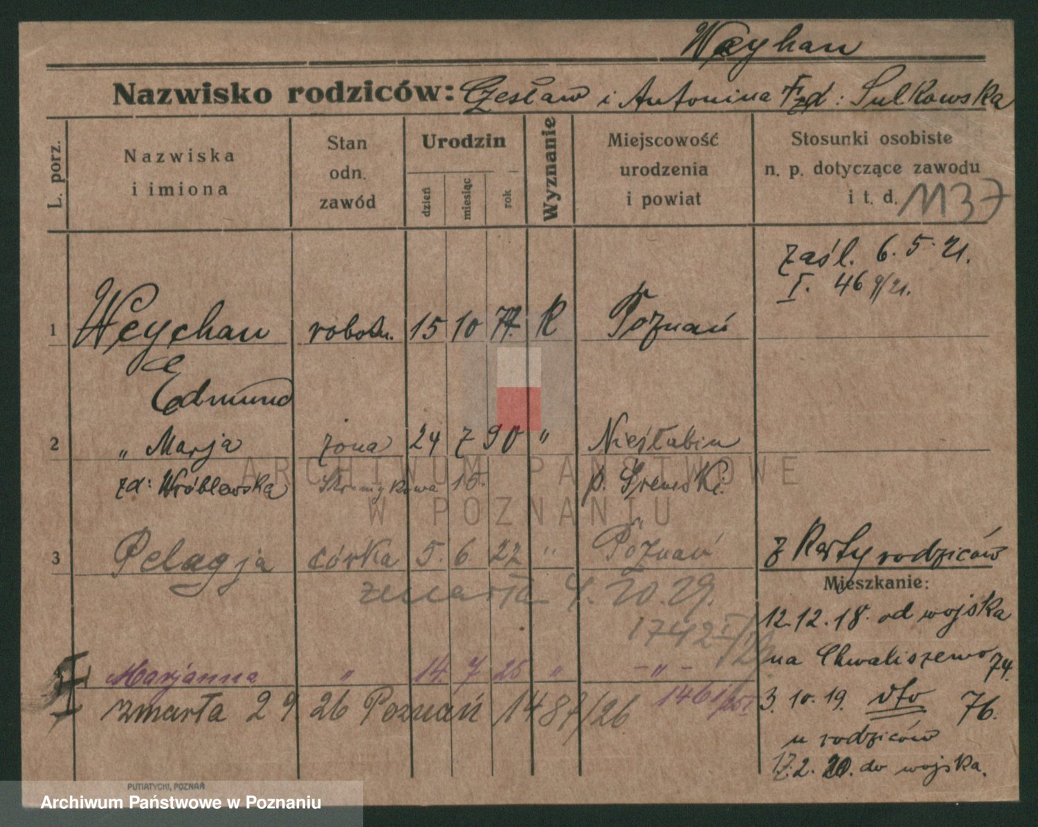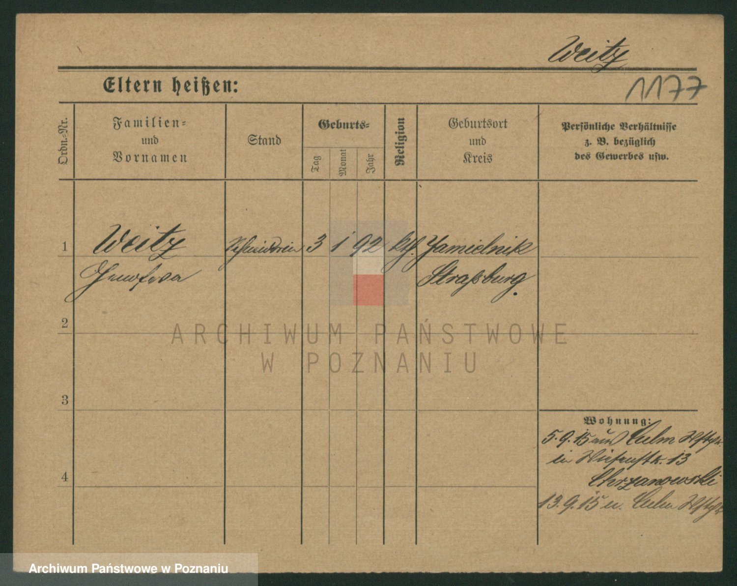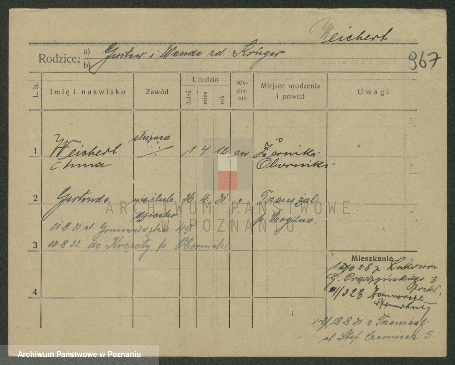Podgląd karty osobowej dostępny jest po kliknięciu na nazwisko lub ikonkę karty. Można dokonywać powiększenia (ikony na górze) lub przechodzić między kolejnymi skanami (strzałki po bokach).
