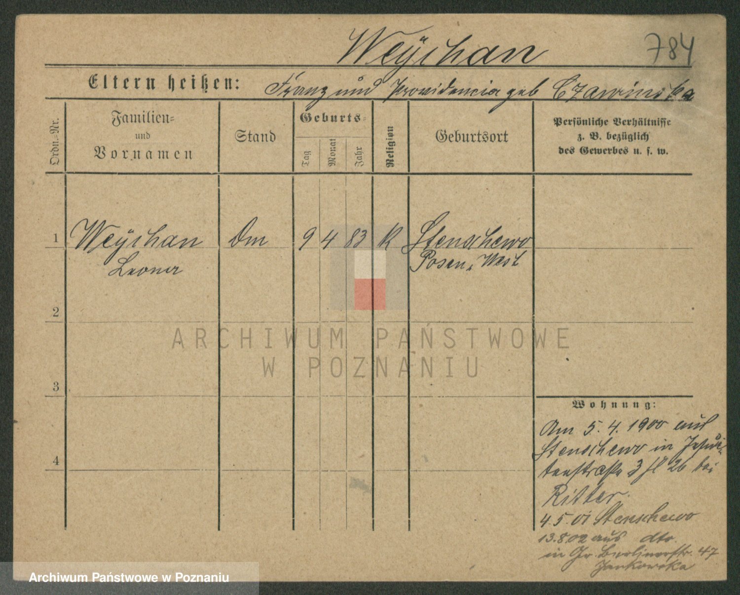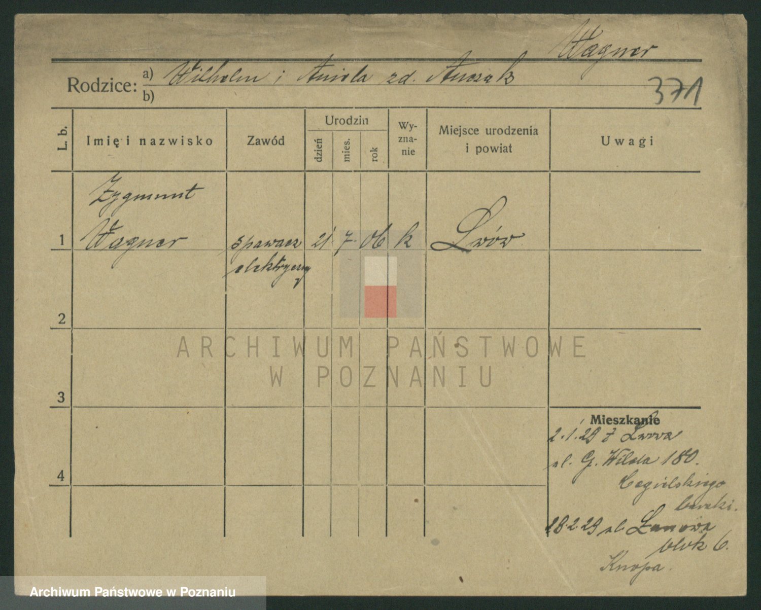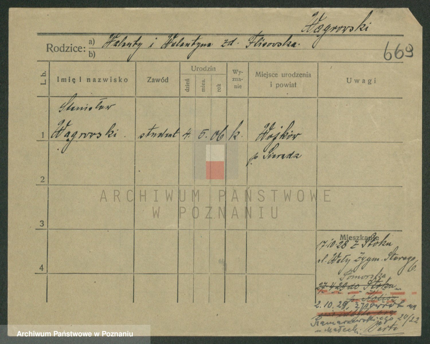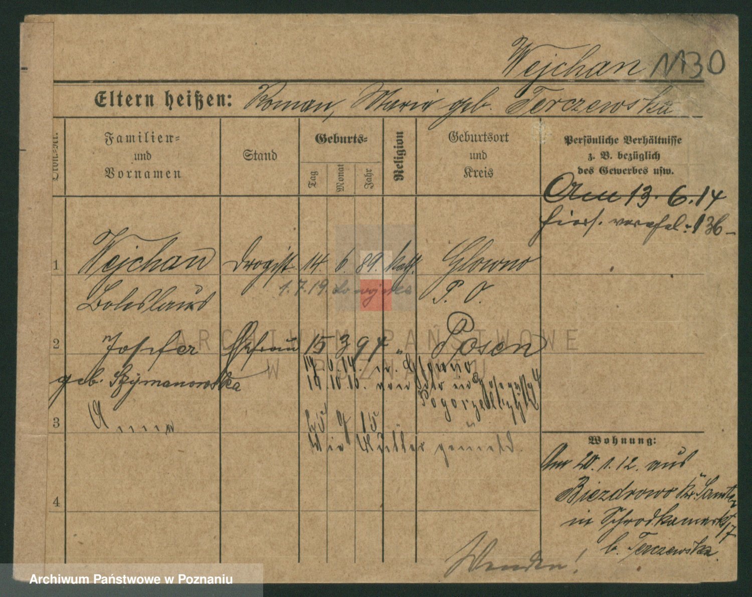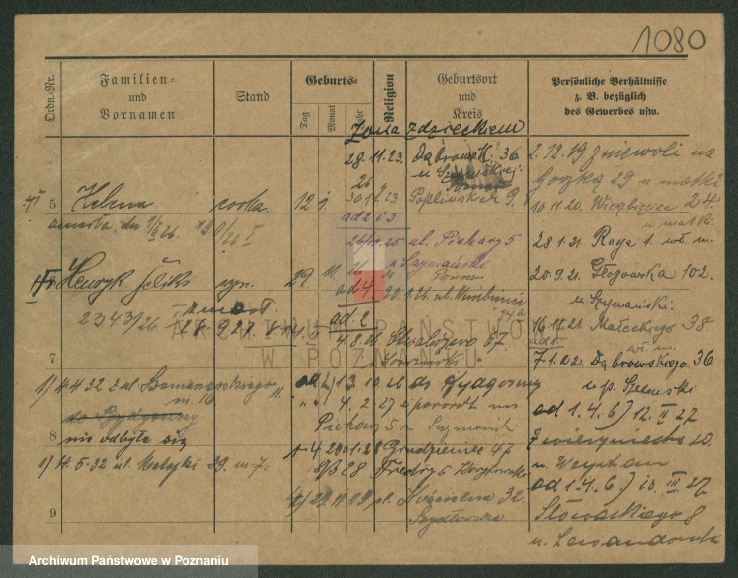 Podgląd karty osobowej dostępny jest po kliknięciu na nazwisko lub ikonkę karty. Można dokonywać powiększenia (ikony na górze) lub przechodzić między kolejnymi skanami (strzałki po bokach).