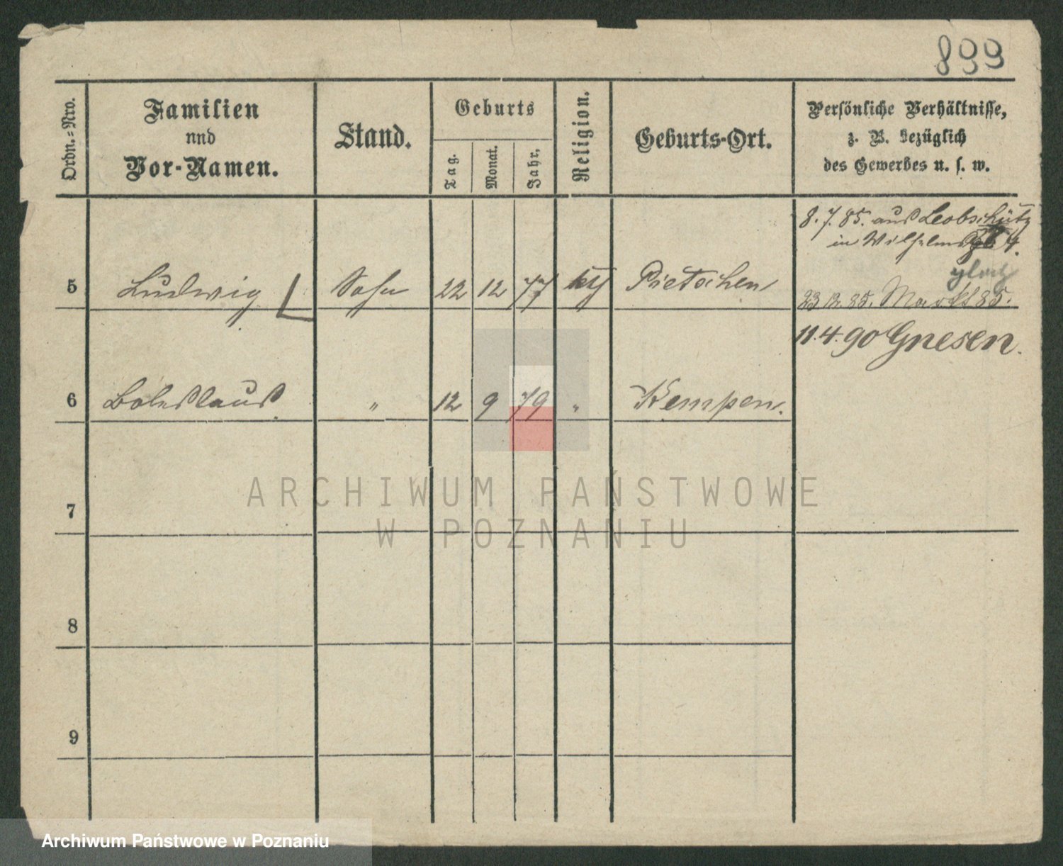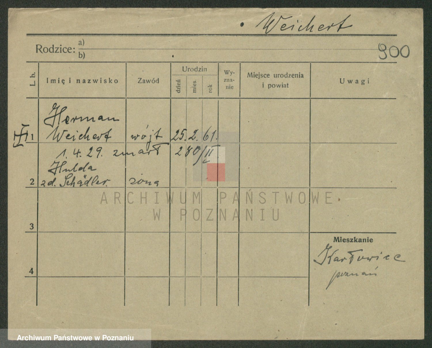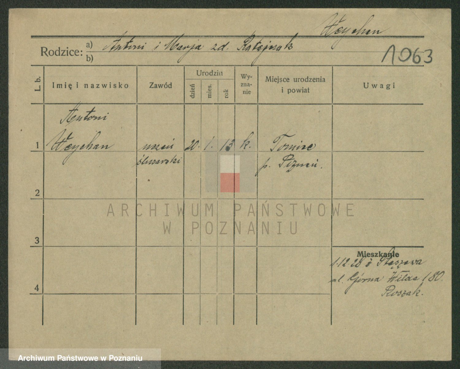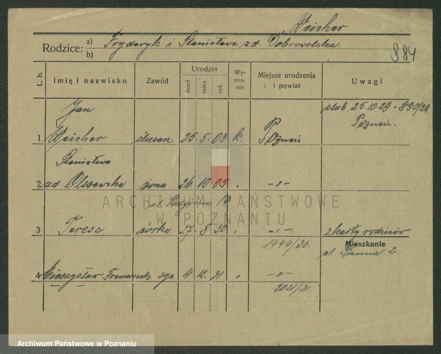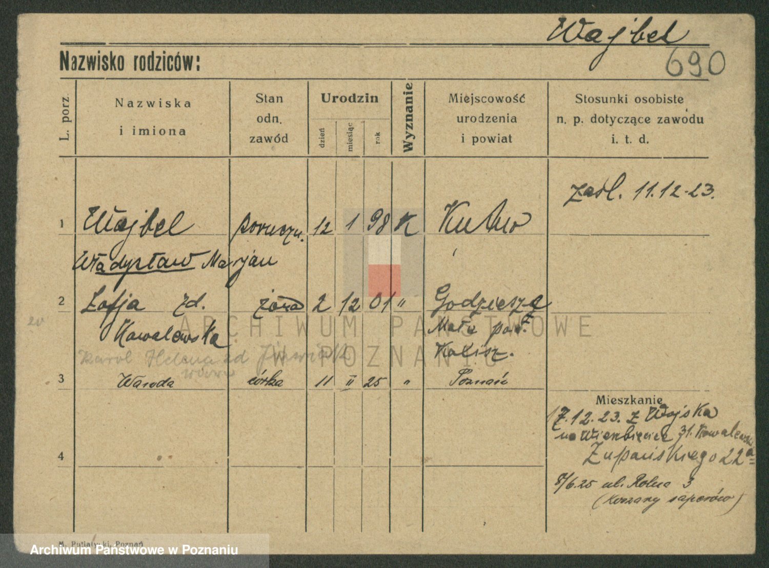 Podgląd karty osobowej dostępny jest po kliknięciu na nazwisko lub ikonkę karty. Można dokonywać powiększenia (ikony na górze) lub przechodzić między kolejnymi skanami (strzałki po bokach).