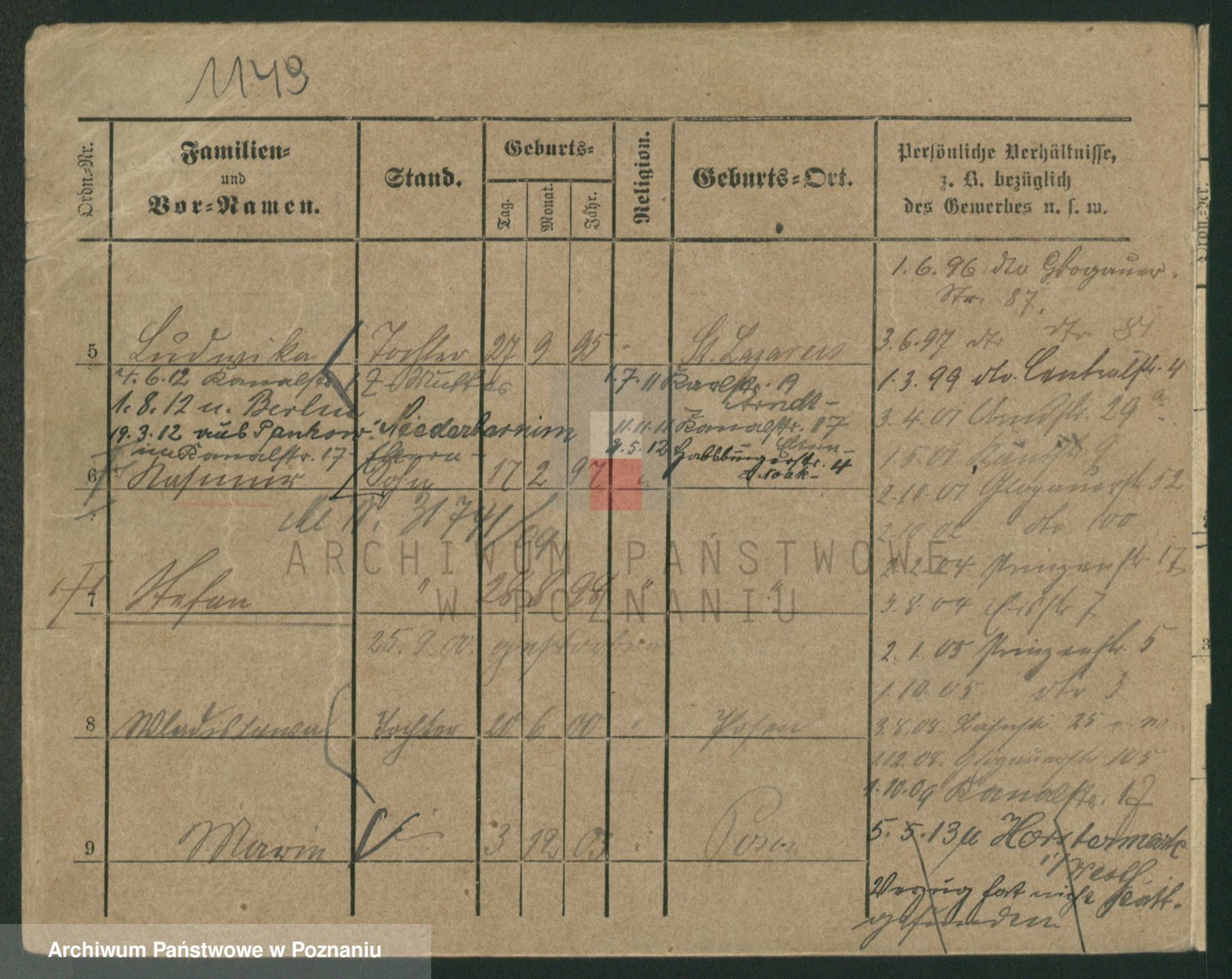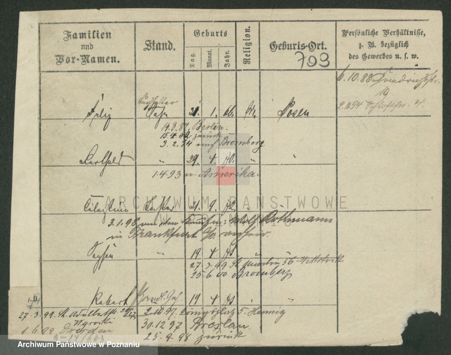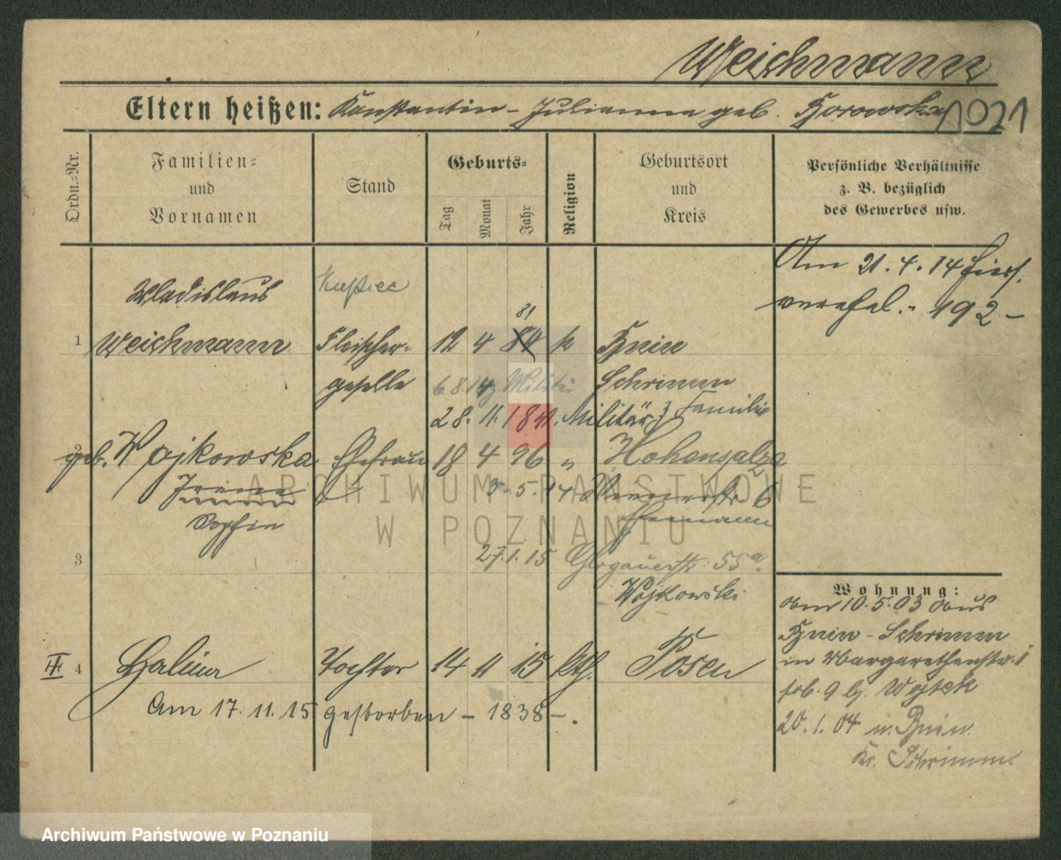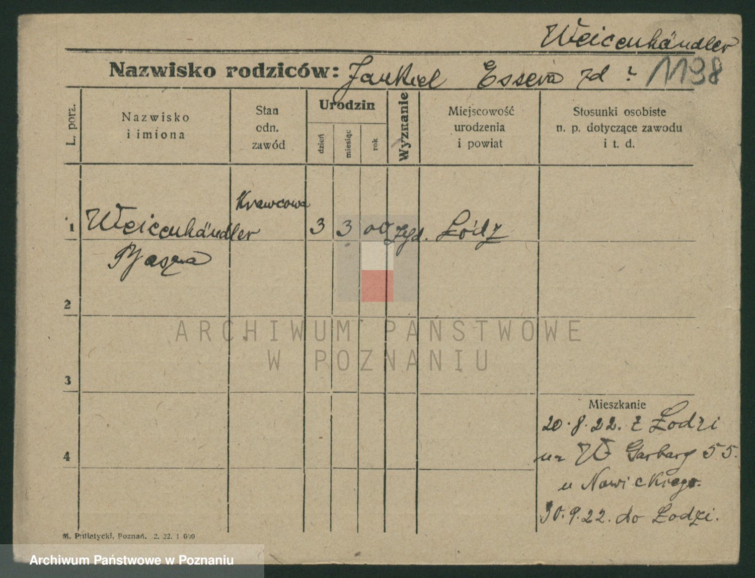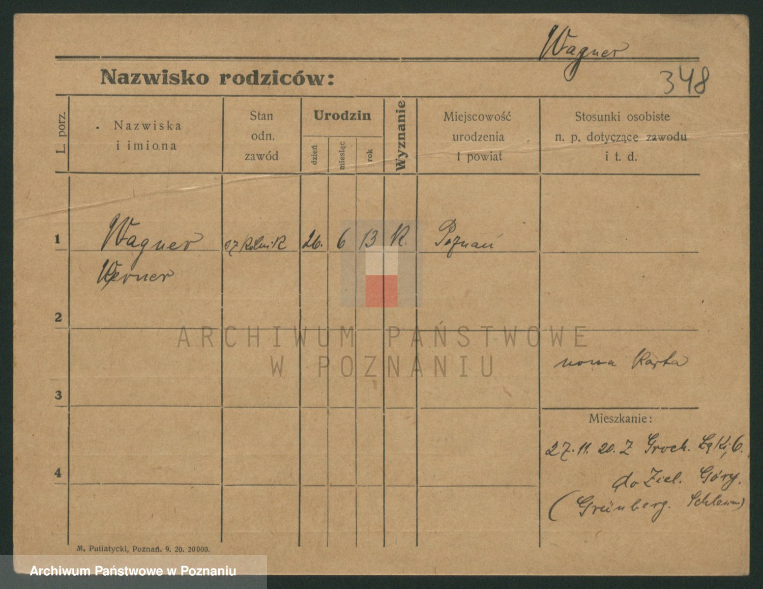 Podgląd karty osobowej dostępny jest po kliknięciu na nazwisko lub ikonkę karty. Można dokonywać powiększenia (ikony na górze) lub przechodzić między kolejnymi skanami (strzałki po bokach).