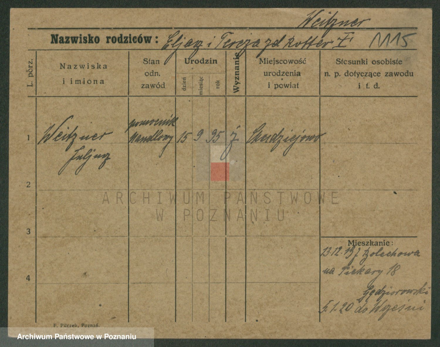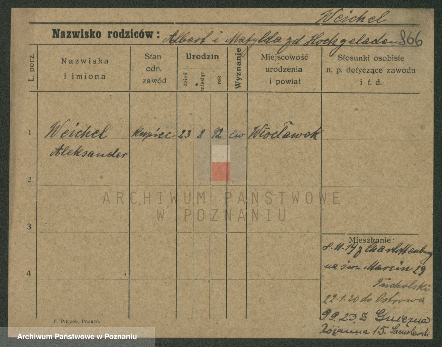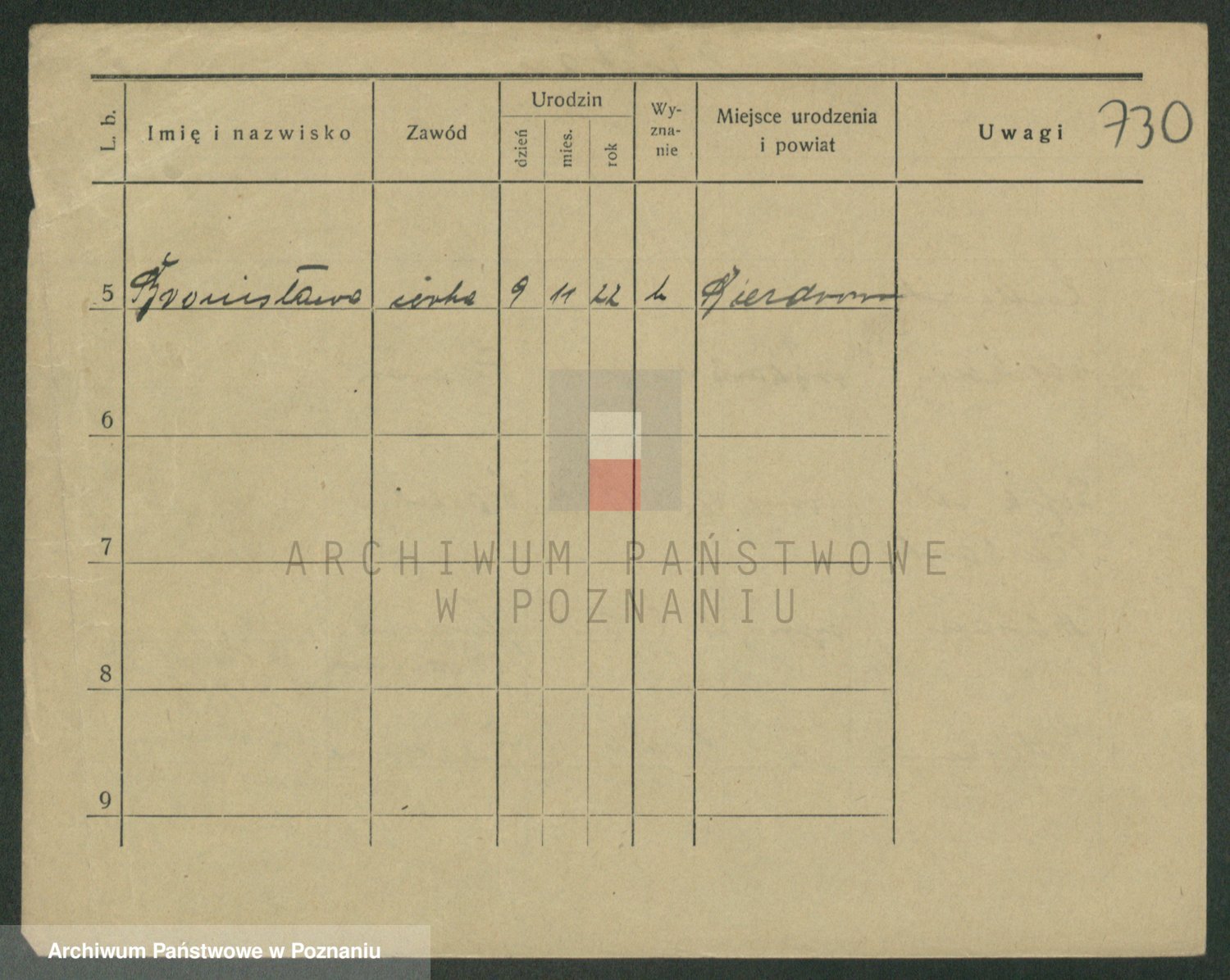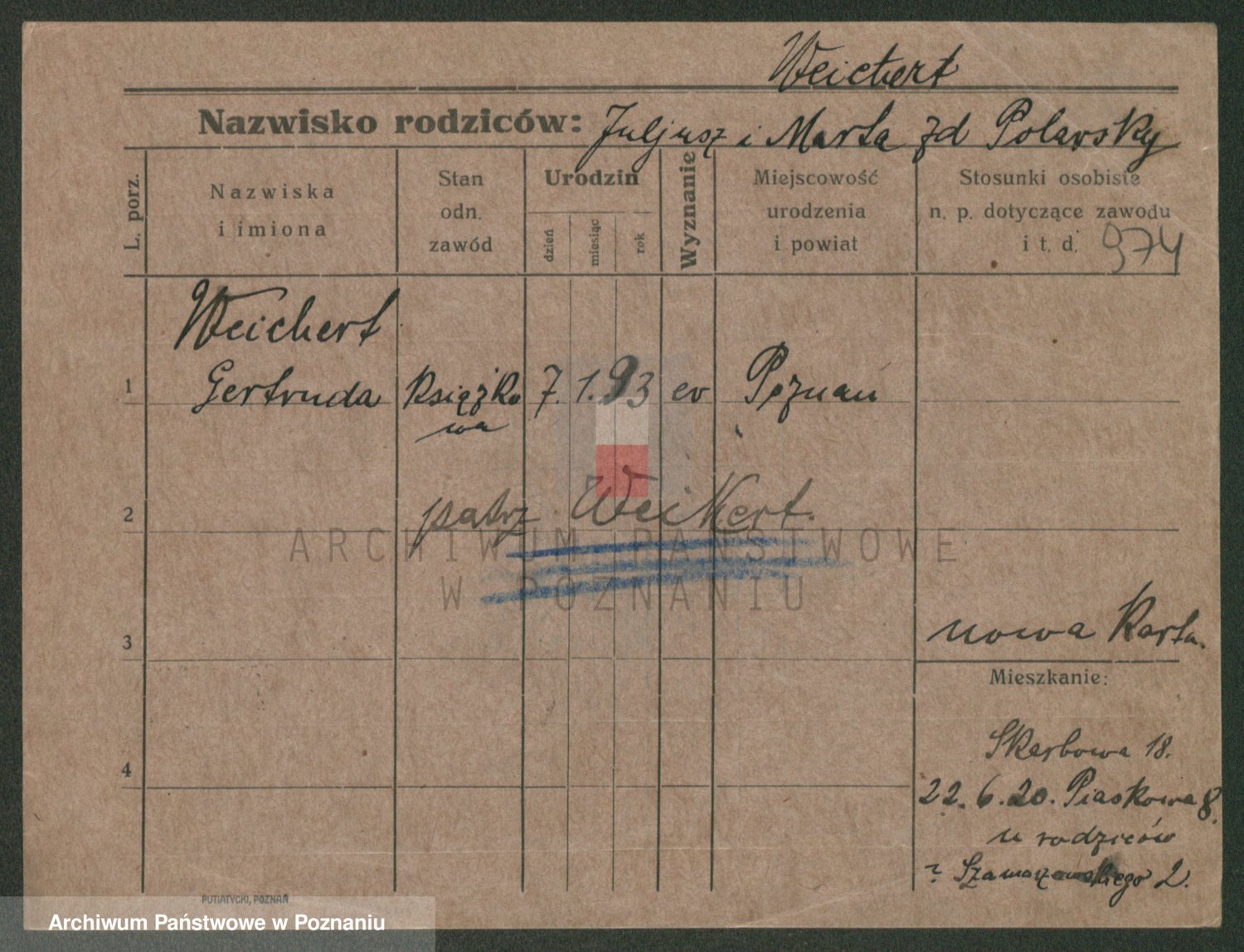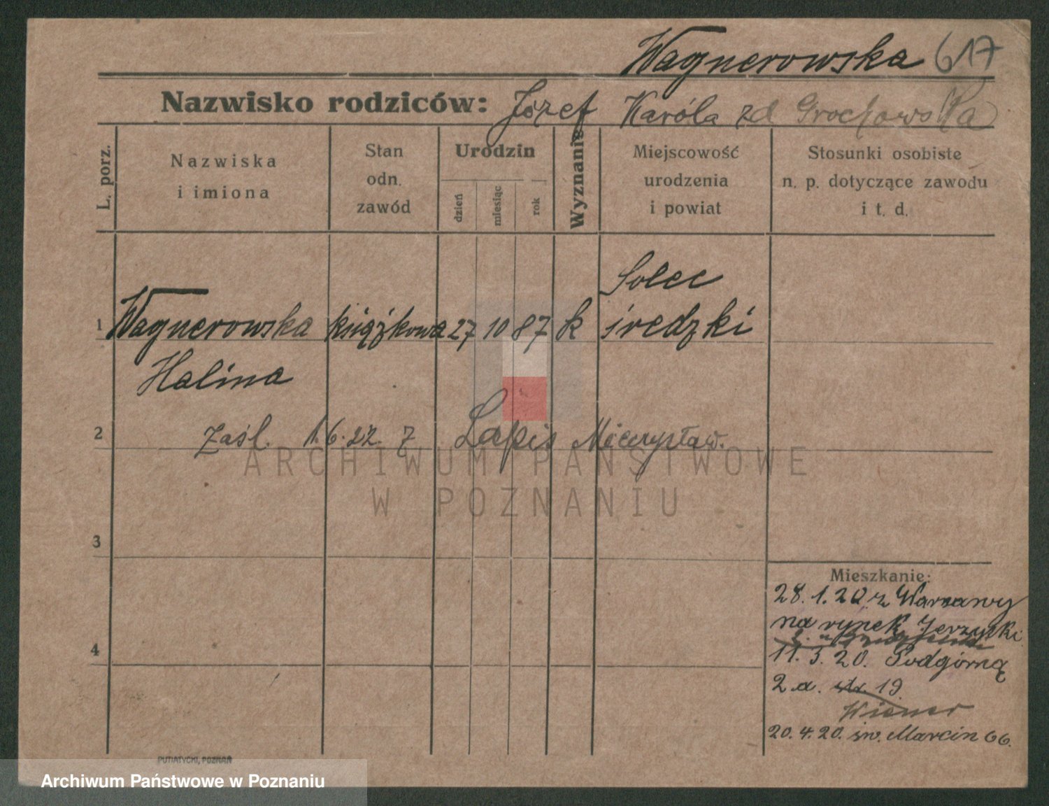 Podgląd karty osobowej dostępny jest po kliknięciu na nazwisko lub ikonkę karty. Można dokonywać powiększenia (ikony na górze) lub przechodzić między kolejnymi skanami (strzałki po bokach).