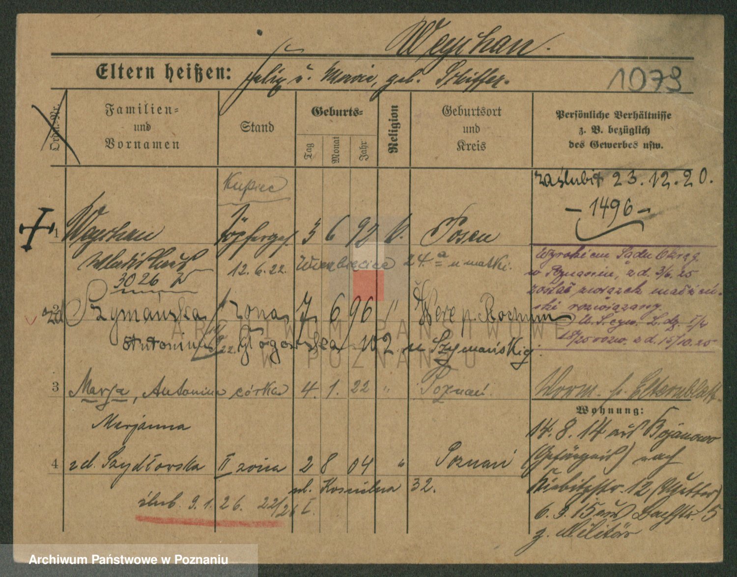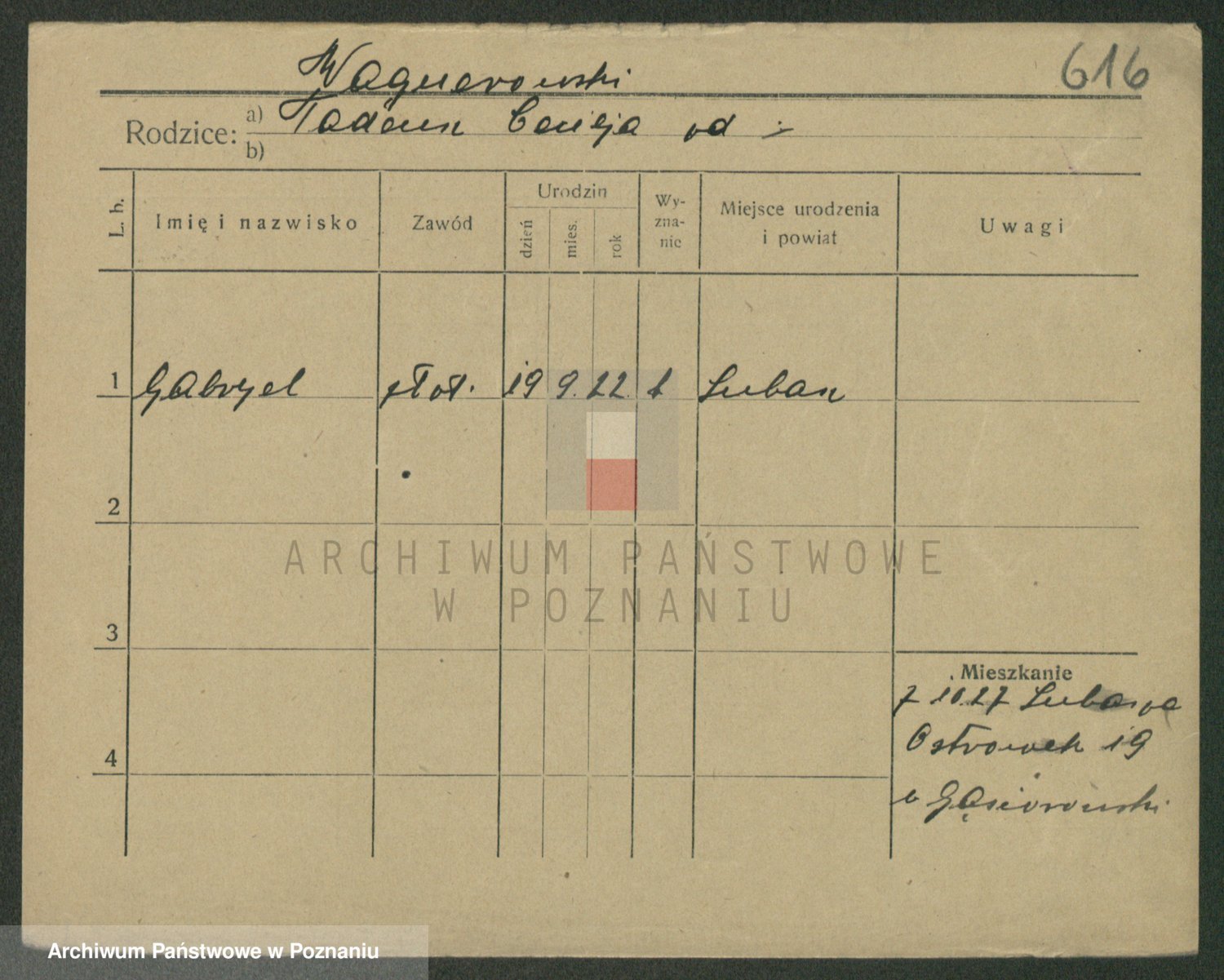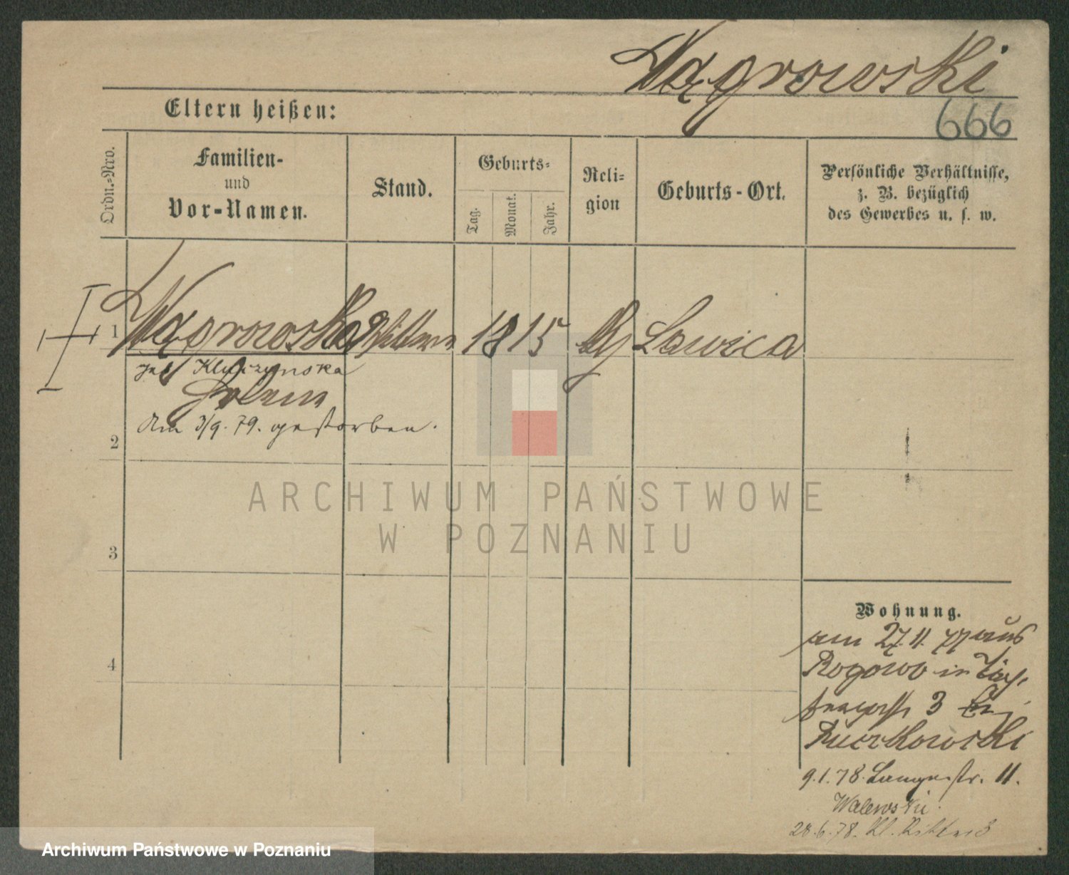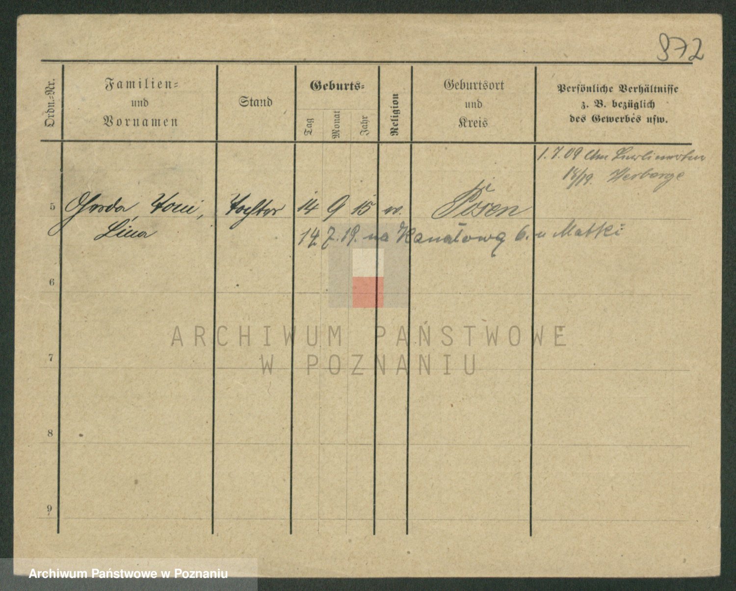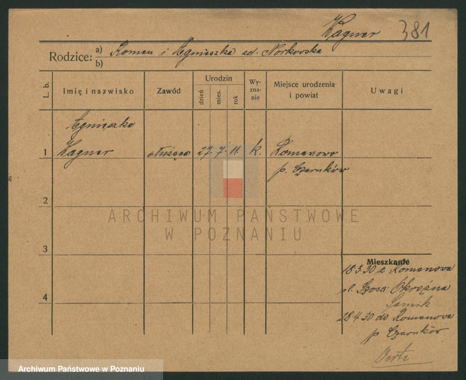 Podgląd karty osobowej dostępny jest po kliknięciu na nazwisko lub ikonkę karty. Można dokonywać powiększenia (ikony na górze) lub przechodzić między kolejnymi skanami (strzałki po bokach).
