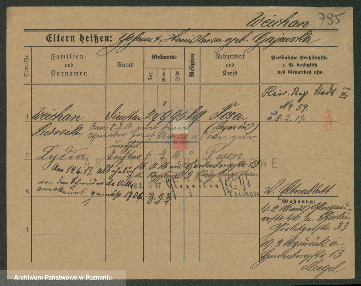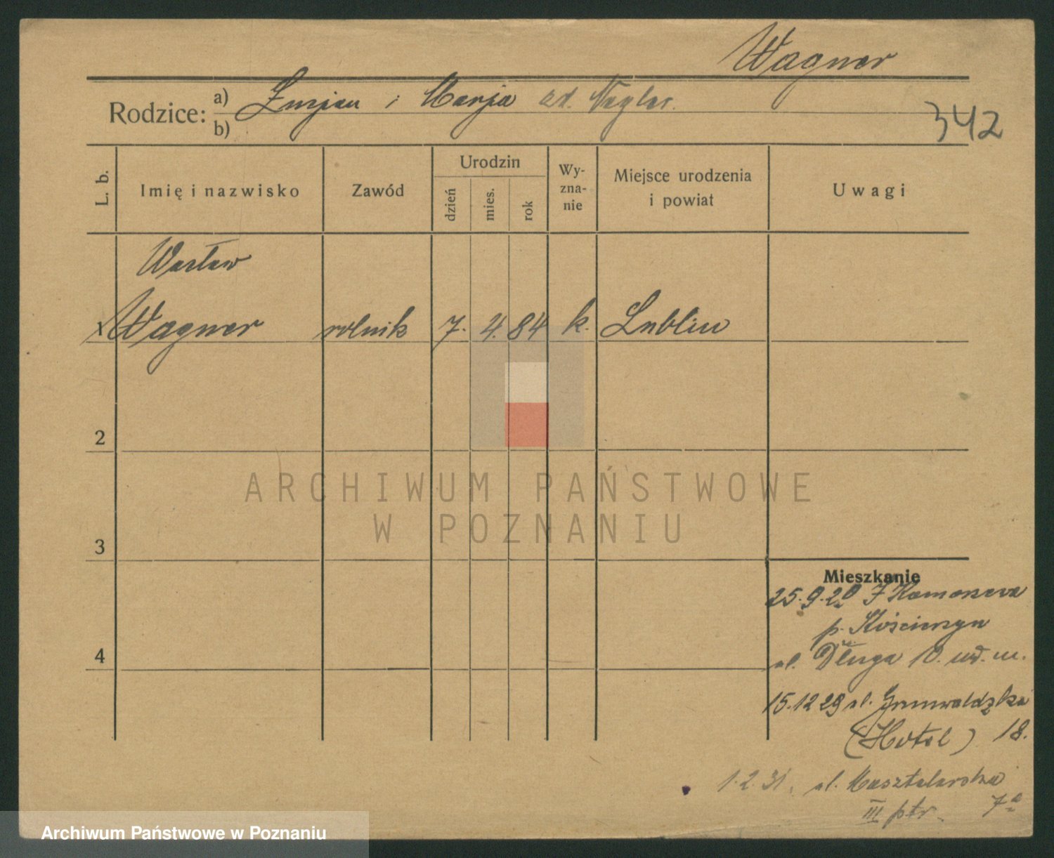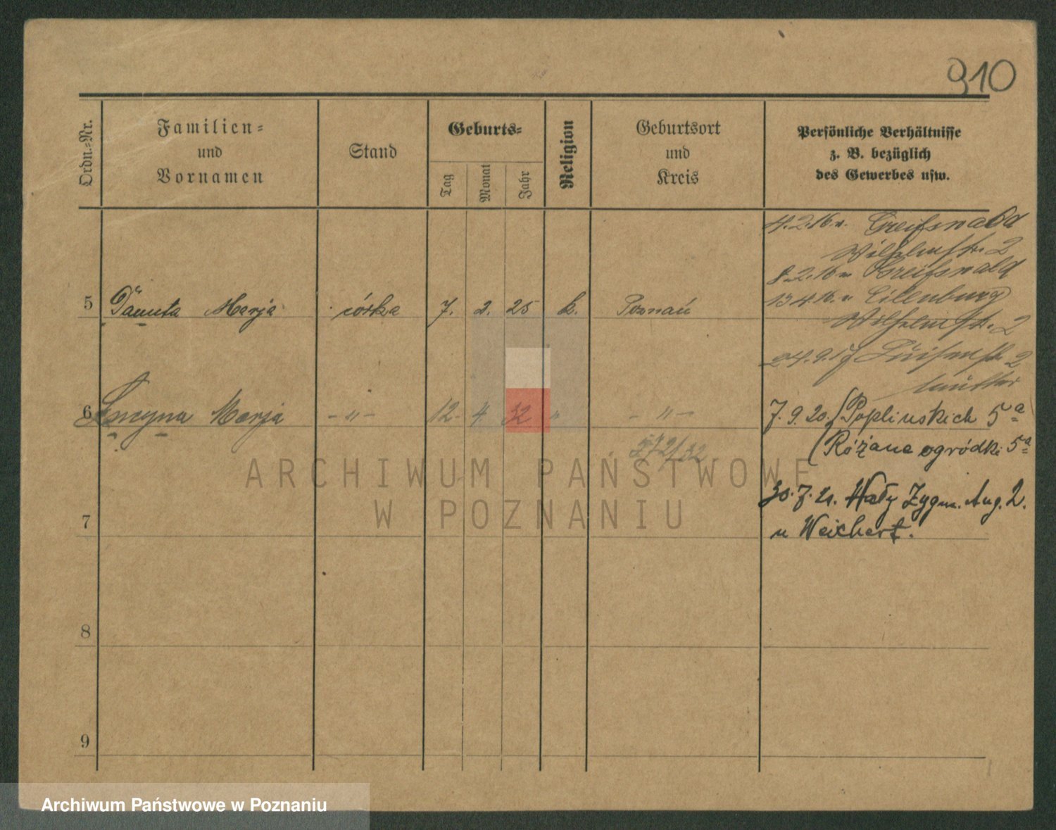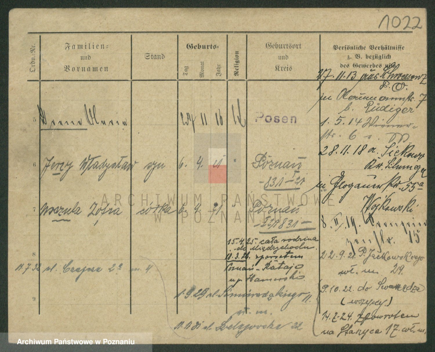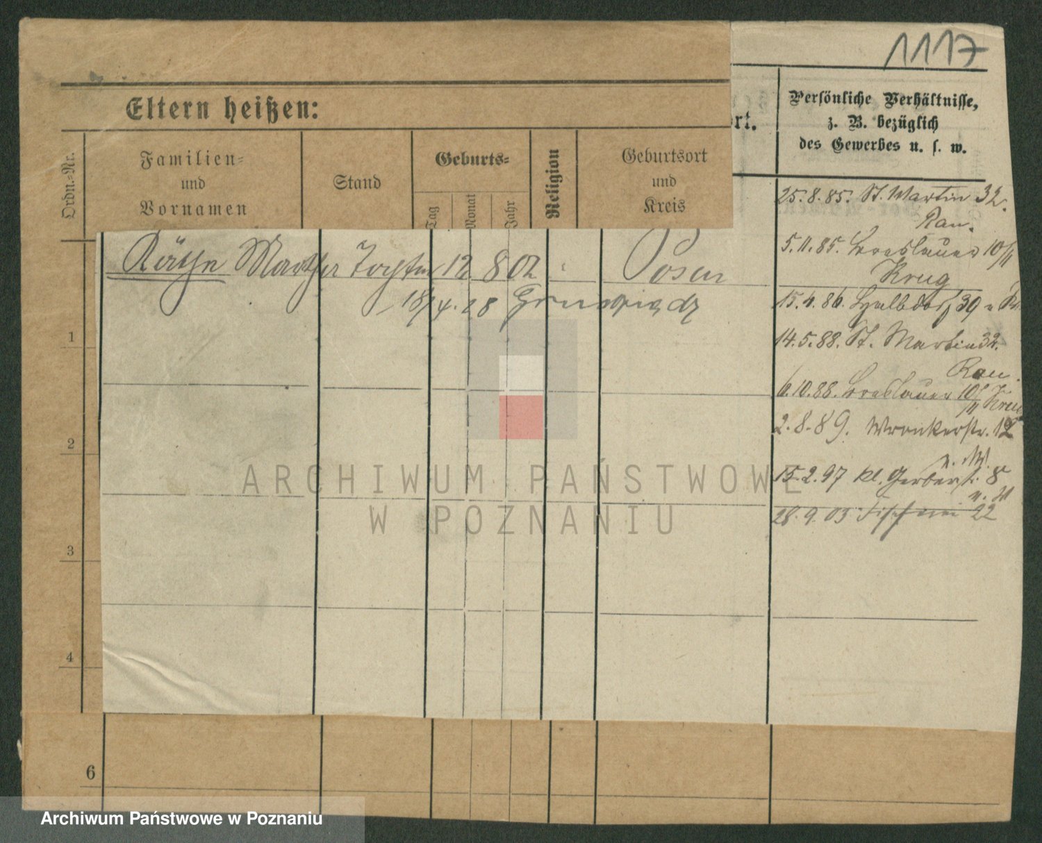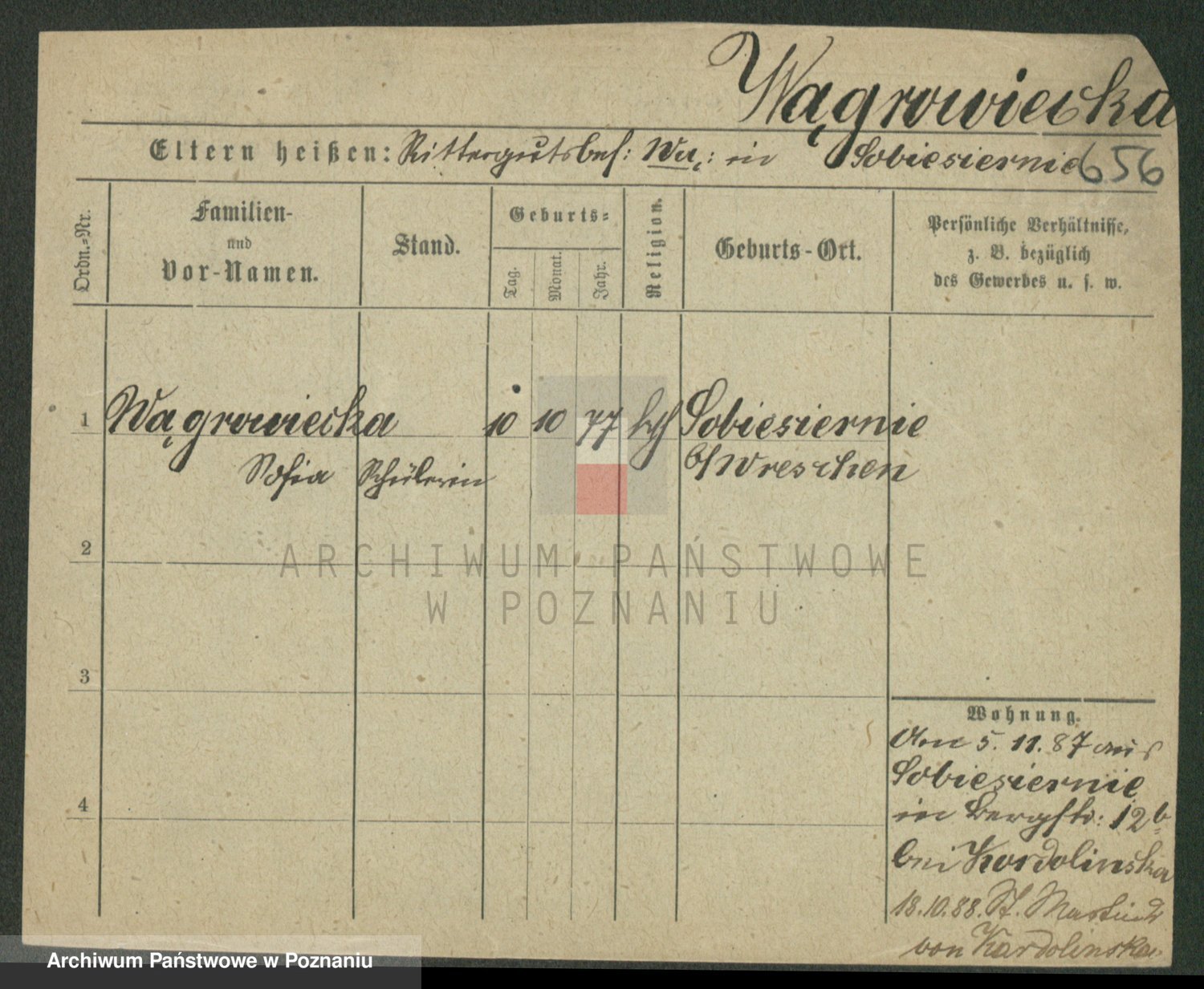 Podgląd karty osobowej dostępny jest po kliknięciu na nazwisko lub ikonkę karty. Można dokonywać powiększenia (ikony na górze) lub przechodzić między kolejnymi skanami (strzałki po bokach).