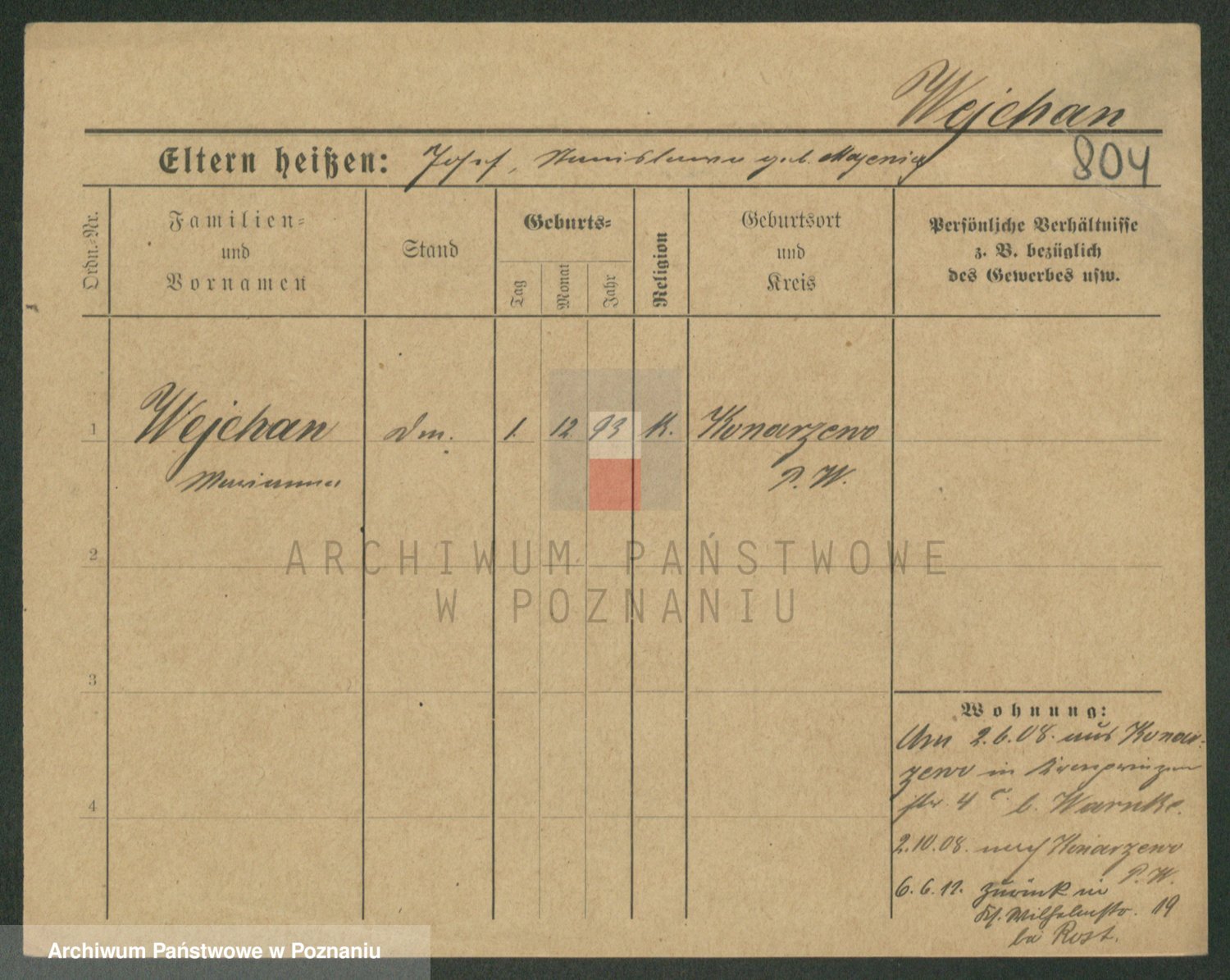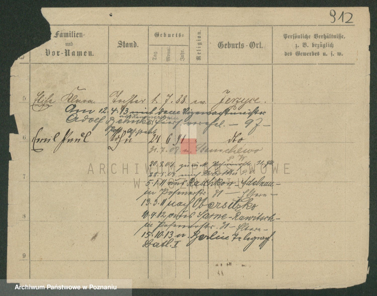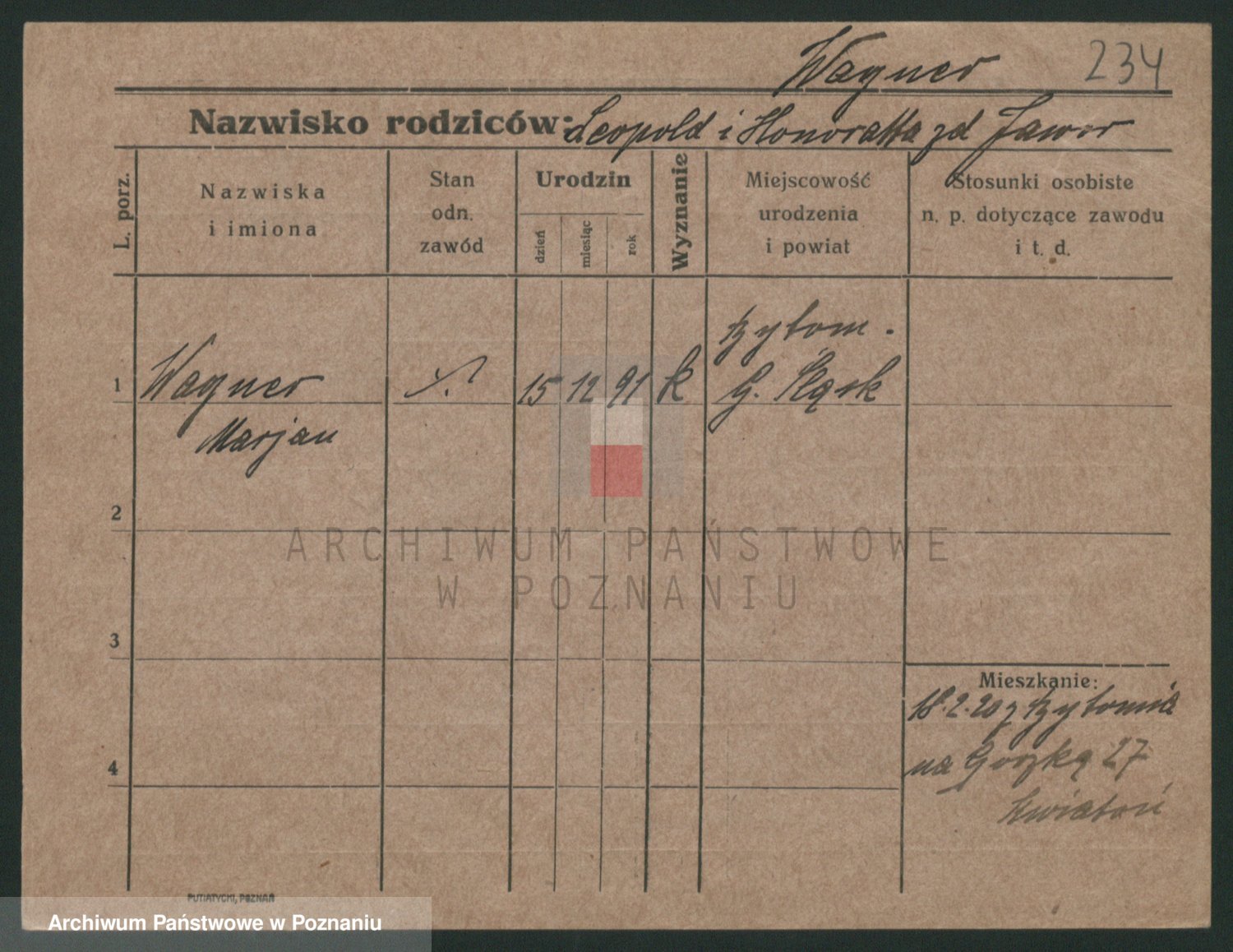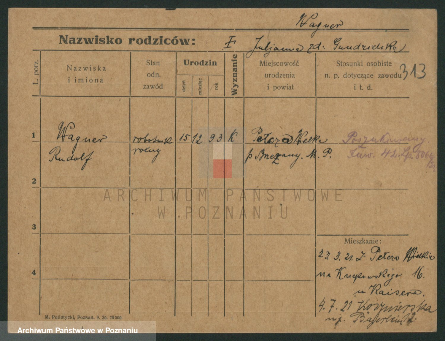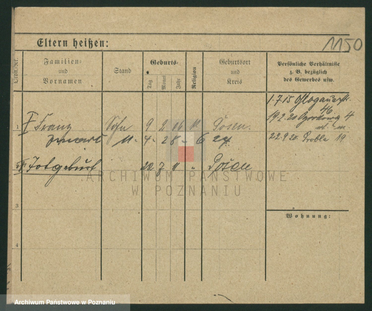 Podgląd karty osobowej dostępny jest po kliknięciu na nazwisko lub ikonkę karty. Można dokonywać powiększenia (ikony na górze) lub przechodzić między kolejnymi skanami (strzałki po bokach).