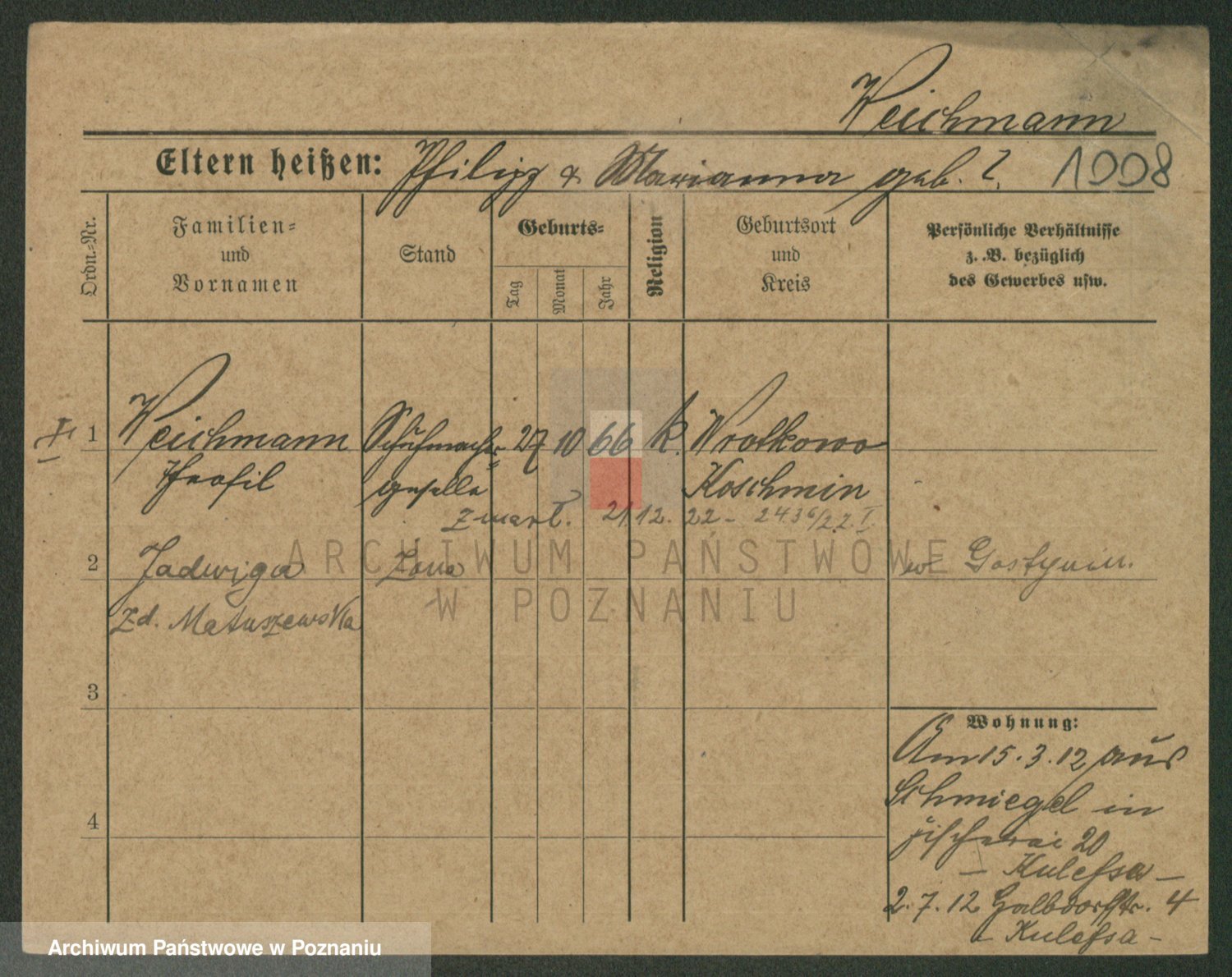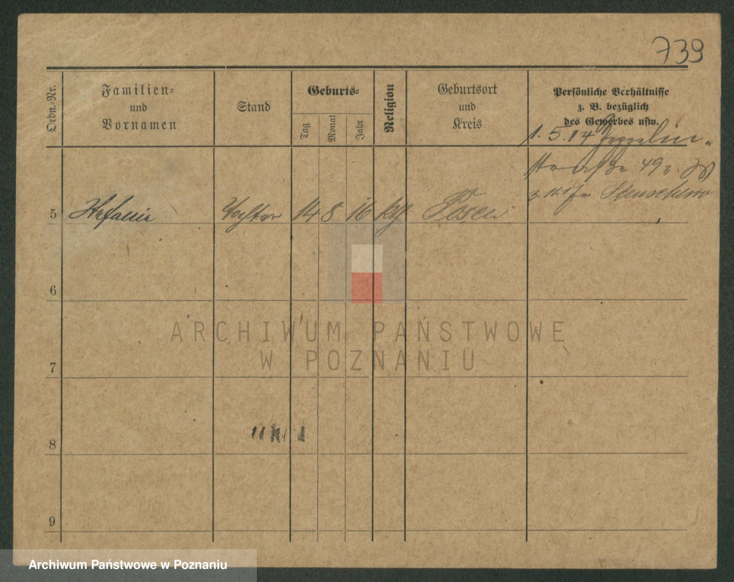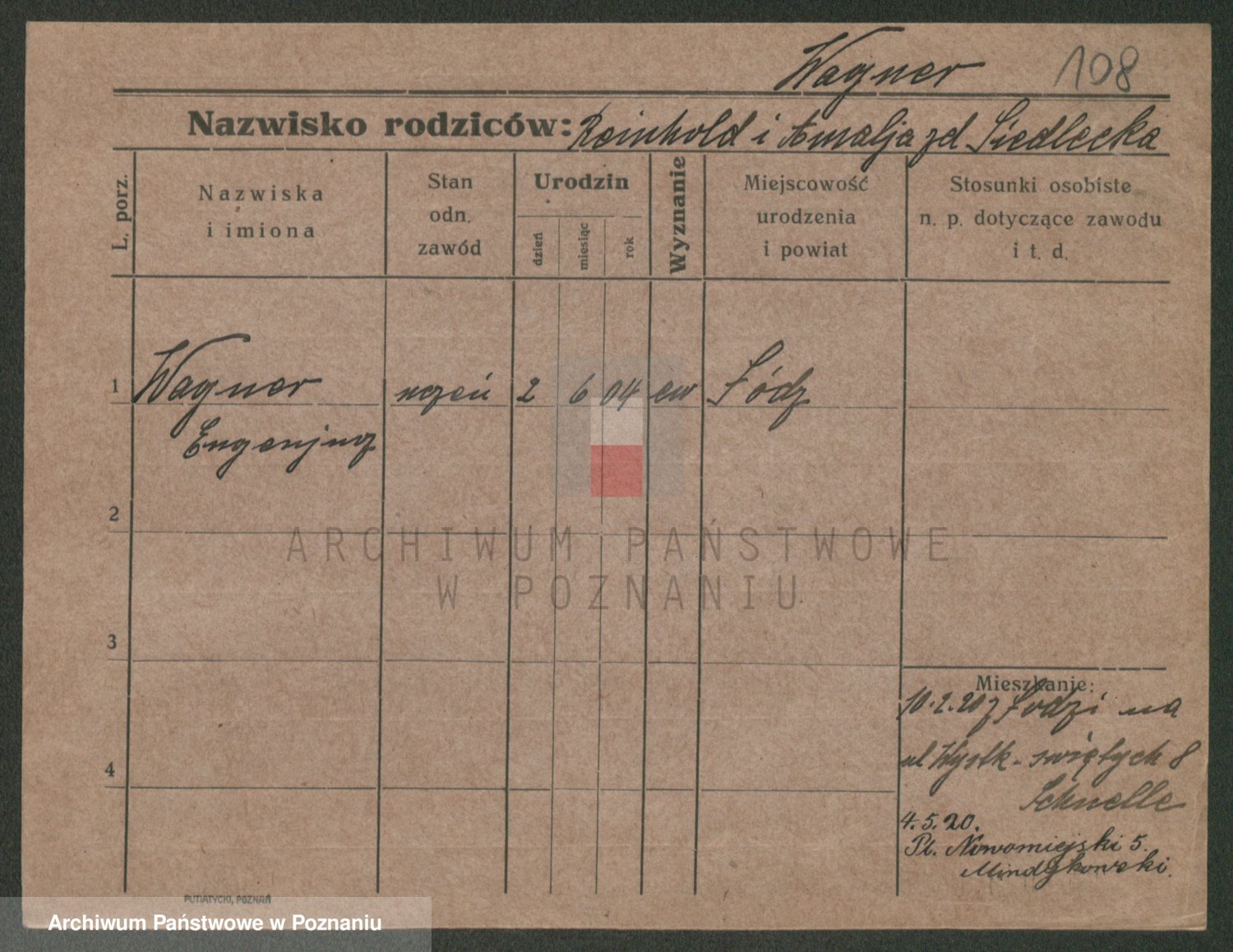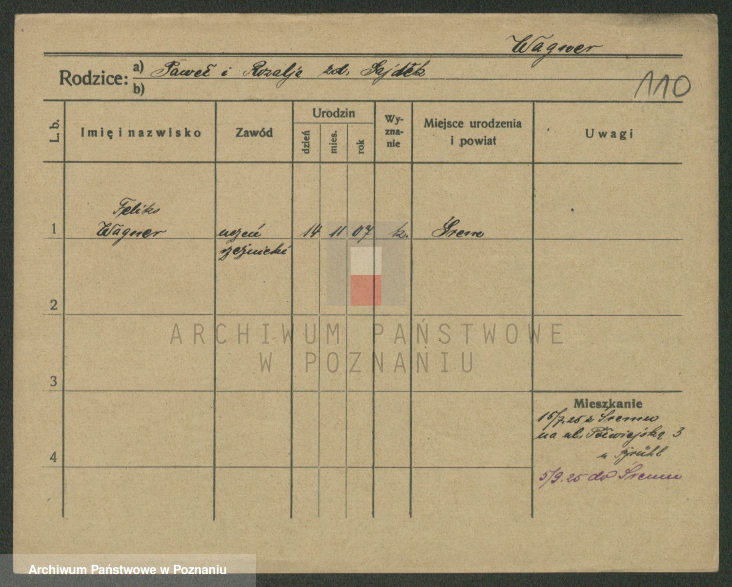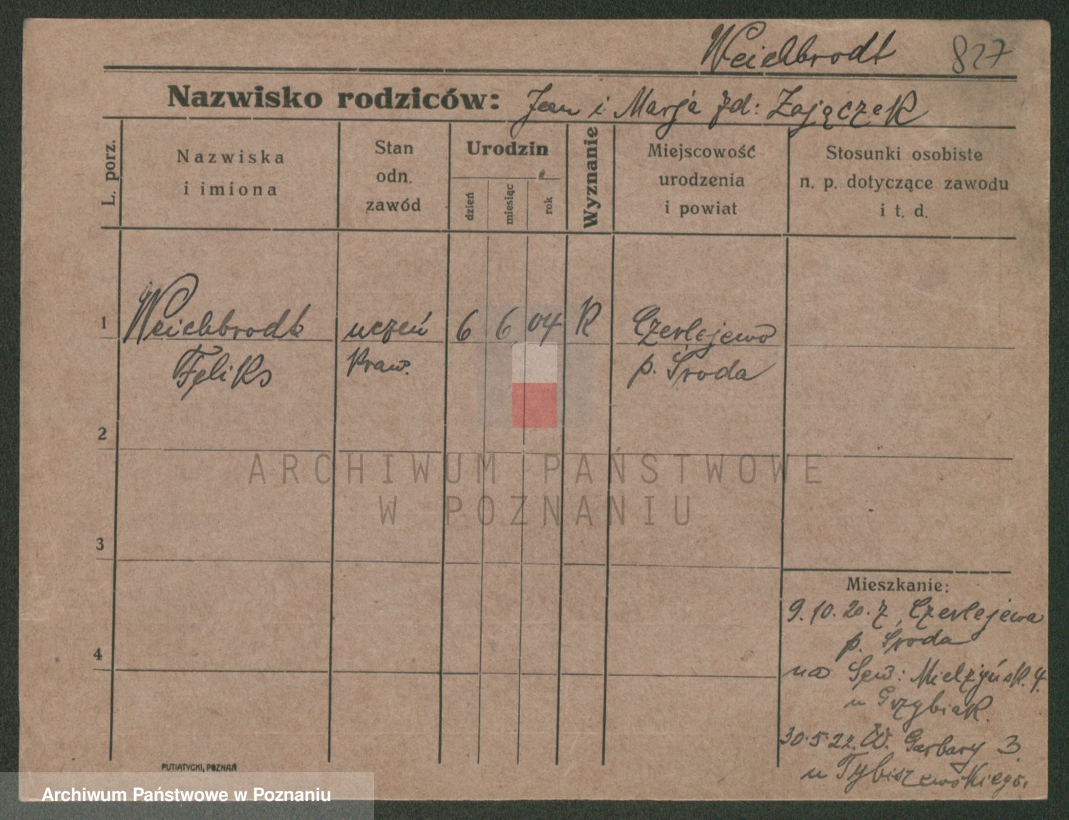 Podgląd karty osobowej dostępny jest po kliknięciu na nazwisko lub ikonkę karty. Można dokonywać powiększenia (ikony na górze) lub przechodzić między kolejnymi skanami (strzałki po bokach).