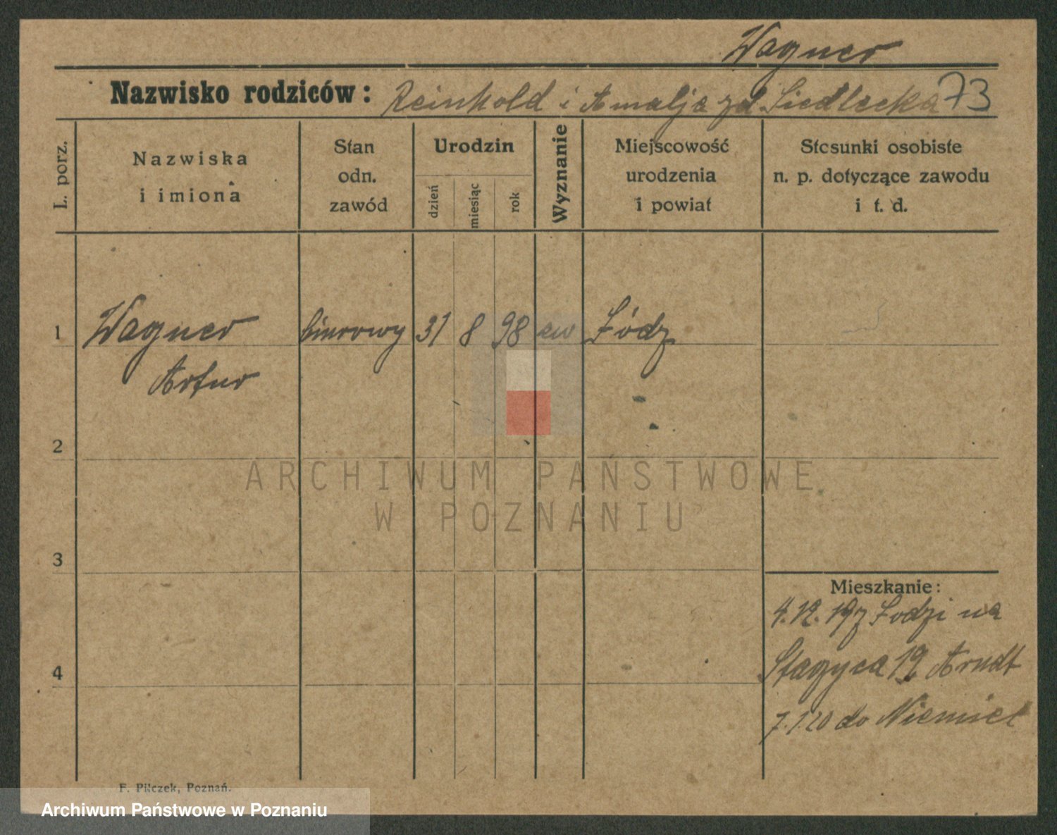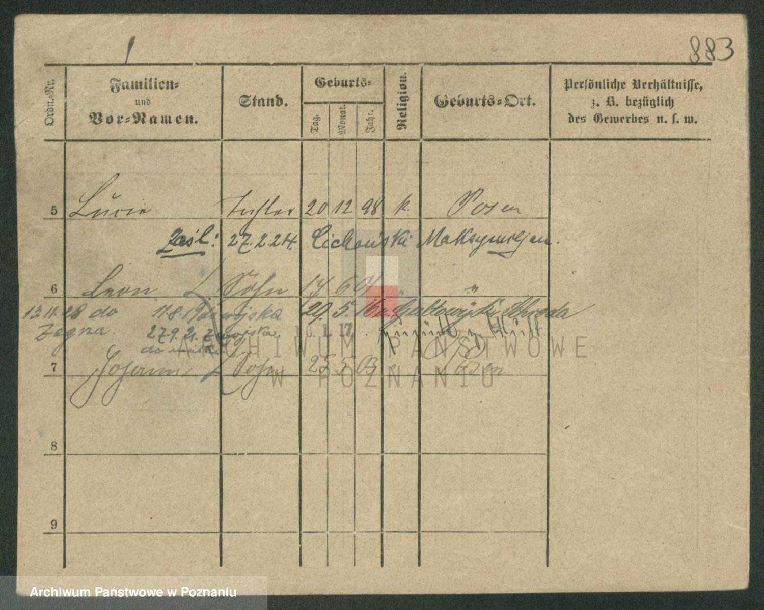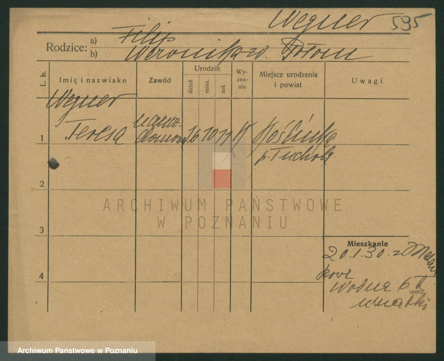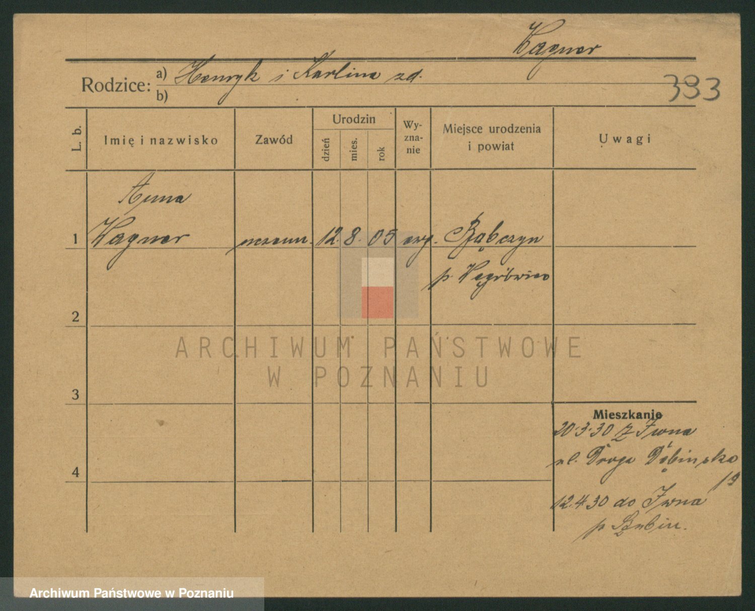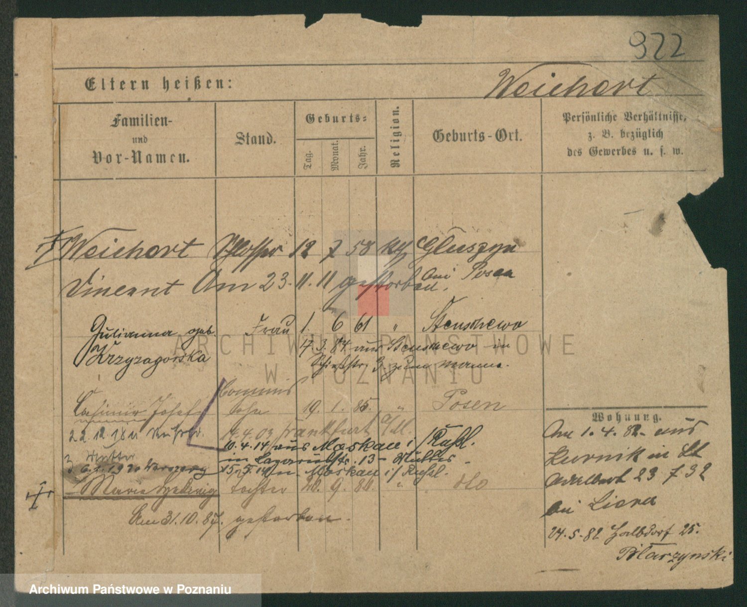 Podgląd karty osobowej dostępny jest po kliknięciu na nazwisko lub ikonkę karty. Można dokonywać powiększenia (ikony na górze) lub przechodzić między kolejnymi skanami (strzałki po bokach).