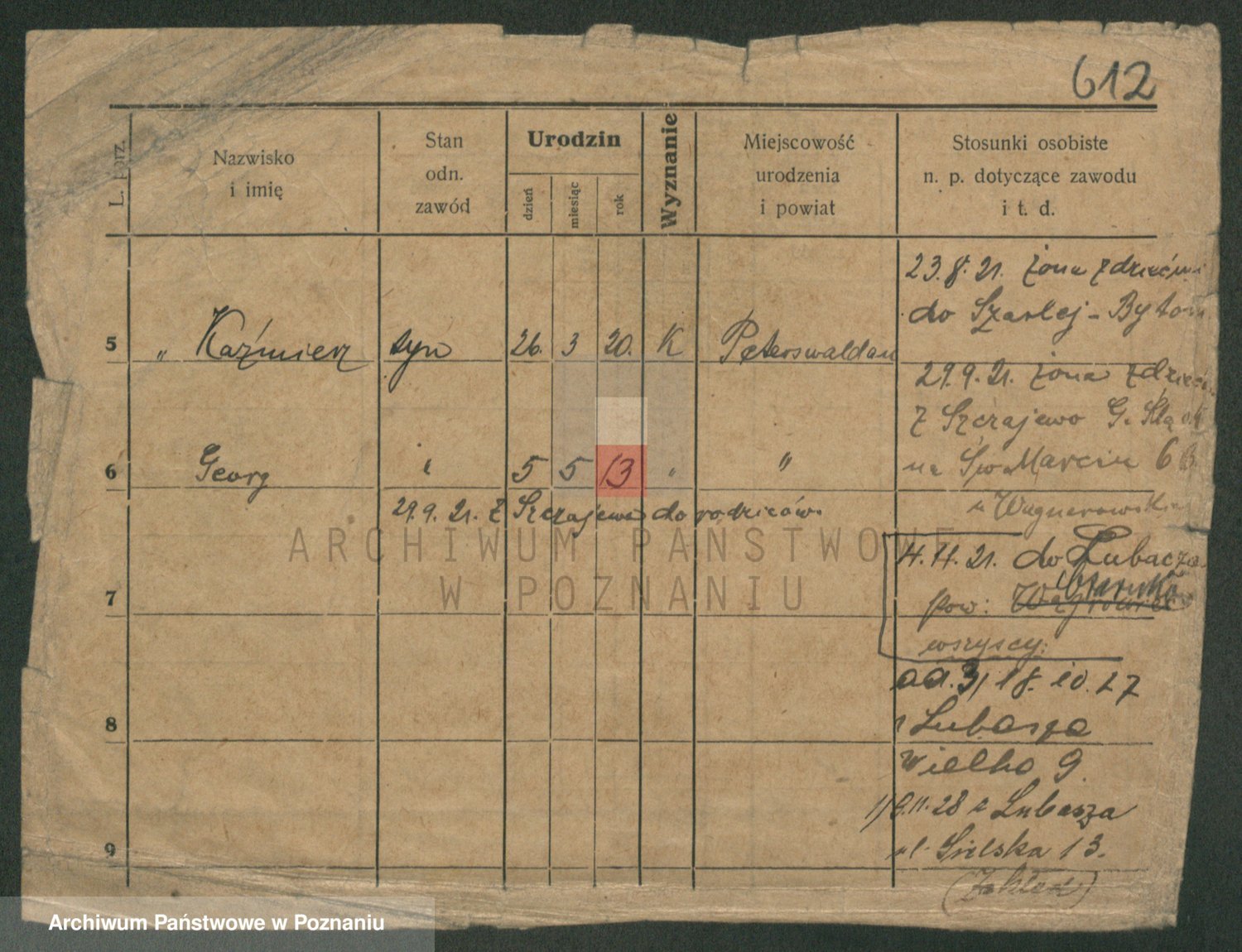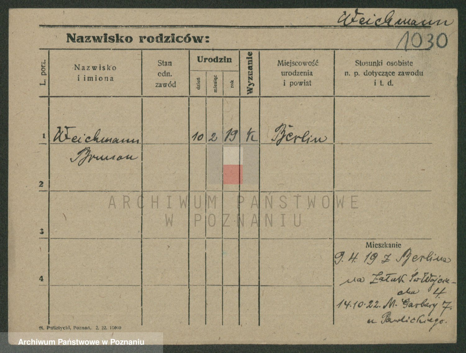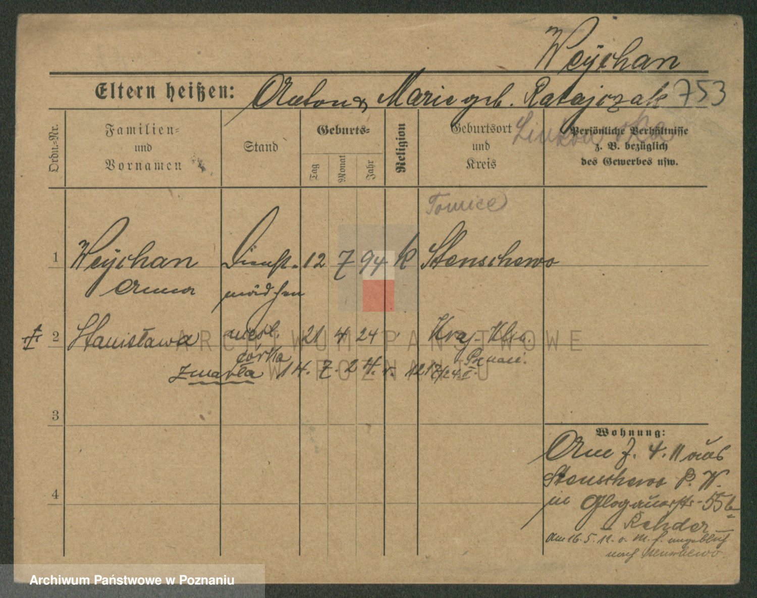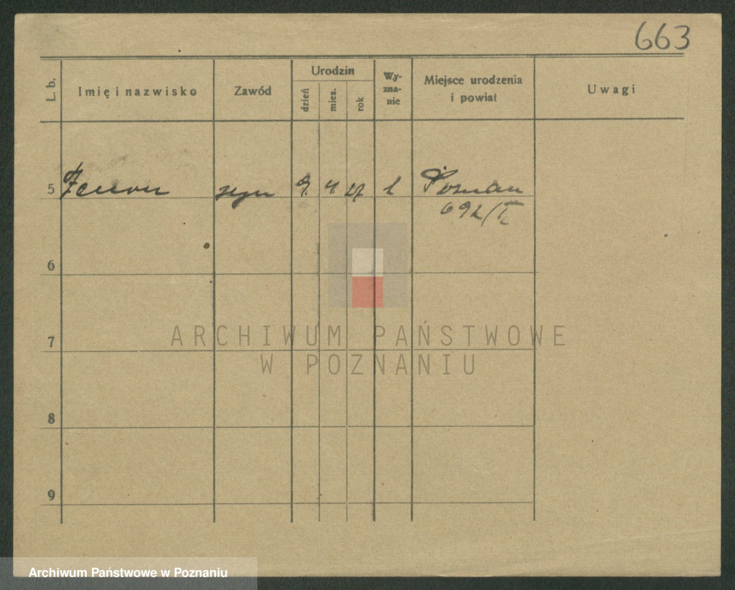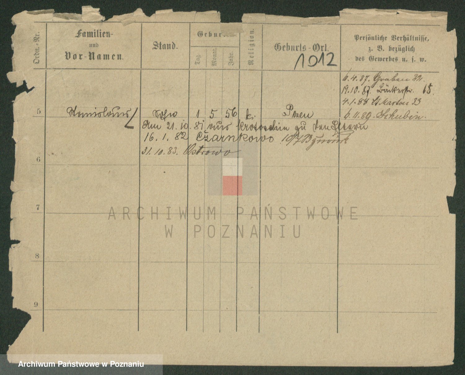 Podgląd karty osobowej dostępny jest po kliknięciu na nazwisko lub ikonkę karty. Można dokonywać powiększenia (ikony na górze) lub przechodzić między kolejnymi skanami (strzałki po bokach).