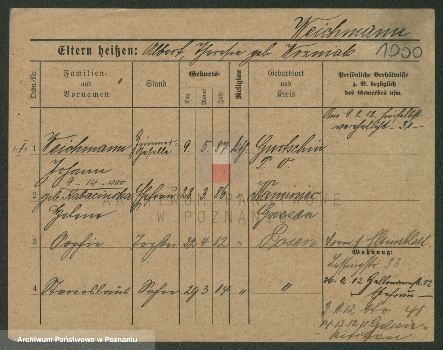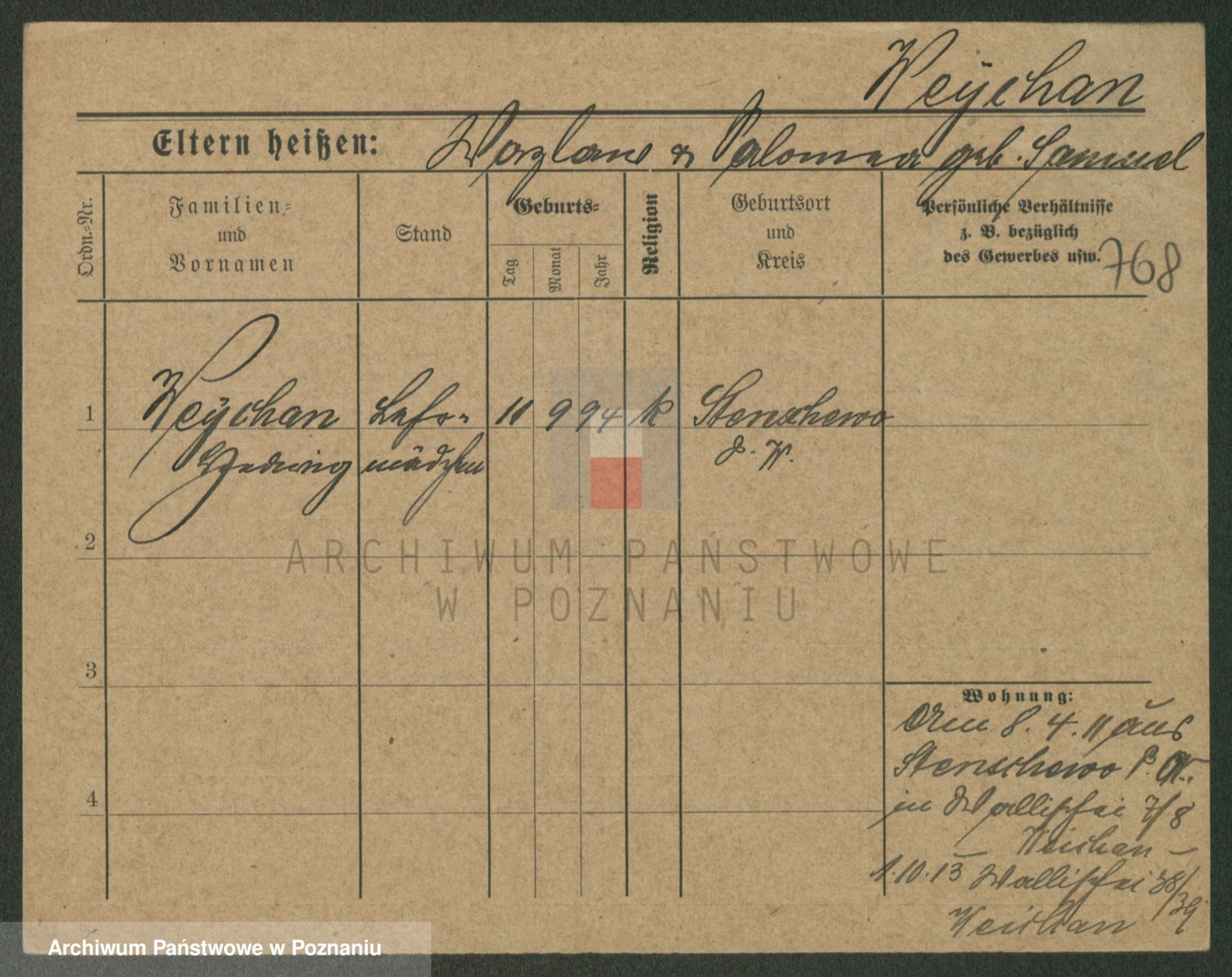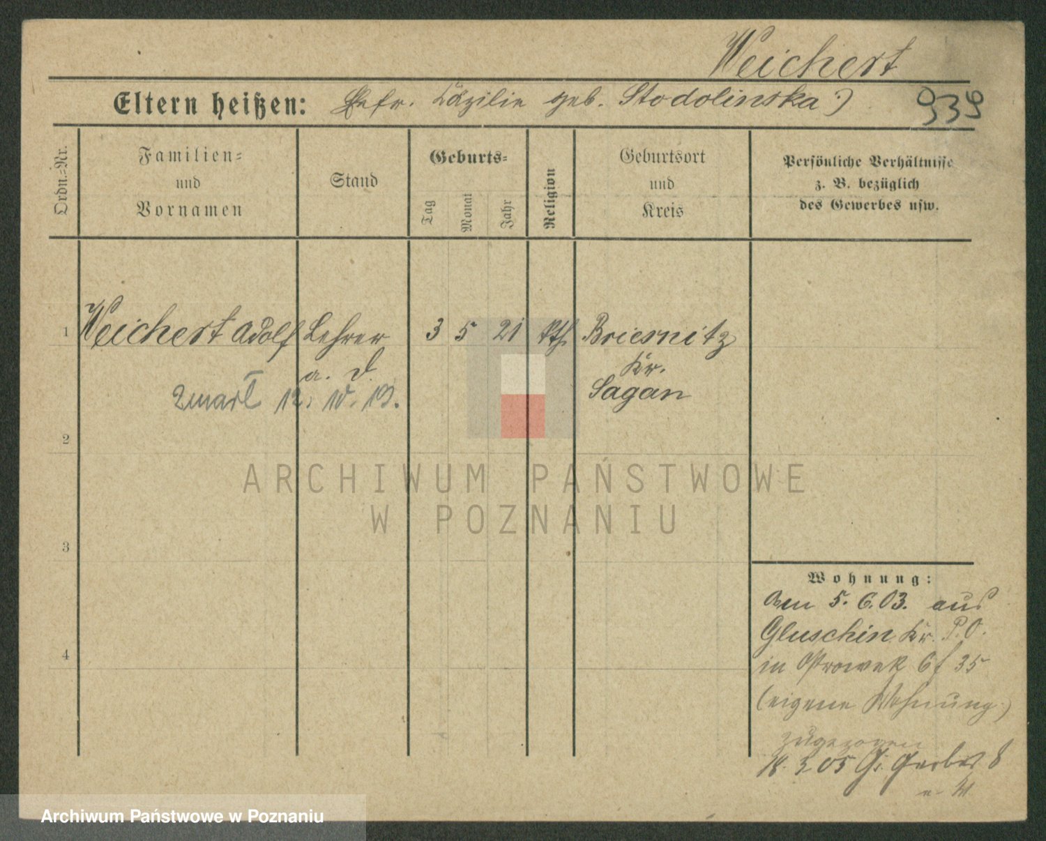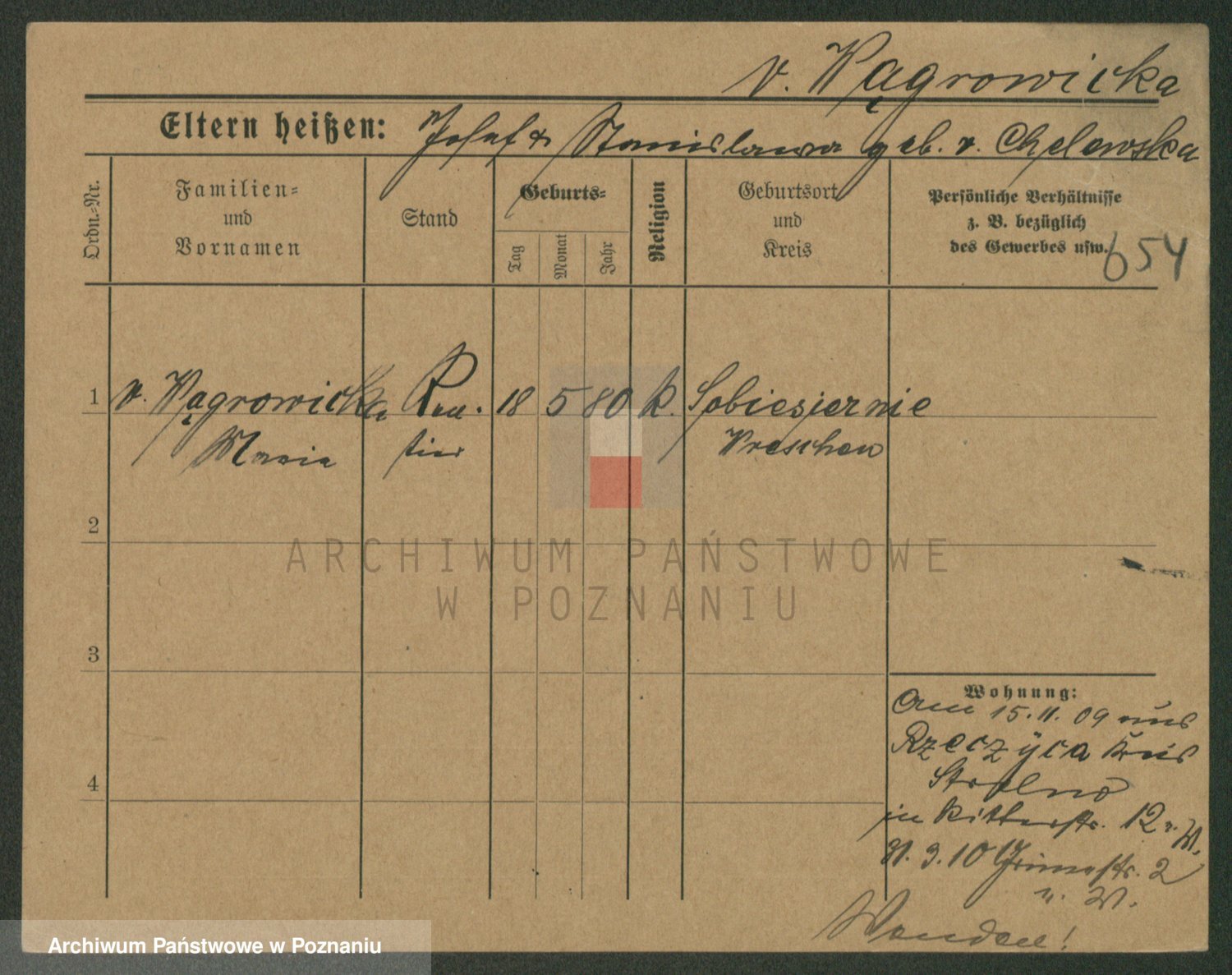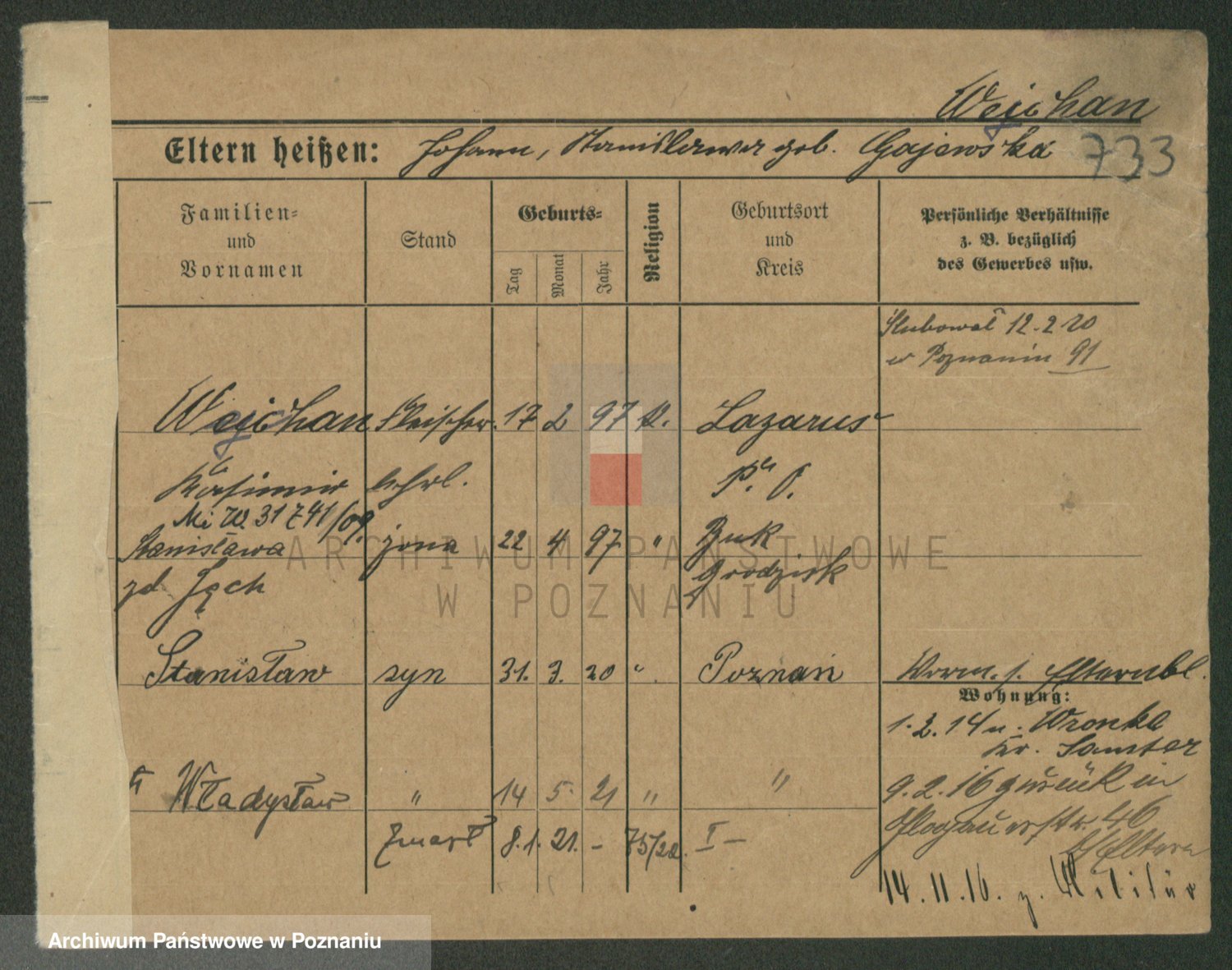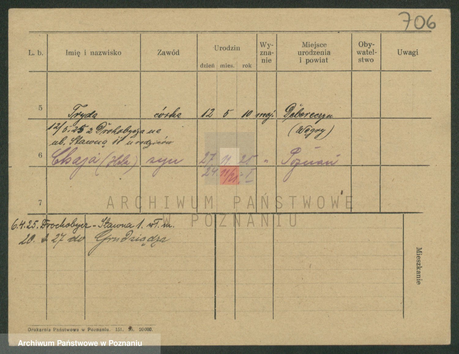 Podgląd karty osobowej dostępny jest po kliknięciu na nazwisko lub ikonkę karty. Można dokonywać powiększenia (ikony na górze) lub przechodzić między kolejnymi skanami (strzałki po bokach).