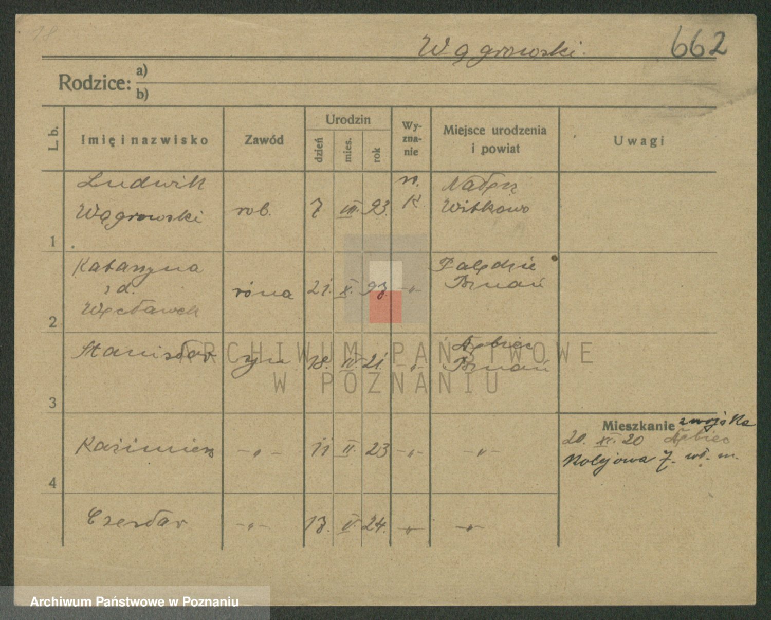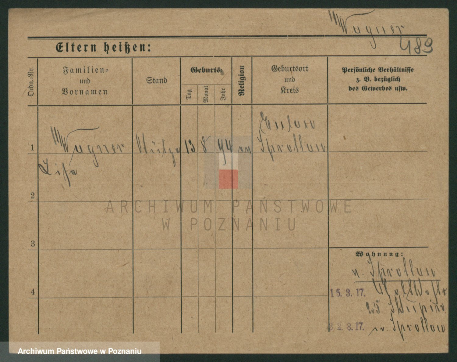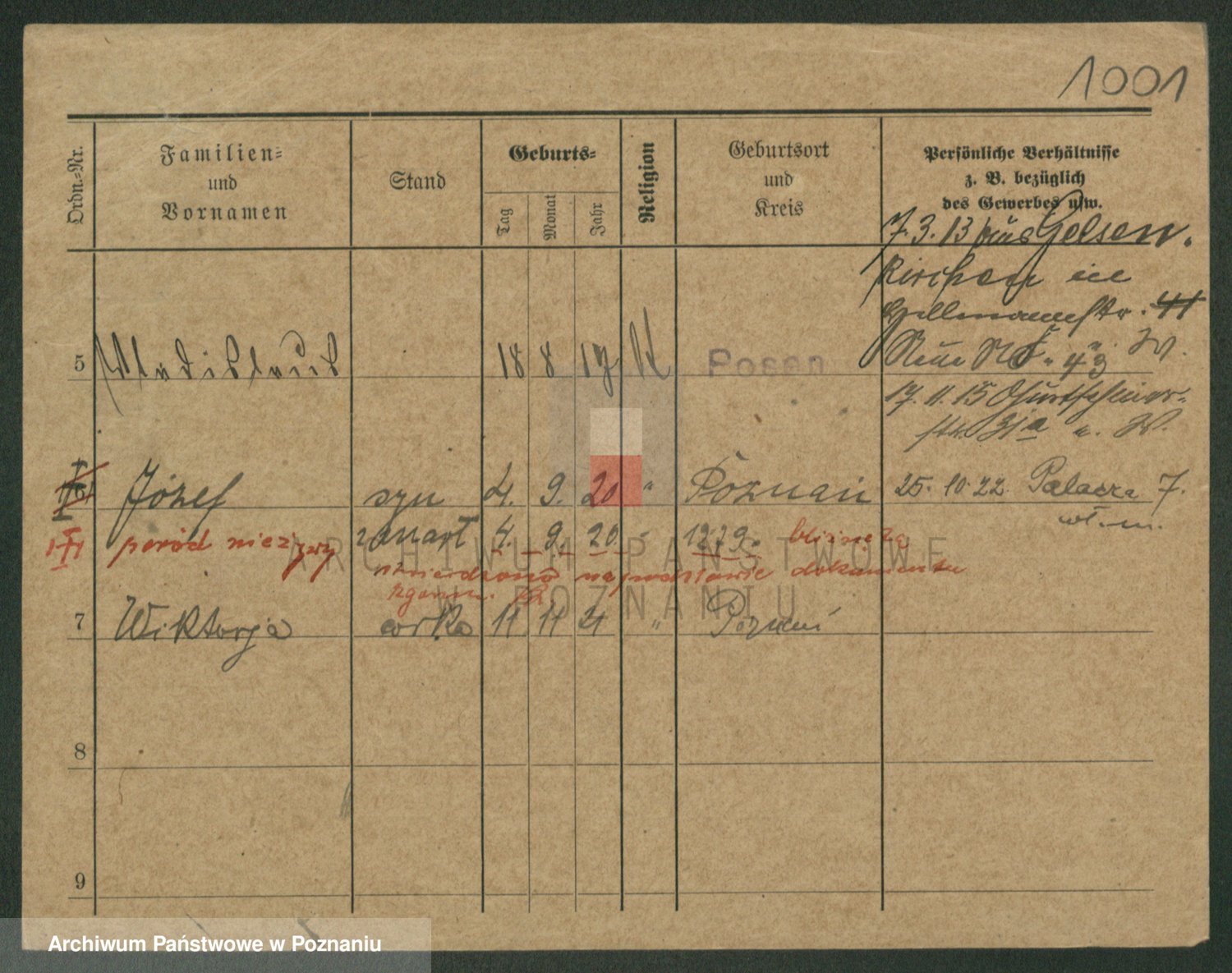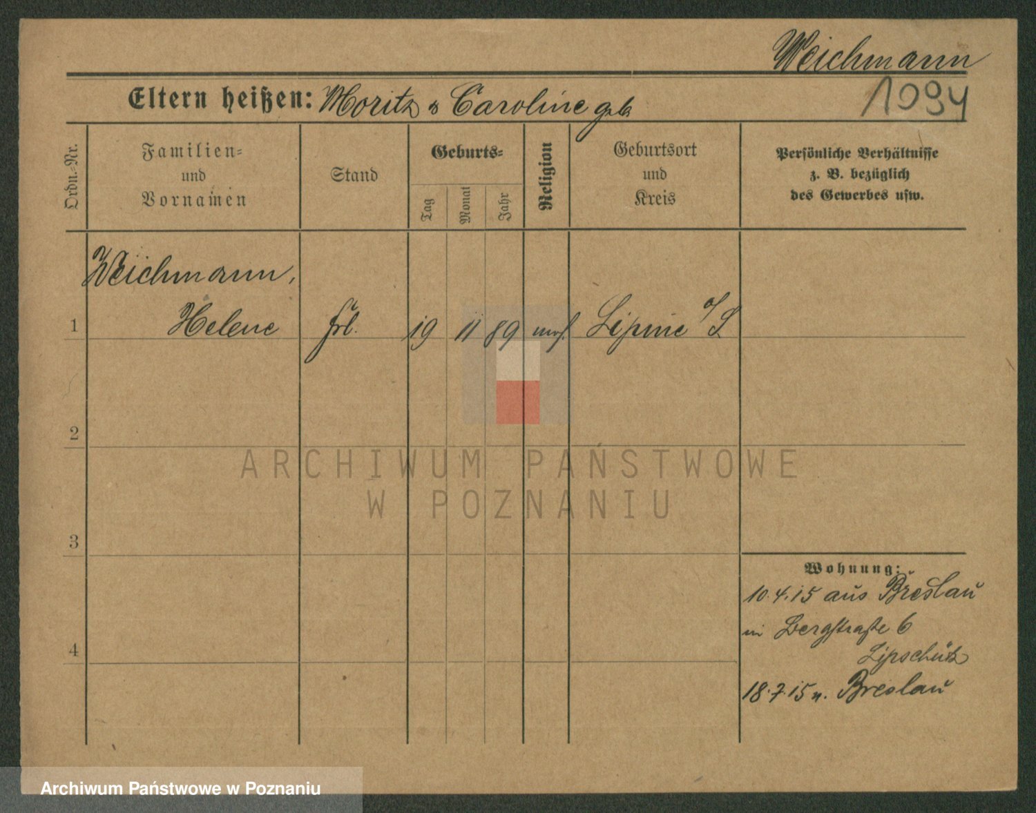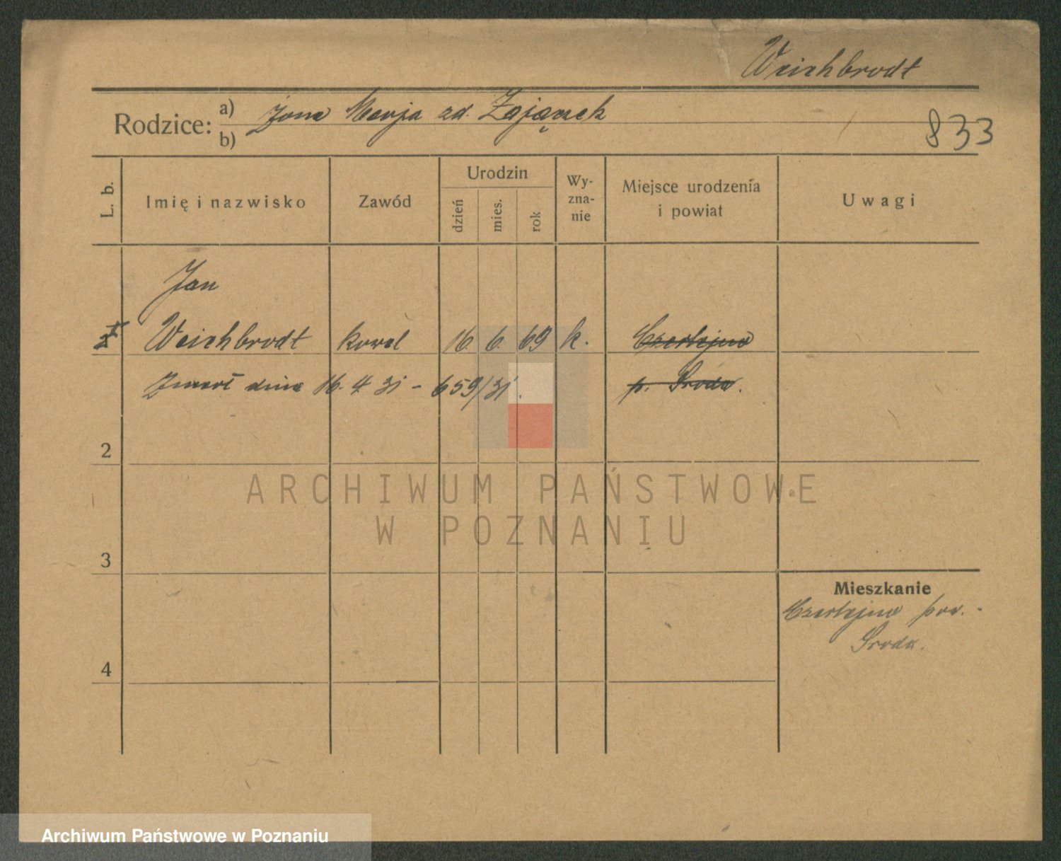 Podgląd karty osobowej dostępny jest po kliknięciu na nazwisko lub ikonkę karty. Można dokonywać powiększenia (ikony na górze) lub przechodzić między kolejnymi skanami (strzałki po bokach).