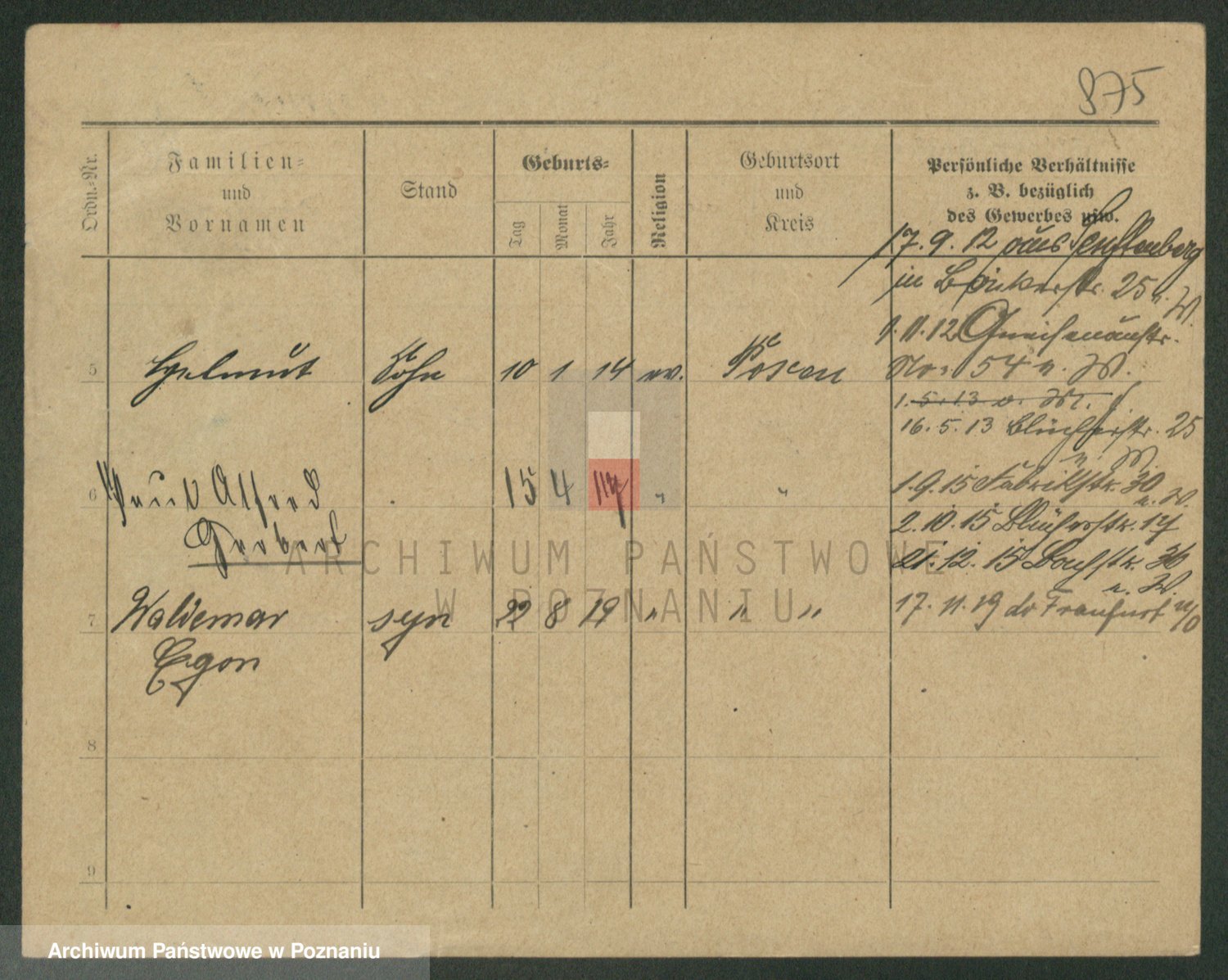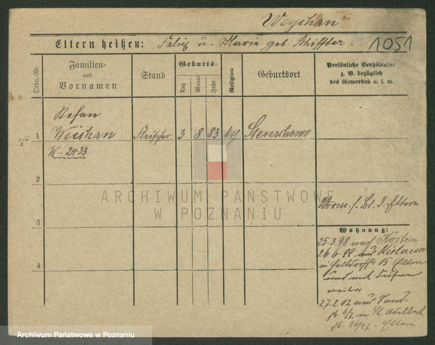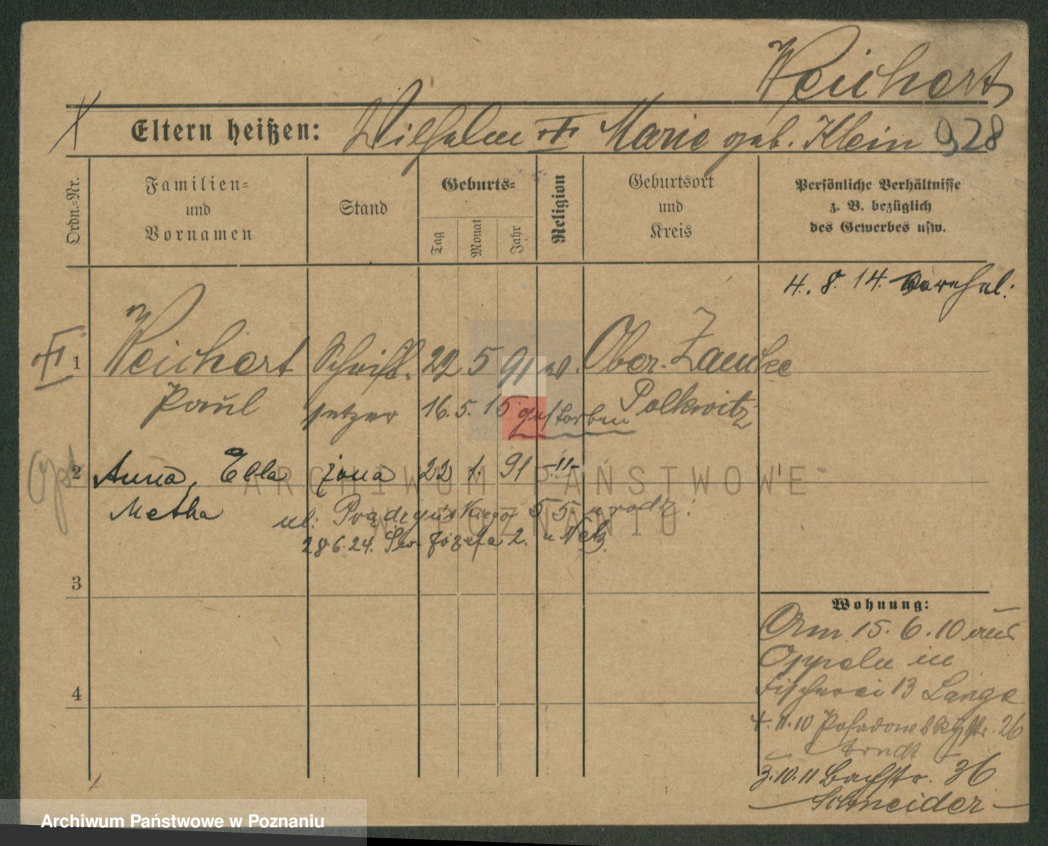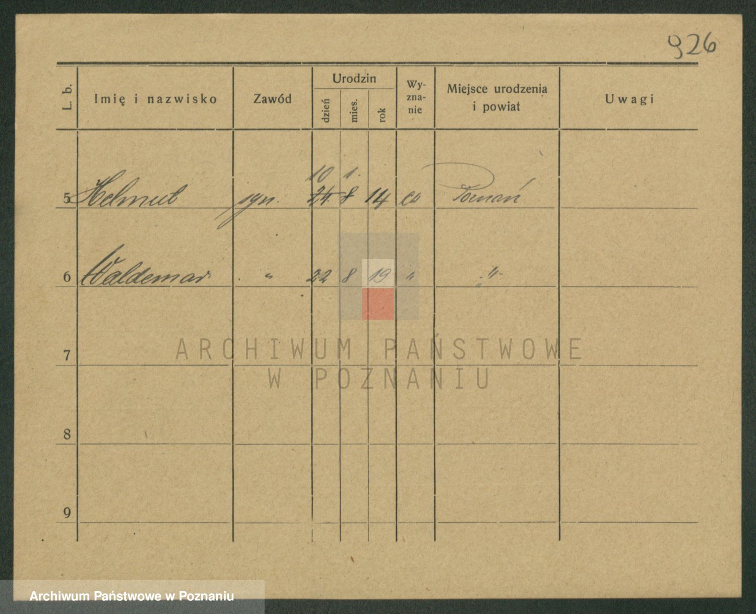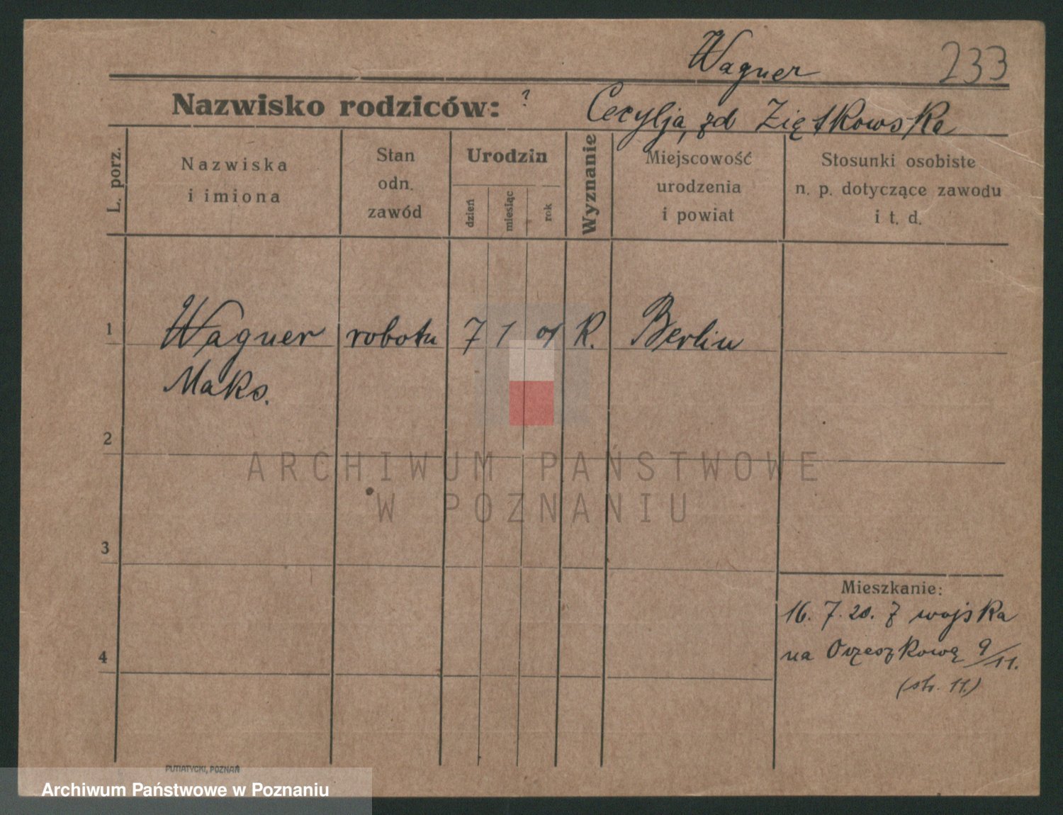 Podgląd karty osobowej dostępny jest po kliknięciu na nazwisko lub ikonkę karty. Można dokonywać powiększenia (ikony na górze) lub przechodzić między kolejnymi skanami (strzałki po bokach).