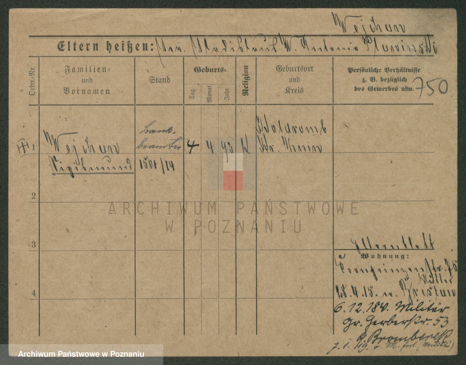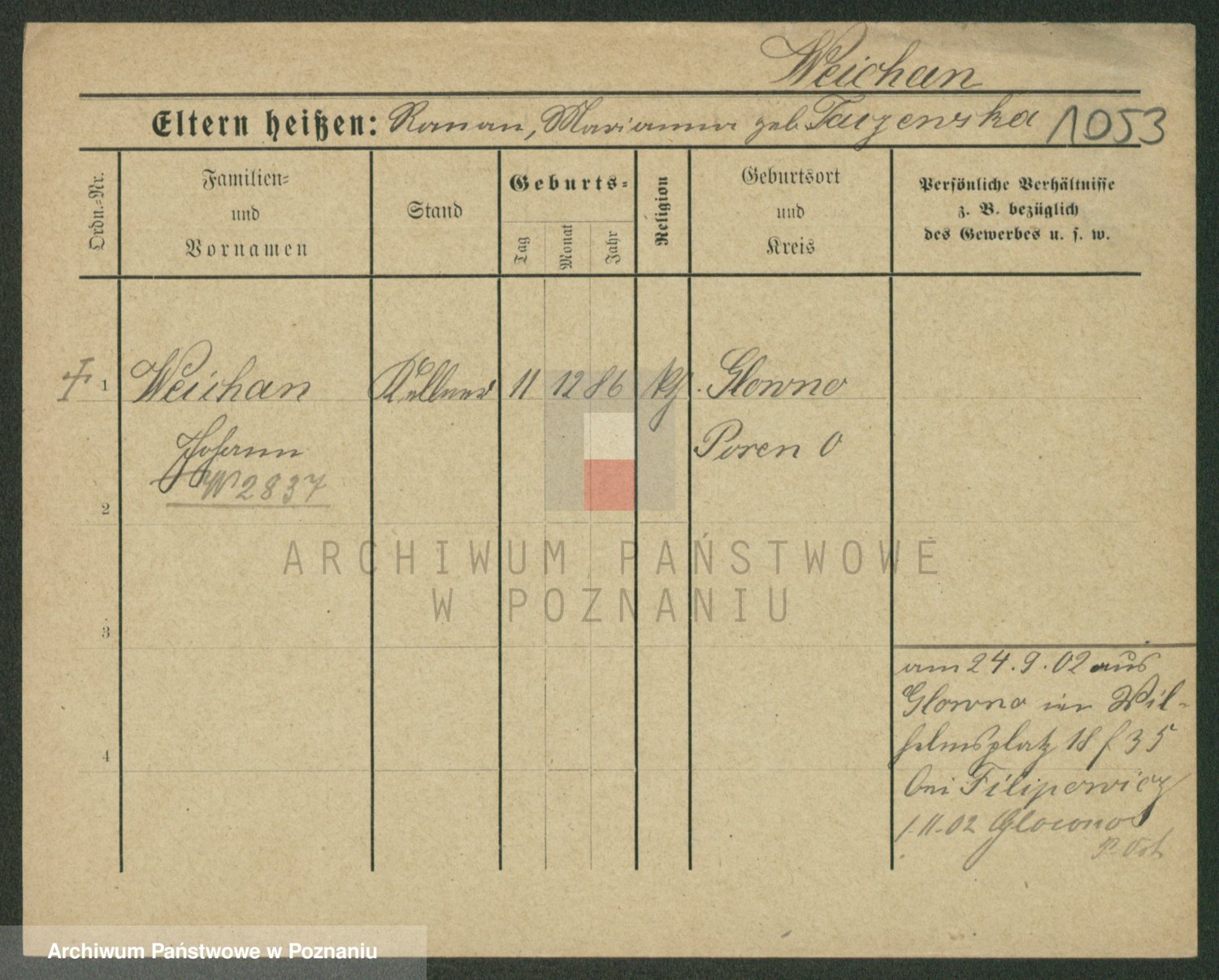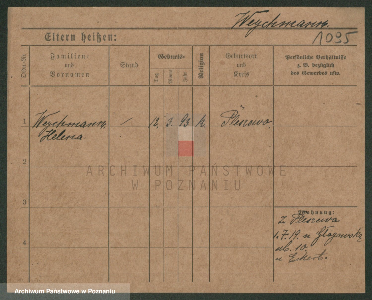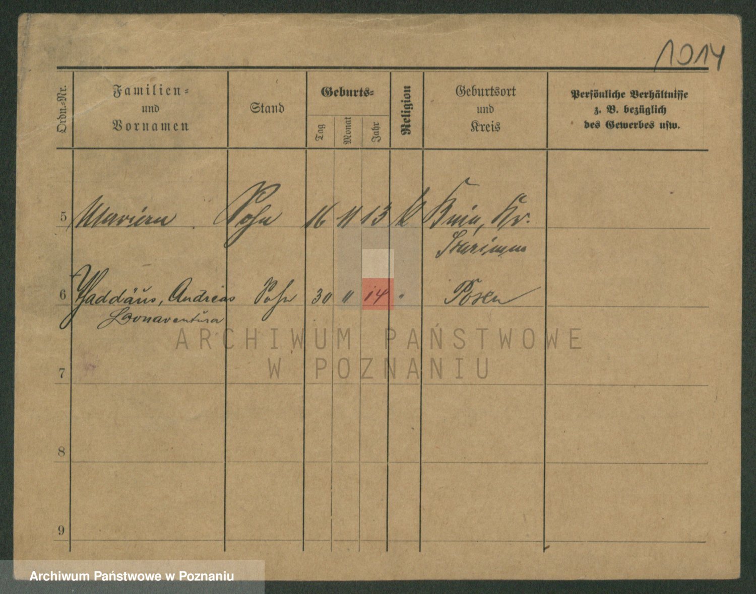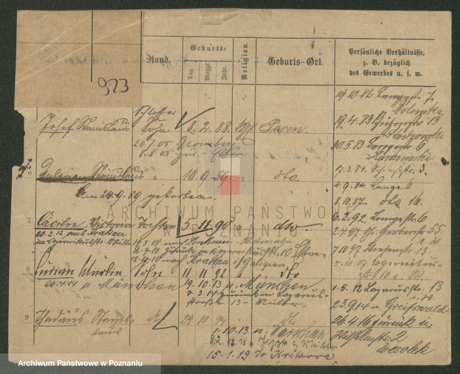 Podgląd karty osobowej dostępny jest po kliknięciu na nazwisko lub ikonkę karty. Można dokonywać powiększenia (ikony na górze) lub przechodzić między kolejnymi skanami (strzałki po bokach).