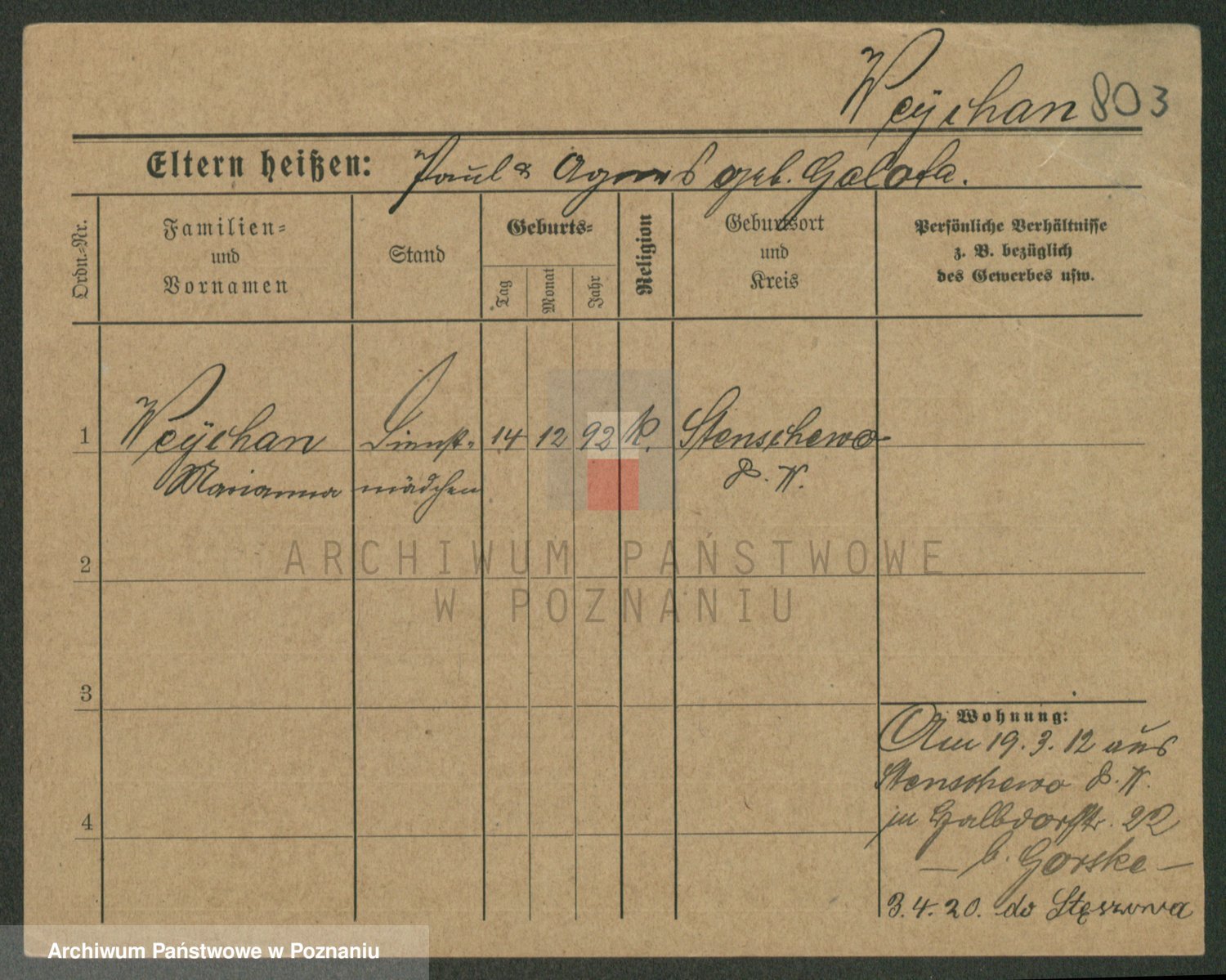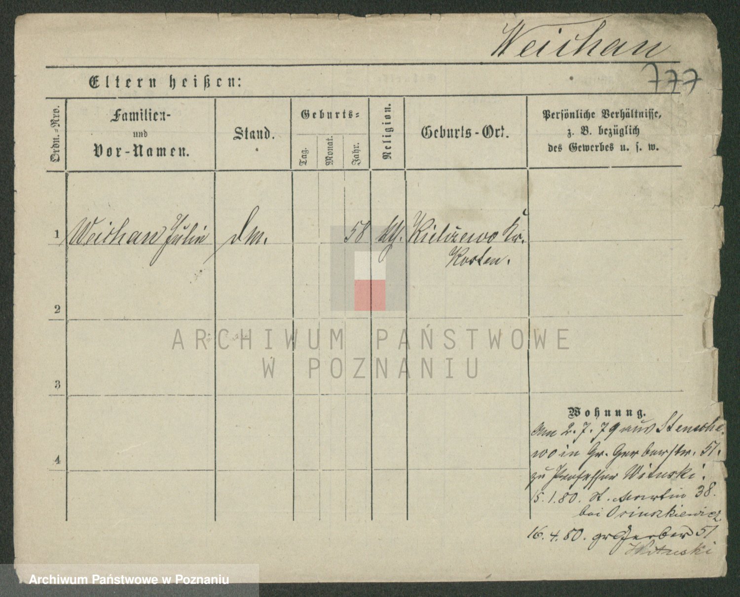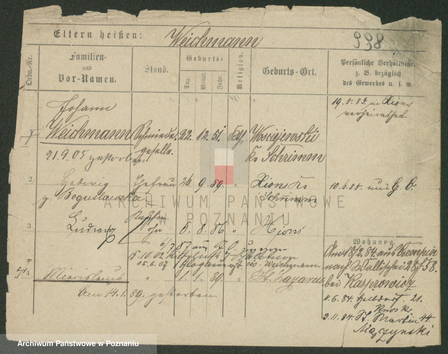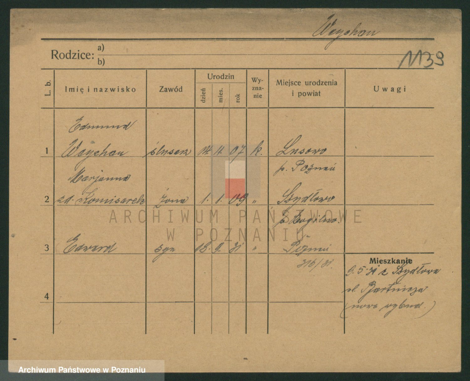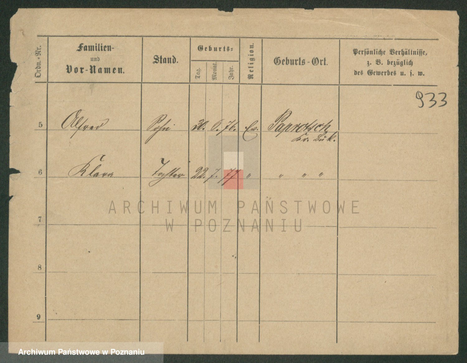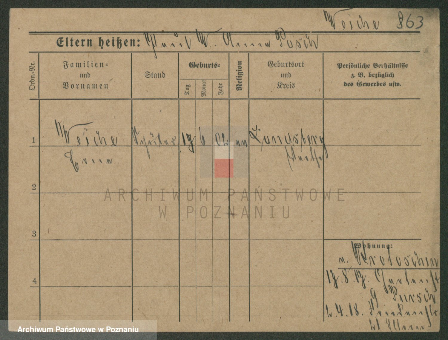 Podgląd karty osobowej dostępny jest po kliknięciu na nazwisko lub ikonkę karty. Można dokonywać powiększenia (ikony na górze) lub przechodzić między kolejnymi skanami (strzałki po bokach).