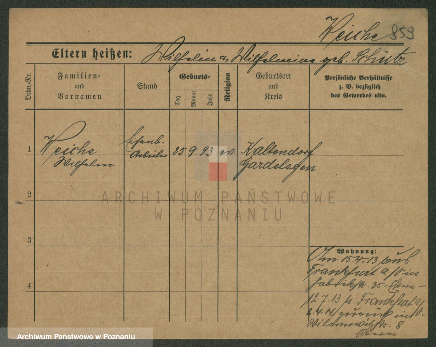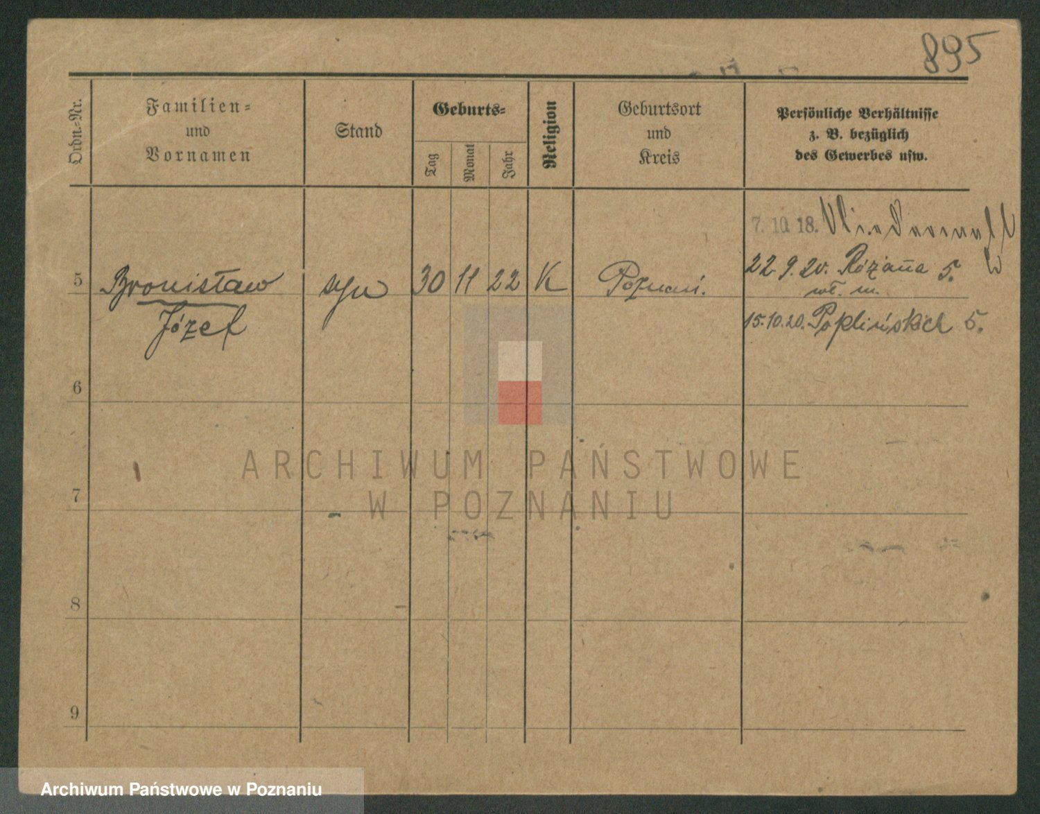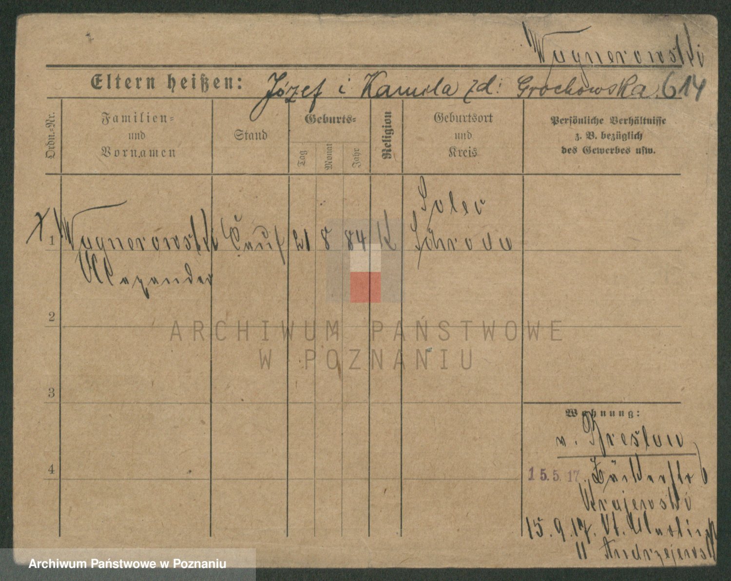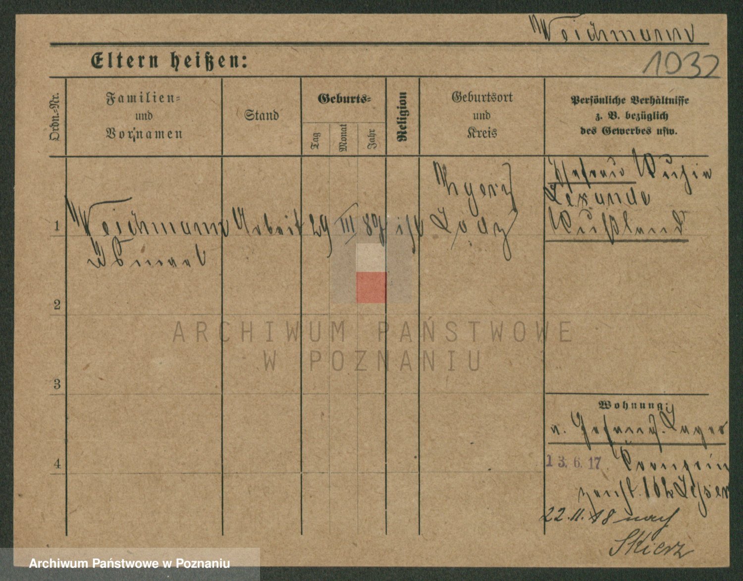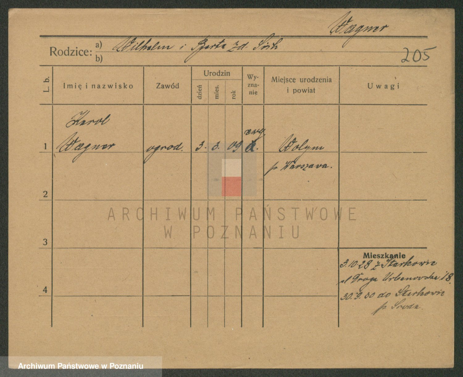 Podgląd karty osobowej dostępny jest po kliknięciu na nazwisko lub ikonkę karty. Można dokonywać powiększenia (ikony na górze) lub przechodzić między kolejnymi skanami (strzałki po bokach).