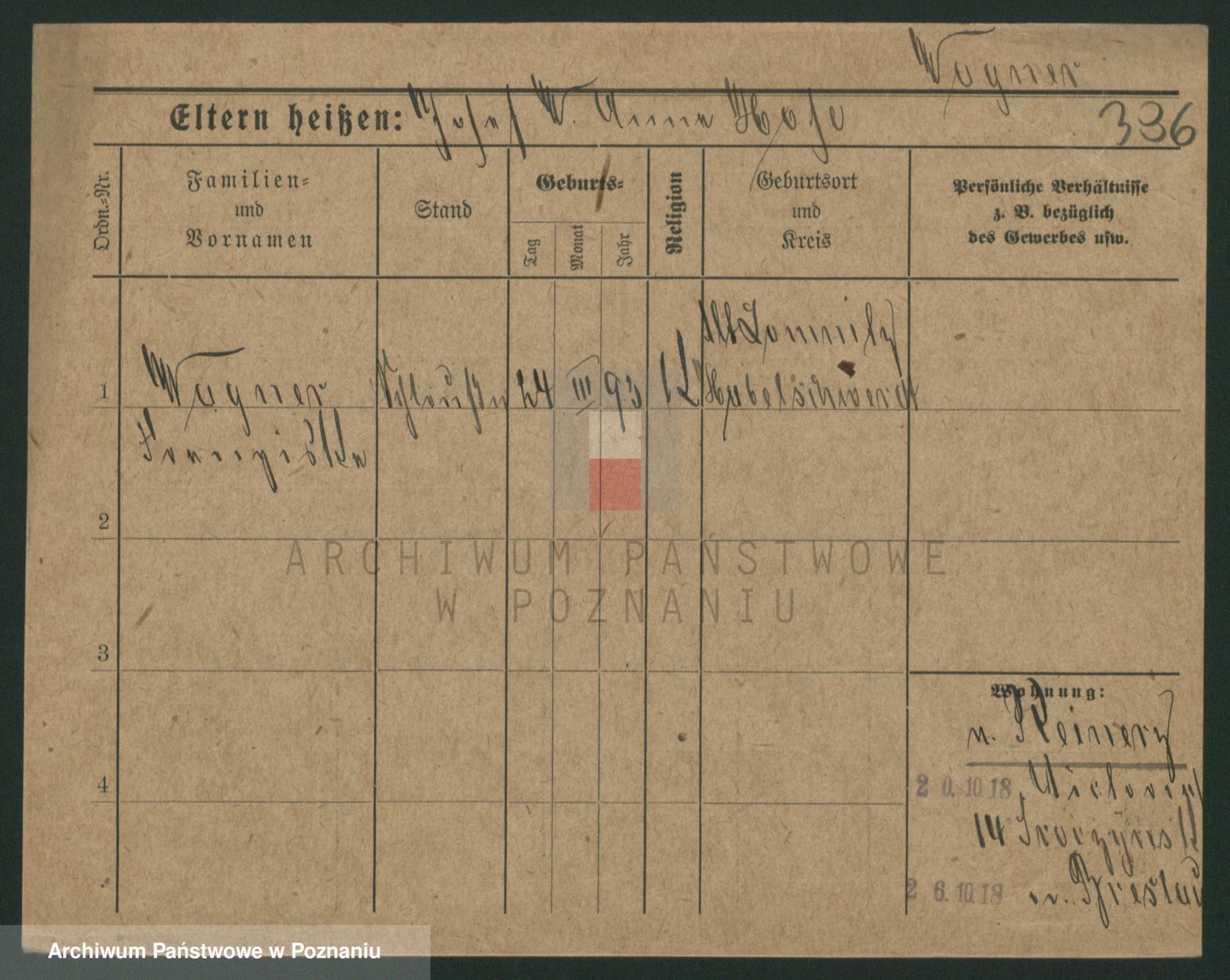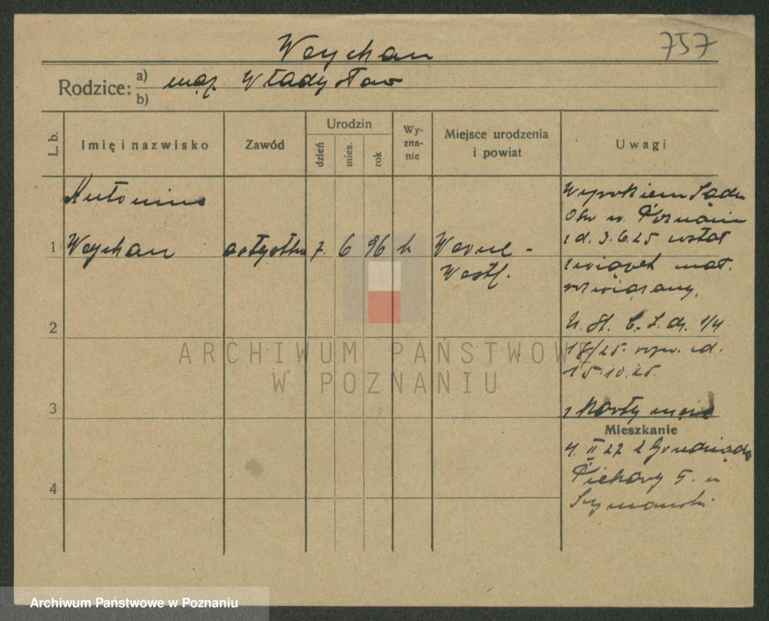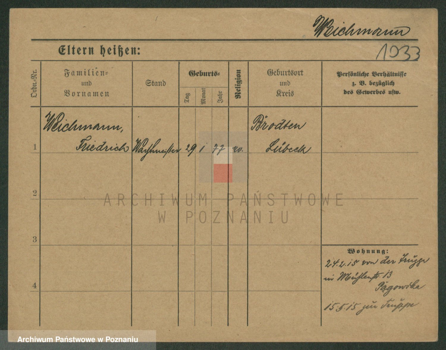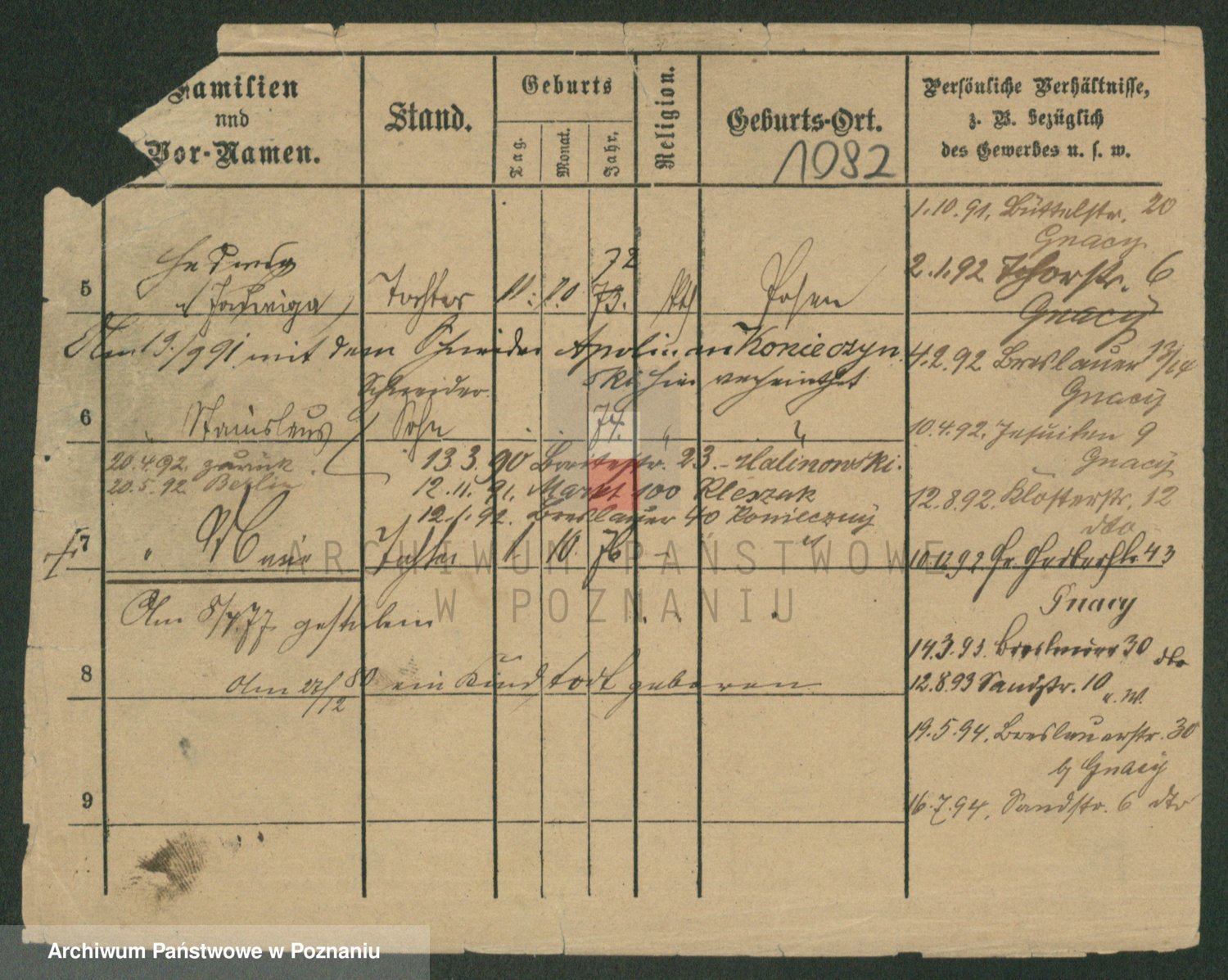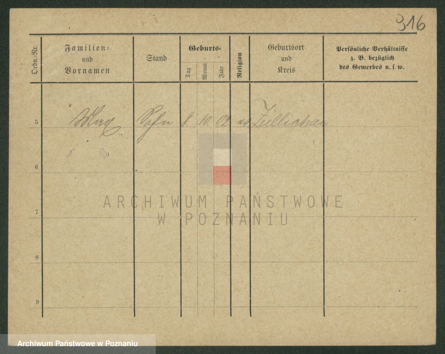 Podgląd karty osobowej dostępny jest po kliknięciu na nazwisko lub ikonkę karty. Można dokonywać powiększenia (ikony na górze) lub przechodzić między kolejnymi skanami (strzałki po bokach).