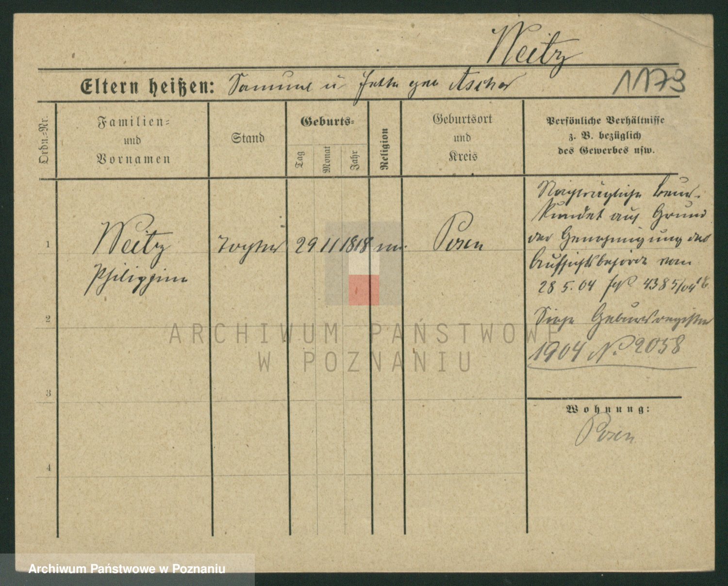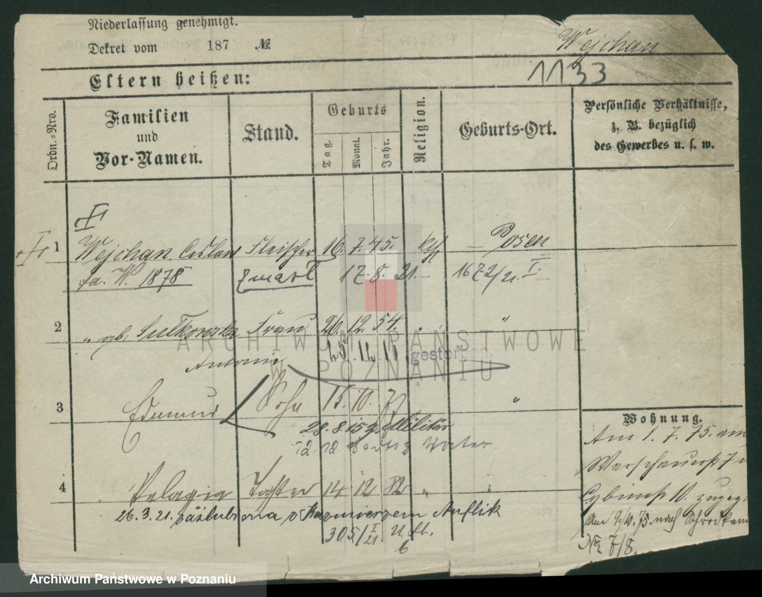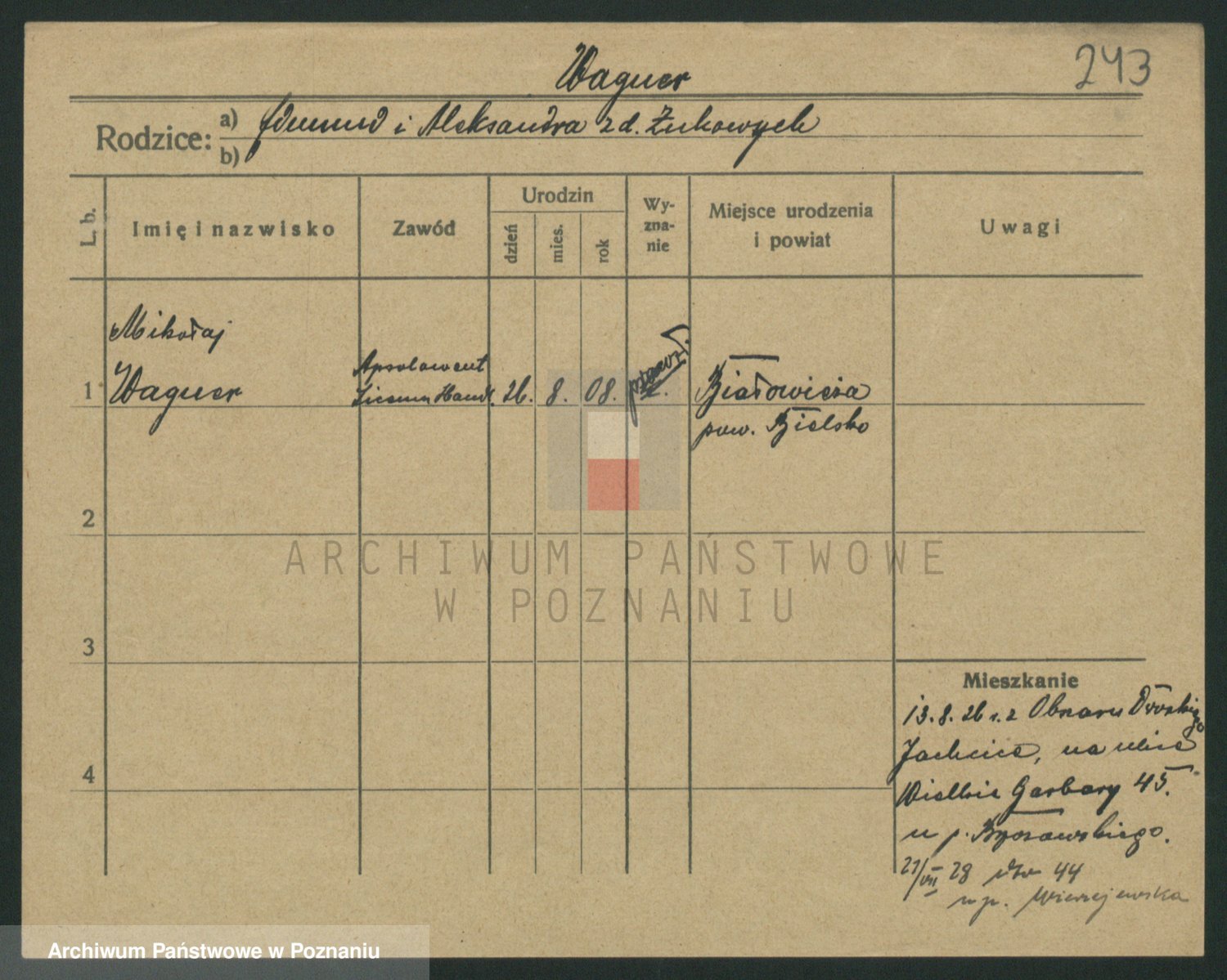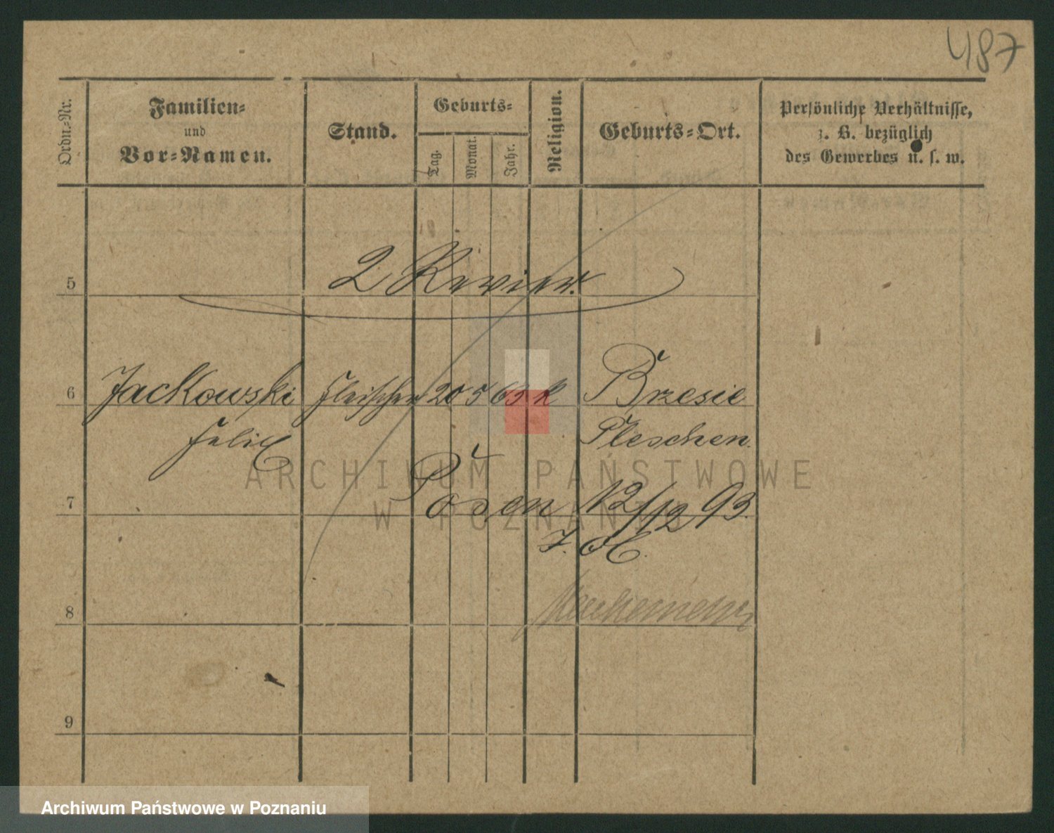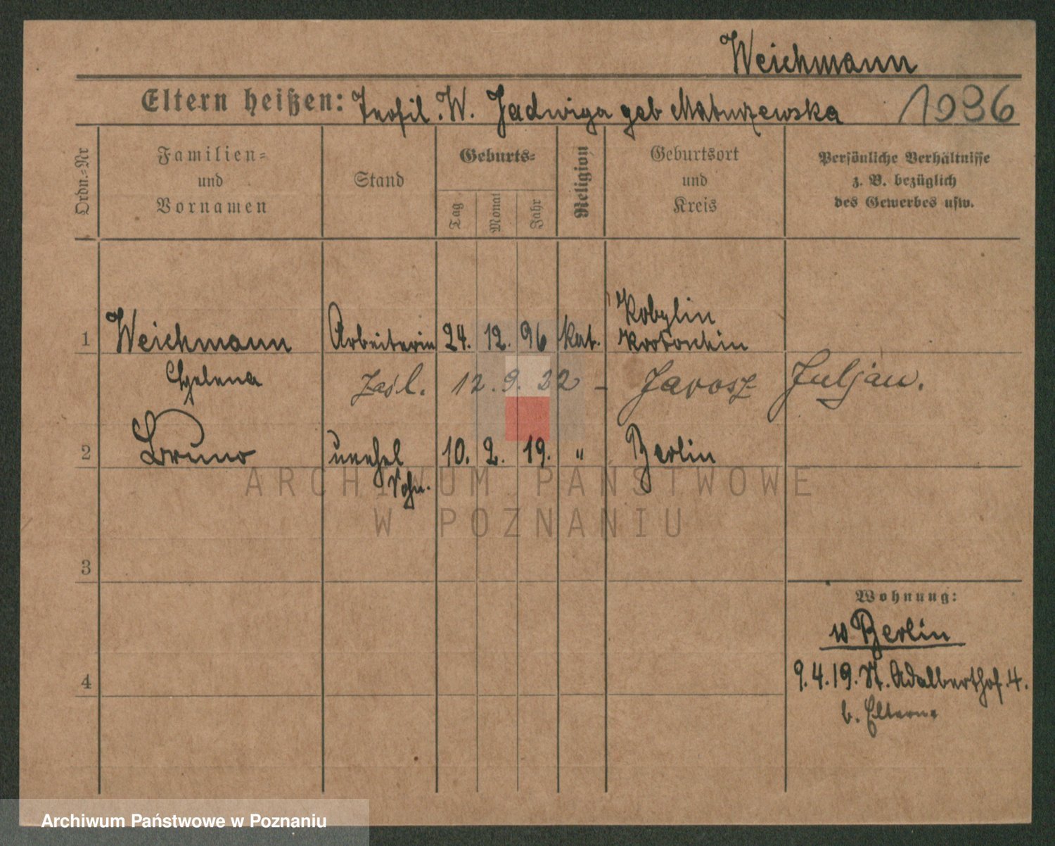 Podgląd karty osobowej dostępny jest po kliknięciu na nazwisko lub ikonkę karty. Można dokonywać powiększenia (ikony na górze) lub przechodzić między kolejnymi skanami (strzałki po bokach).