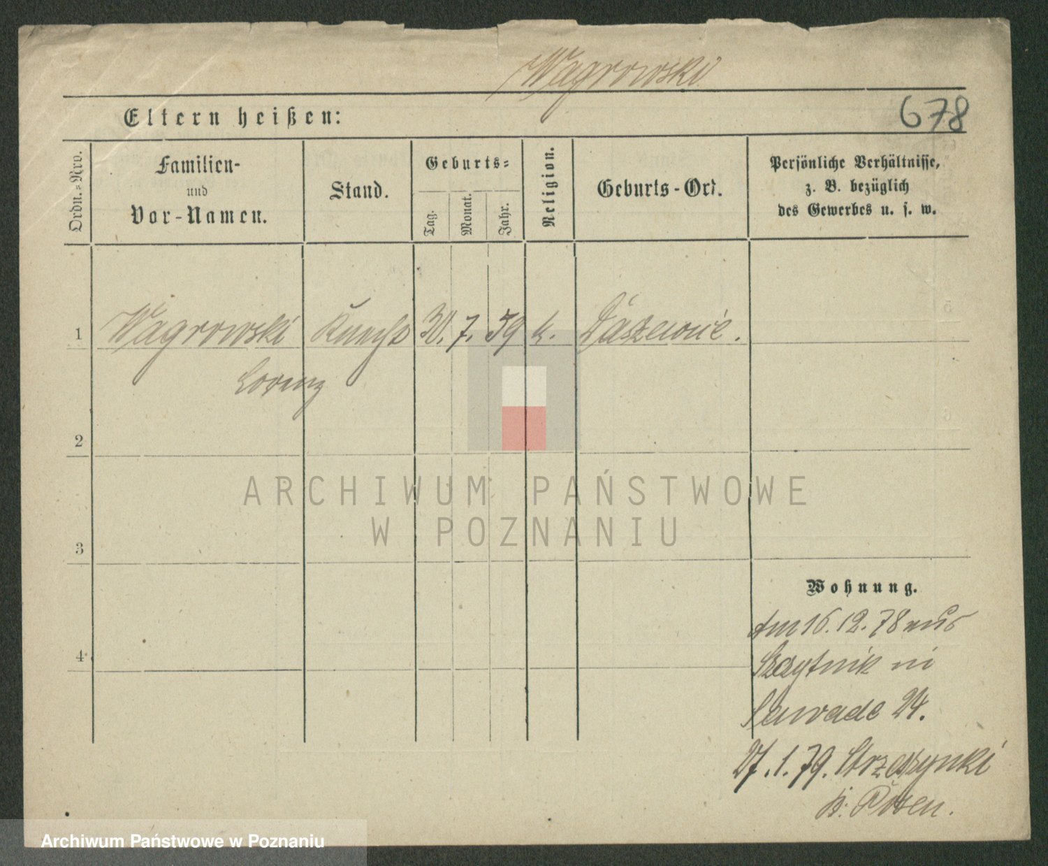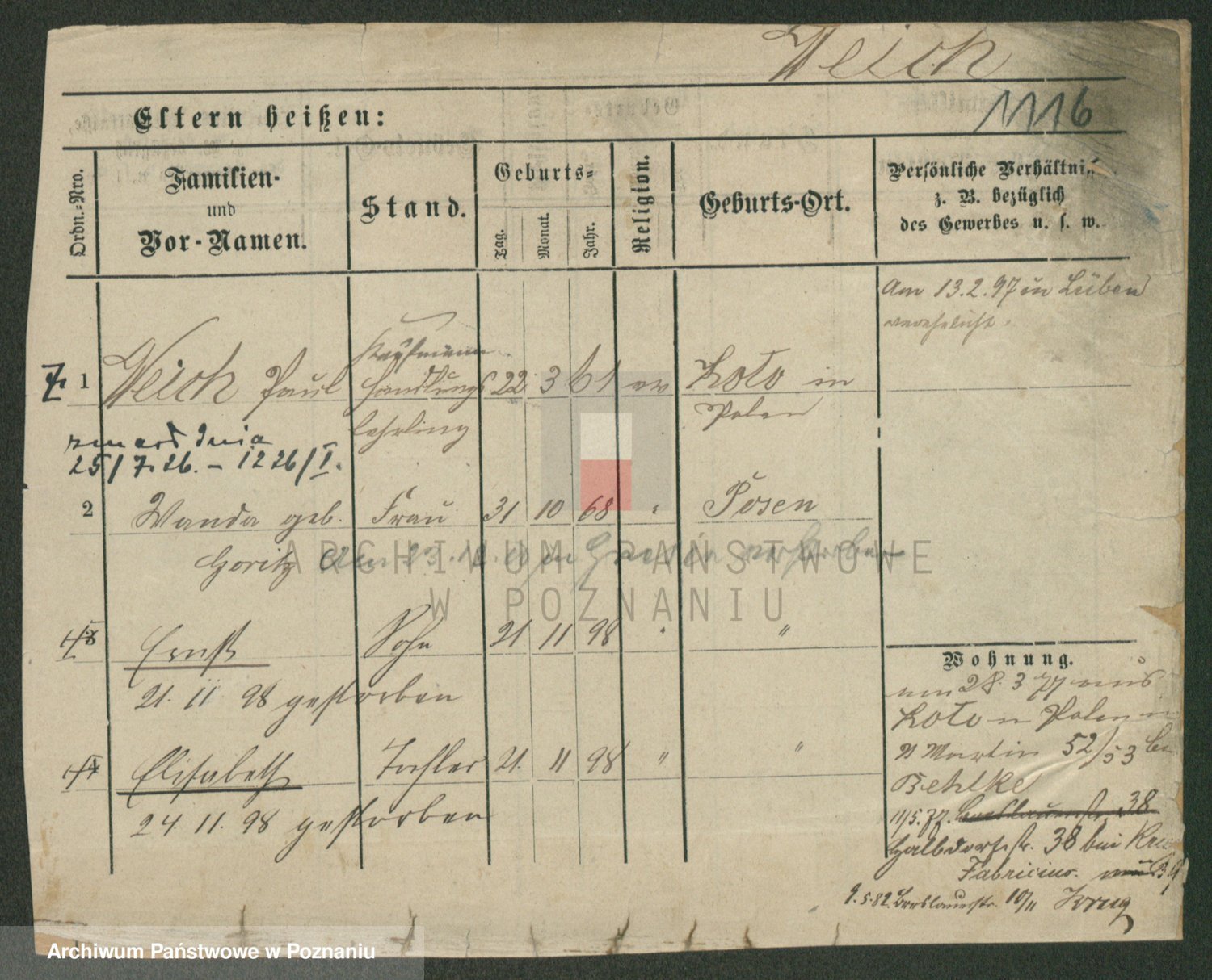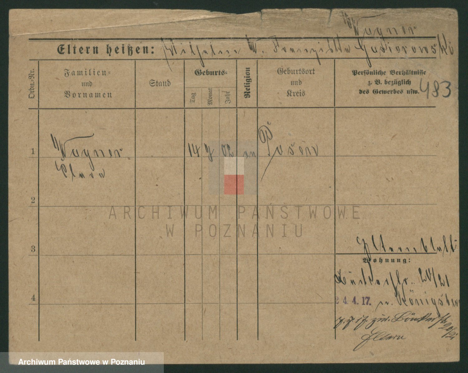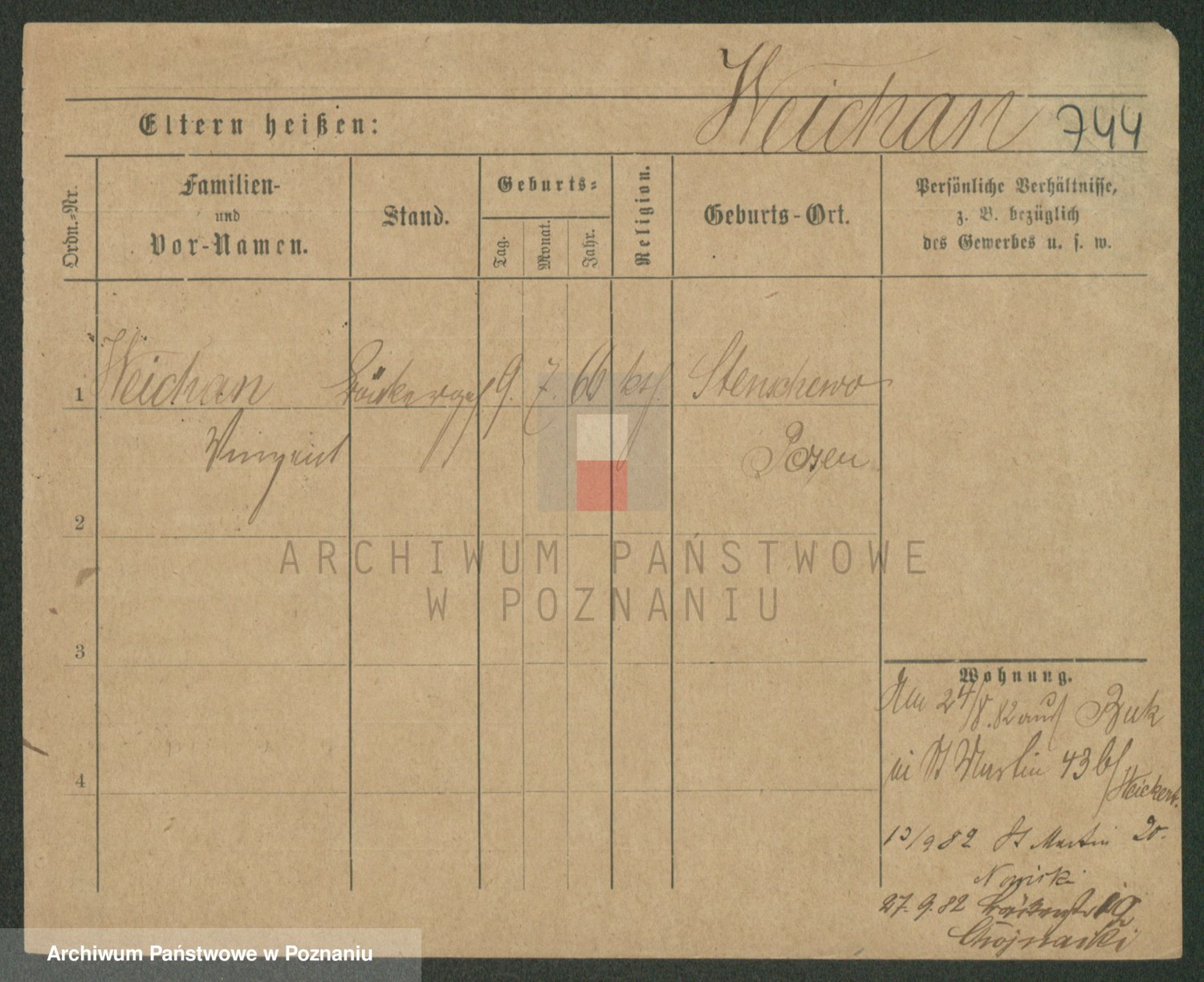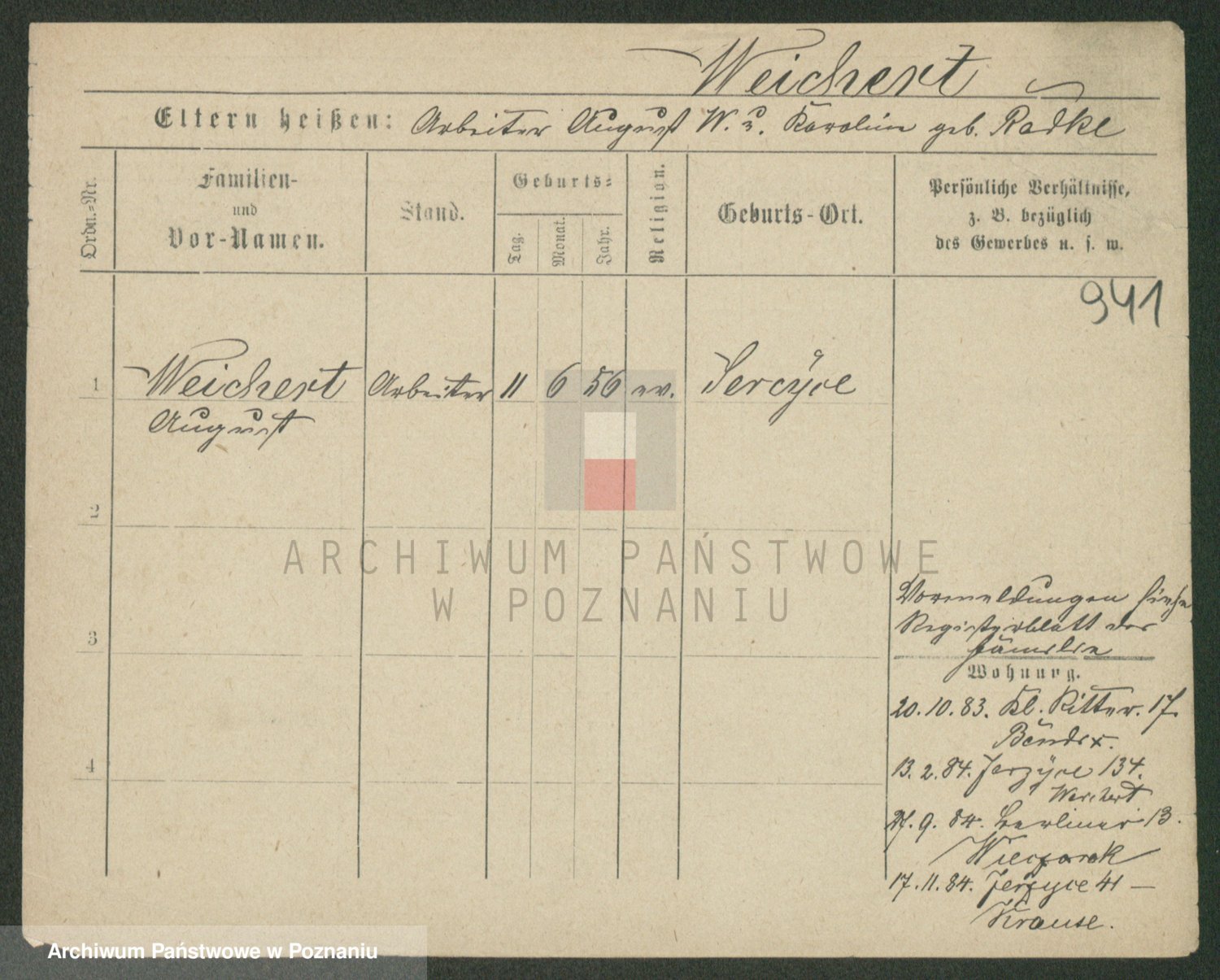 Podgląd karty osobowej dostępny jest po kliknięciu na nazwisko lub ikonkę karty. Można dokonywać powiększenia (ikony na górze) lub przechodzić między kolejnymi skanami (strzałki po bokach).