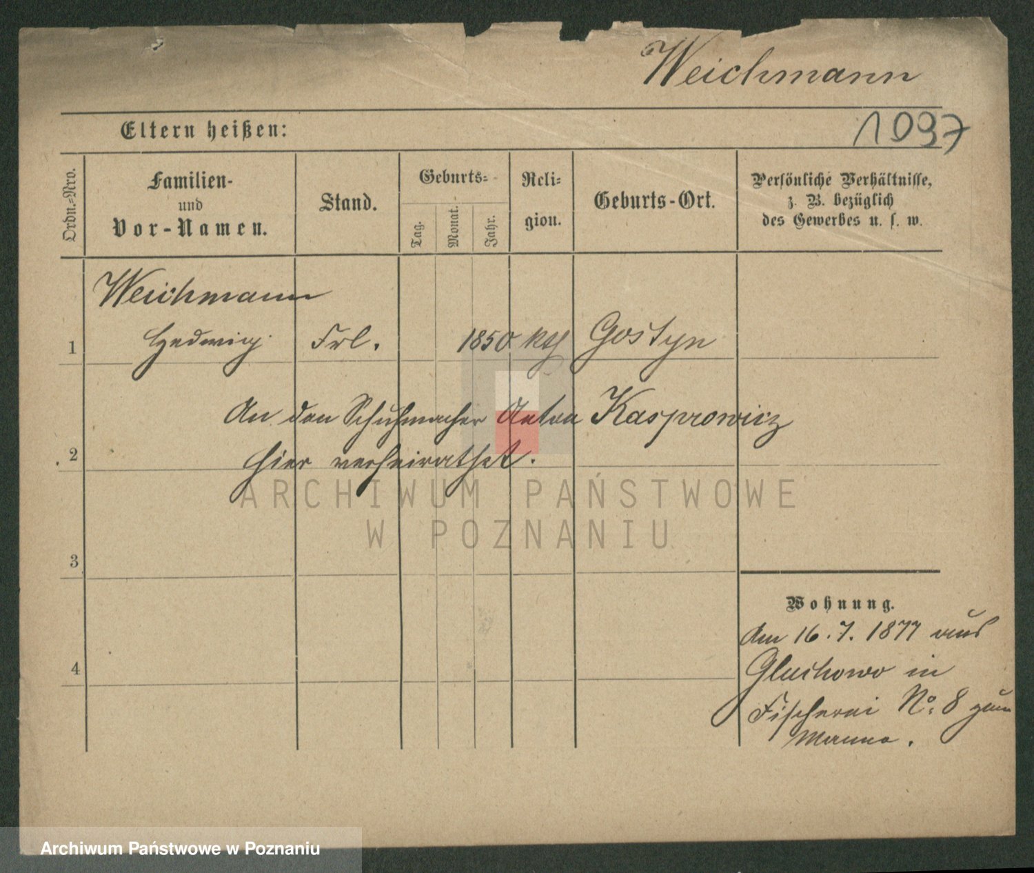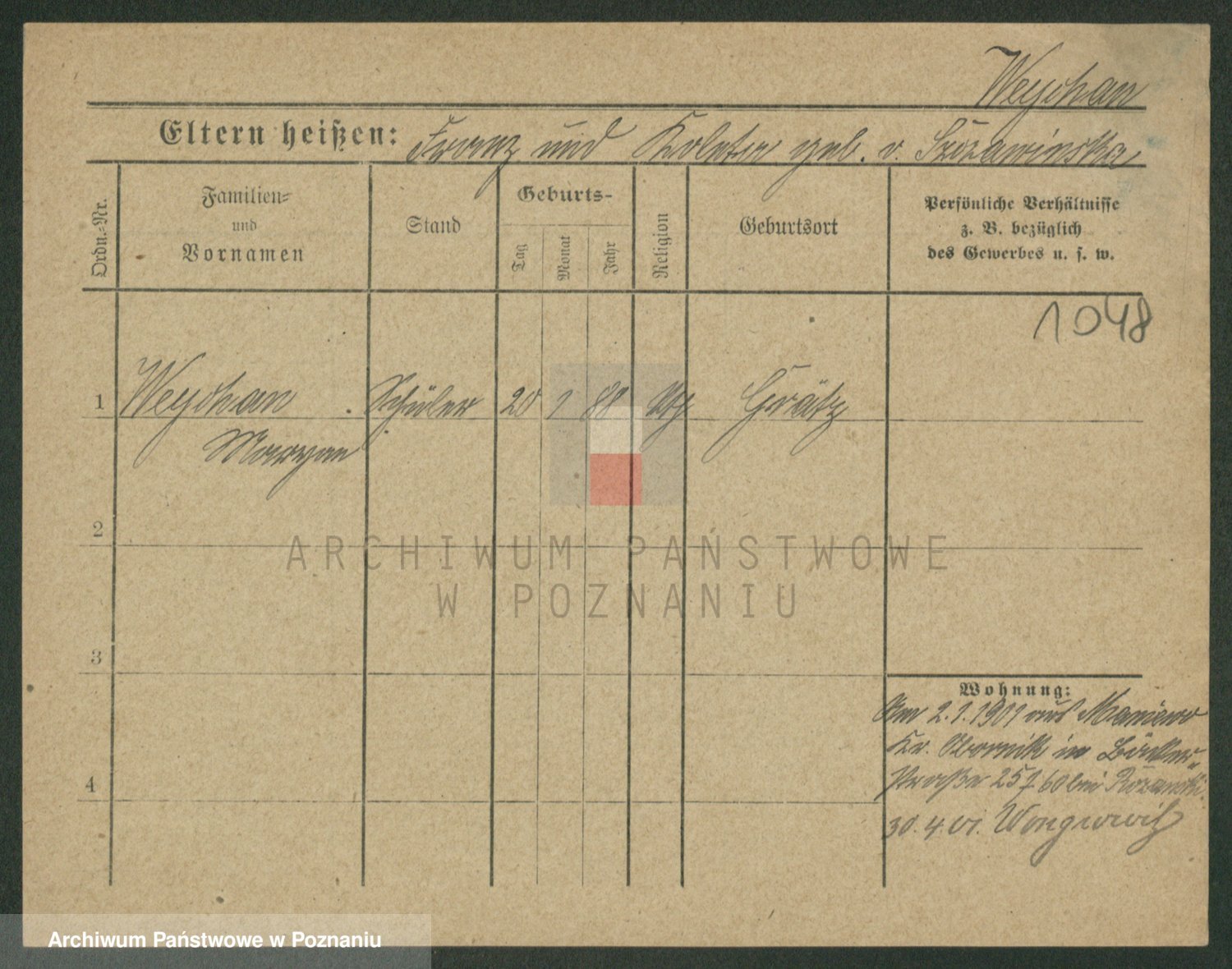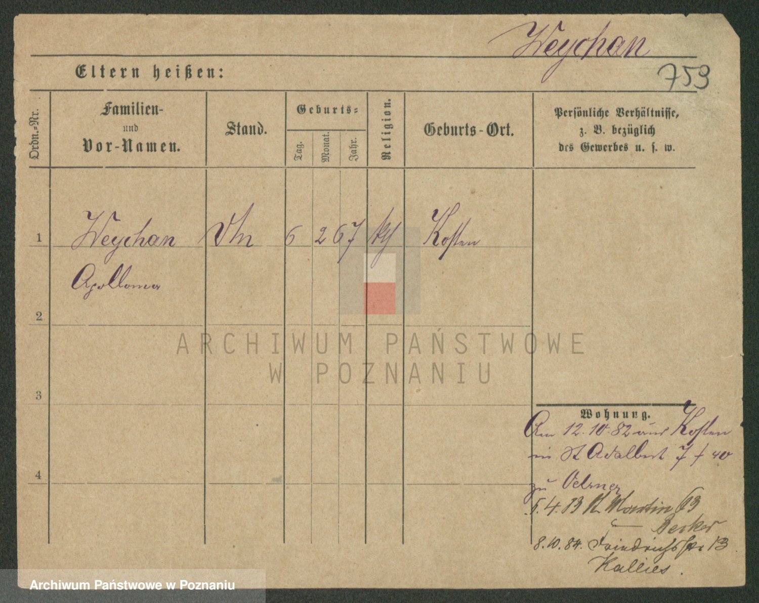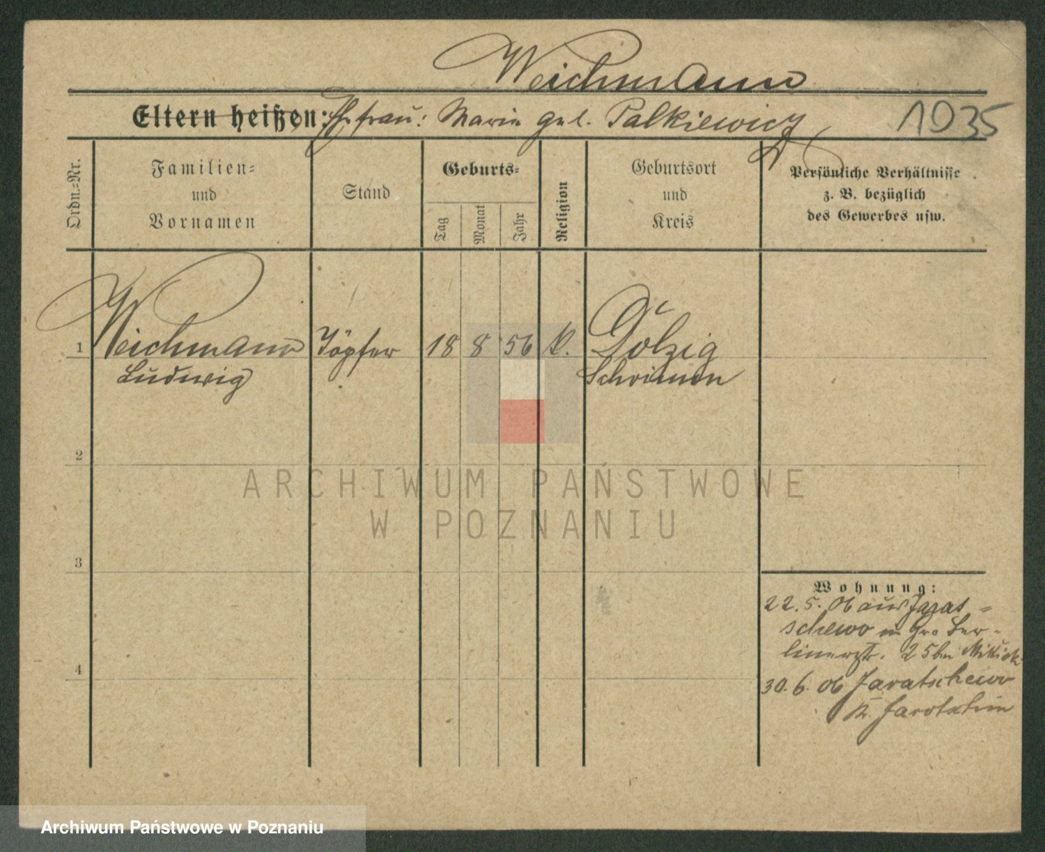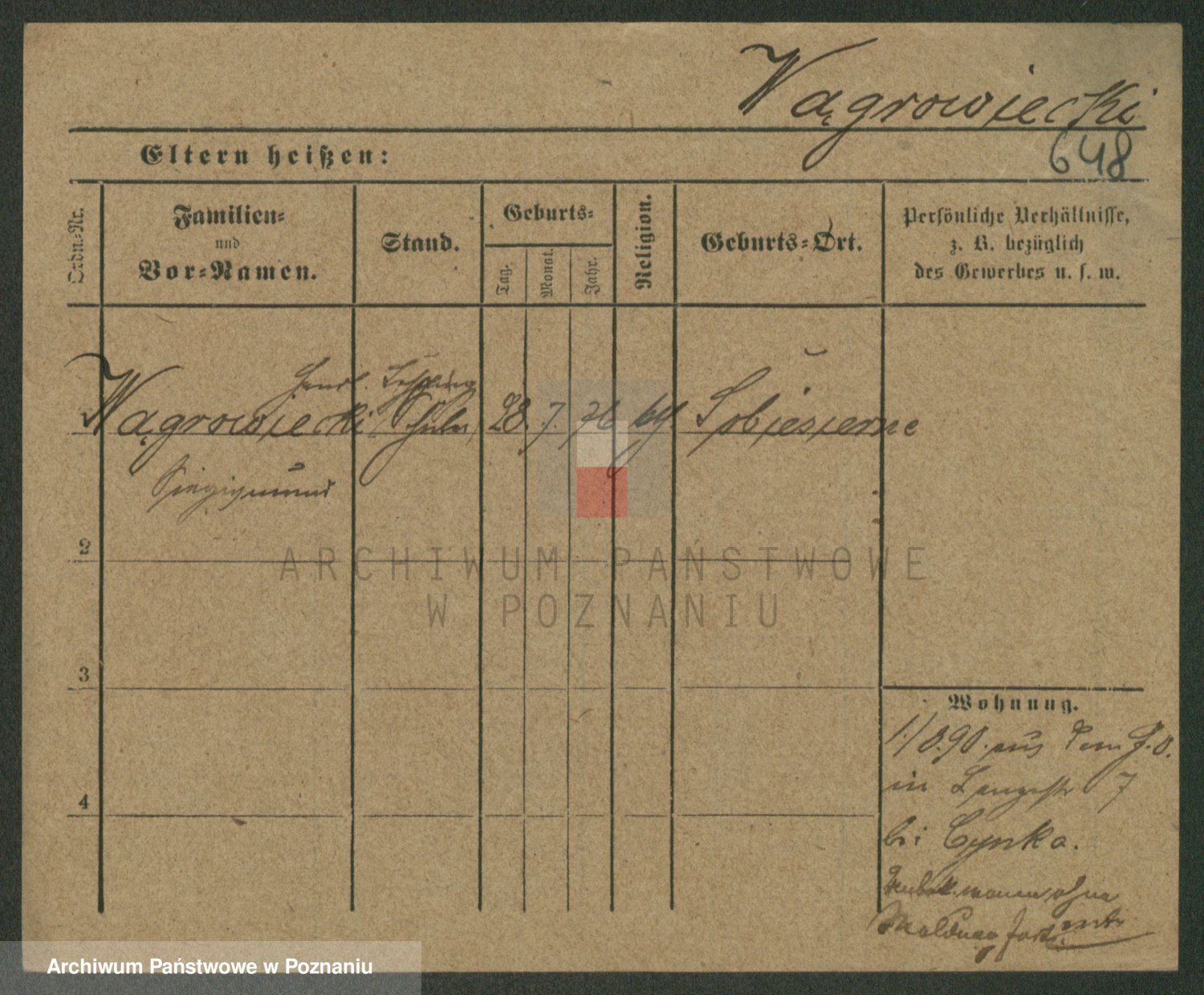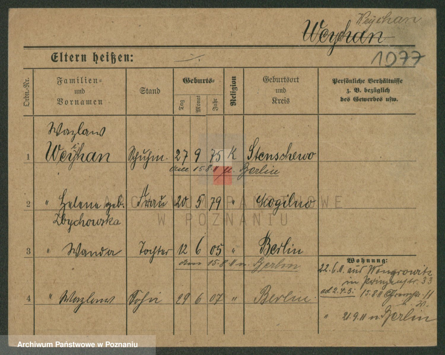 Podgląd karty osobowej dostępny jest po kliknięciu na nazwisko lub ikonkę karty. Można dokonywać powiększenia (ikony na górze) lub przechodzić między kolejnymi skanami (strzałki po bokach).