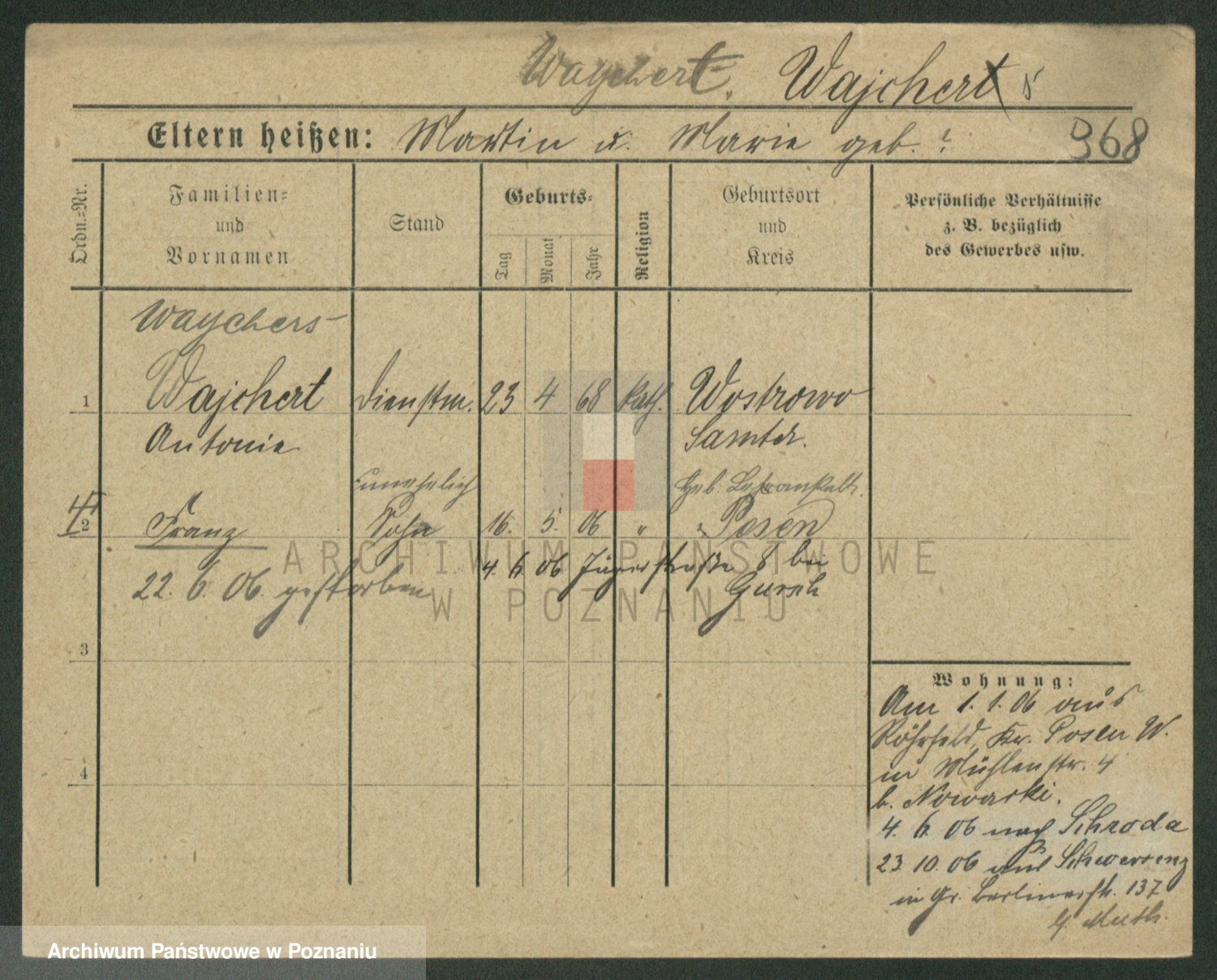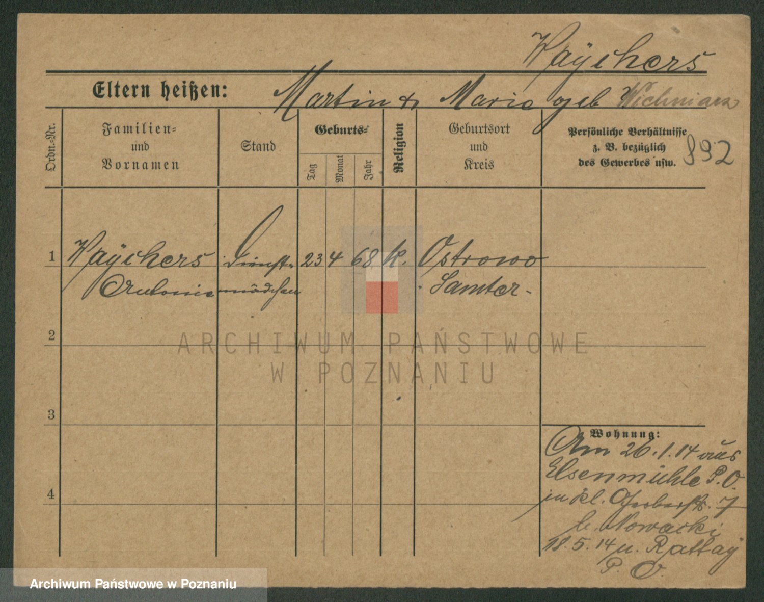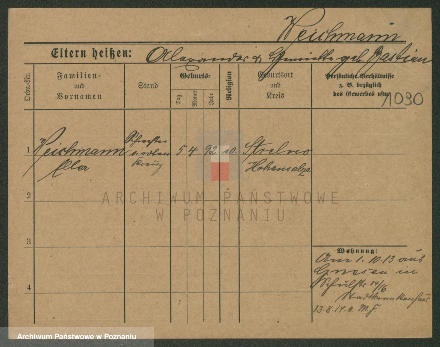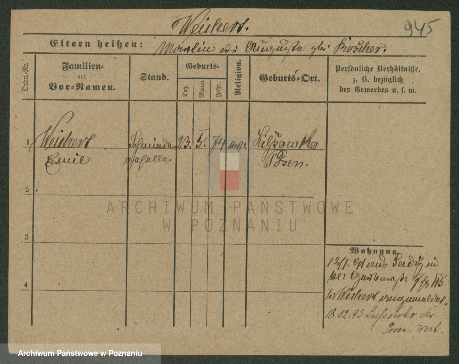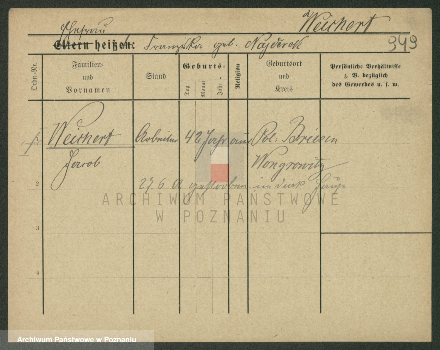 Podgląd karty osobowej dostępny jest po kliknięciu na nazwisko lub ikonkę karty. Można dokonywać powiększenia (ikony na górze) lub przechodzić między kolejnymi skanami (strzałki po bokach).