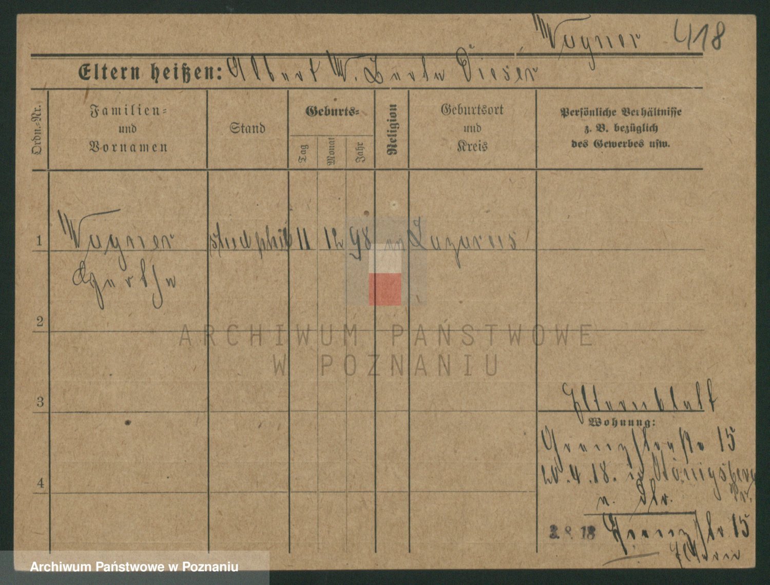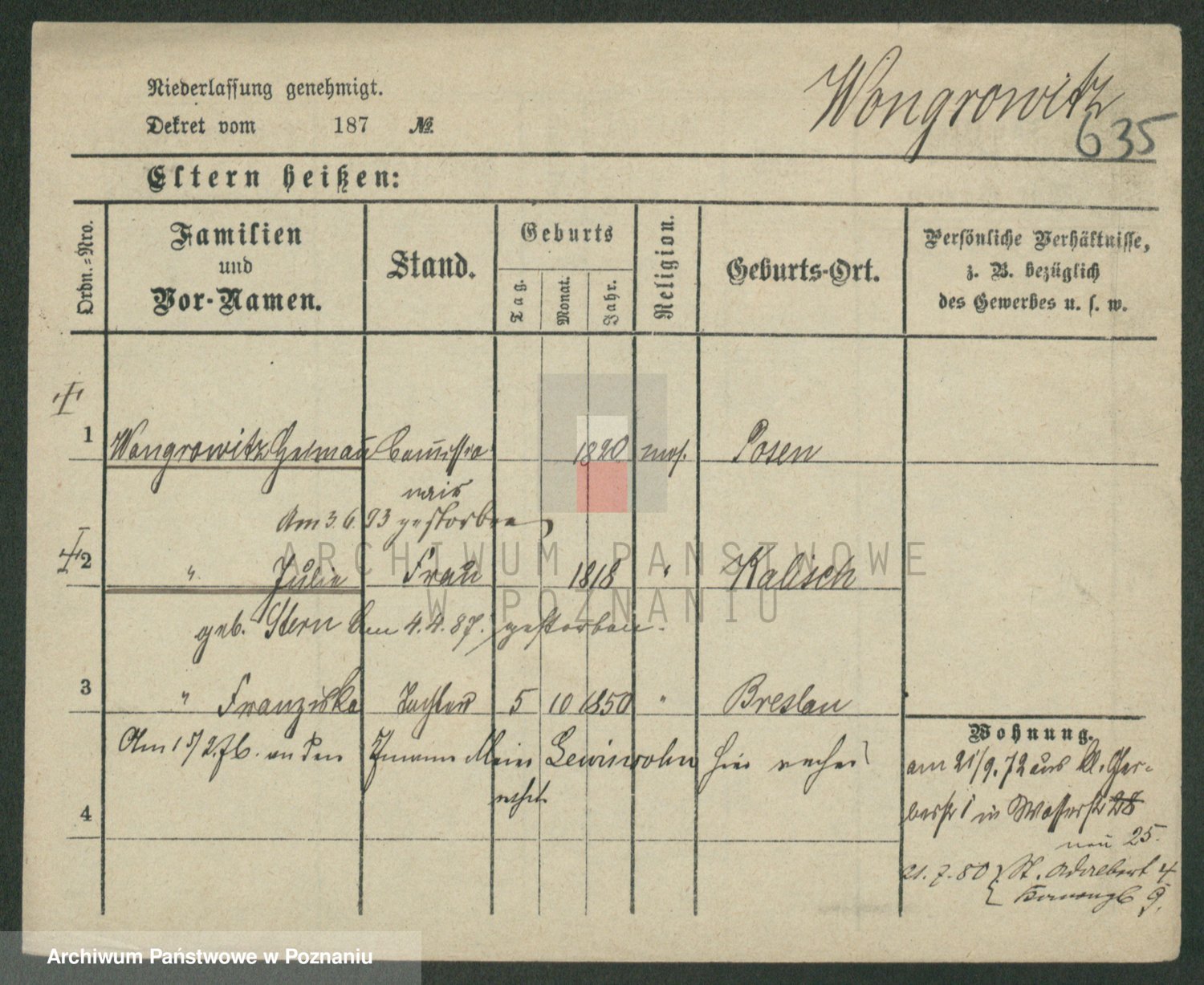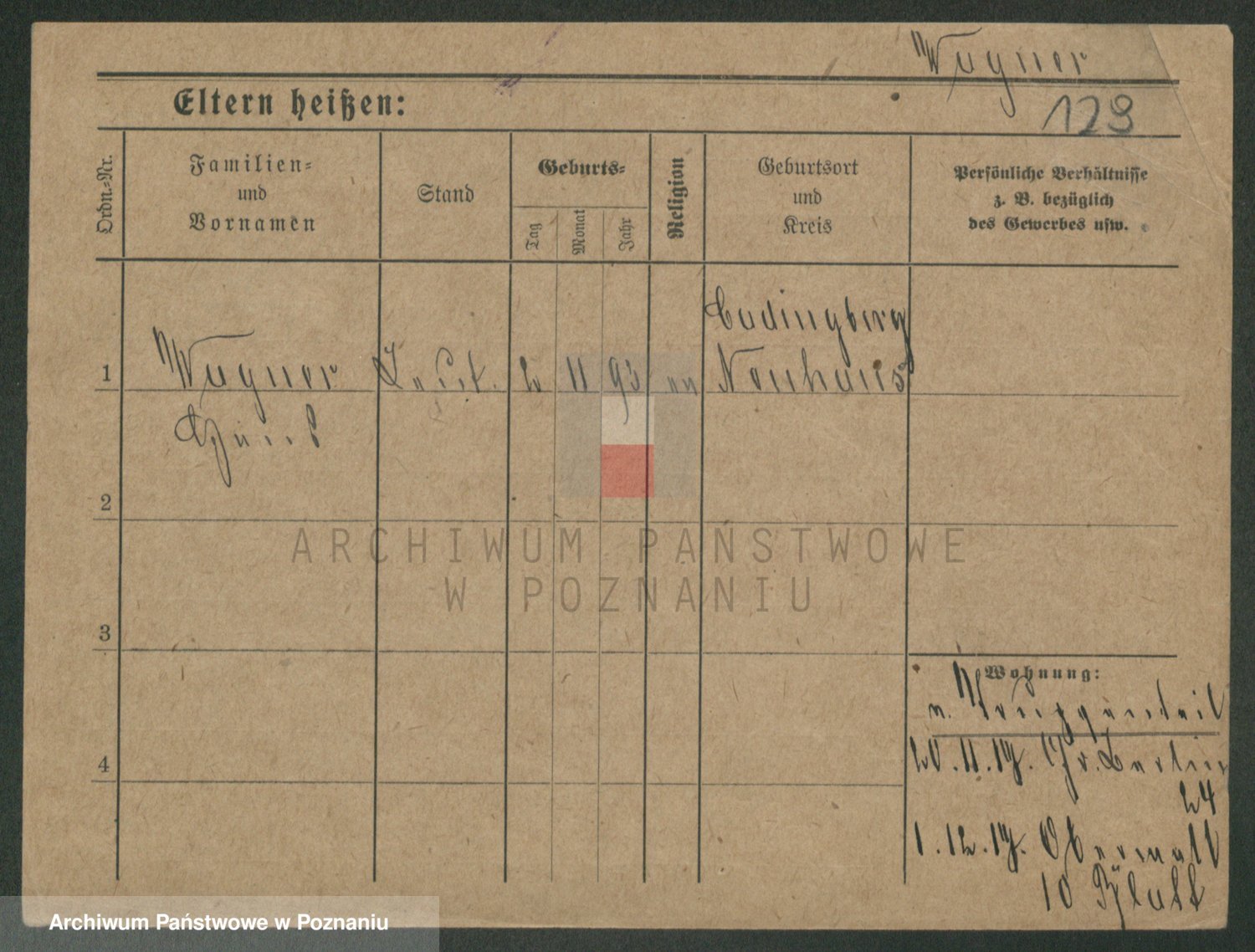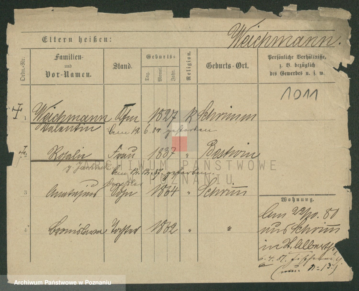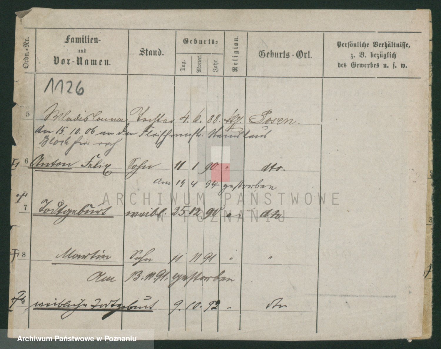 Podgląd karty osobowej dostępny jest po kliknięciu na nazwisko lub ikonkę karty. Można dokonywać powiększenia (ikony na górze) lub przechodzić między kolejnymi skanami (strzałki po bokach).