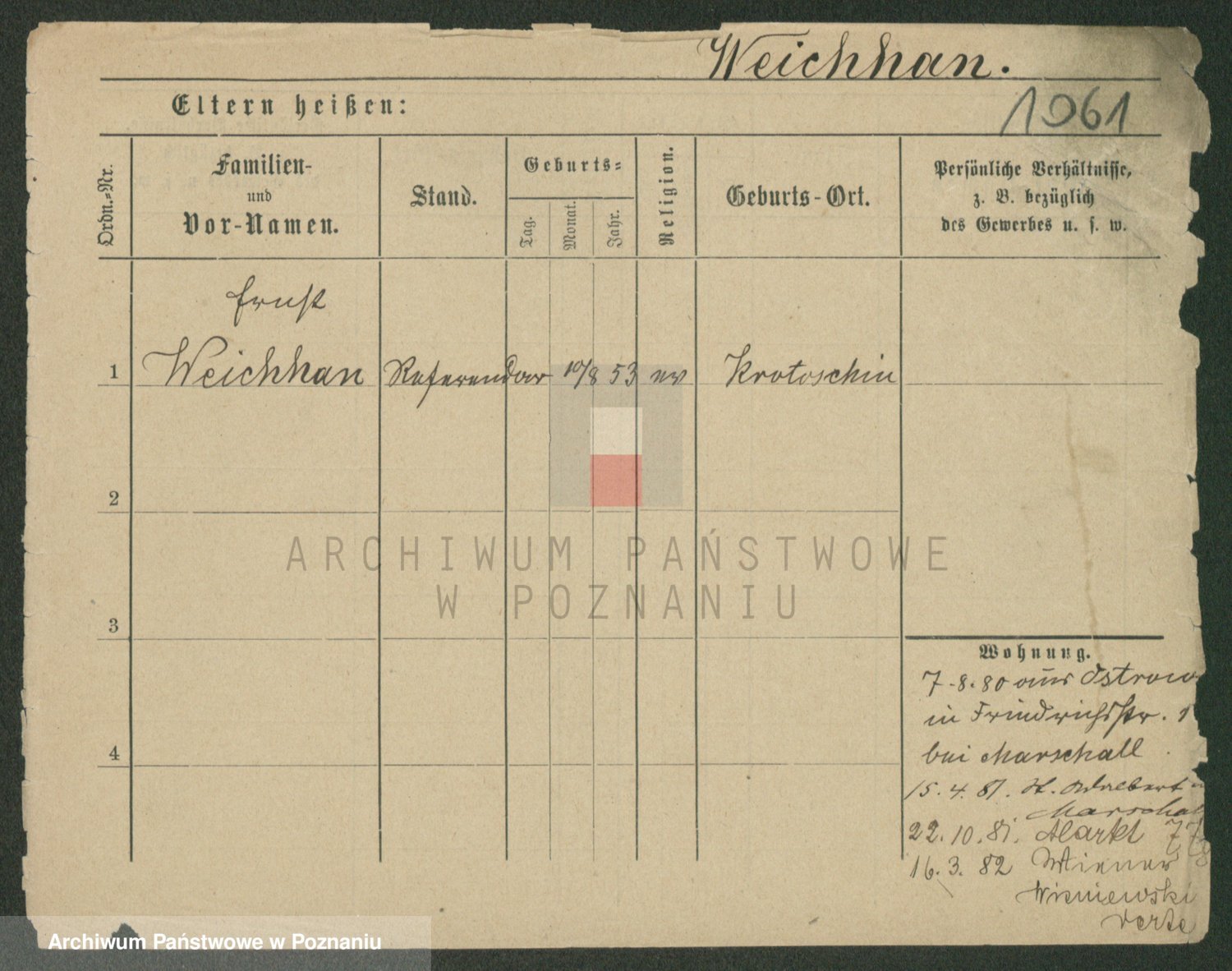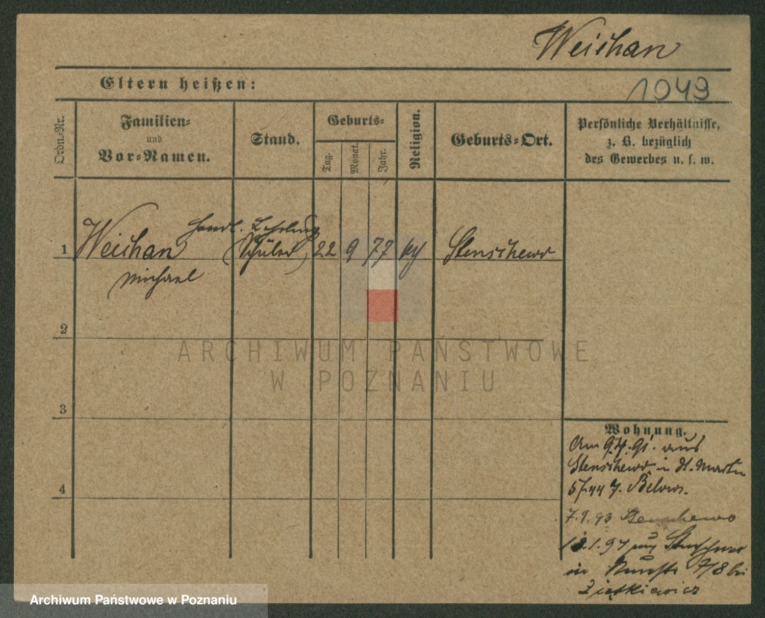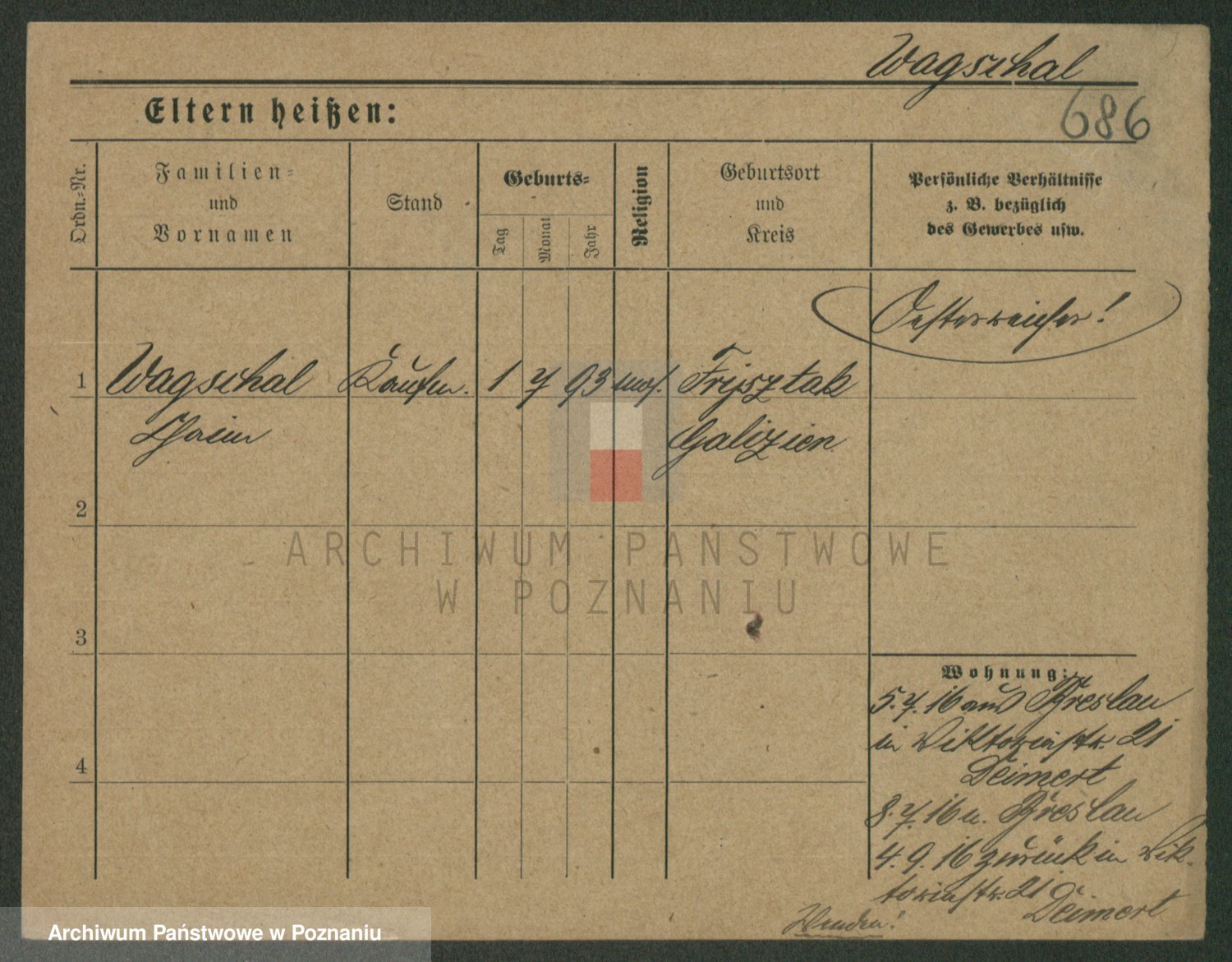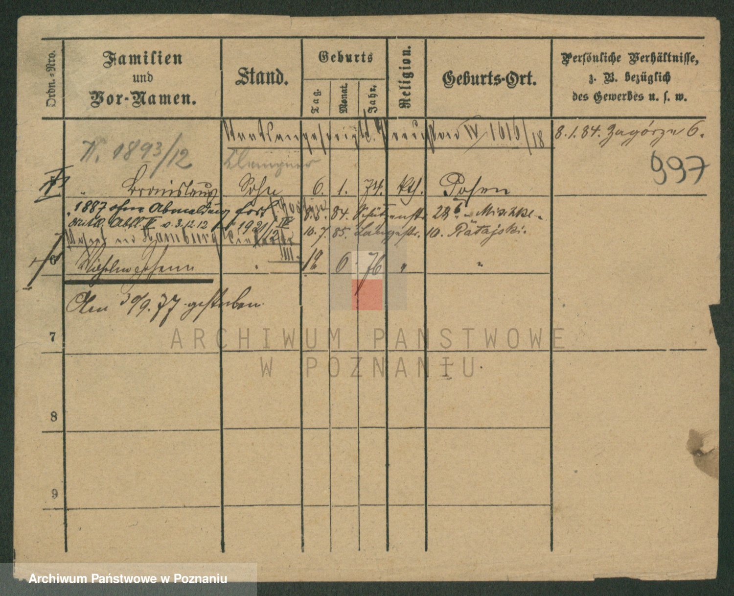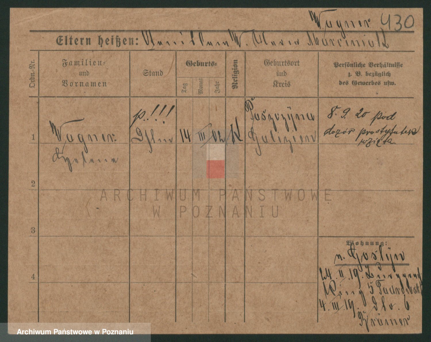 Podgląd karty osobowej dostępny jest po kliknięciu na nazwisko lub ikonkę karty. Można dokonywać powiększenia (ikony na górze) lub przechodzić między kolejnymi skanami (strzałki po bokach).