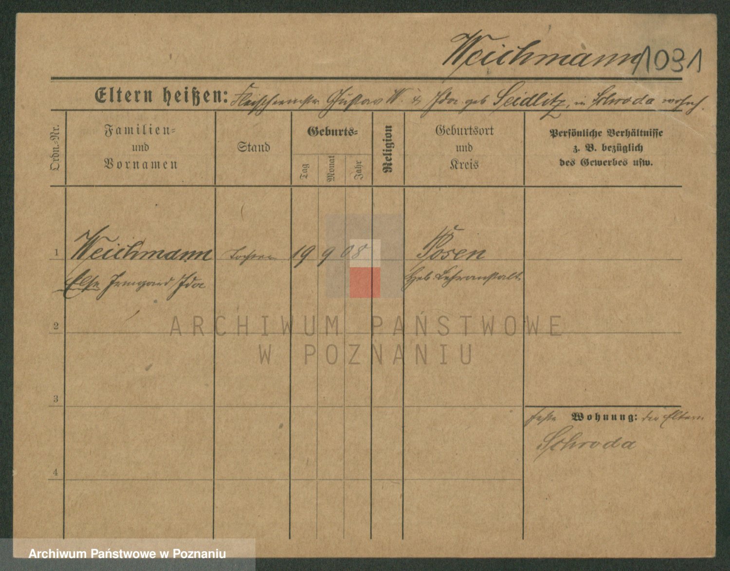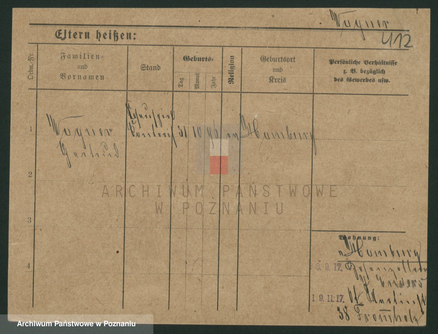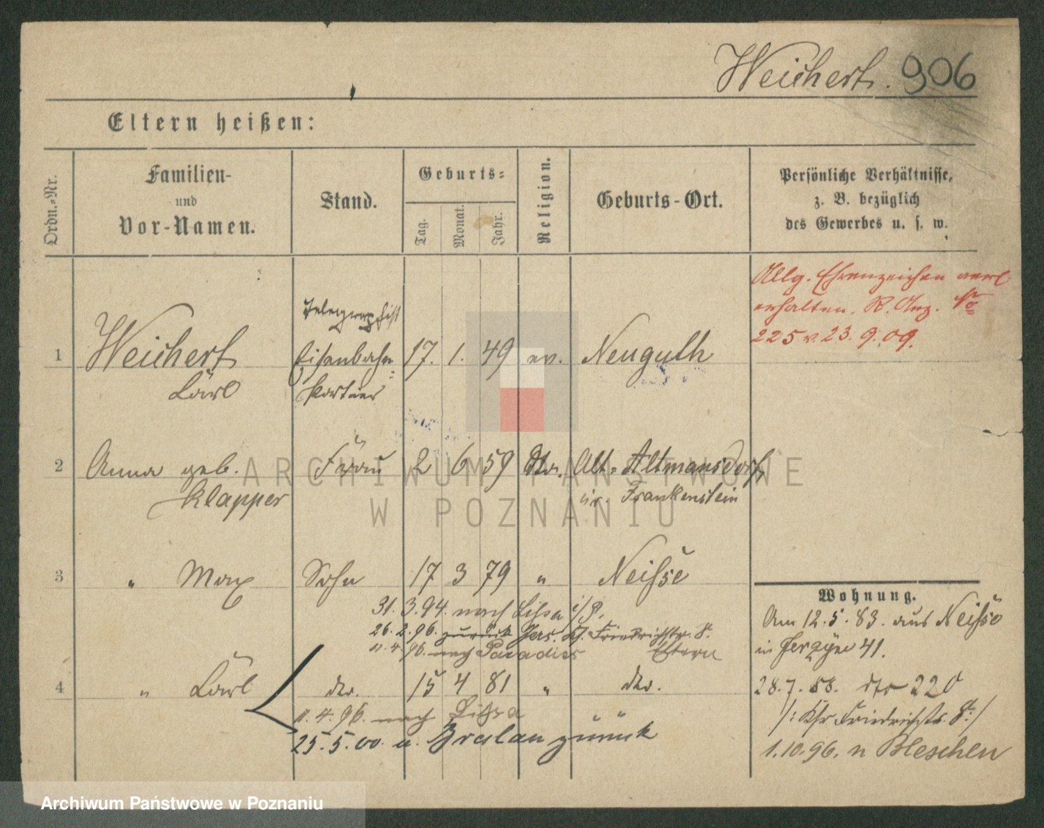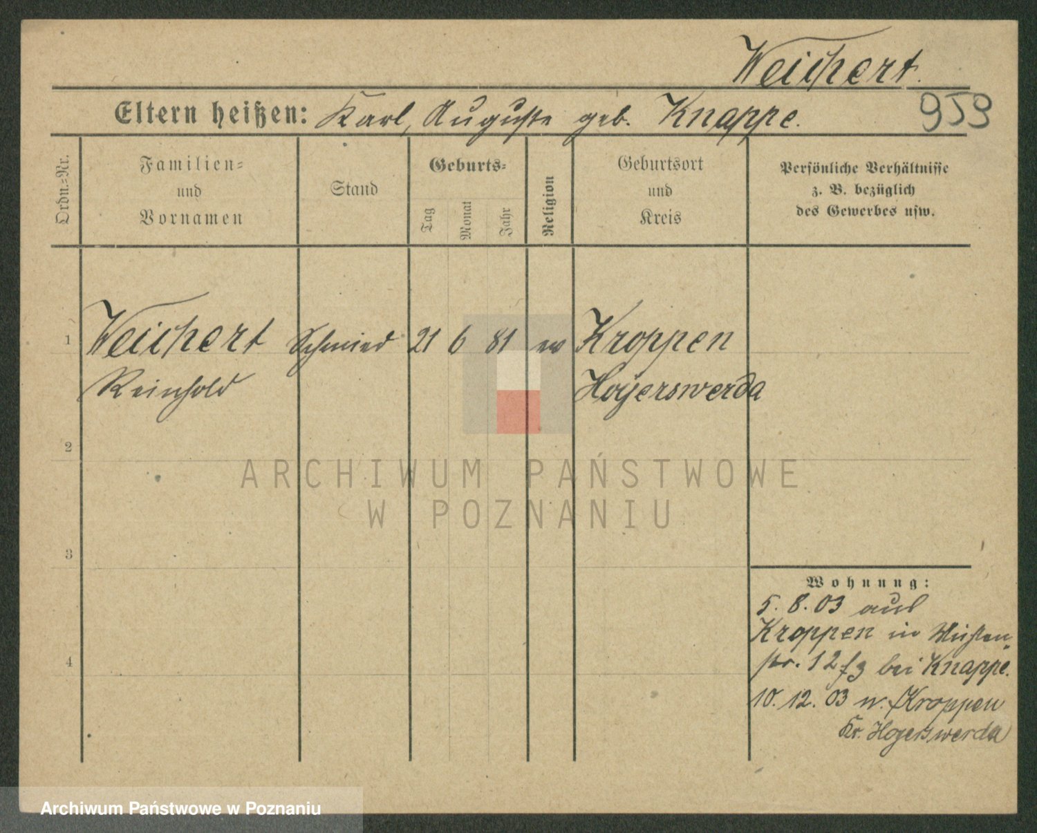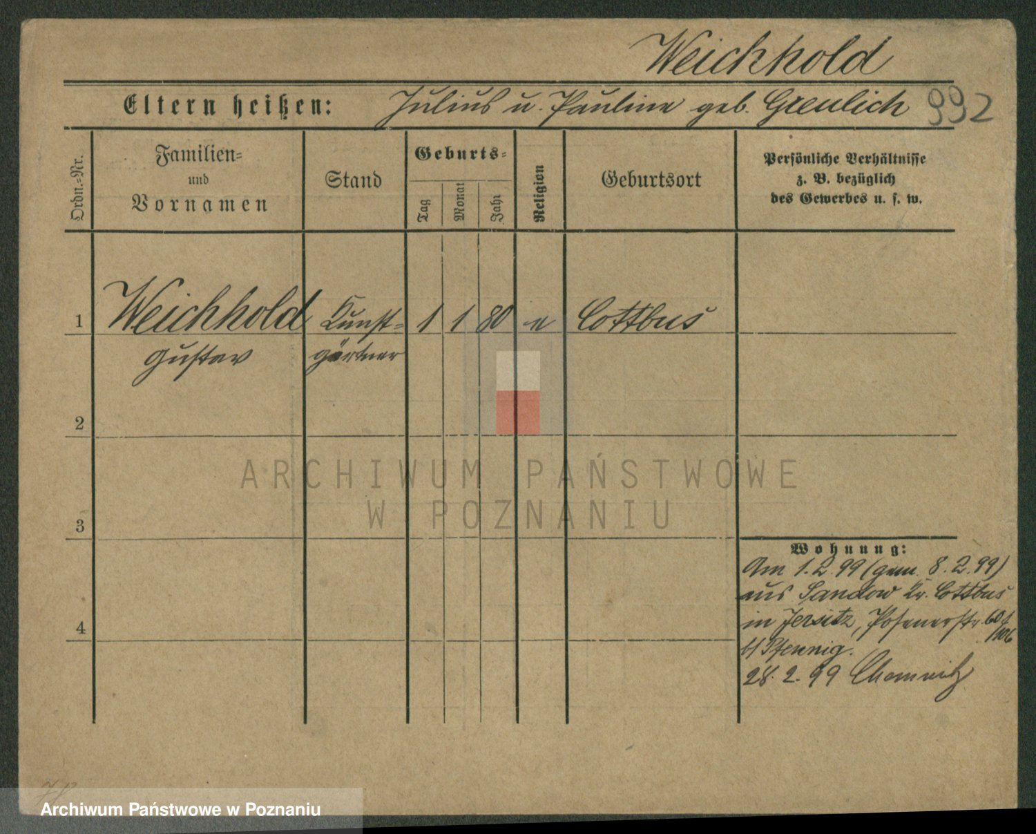 Podgląd karty osobowej dostępny jest po kliknięciu na nazwisko lub ikonkę karty. Można dokonywać powiększenia (ikony na górze) lub przechodzić między kolejnymi skanami (strzałki po bokach).