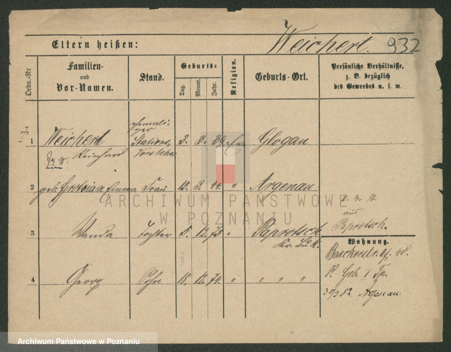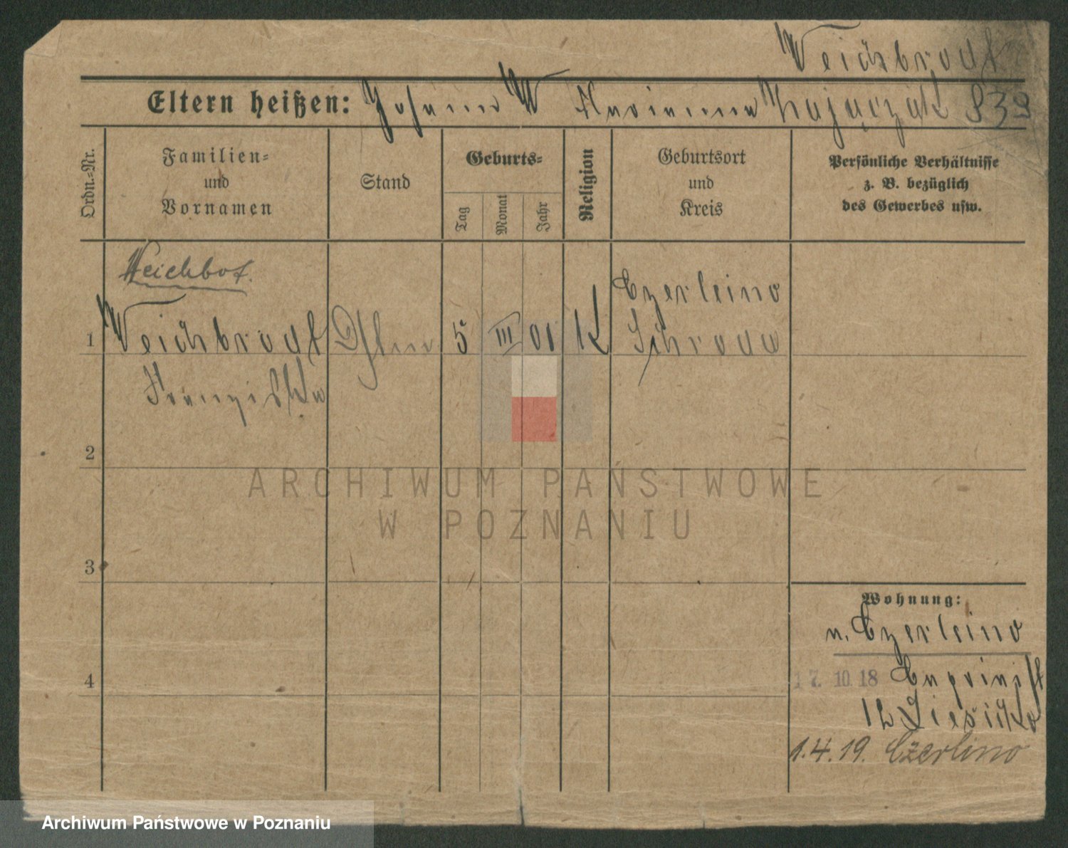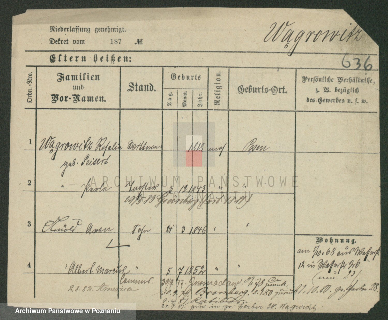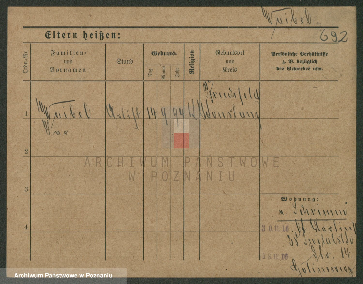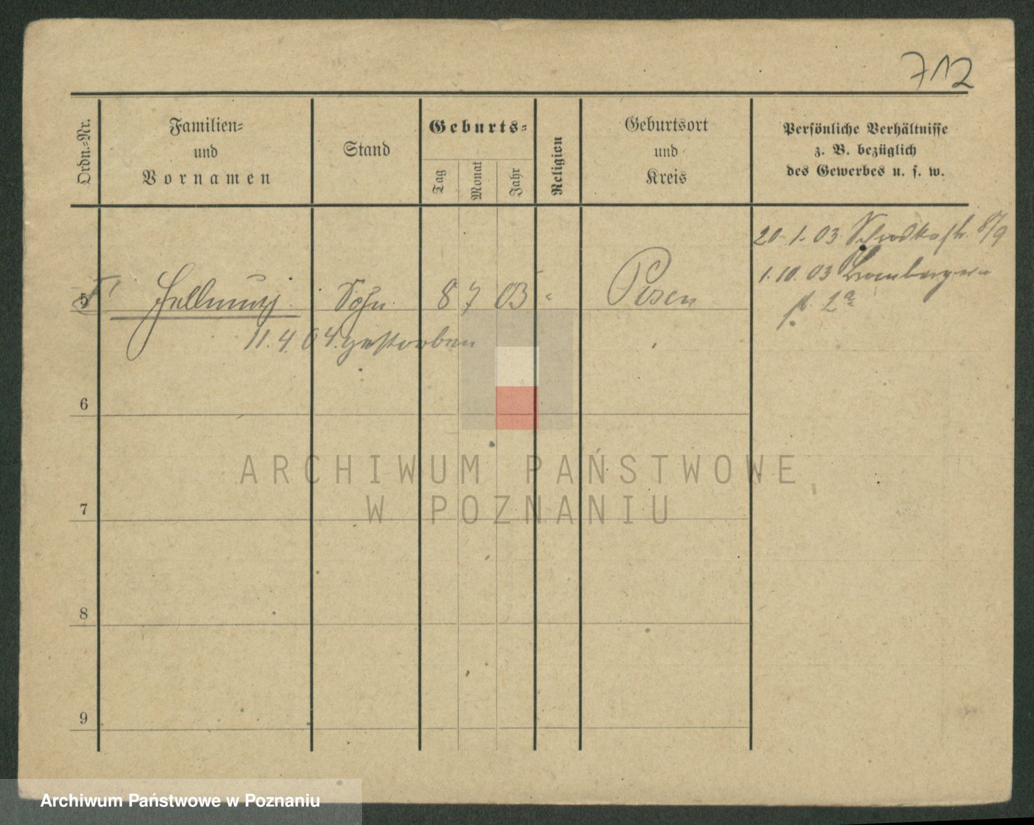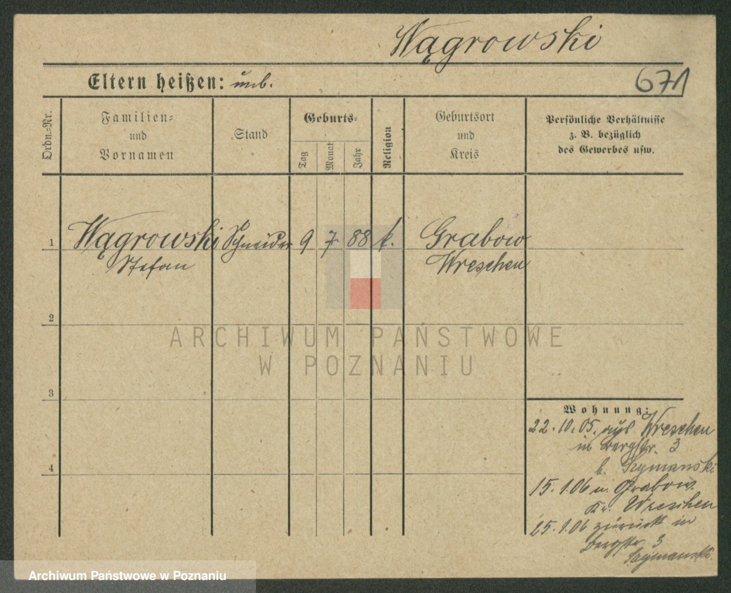 Podgląd karty osobowej dostępny jest po kliknięciu na nazwisko lub ikonkę karty. Można dokonywać powiększenia (ikony na górze) lub przechodzić między kolejnymi skanami (strzałki po bokach).