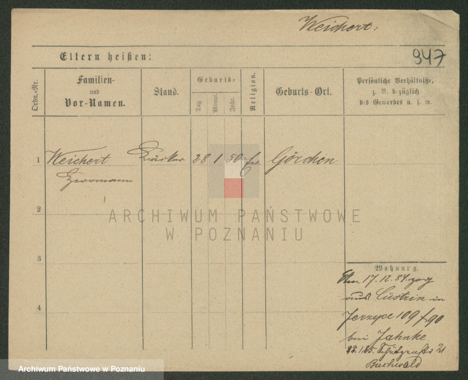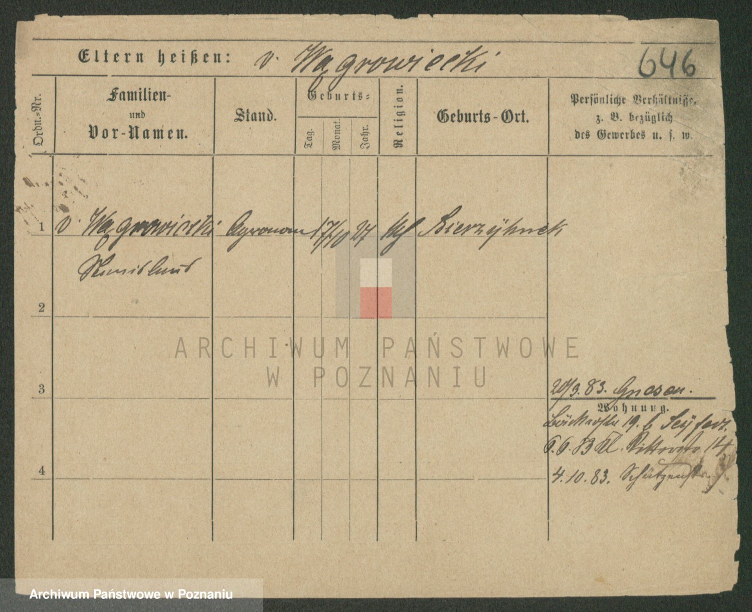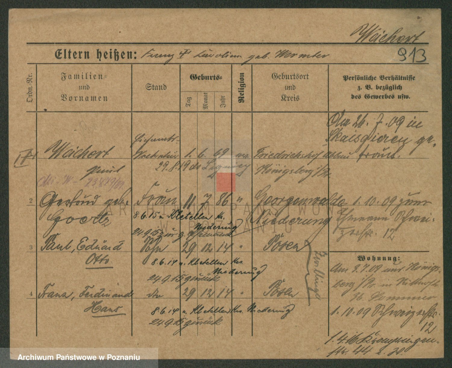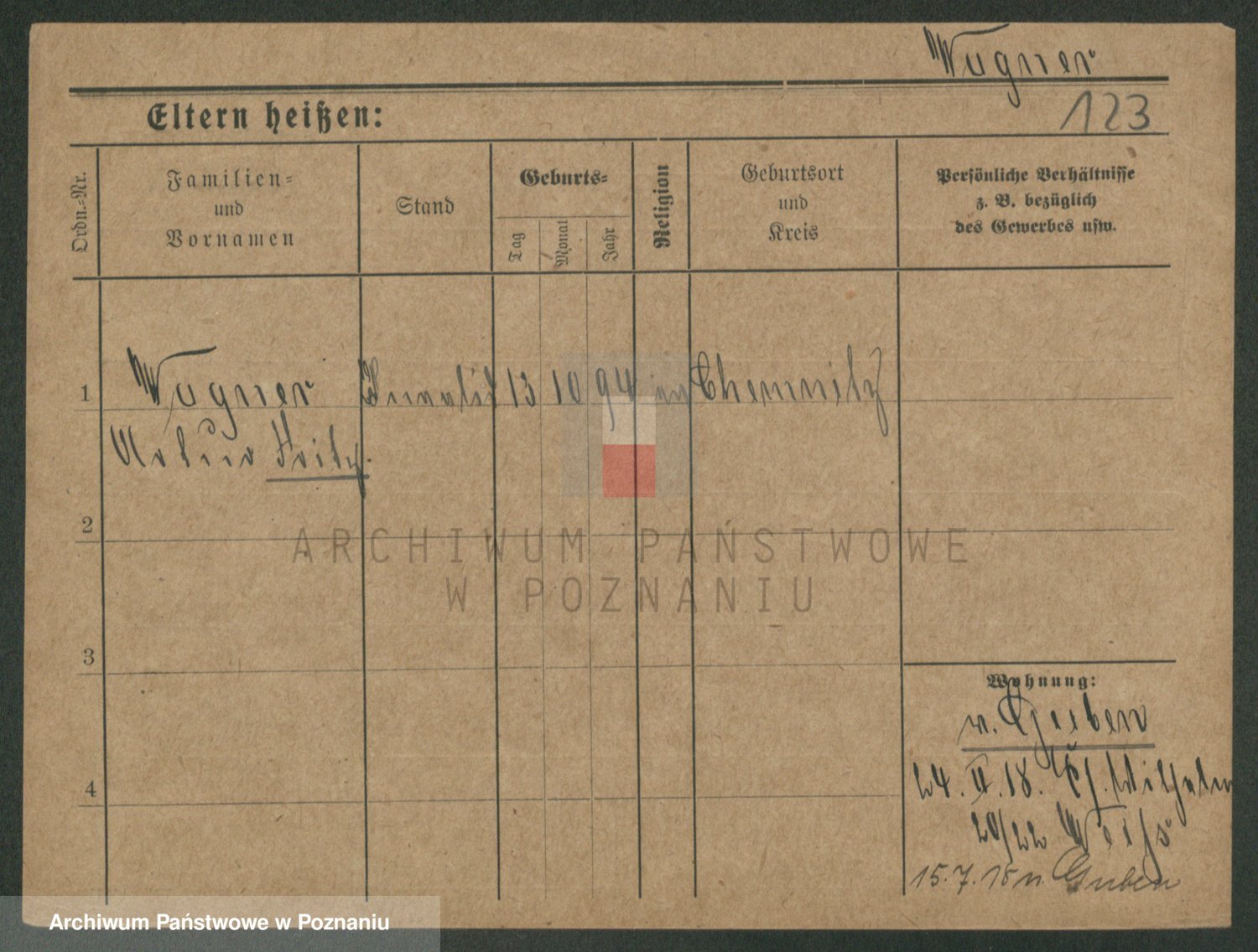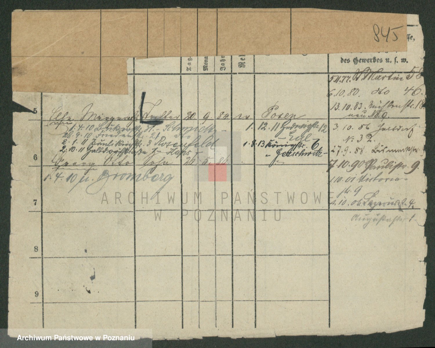Podgląd karty osobowej dostępny jest po kliknięciu na nazwisko lub ikonkę karty. Można dokonywać powiększenia (ikony na górze) lub przechodzić między kolejnymi skanami (strzałki po bokach).