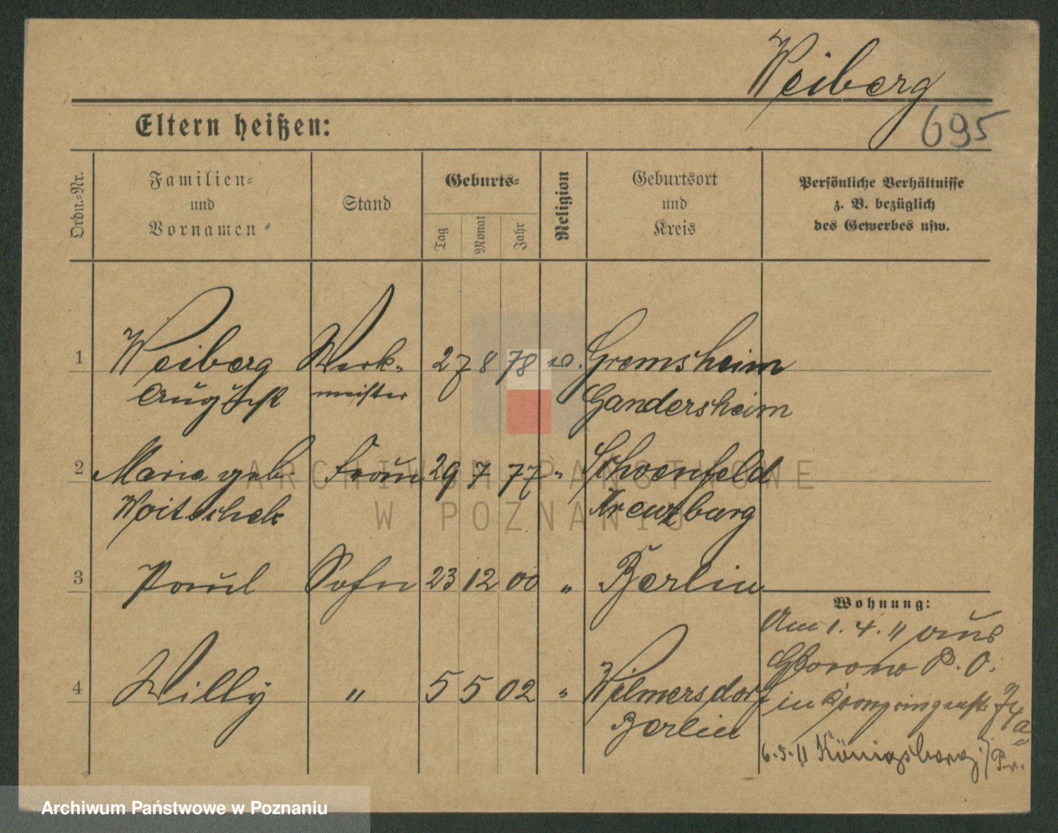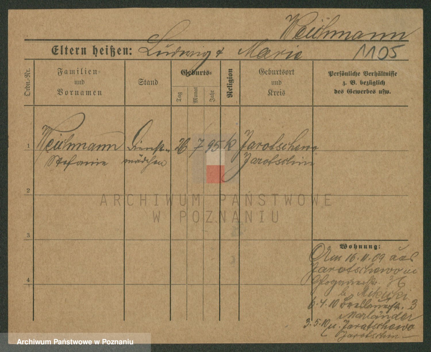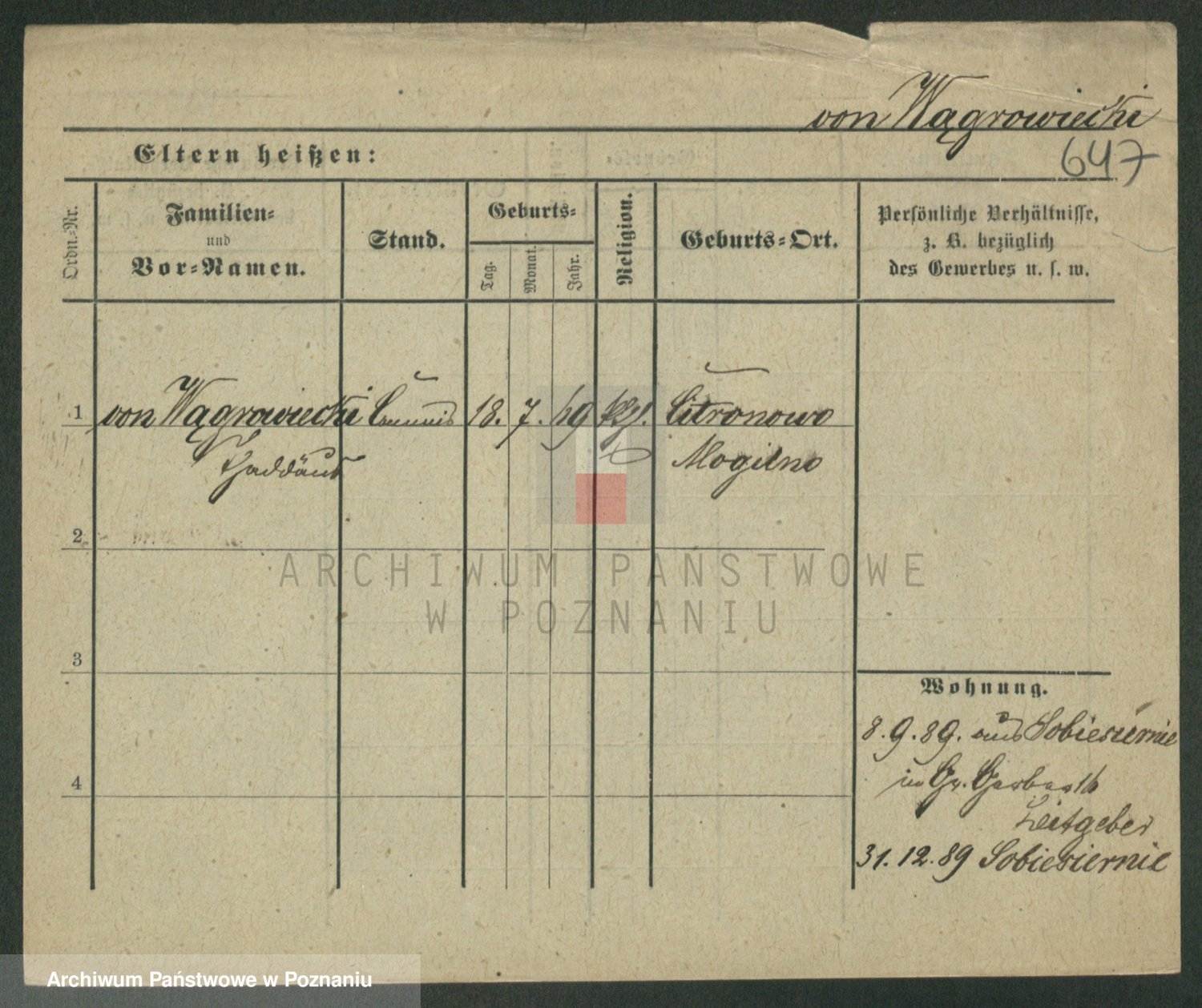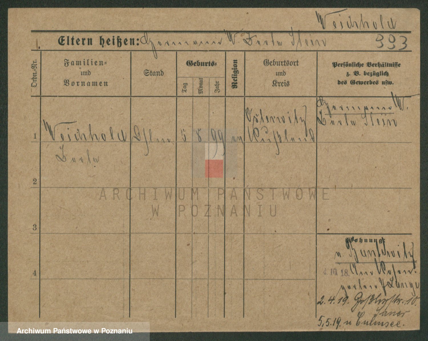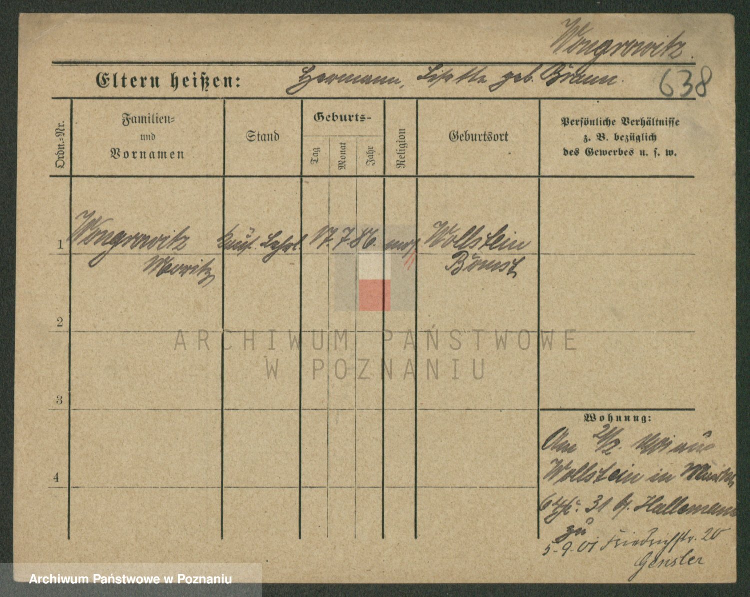 Podgląd karty osobowej dostępny jest po kliknięciu na nazwisko lub ikonkę karty. Można dokonywać powiększenia (ikony na górze) lub przechodzić między kolejnymi skanami (strzałki po bokach).