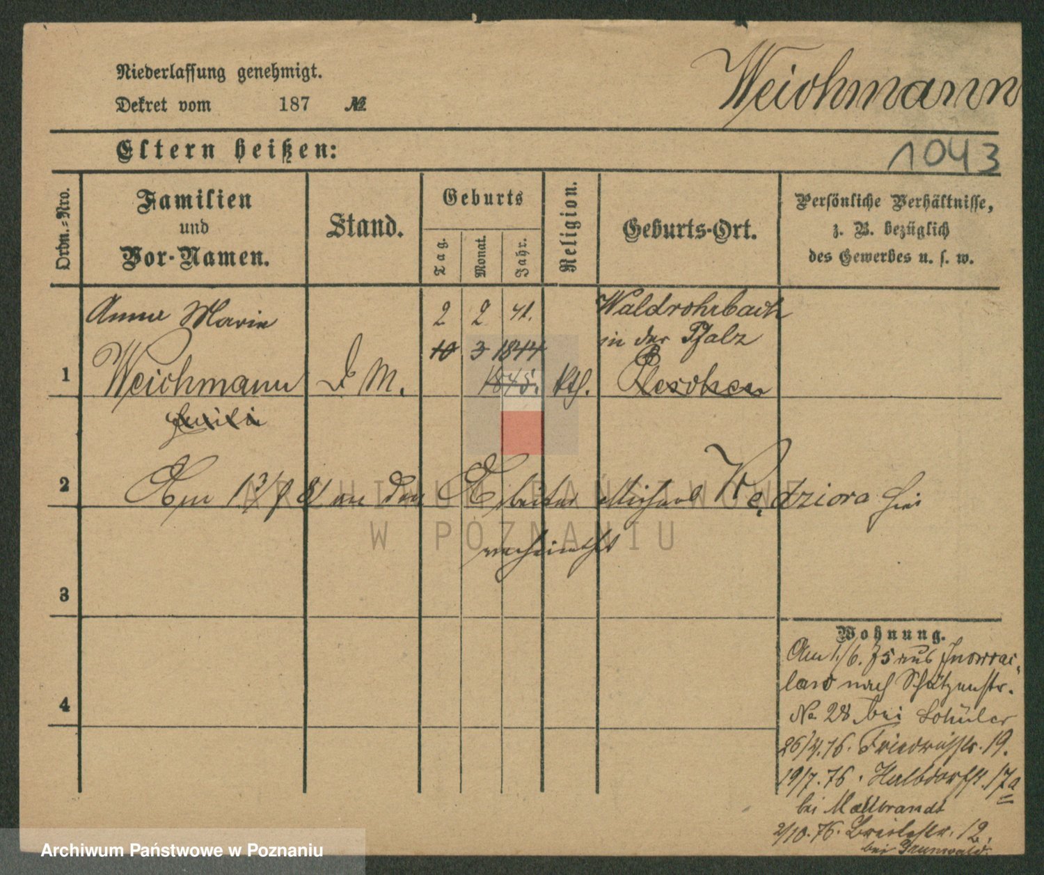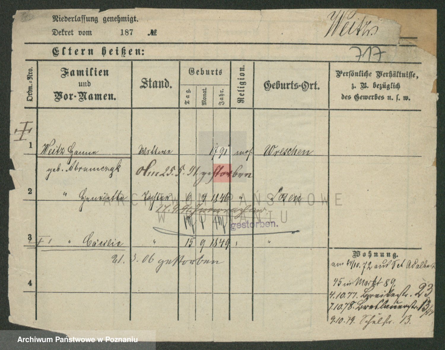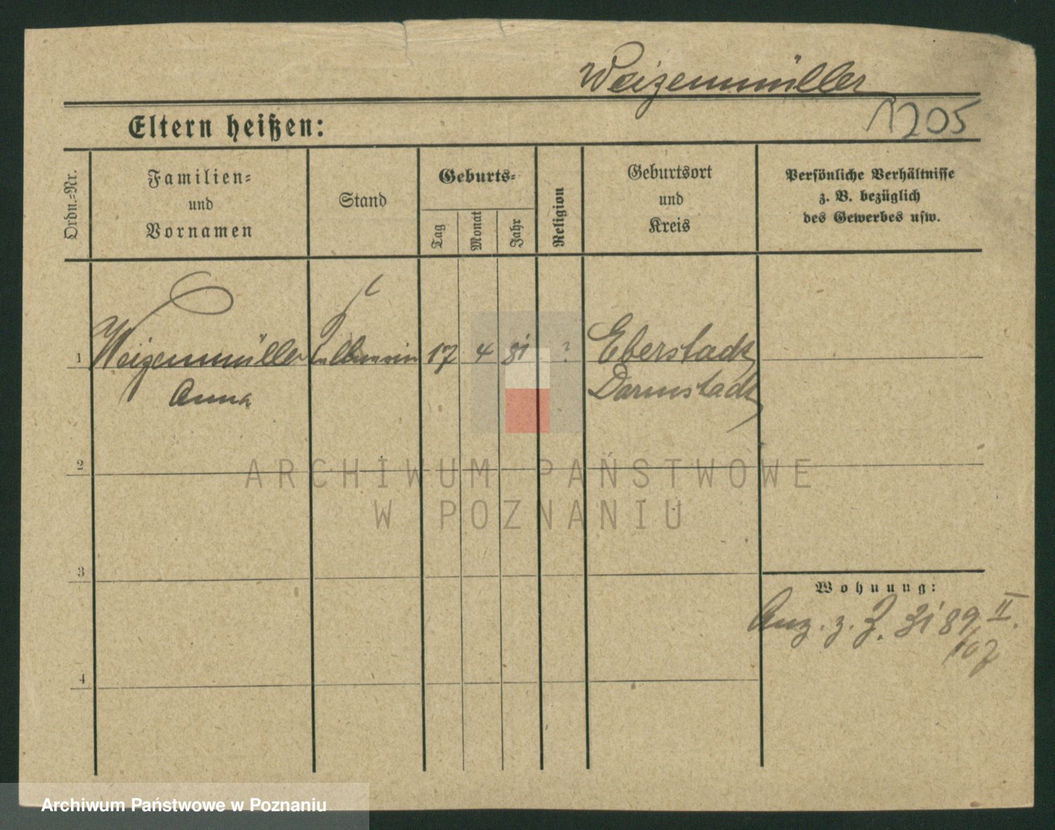 Weitzenmiller z.d. Silberbach, Antonie