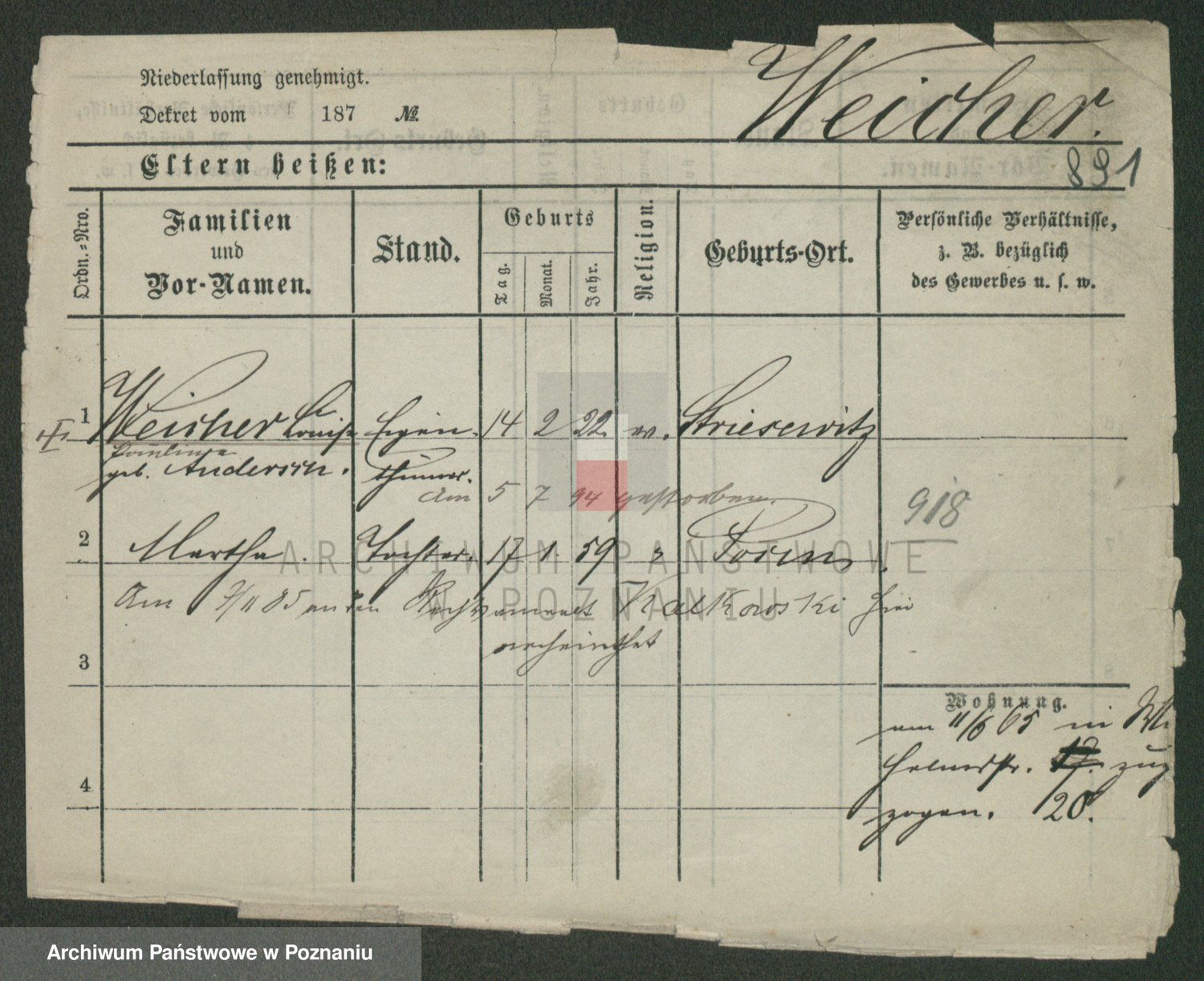 Weitzenmiller z.d. Wintersbach, Marie