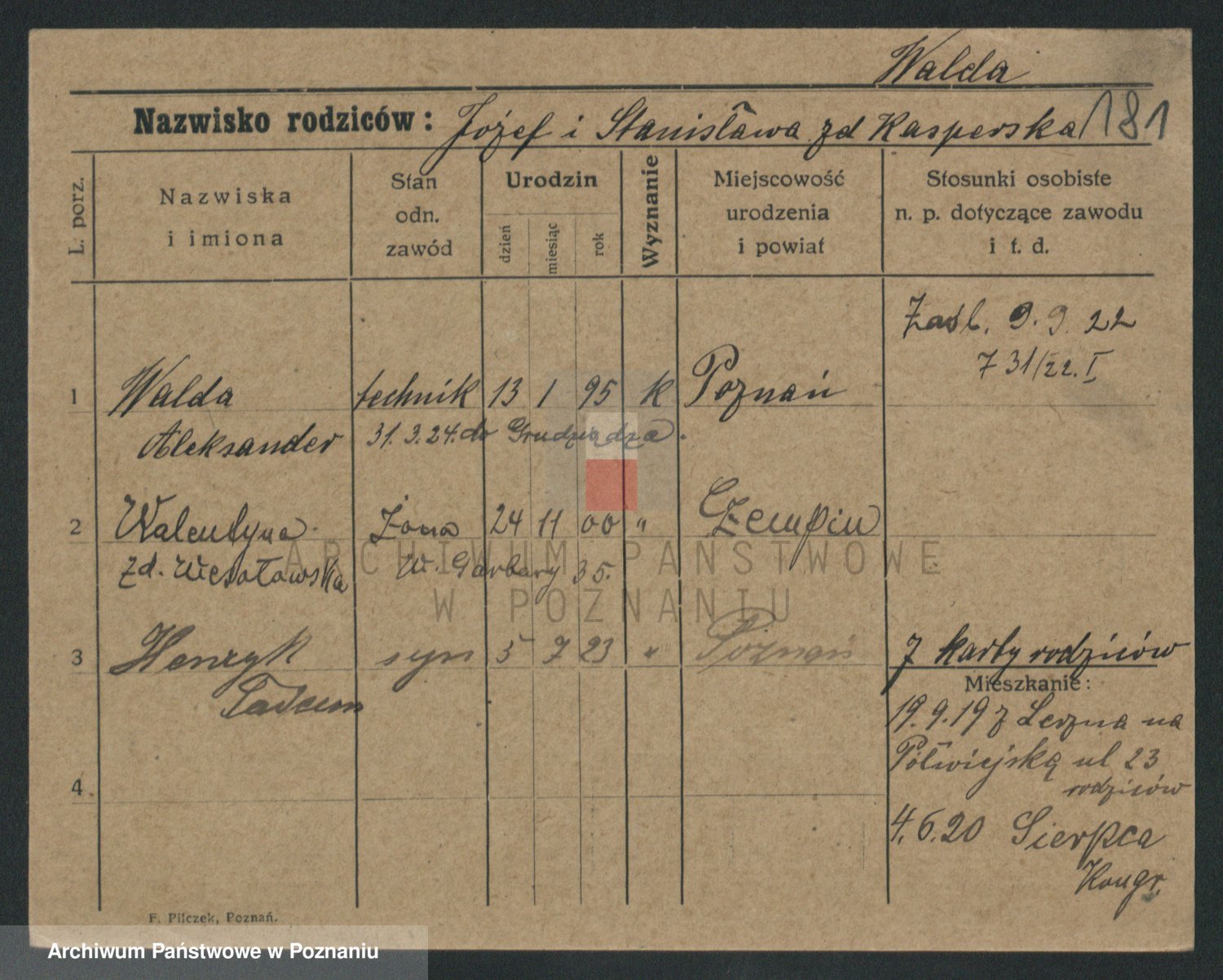 Walczewski z d. Białkowska I v. Walczewska, Marja